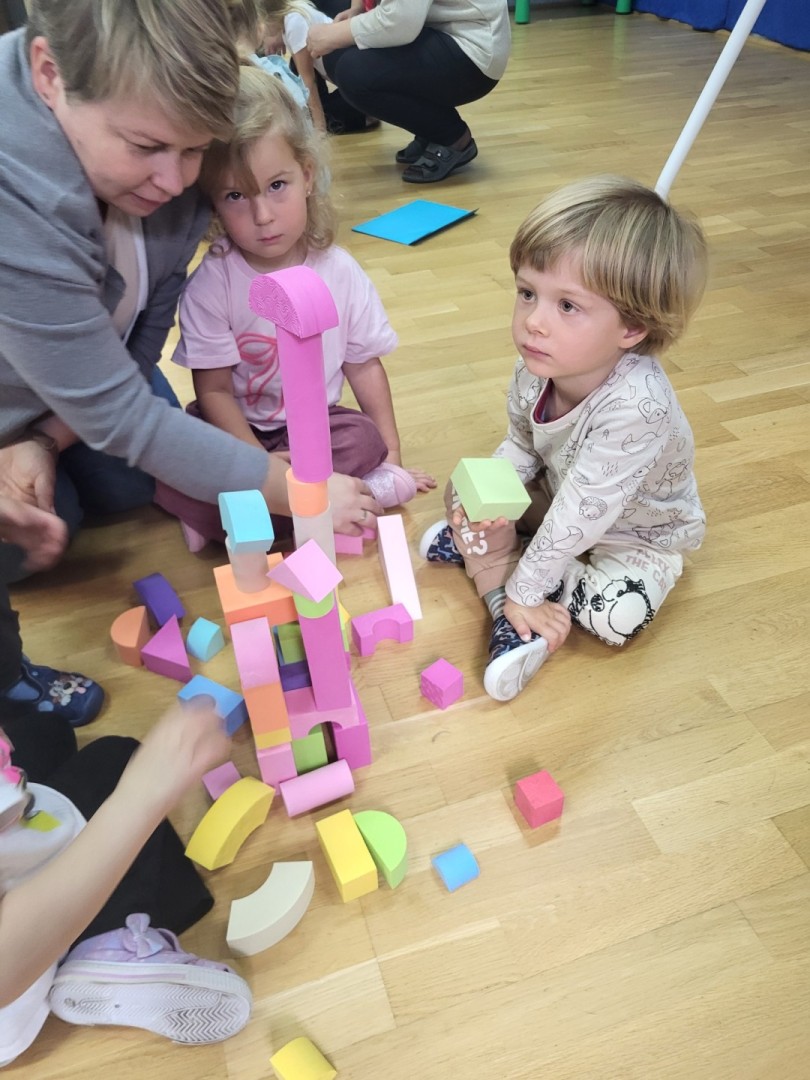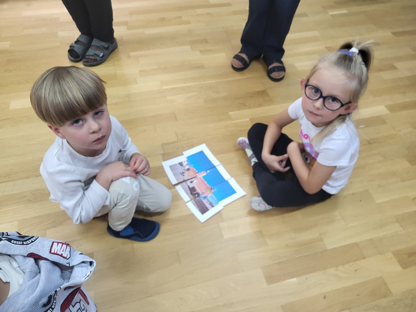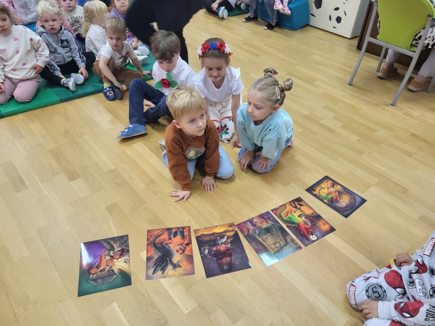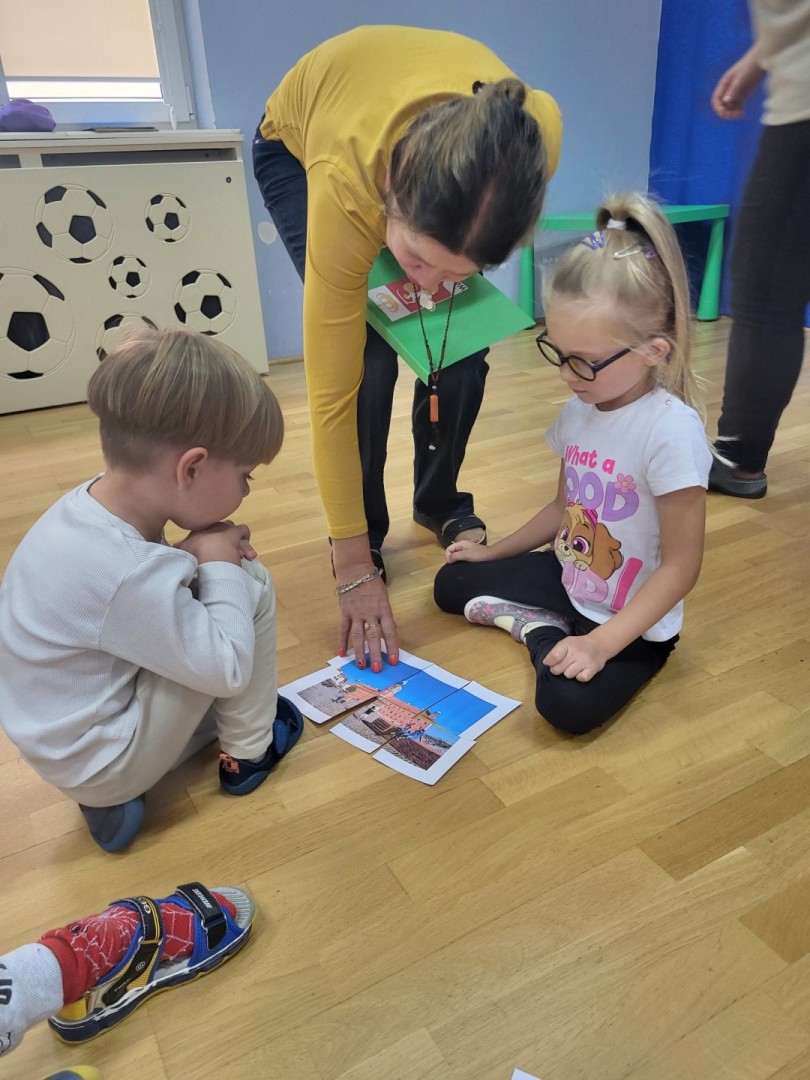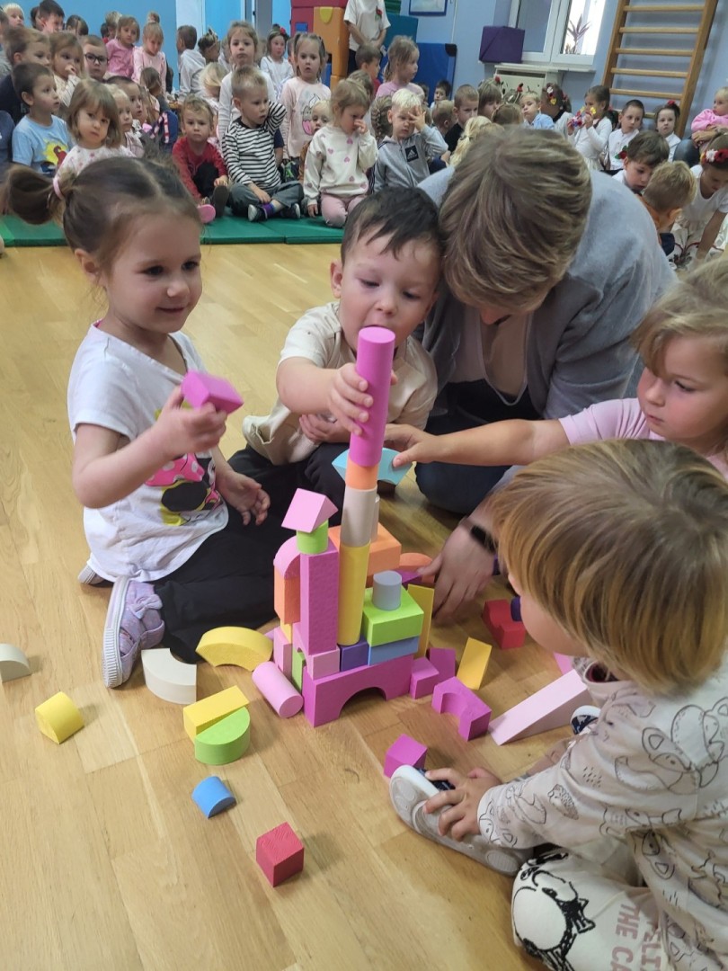 We wrześniu grupa Żabki wraz z wychowawcami przygotowała pokaz multimedialny „Poznajemy Naszą stolicę – Warszawę oraz inne miejsca na Mazowszu. Przedszkolaki zostały zapoznane z położeniem Mazowsza, charakterystycznymi miejscami, tańcami ludowymi oraz potrawami kuchni mazowieckiej. Na podstawie prezentacji multimedialnej poznały ciekawostki dotyczące naszej stolicy, wybrały się w wirtualny spacer po Warszawie poznając ważne miejsca takie jak : Pałac Kultury i Nauki, Zamek Królewski, Łazienki Królewskie, Pałac Prezydencki, Stadion Narodowy itp. Następnie dzieci zostały zapoznane z legendami warszawskimi i obejrzały dwie z nich : „Wars i Sawa” oraz „Bazyliszek”. Grupa „Żabki” przepięknie zatańczyła oberka oraz zaśpiewała piosenkę Marii Koterbskiej pt ”Karuzela”. Na zakończenie dzieci miały za zadanie ułożyć Pałac Kultury i Nauki z klocków piankowych ( 3-latki) puzzle z zabytkami Warszawy (4-latki) oraz historyjkę obrazkową „Bazyliszek” (5-latki).