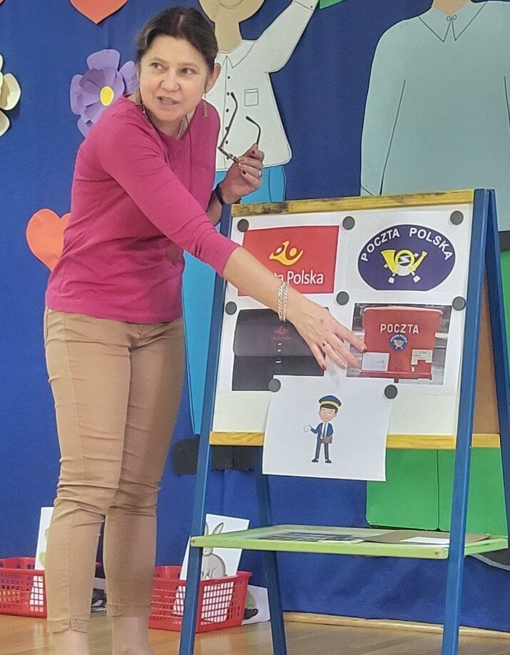 Dnia 11.10.2024r. dzieci w naszym przedszkolu dowiedziały się jak ciężka i odpowiedzialna jest praca Listonosza. W ramach wprowadzenia do tematu przedszkolaki obejrzały film pt.:”Listonosz”. Nauczycielka przeprowadziła krótką pogadankę dotyczącą filmu, zaprezentowała ilustracje przedstawiające torbę i strój listonosza, skrzynkę pocztową, symbol Poczty Polskiej, znaczki pocztowe, pocztówki i blankiety pocztowe.Przedszkolaki z każdej grupy otrzymały zadanie do wykonania: