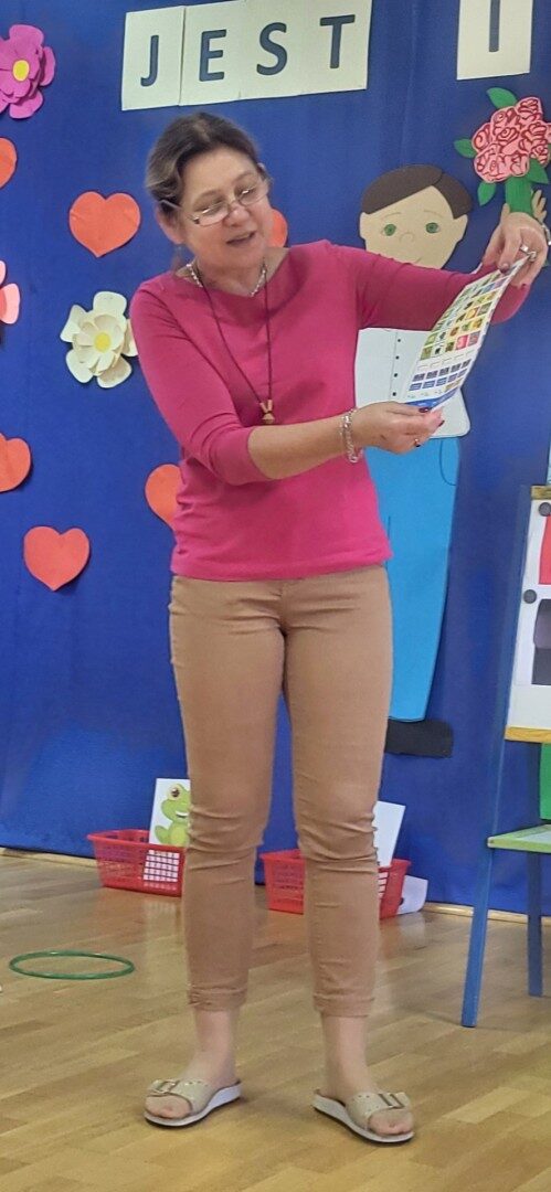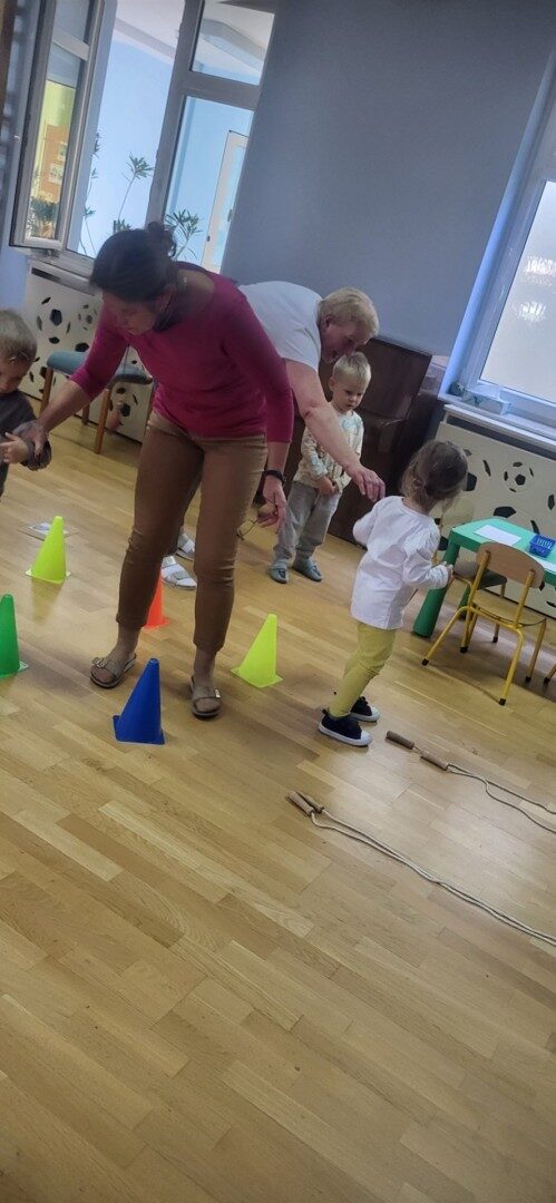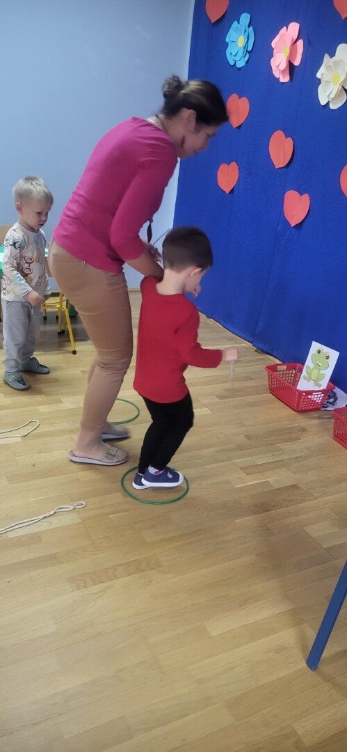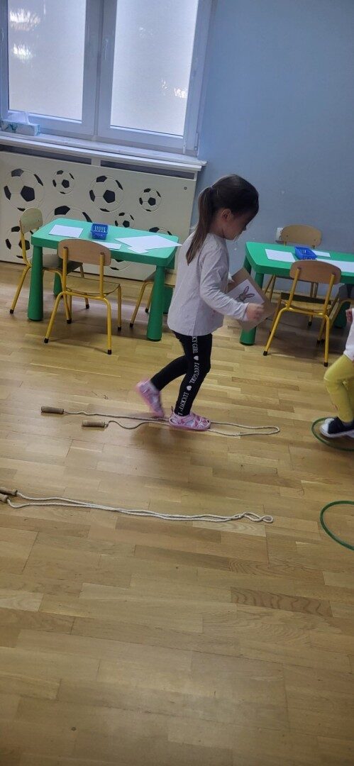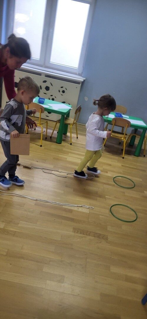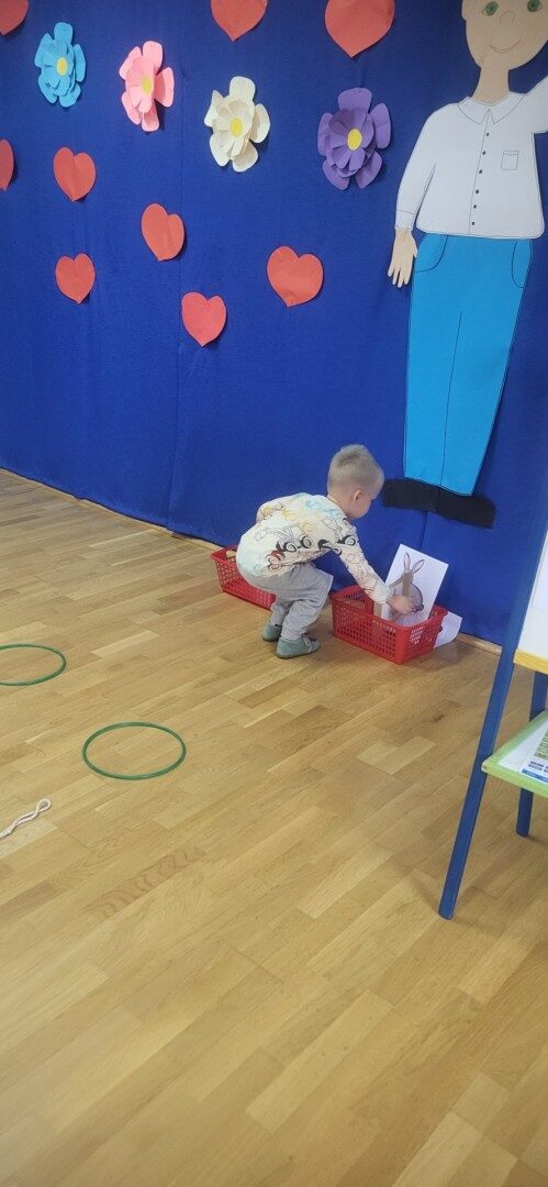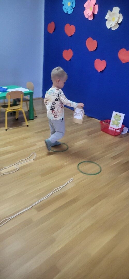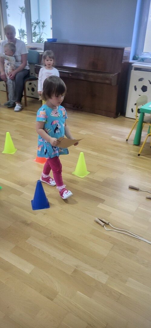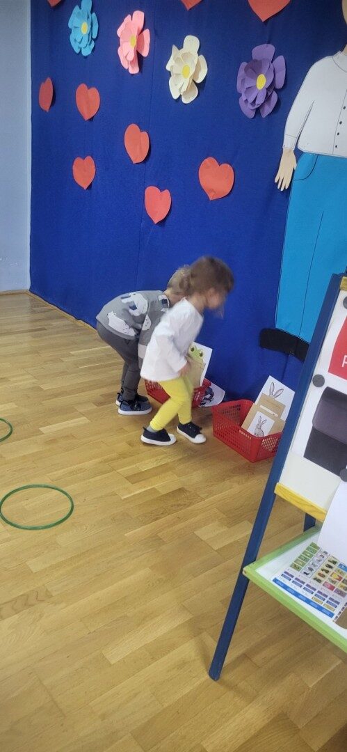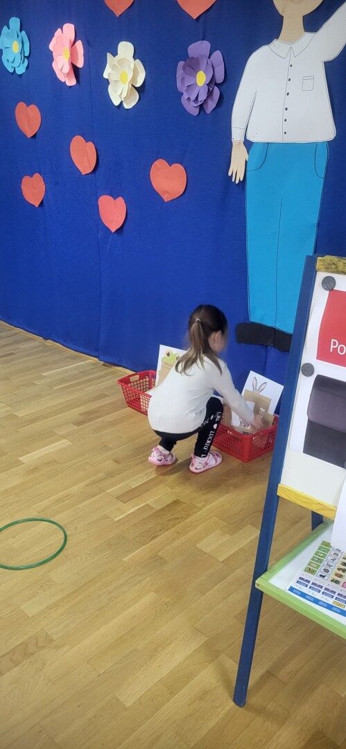 Grupa 3 – latków musiała pokonać “tor listonosza z kopertą w dłoni i włożyć ją do odpowiedniego pojemnika przedstawiającego żabkę lub zajączka.