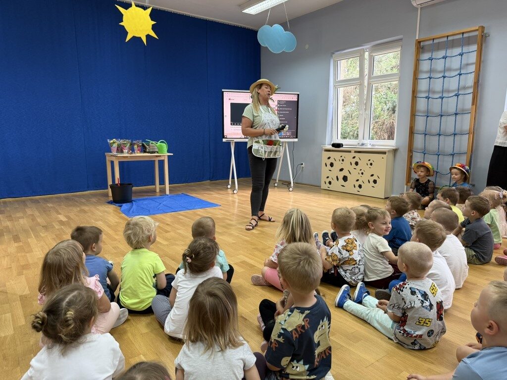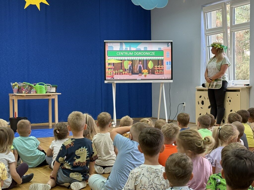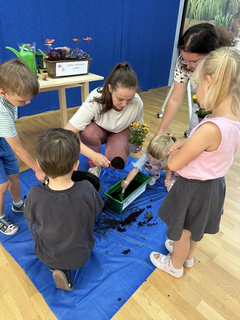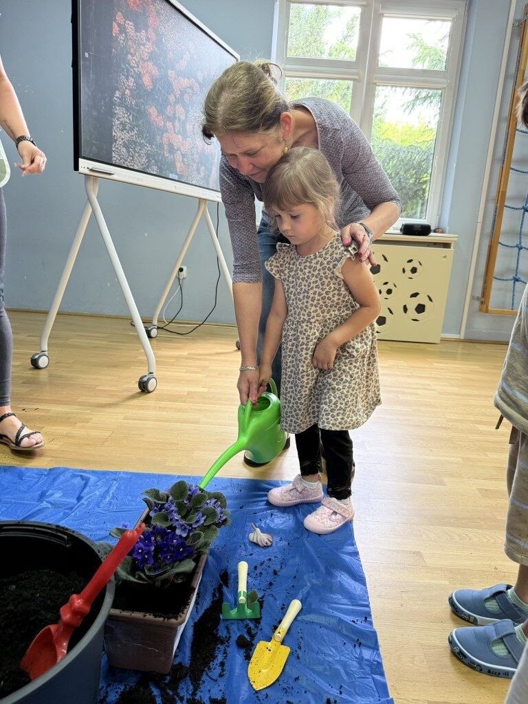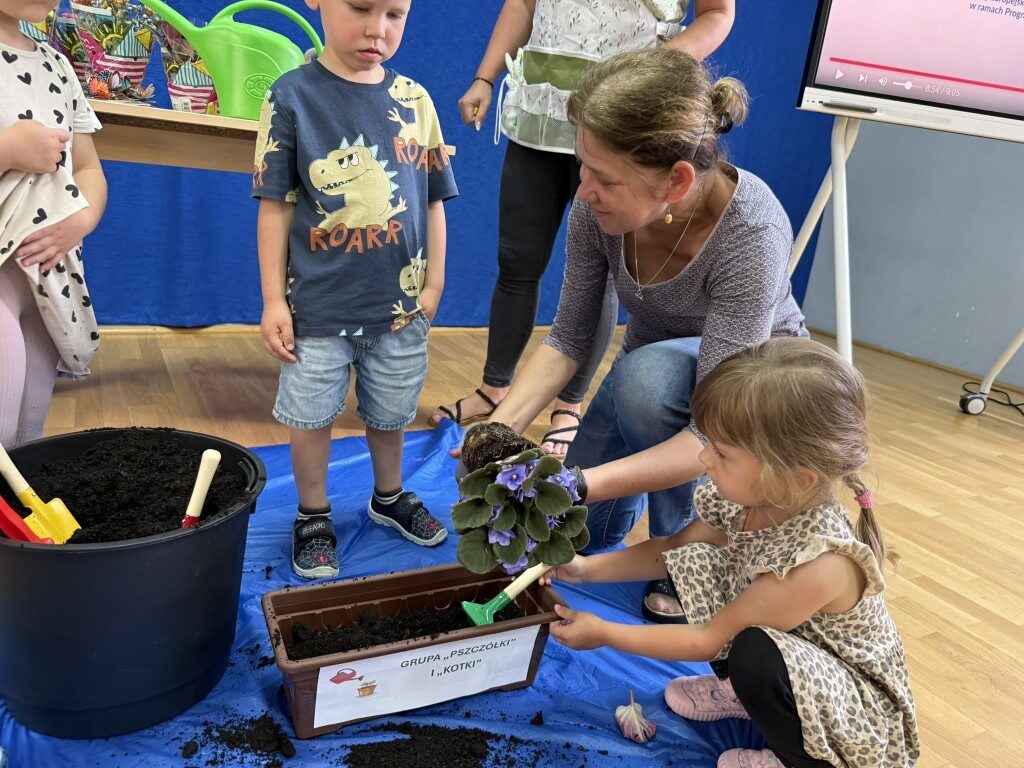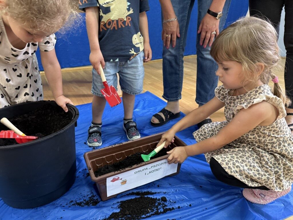 W czerwcu w naszym przedszkolu dzieci zapoznały się z pracą jaką wykonuje ogrodnik, poznały narzędzia jakie są mu potrzebne do pracy.