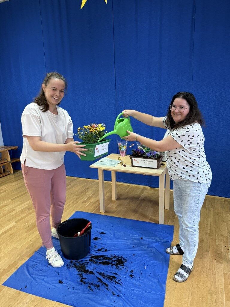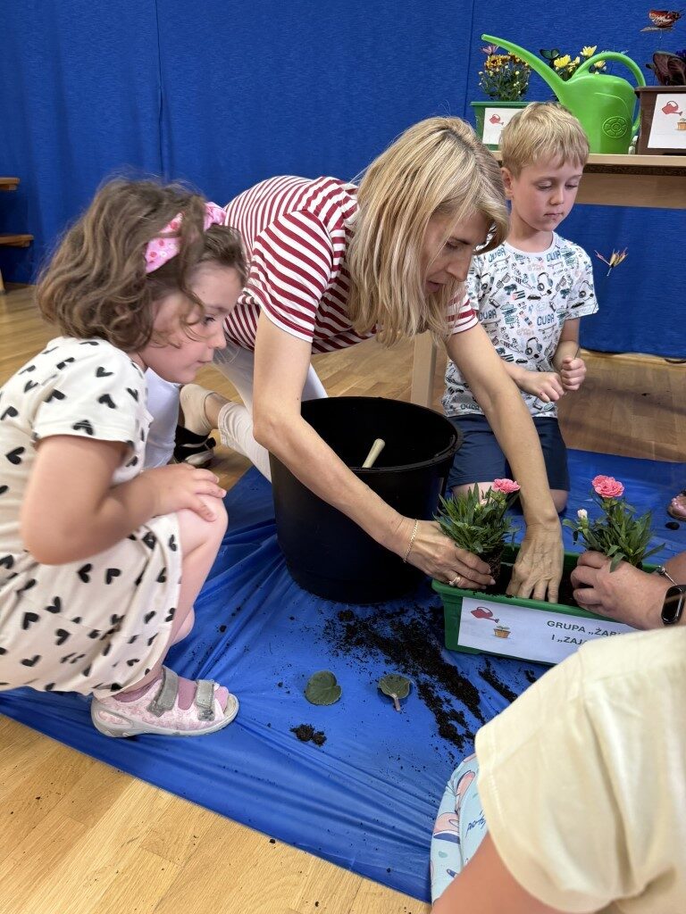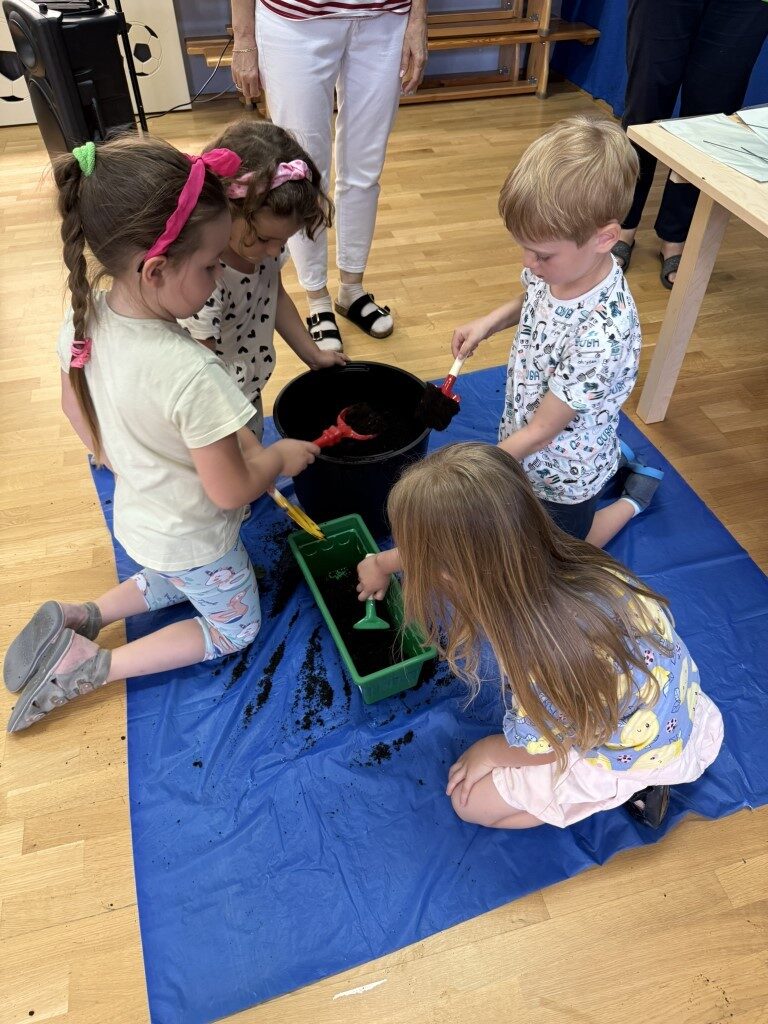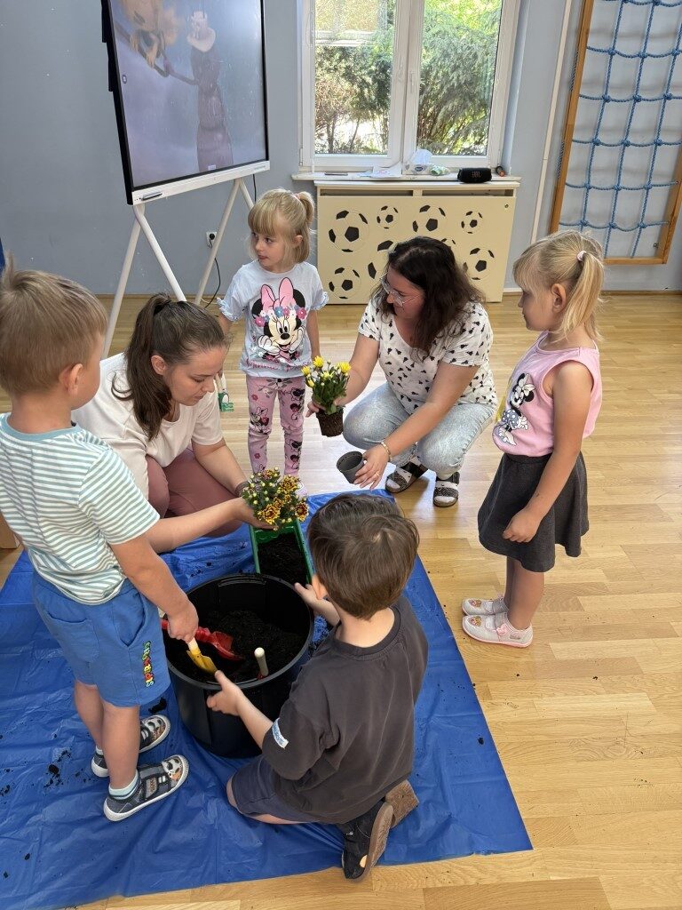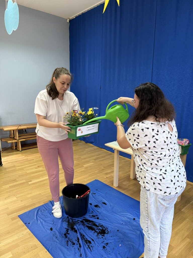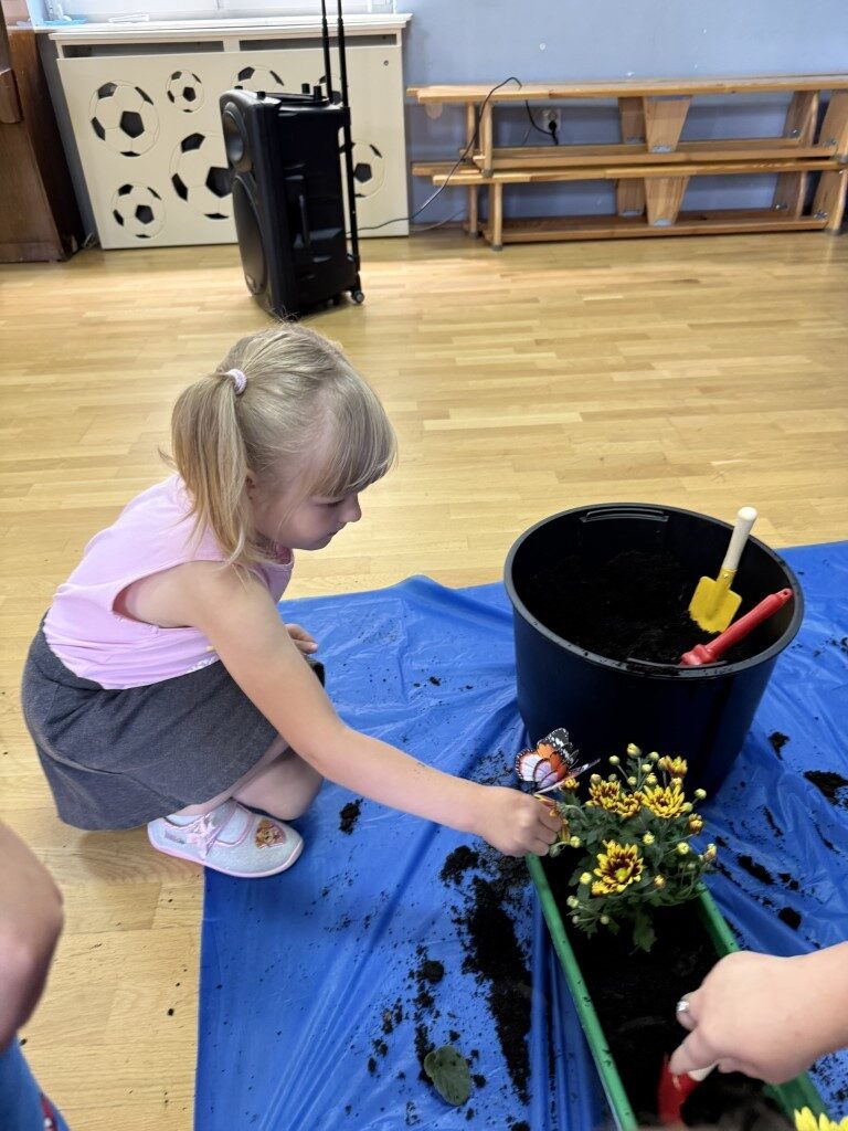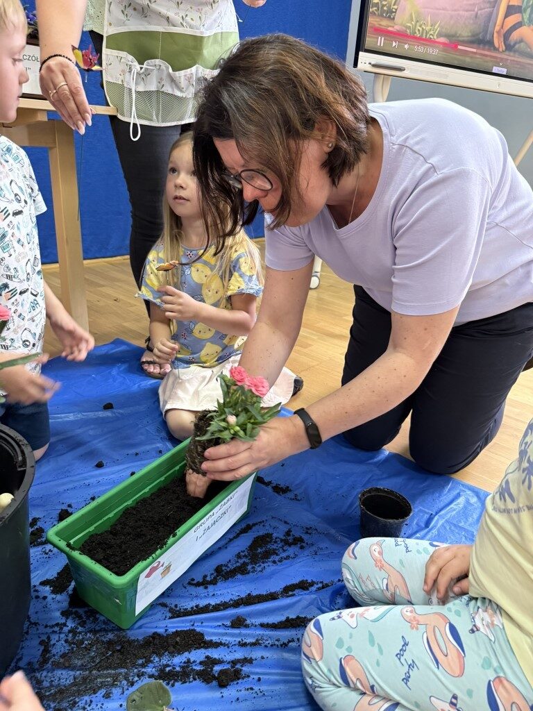 W czerwcu w naszym przedszkolu dzieci zapoznały się z pracą jaką wykonuje ogrodnik, poznały narzędzia jakie są mu potrzebne do pracy.