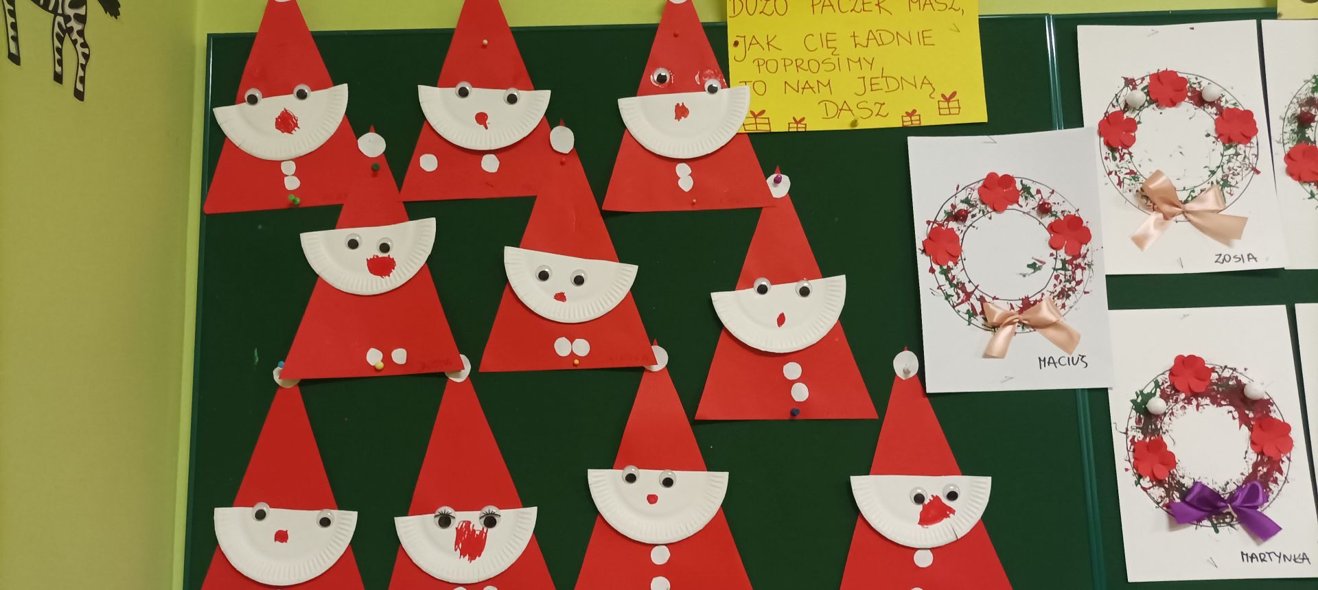 W dniach od 05-6.12 2022r. dzieci z grupy II „Kotki” realizowały projekt pt.: „Zabawki Świętego Mikołaja”. Poznawały wiedzę dotyczącą tradycji świątecznych. Przedszkolaki rozwijały swoje umiejętności plastyczne wykonując różnorodne prace tj. : „Choinka z ażurowych serwetek”, „Mikołaj”, „Wieniec Bożonarodzeniowy”, „Renifer „, „Aniołek”.