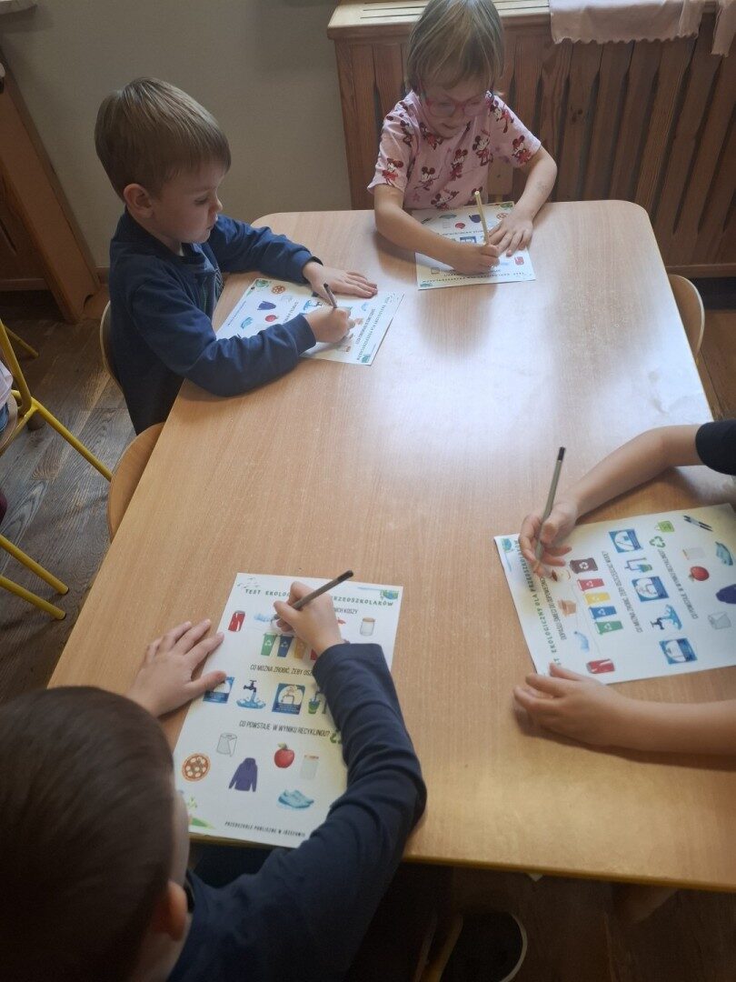 - Opracowanie w formie dowolnej pracy plastycznej/technicznej planu przedszkola z uwzględnieniem miejsc, w których znajdują się pojemniki do segregacji śmieci, miejsce zbiorki baterii, nakrętek czy makulatury. Ocena na podstawie sprawozdania, zdjęć, prac plastycznych przesłanych do jury konkursu poprzez stronę internetową.