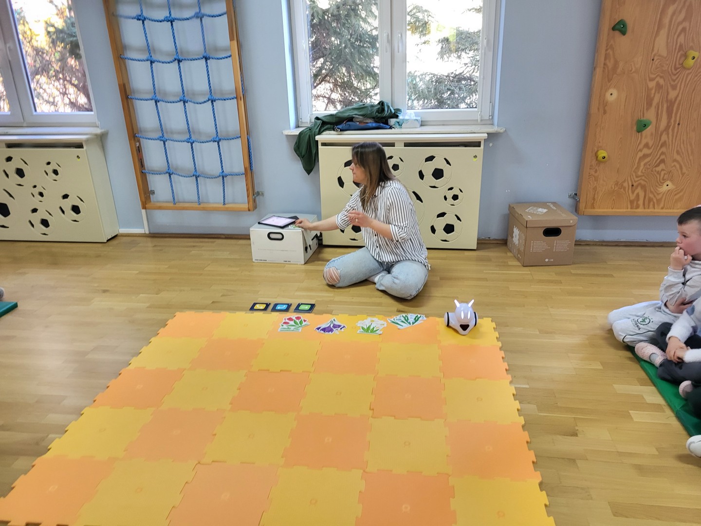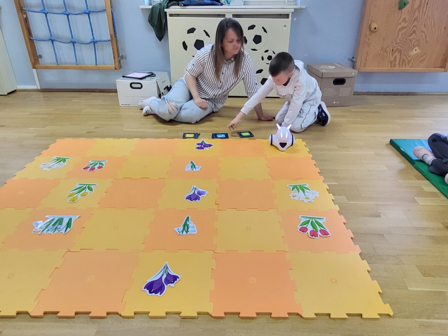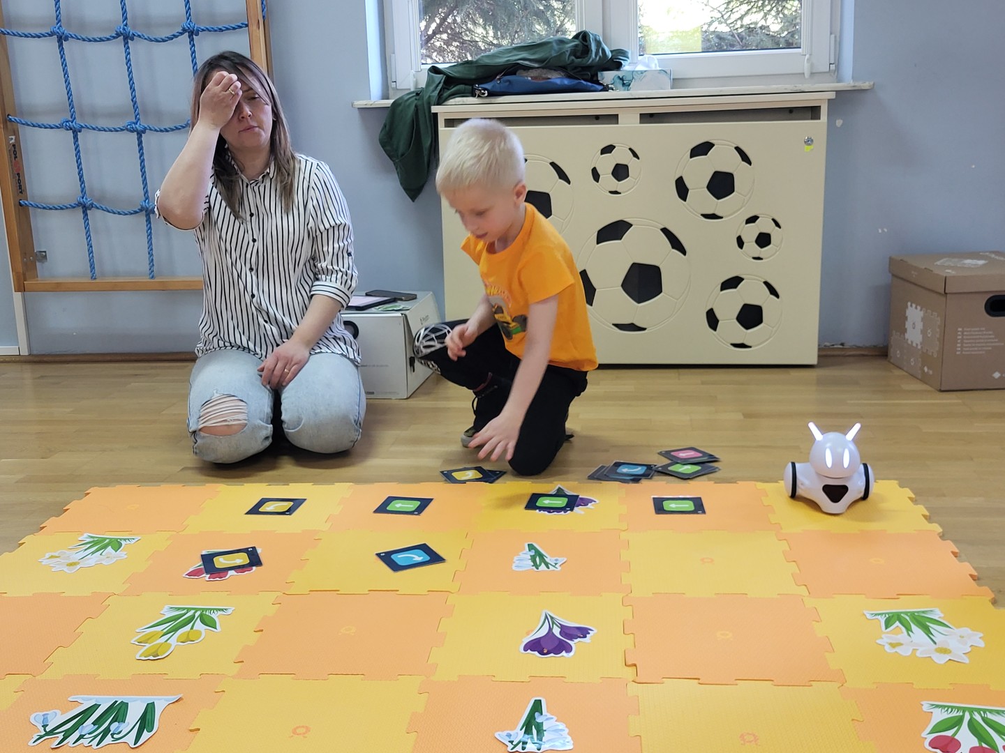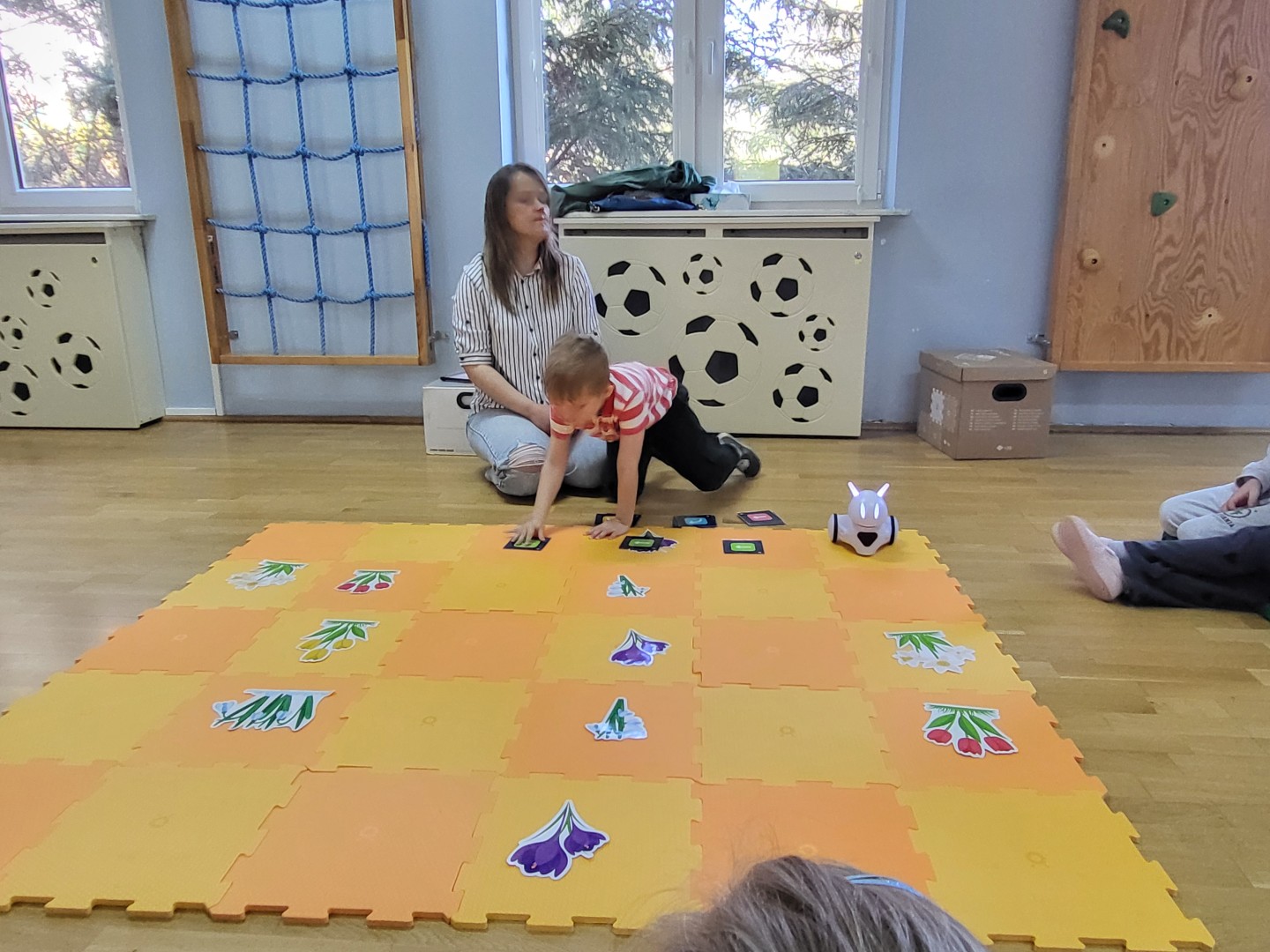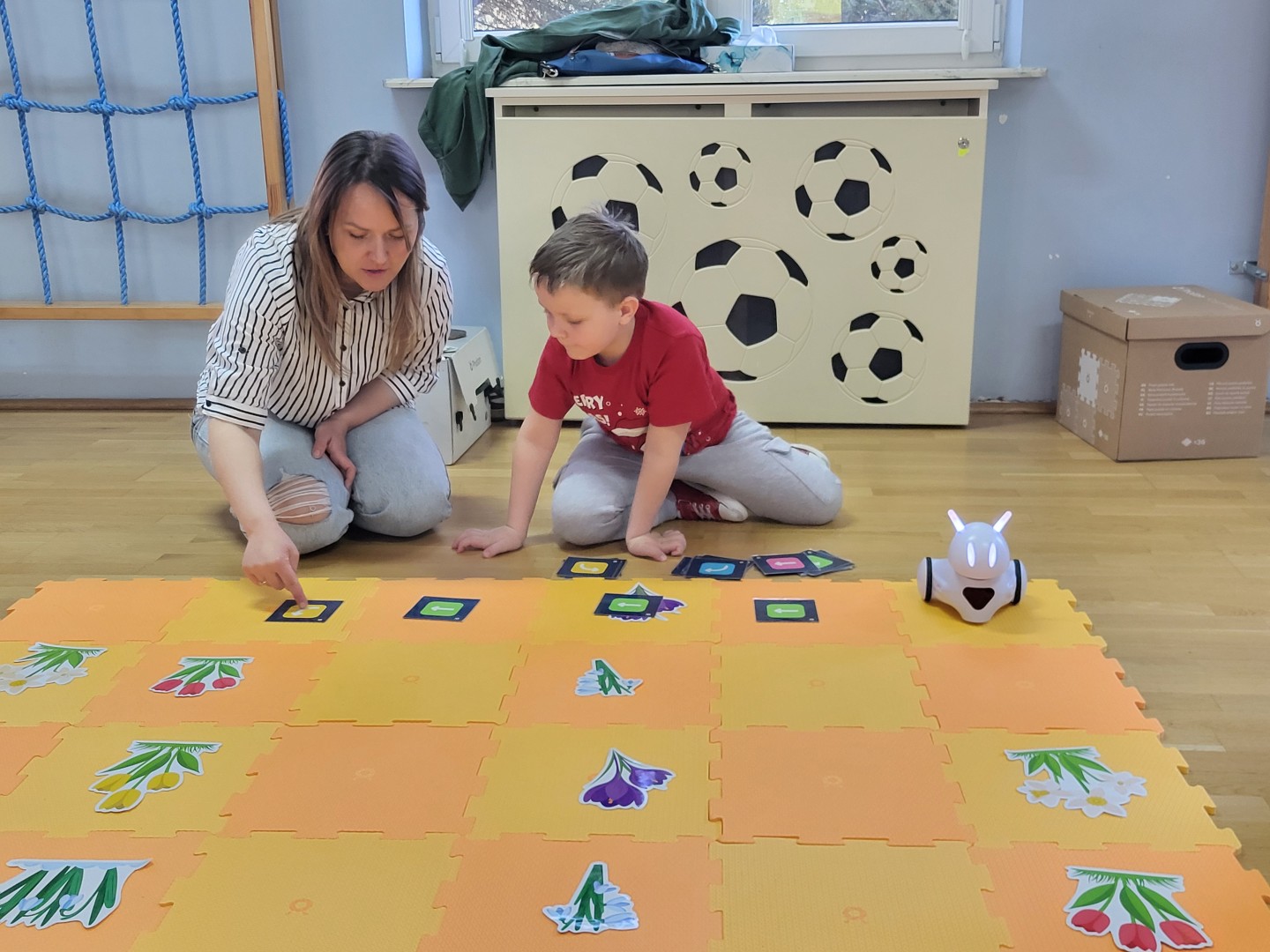 Dnia 18.04.2026r w naszym przedszkolu we wszystkich grupach wiekowych odbyły się warsztaty z robotyki dla przedszkolaków. Są to nowoczesne zajęcia edukacyjne, które poprzez wspólną zabawę wprowadzają dzieci w świat technologii, inżynierii i podstaw kodowania. Maluchy uczą się, że urządzenia nie działają magicznie, lecz wykonują polecenia zaprogramowane przez człowieka. Warsztaty z robotem Photon to interaktywna przygoda, która wprowadza przedszkolaki w świat nowoczesnych technologii poprzez zabawę i eksperymenty. Podczas warsztatów dzieci wykorzystują specjalne aplikacje mobilne do rysowania trasy palcem aby sterować robotem na macie edukacyjnej .Nasze przedszkolaki miały za zadanie stworzyć przy użyciu robota bukiet wiosennych kwiatów. Dzieci mogły zmieniać kolory czułek i oczu robota oraz wybierać wydawane przez niego dźwięki.