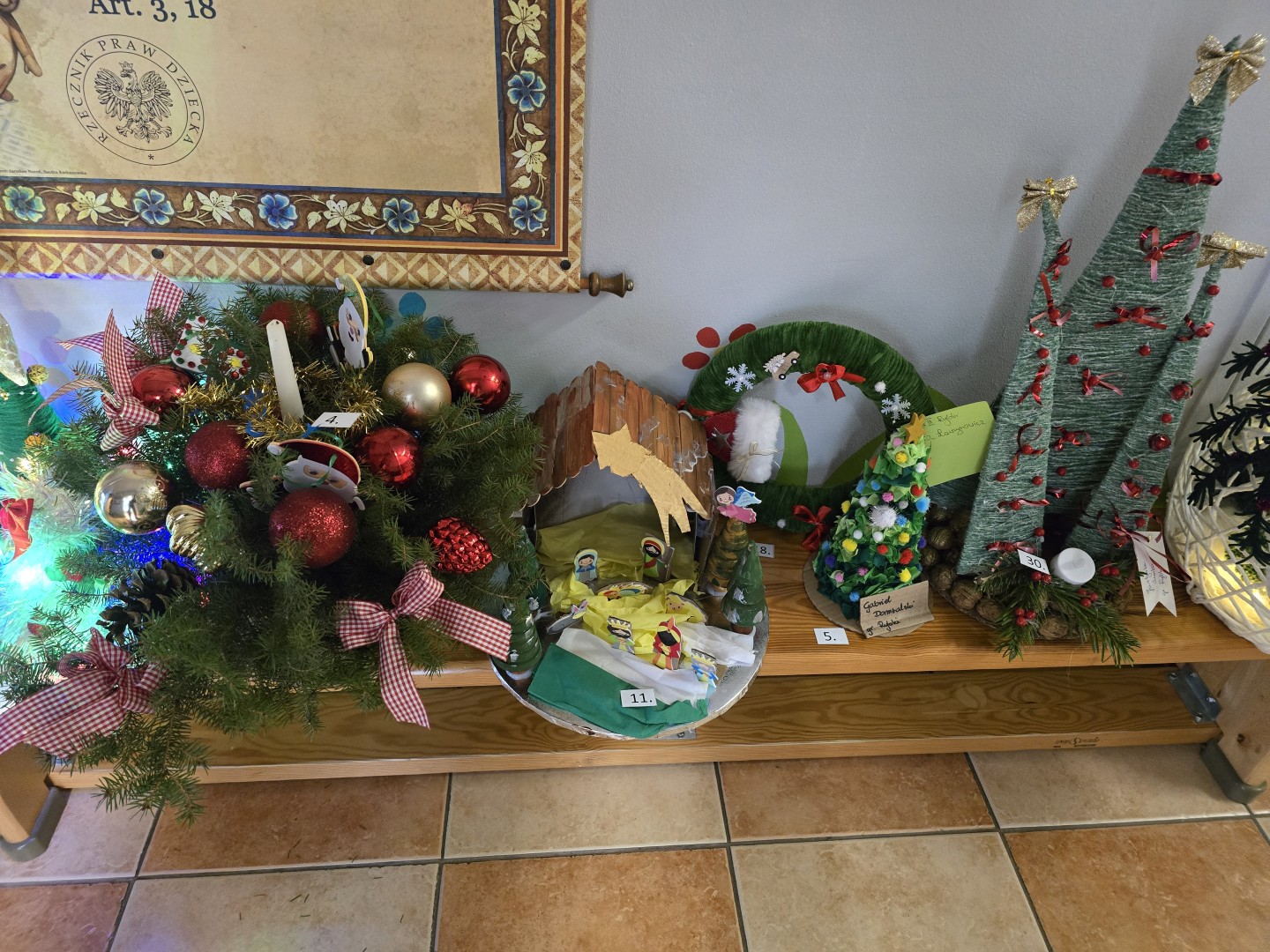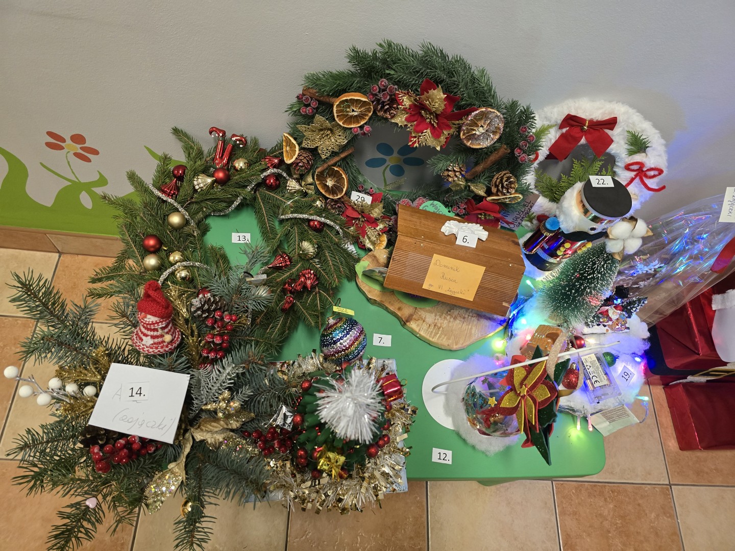 Z wielką radością i wzruszeniem ogłaszamy wyniki naszego tegorocznego konkursu plastyczno-technicznego „Ozdoba Bożonarodzeniowa”. Wybór zwycięzców był niesamowicie trudnym zadaniem- wpłynęło bowiem 52 prace, a każda z nich była wyjątkowa, pełna pasji i świątecznego ciepła. Jury, oceniając prace, brało pod uwagę pomysłowość, estetykę wykonania, stopień trudności oraz wykorzystanie ciekawych materiałów. Po długich naradach udało się ogłosić laureatów: I miejsce-Zuzia D. (grupa III Rybki) II miejsce-Martyna L.(grupa III Rybki) III miejsce- Henryk S.( grupa V Żabki) Wyróżnienia: Adam M. (grupa V Żabki),Staś K.( grupa I Pszczółki), Justyna S.(grupa III Rybki),Mikołaj K. (grupa V Żabki),Bianka K.( grupa II Kotki),Marcelina U.( grupa IV Biedronki). Serdecznie dziękujemy wszystkim uczestnikom za trud włożony w przygotowanie ozdób. Wasza kreatywność sprawiła, że nasze korytarze rozbłysły prawdziwym blaskiem! Podziękowania kierujemy również do rodziców i opiekunów, którzy wspierali młodych artystów w ich procesie twórczym.