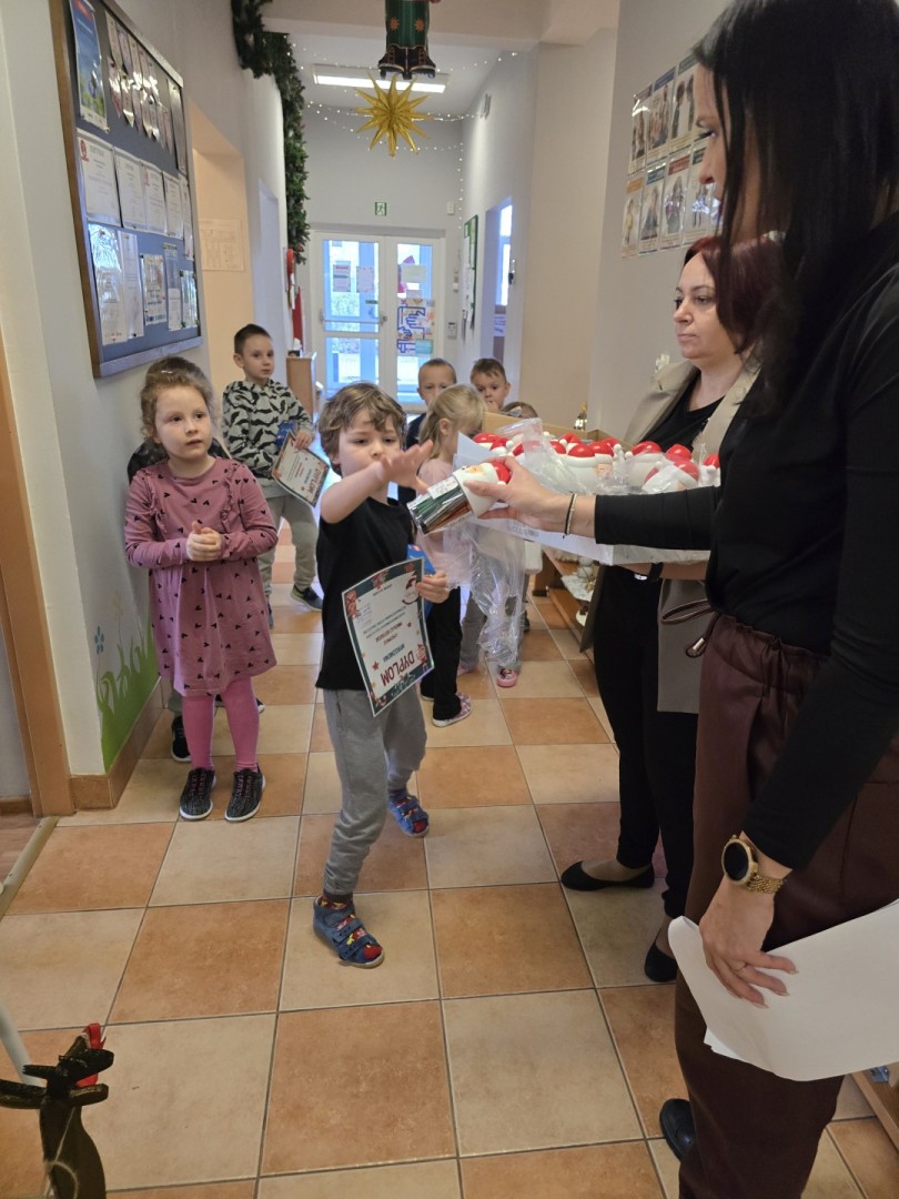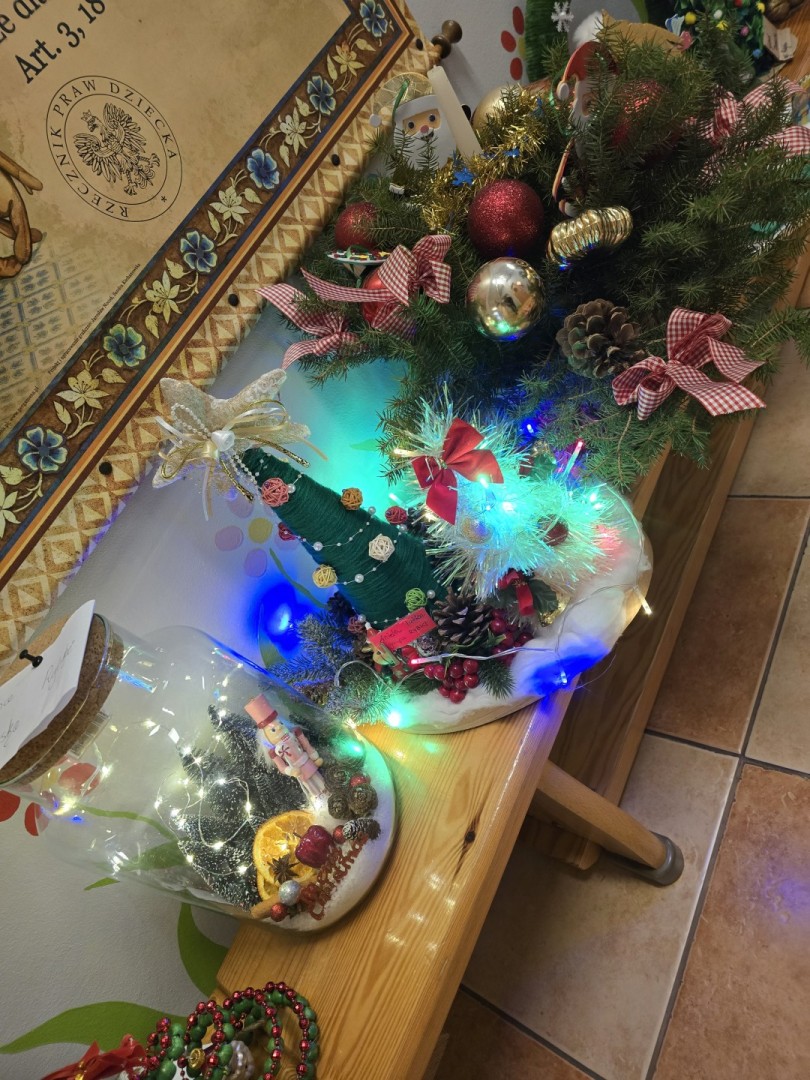 Z wielką radością i wzruszeniem ogłaszamy wyniki naszego tegorocznego konkursu plastyczno-technicznego „Ozdoba Bożonarodzeniowa”. Wybór zwycięzców był niesamowicie trudnym zadaniem- wpłynęło bowiem 52 prace, a każda z nich była wyjątkowa, pełna pasji i świątecznego ciepła. Jury, oceniając prace, brało pod uwagę pomysłowość, estetykę wykonania, stopień trudności oraz wykorzystanie ciekawych materiałów. Po długich naradach udało się ogłosić laureatów: I miejsce-Zuzia D. (grupa III Rybki) II miejsce-Martyna L.(grupa III Rybki) III miejsce- Henryk S.( grupa V Żabki) Wyróżnienia: Adam M. (grupa V Żabki),Staś K.( grupa I Pszczółki), Justyna S.(grupa III Rybki),Mikołaj K. (grupa V Żabki),Bianka K.( grupa II Kotki),Marcelina U.( grupa IV Biedronki). Serdecznie dziękujemy wszystkim uczestnikom za trud włożony w przygotowanie ozdób. Wasza kreatywność sprawiła, że nasze korytarze rozbłysły prawdziwym blaskiem! Podziękowania kierujemy również do rodziców i opiekunów, którzy wspierali młodych artystów w ich procesie twórczym.