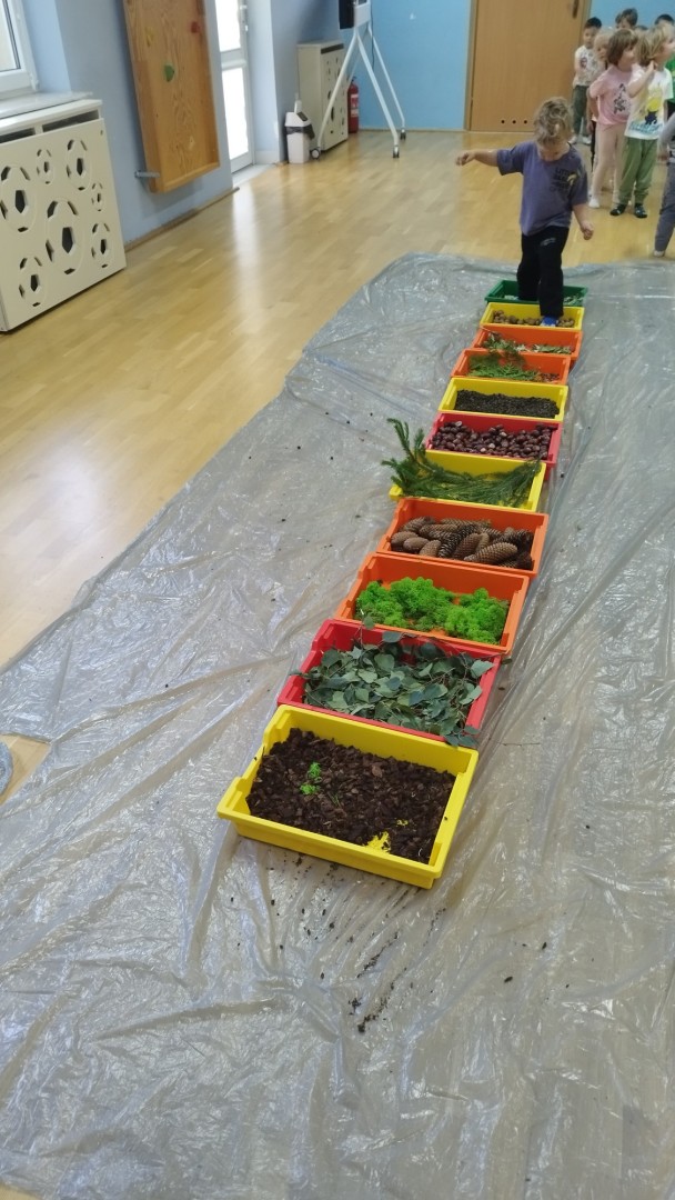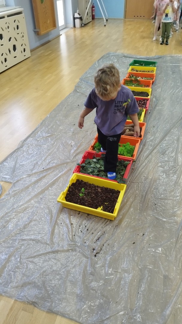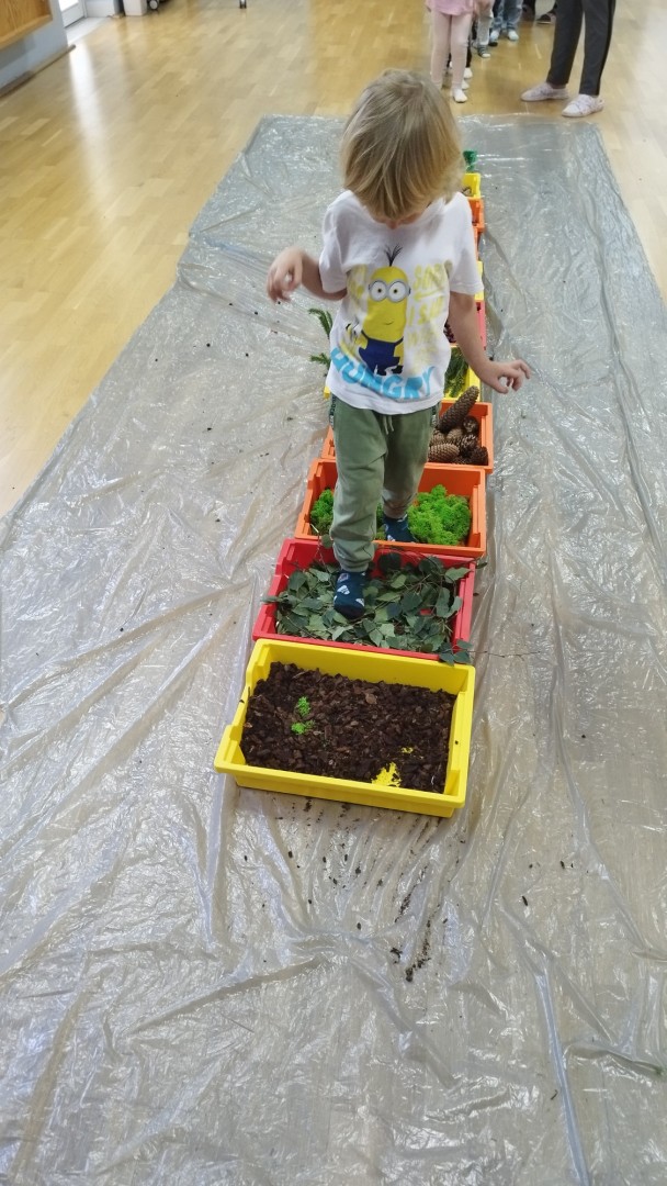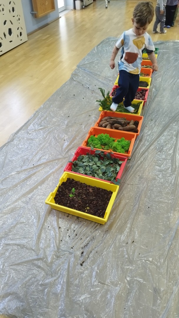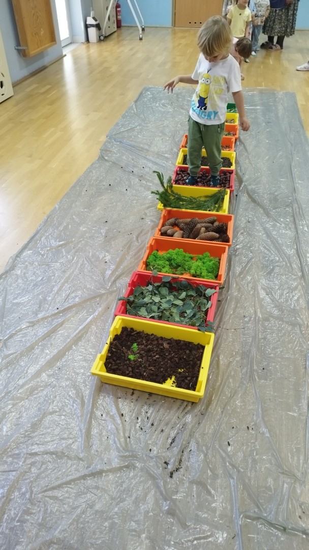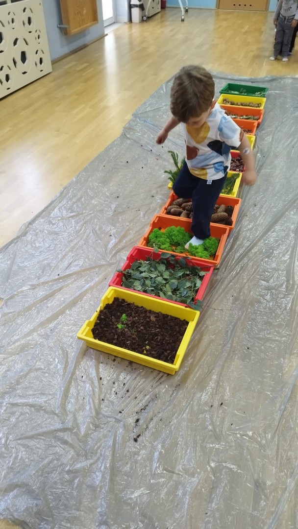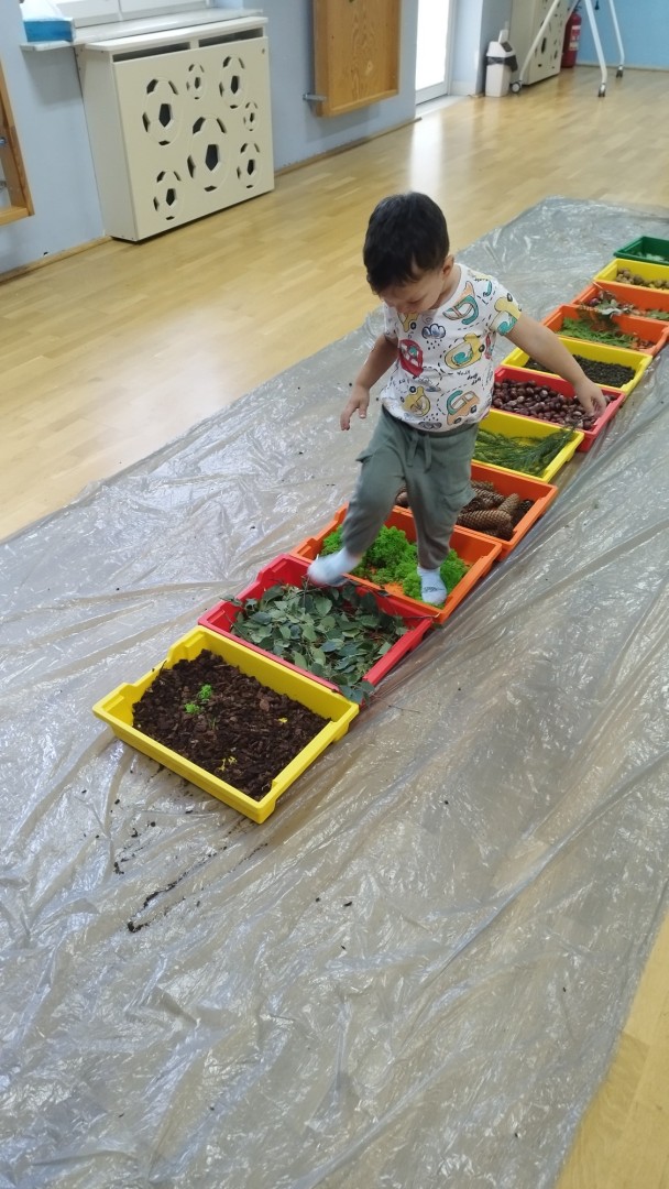 Jesienna ścieżka sensoryczna to utworzona z naturalnych darów jesieni (liści, kasztanów, szyszek, żołędzi, gałązek, kory) trasa, po której dzieci chodzą bosymi stopami, aby stymulować receptory czuciowe. Pomaga to w rozwoju motoryki dużej, poprawia równowagę i koordynację, rozwija wrażenia dotykowe, a także wspiera integrację sensoryczną i poznawanie otoczenia przez zmysły.