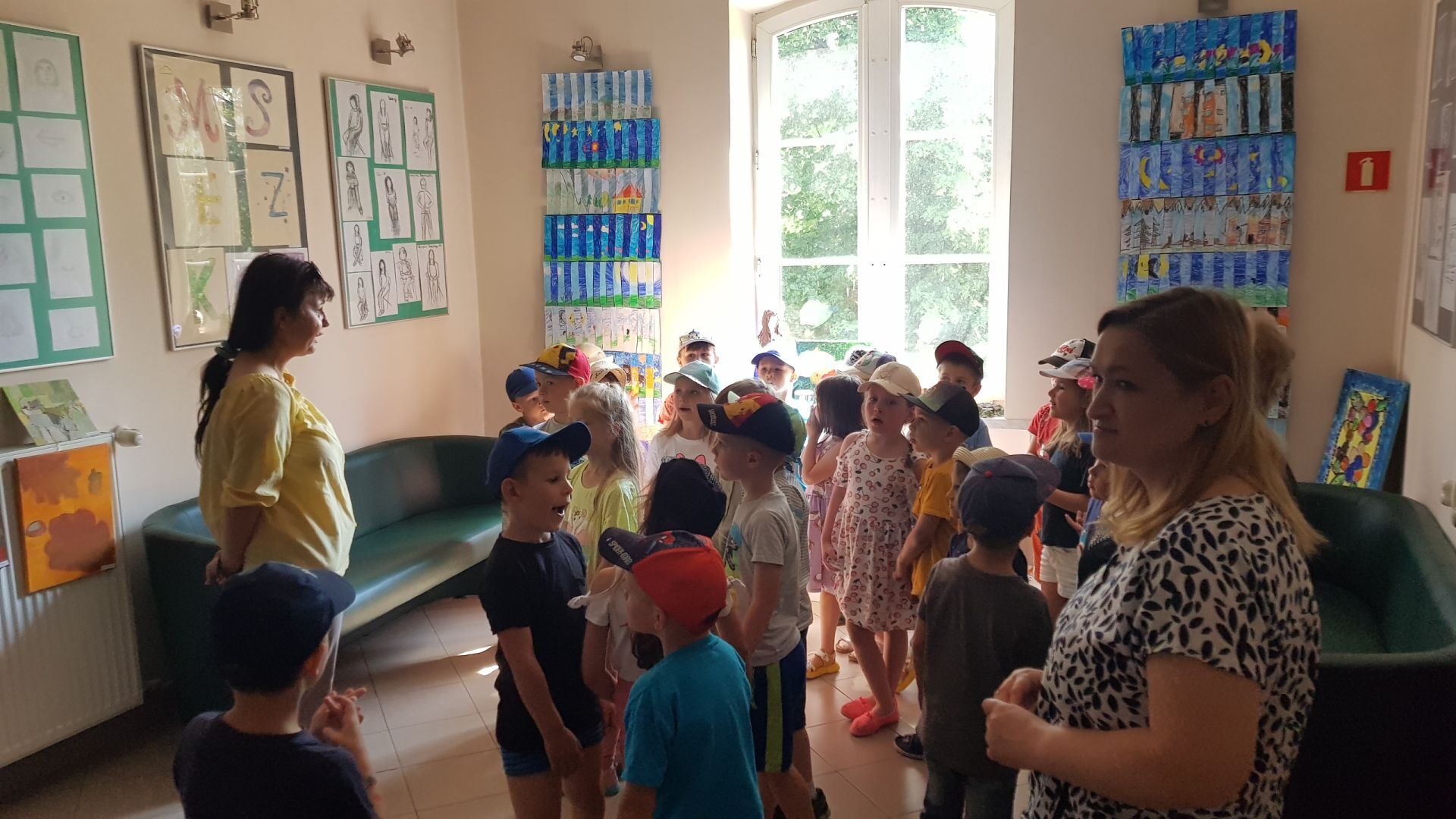 07.06.2023r. grupy V i VI odwiedziły Szkołę Podstawową w Płochocinie. Podczas wizyty przedszkolaki zwiedzały pomieszczenia szkolne : bibliotekę, stołówkę, plac zabaw, zobaczyły również w którym skrzydle szkoły będą ich sale. Po szkole przeszły do Domu Kultury, gdzie obecnie zajęcia mają klasy „0” (ze względu na remont szkoły). Przedszkolaki zapoznały się z wyposażeniem sali, zobaczyły na karty pracy, zeszyt, pierwsze czytanki oraz pomoce dydaktyczne. Pani Ewa Błaszczyk wraz ze swoimi ucznia (w większości absolwentami naszego przedszkola) mi przygotowała krótki występ artystyczny dla przyszłych uczniów. Dzięki tej wizycie w szkole i w sali „0” dzieciom będzie łatwiej przekroczyć szkolny próg pierwszego września.