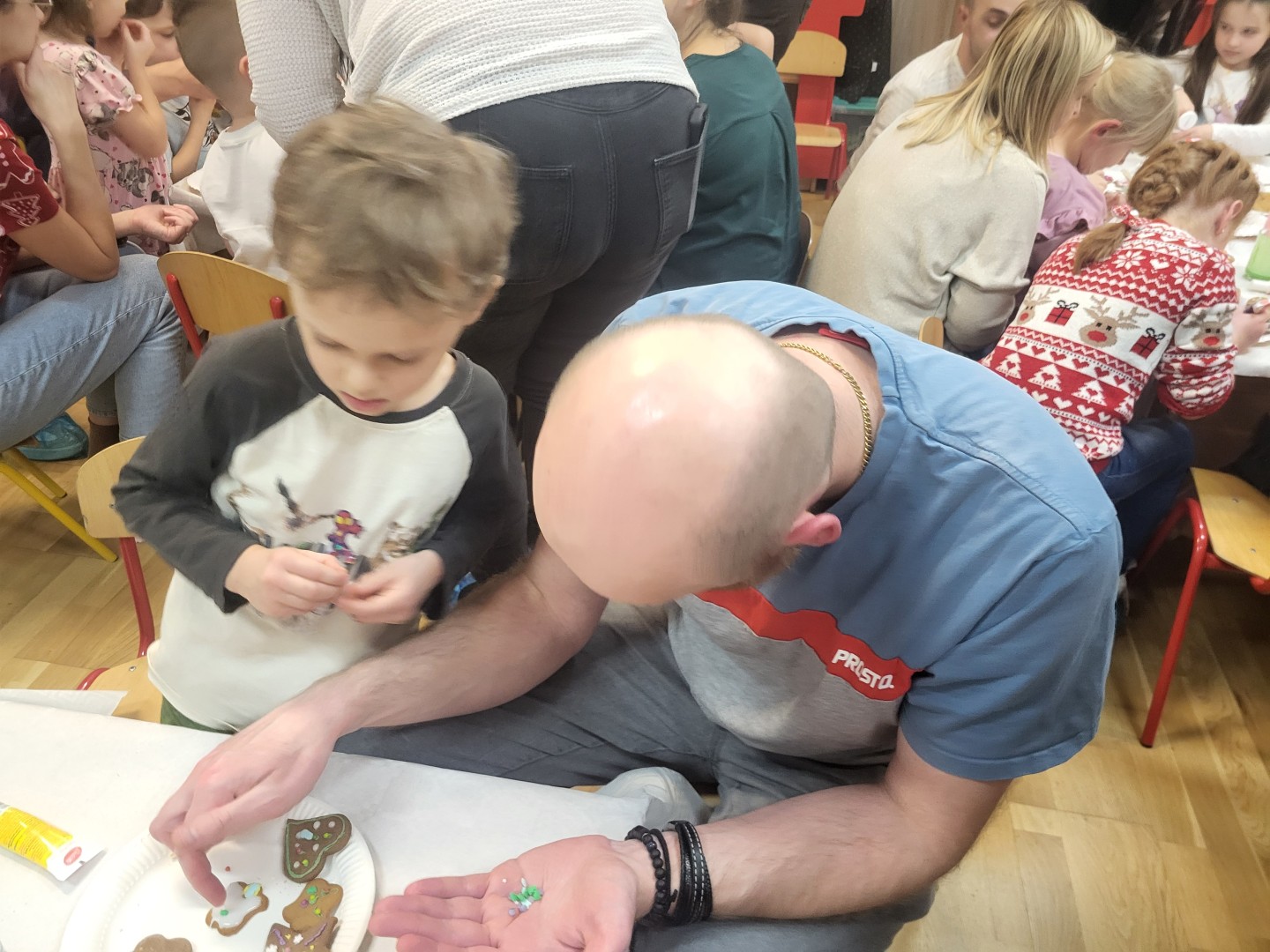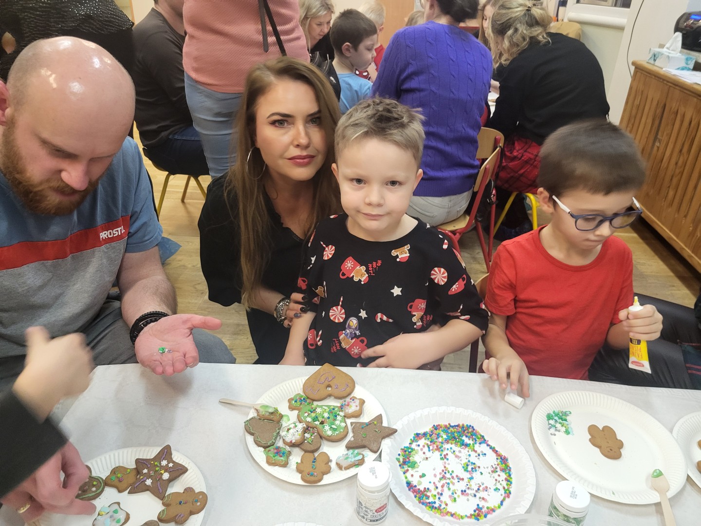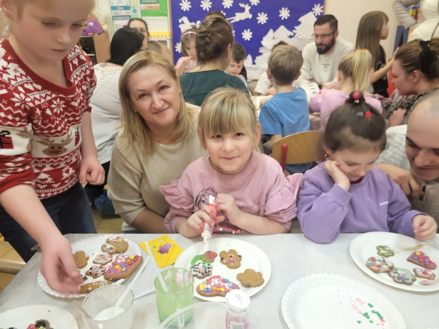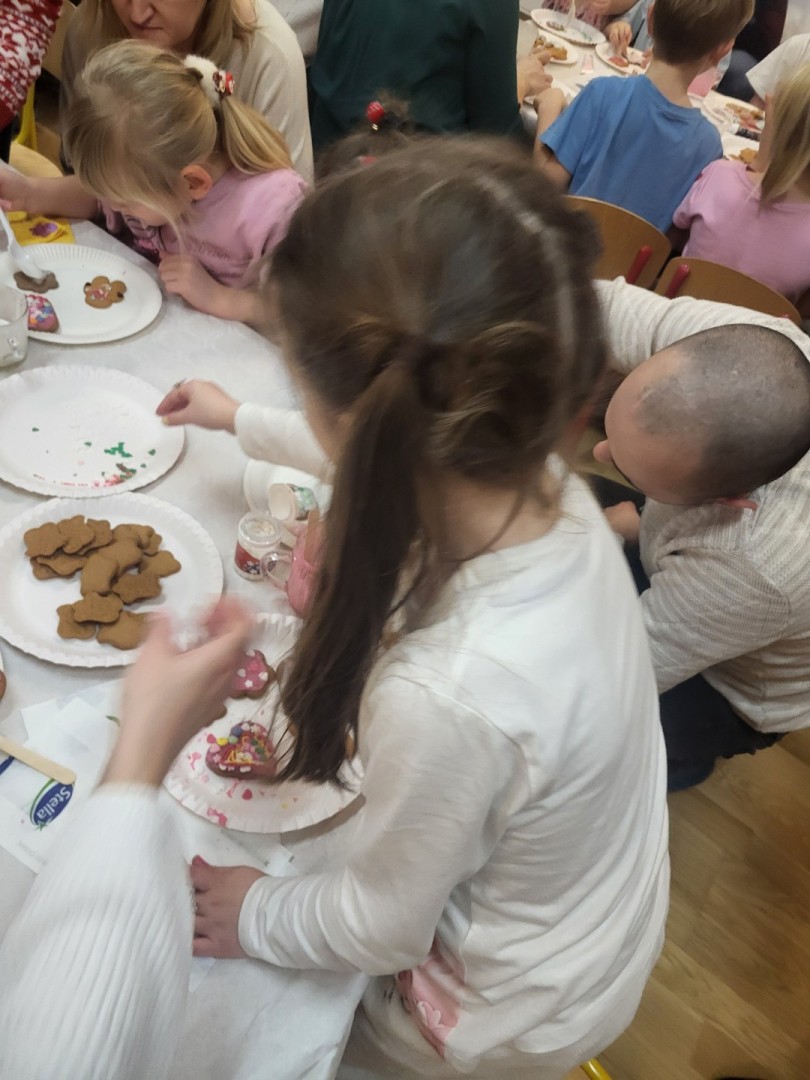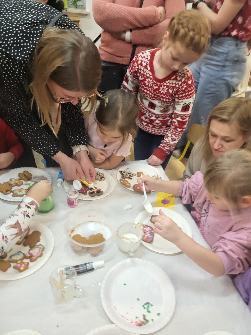 Głównym punktem wydarzenia było ozdabianie pierniczków. Dzieci wraz z rodzicami dekorowali je kolorowym lukrem, pisakami cukrowymi oraz różnorodnymi słodkimi ozdobami. Uczestnicy jednocześnie mogli próbować aromatycznych ciasteczek, które wprowadzały wszystkich w jeszcze bardziej świąteczny nastrój.