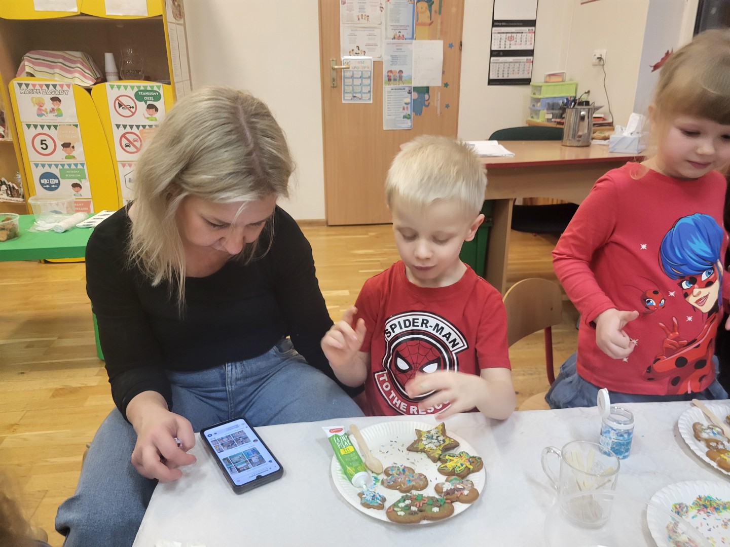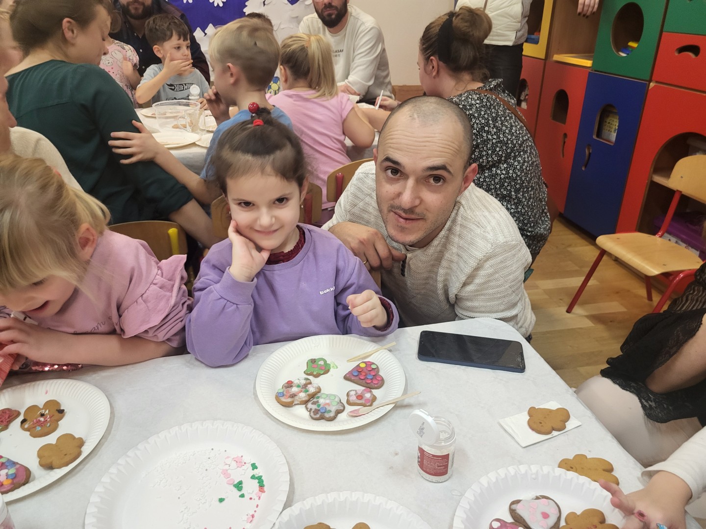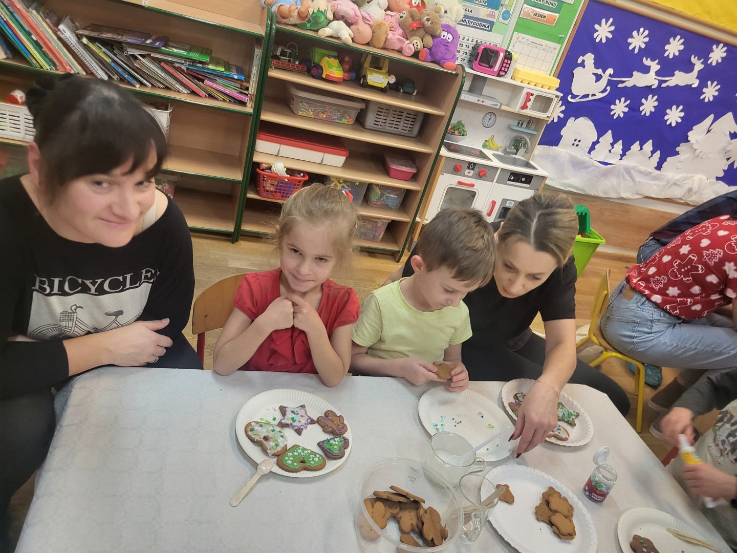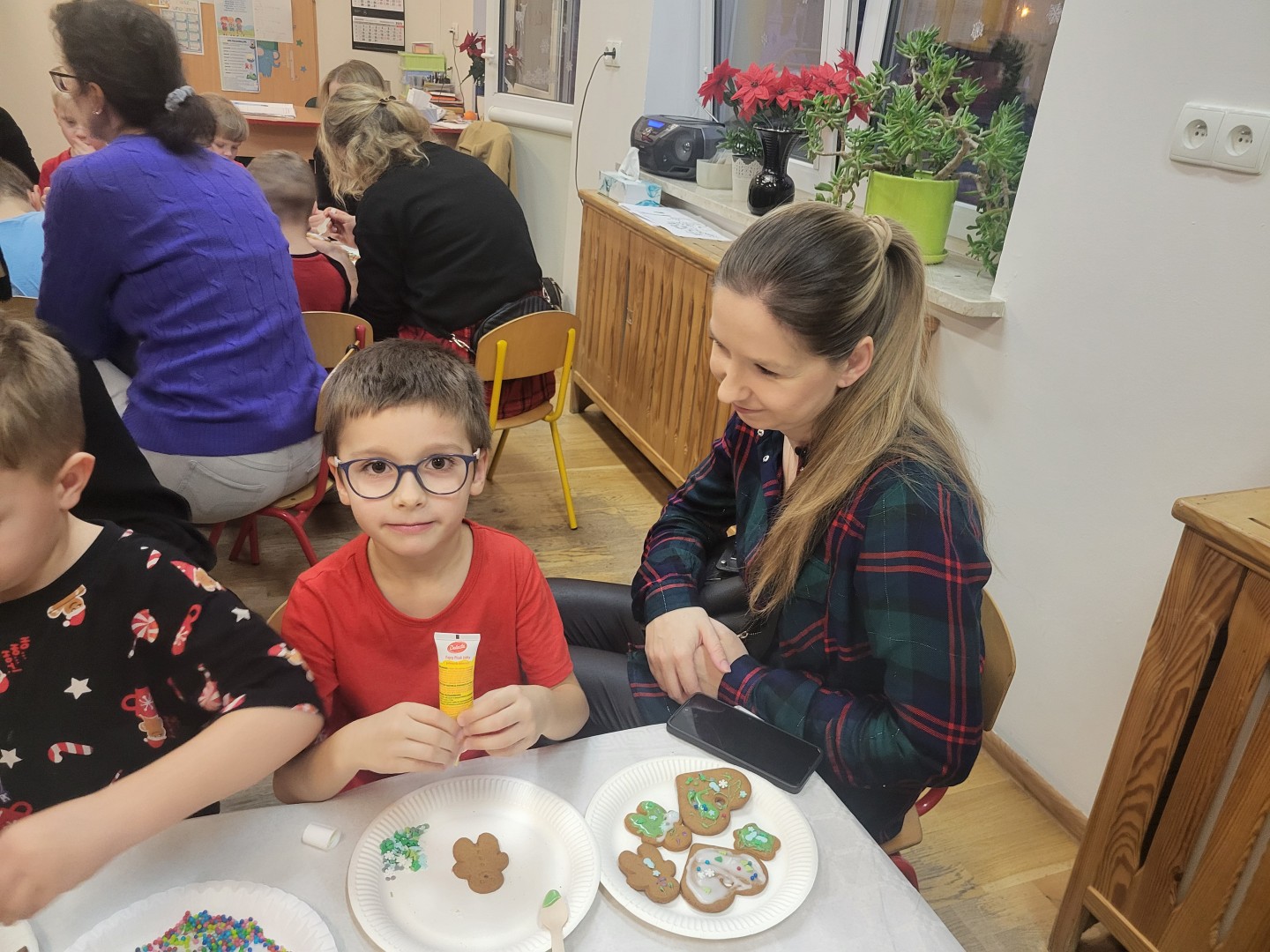 Głównym punktem wydarzenia było ozdabianie pierniczków. Dzieci wraz z rodzicami dekorowali je kolorowym lukrem, pisakami cukrowymi oraz różnorodnymi słodkimi ozdobami. Uczestnicy jednocześnie mogli próbować aromatycznych ciasteczek, które wprowadzały wszystkich w jeszcze bardziej świąteczny nastrój.