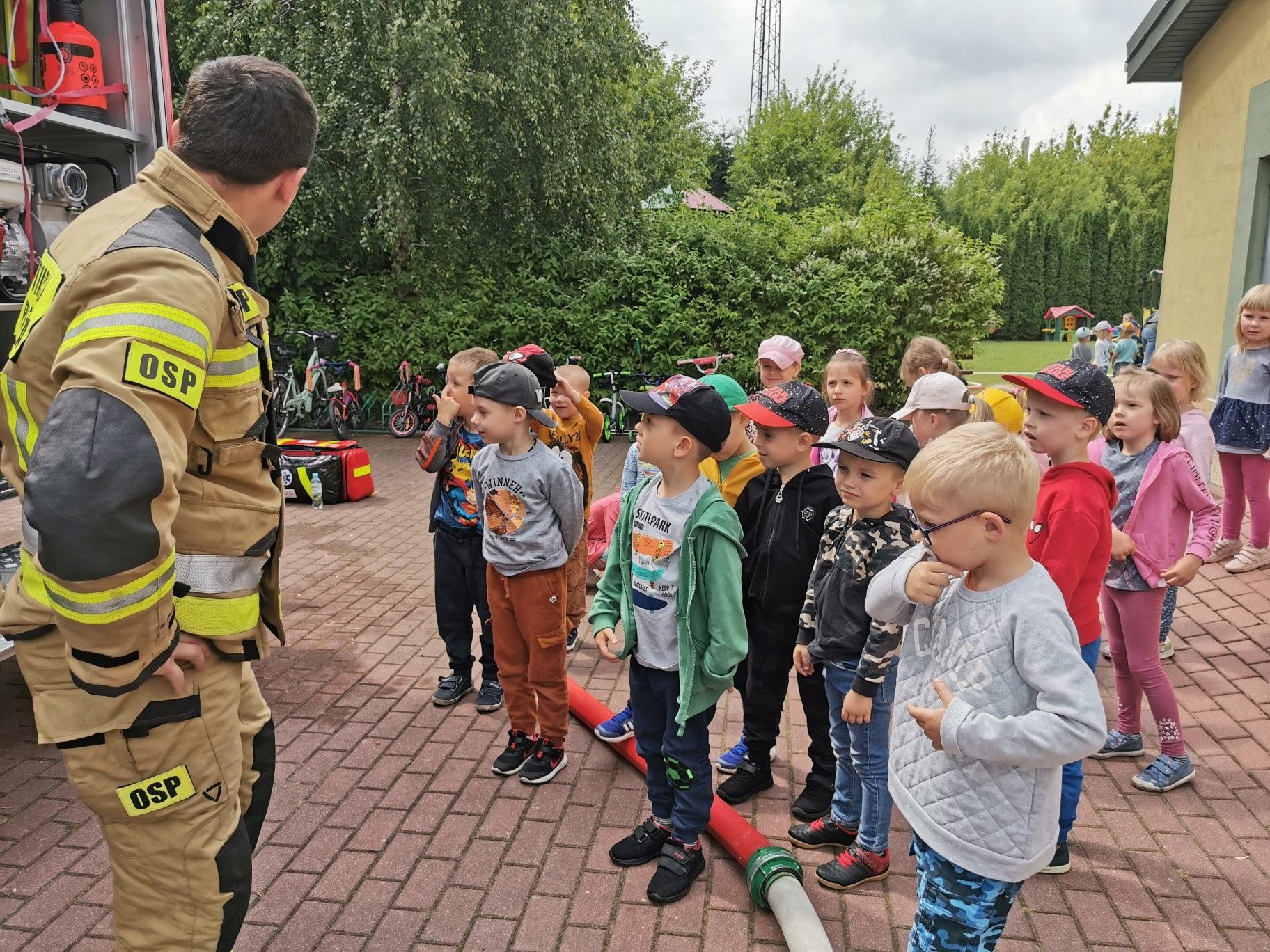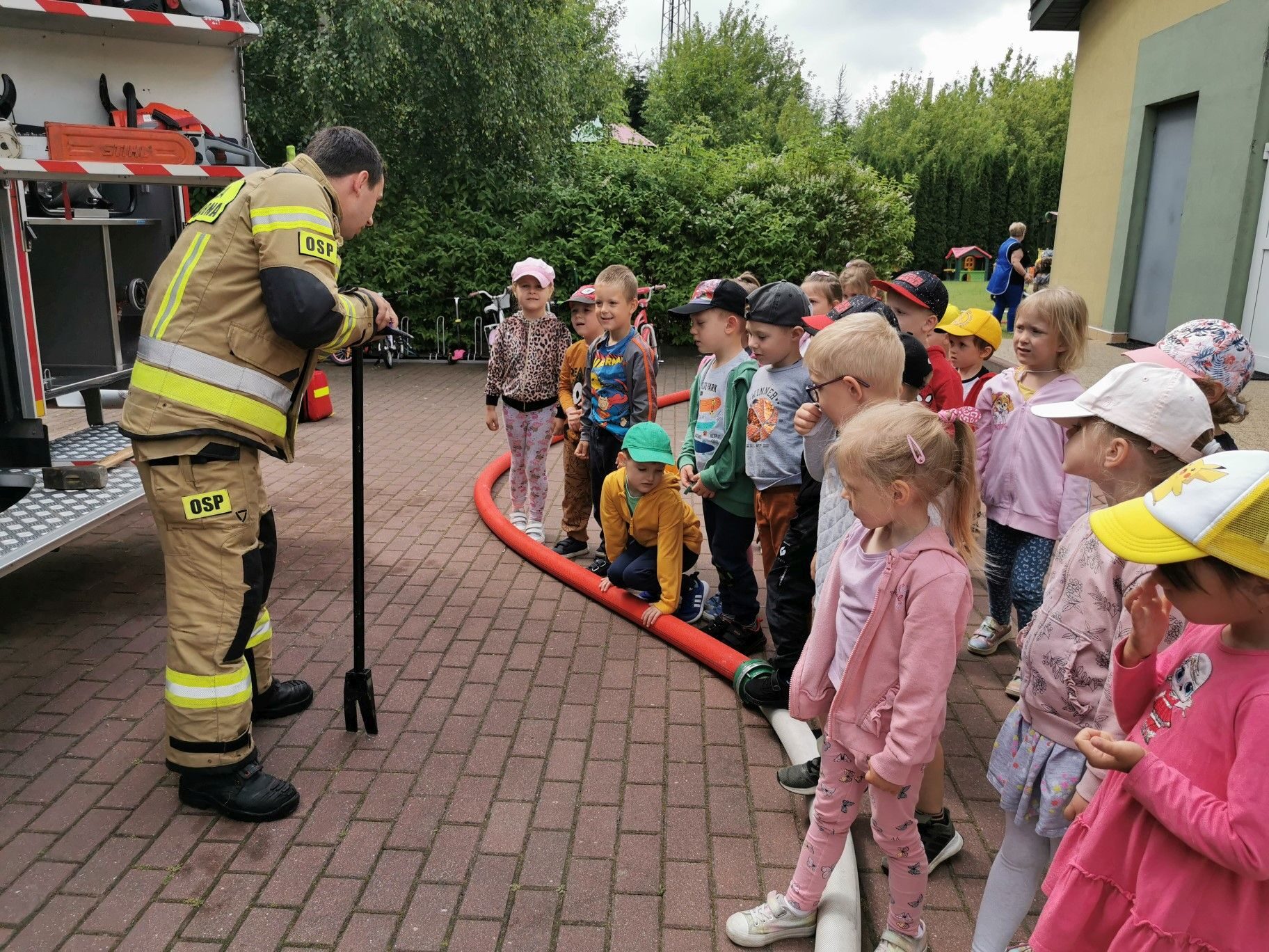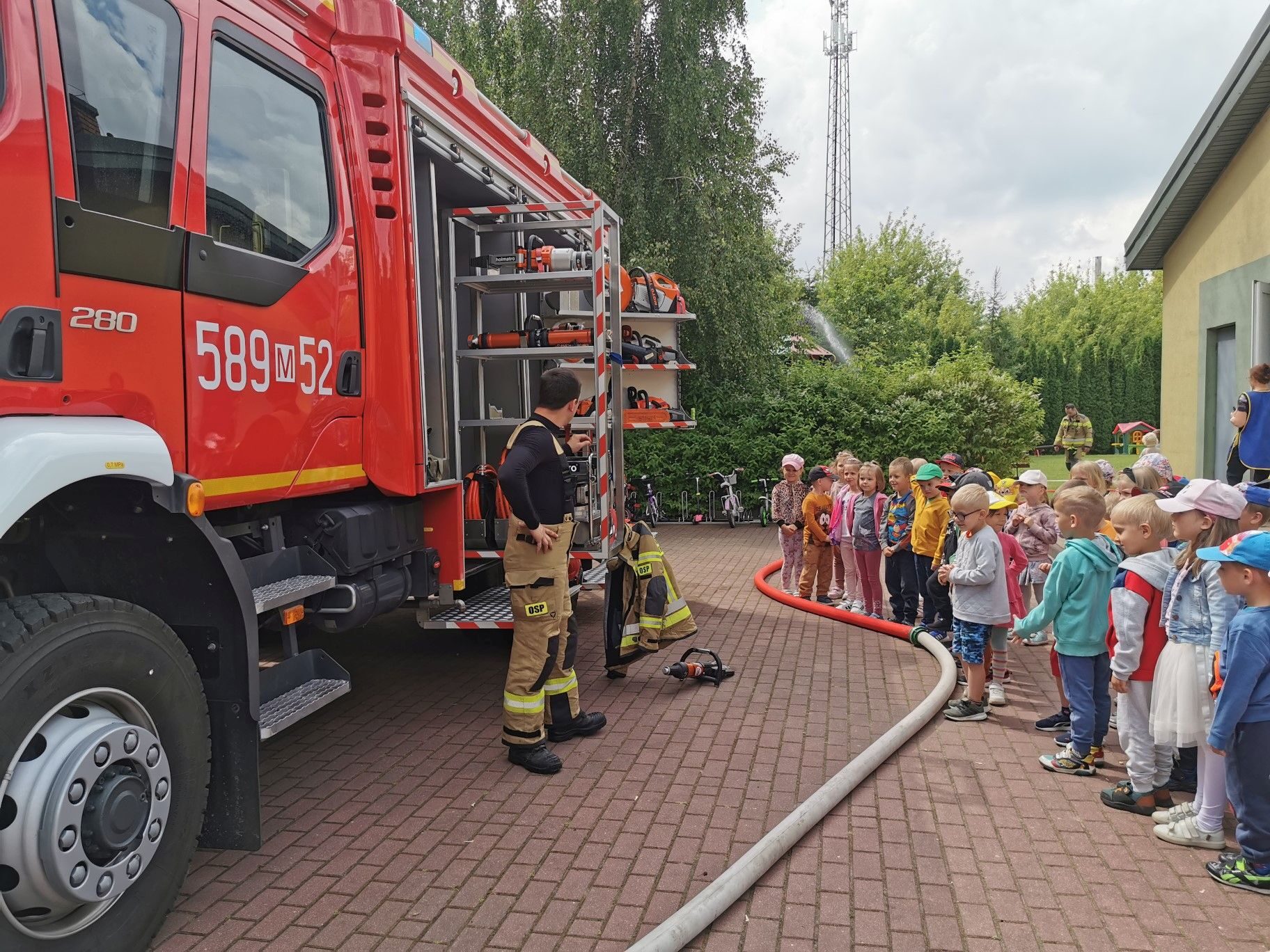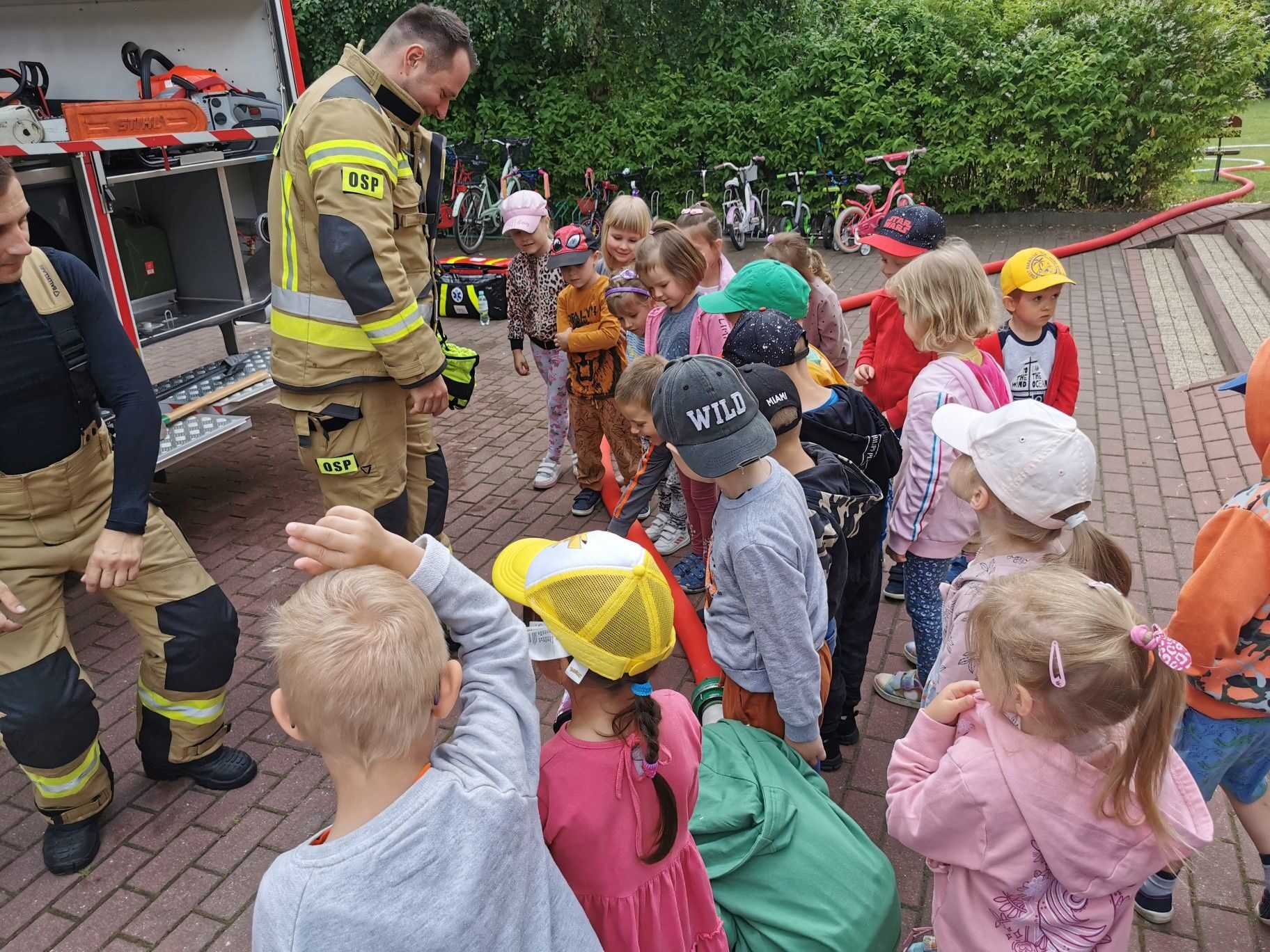 Dnia 15.06.2023r. nasze przedszkole odwiedzili niezwykli bohaterowie – załoga Strażaków. Mogliśmy przekonać się, jak ważna i potrzebna jest ich praca. Oglądaliśmy sprzęt, który wykorzystują w swoich zadań. Na zakończenie spotkania puszczaliśmy wodę z prawdziwego węża strażackiego. Serdecznie dziękujemy Rodzicom Hani z grupy II “Kotki” zorganizowanie spotkania i przybycie do naszej placówki.