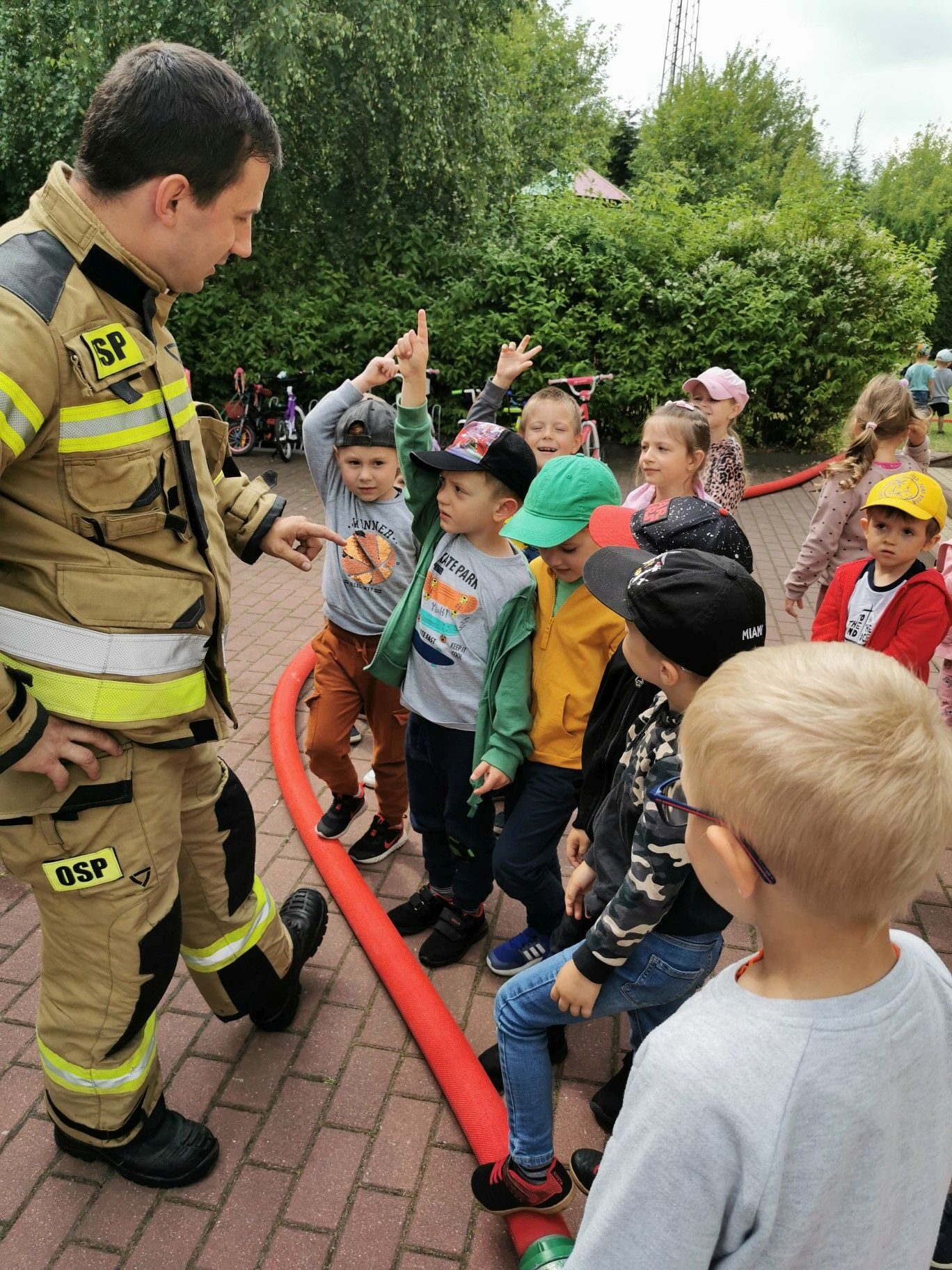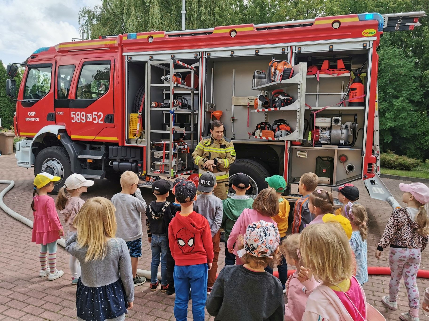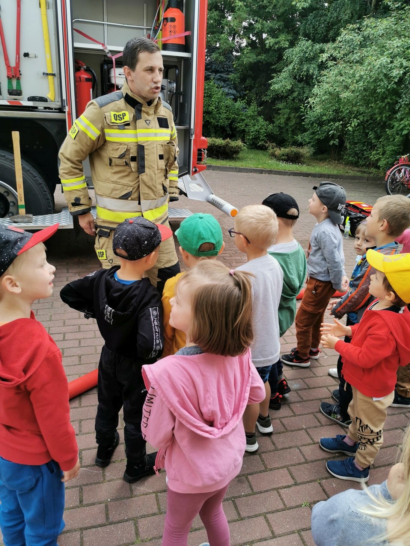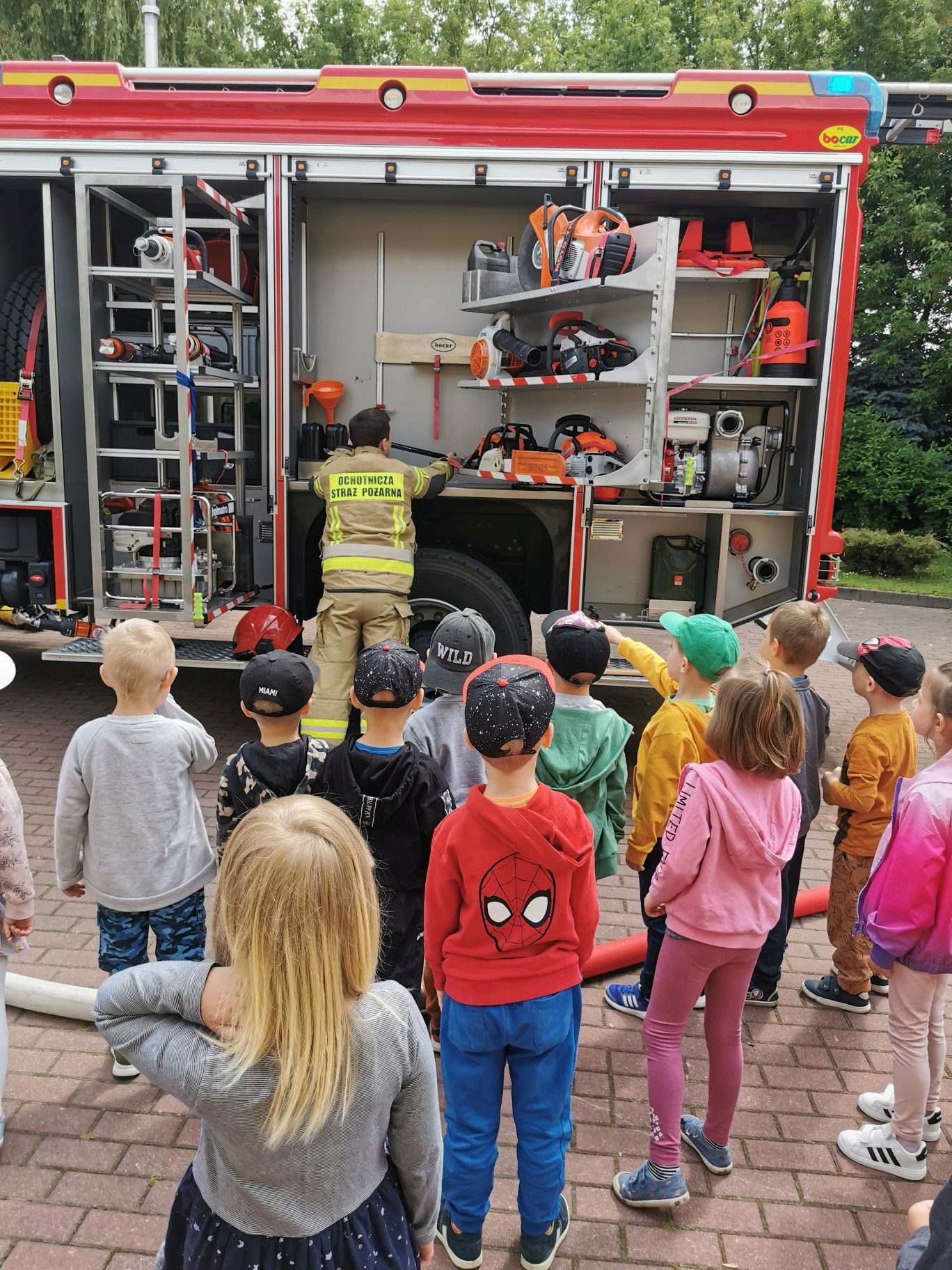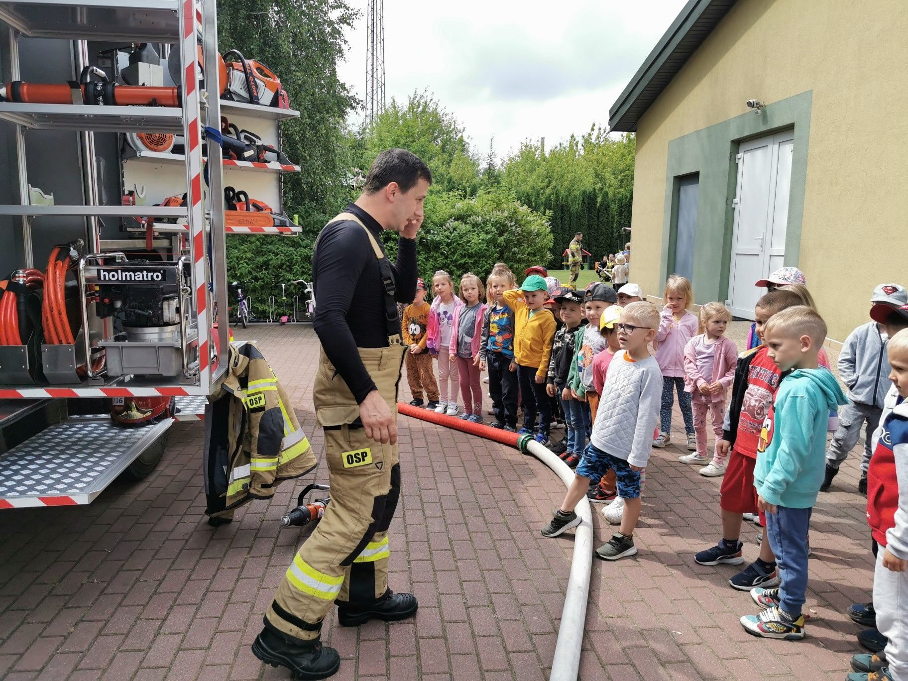 Dnia 15.06.2023r. nasze przedszkole odwiedzili niezwykli bohaterowie – załoga Strażaków. Mogliśmy przekonać się, jak ważna i potrzebna jest ich praca. Oglądaliśmy sprzęt, który wykorzystują w swoich zadań. Na zakończenie spotkania puszczaliśmy wodę z prawdziwego węża strażackiego. Serdecznie dziękujemy Rodzicom Hani z grupy II “Kotki” zorganizowanie spotkania i przybycie do naszej placówki.