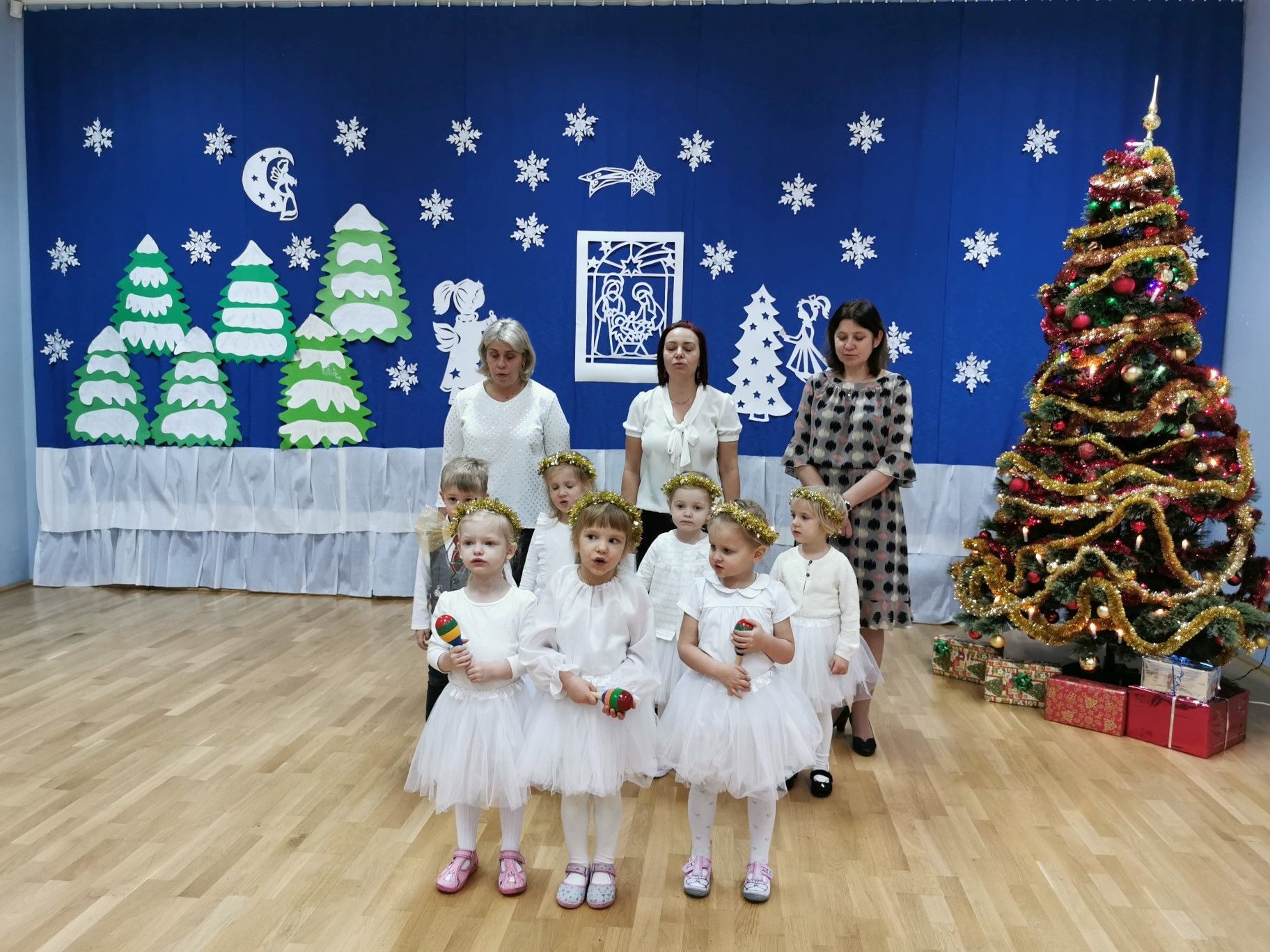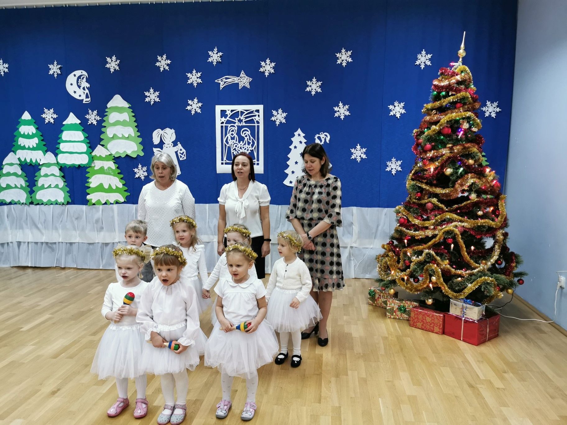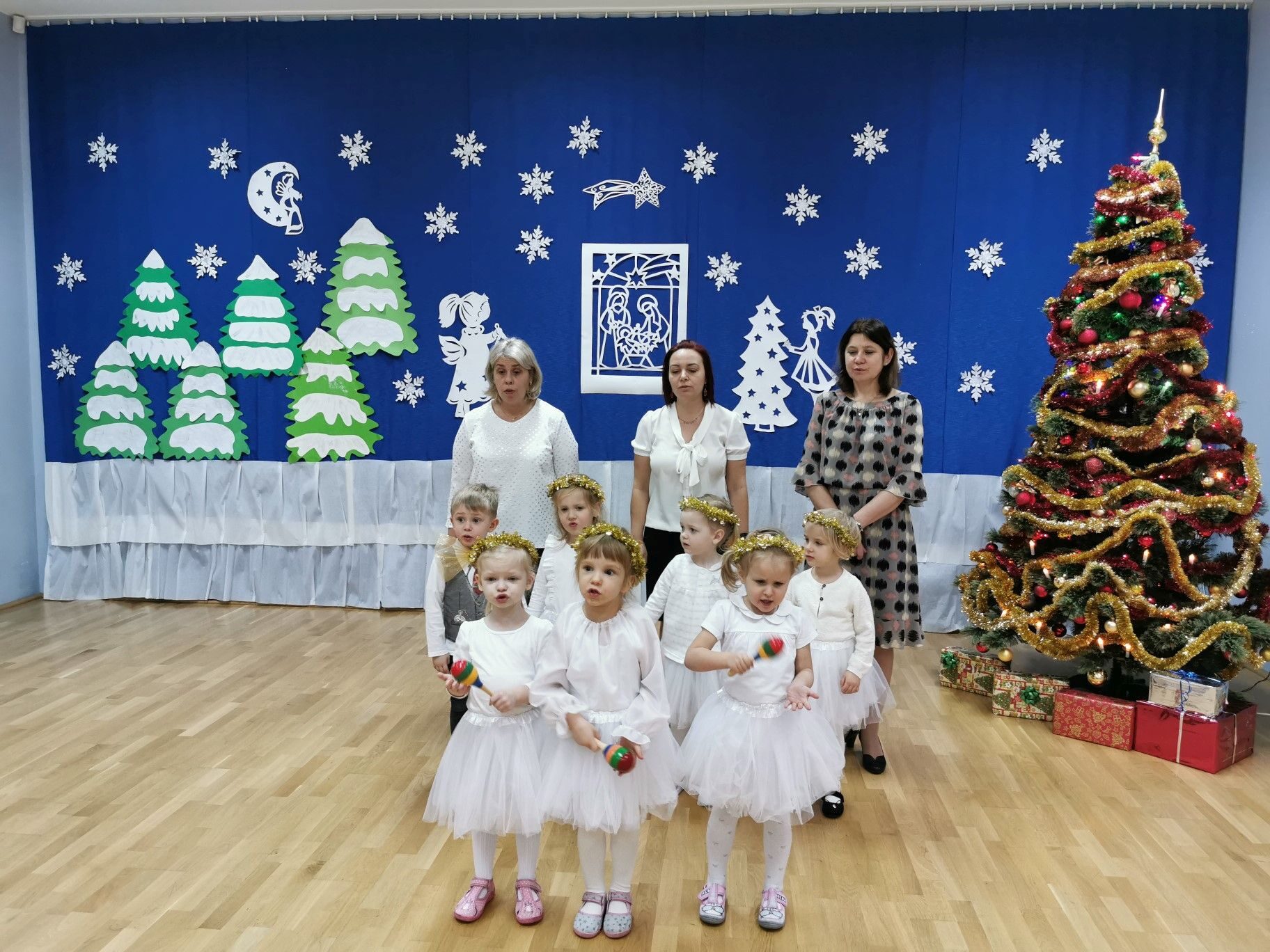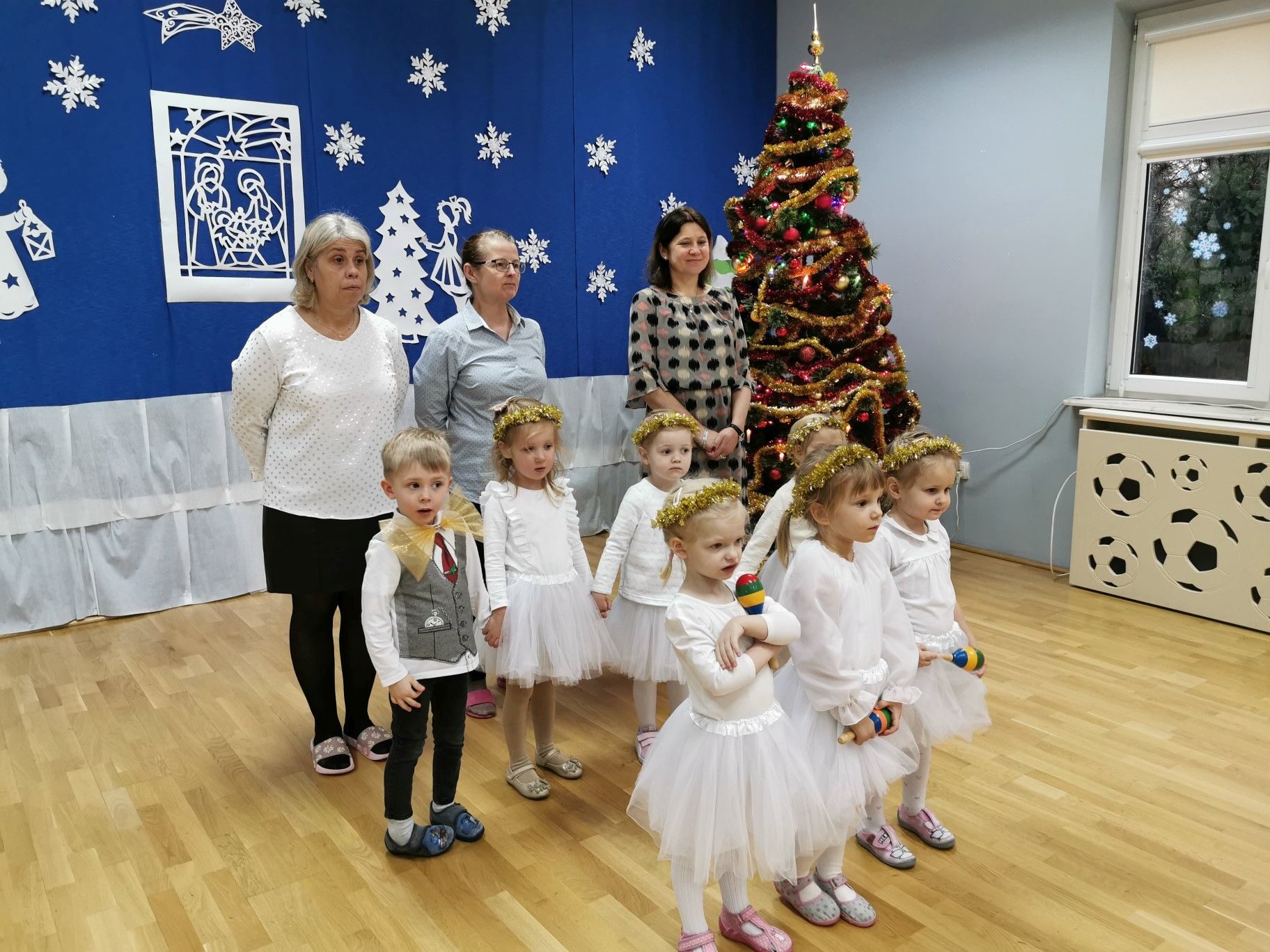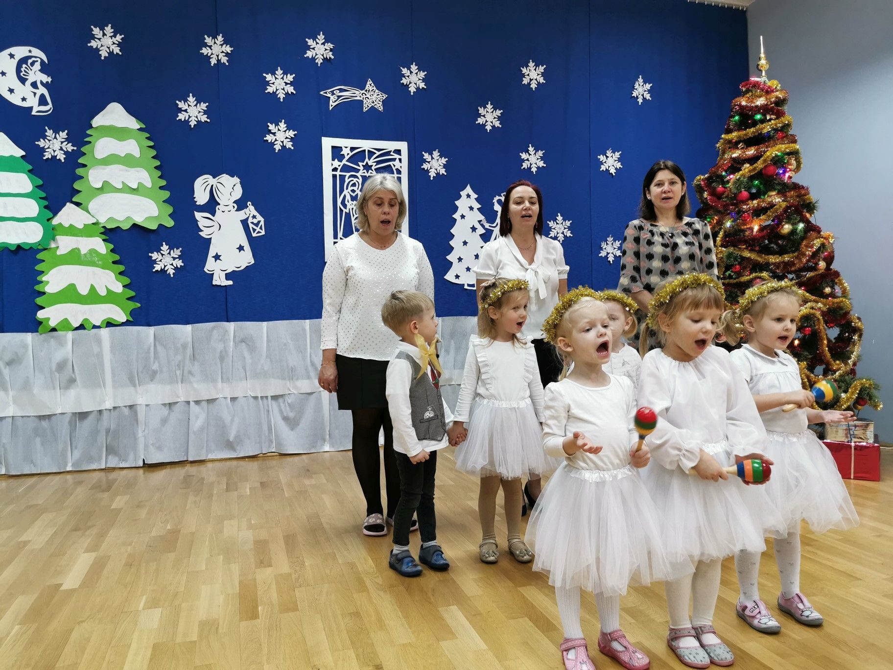 Dnia 16. 12. 2021r. w naszym przedszkolu odbyła się uroczystość związana z obchodzeniem Świąt Bożego Narodzenia. Przedszkolaki w strojach galowych wzięły udział w “Koncercie Kolęd”. Dzieci śpiewały piękne polskie kolędy i pastorałki. Temu wydarzeniu towarzyszyła miła świąteczna atmosfera. Po części artystycznej w swoich salach wysłuchały fragmentu Pisma Świętego o Narodzeniu Pana Jezusa. Ponadto rozdano dzieciom opłatek, złożono im świąteczne życzenia i zaproszono na Wigilijny poczęstunek przygotowany przez rodziców, za który serdecznie rodzicom dziękujemy.