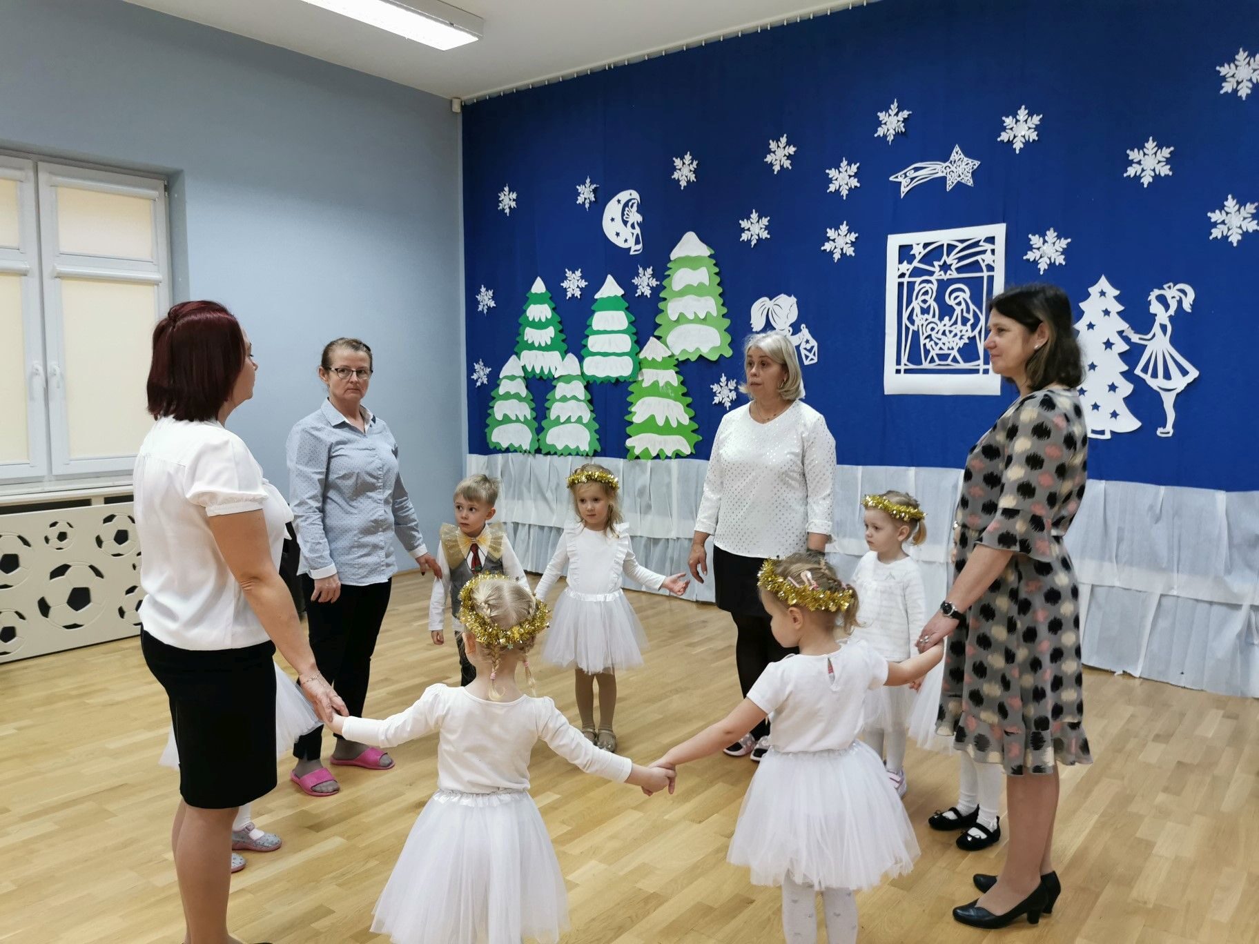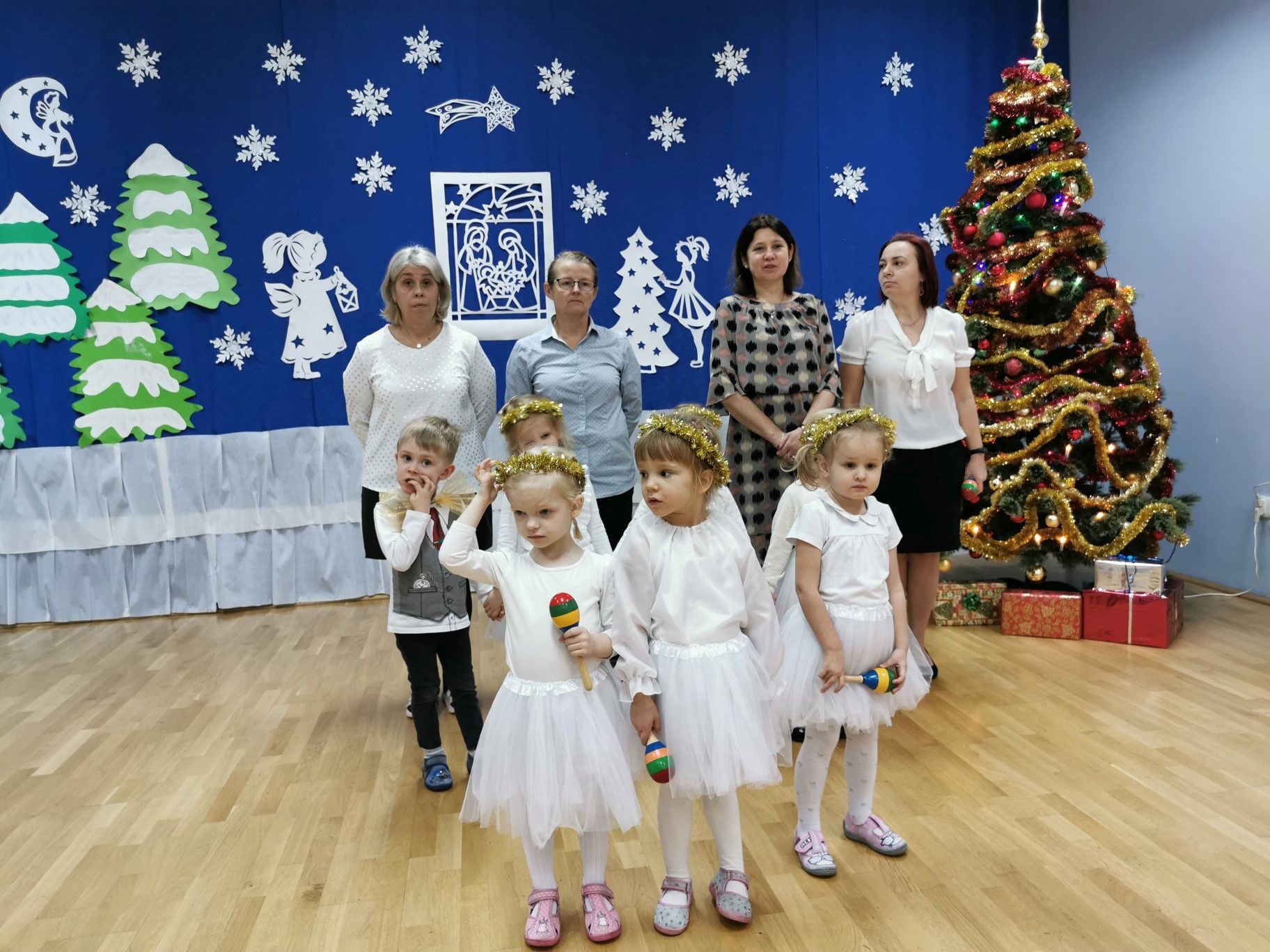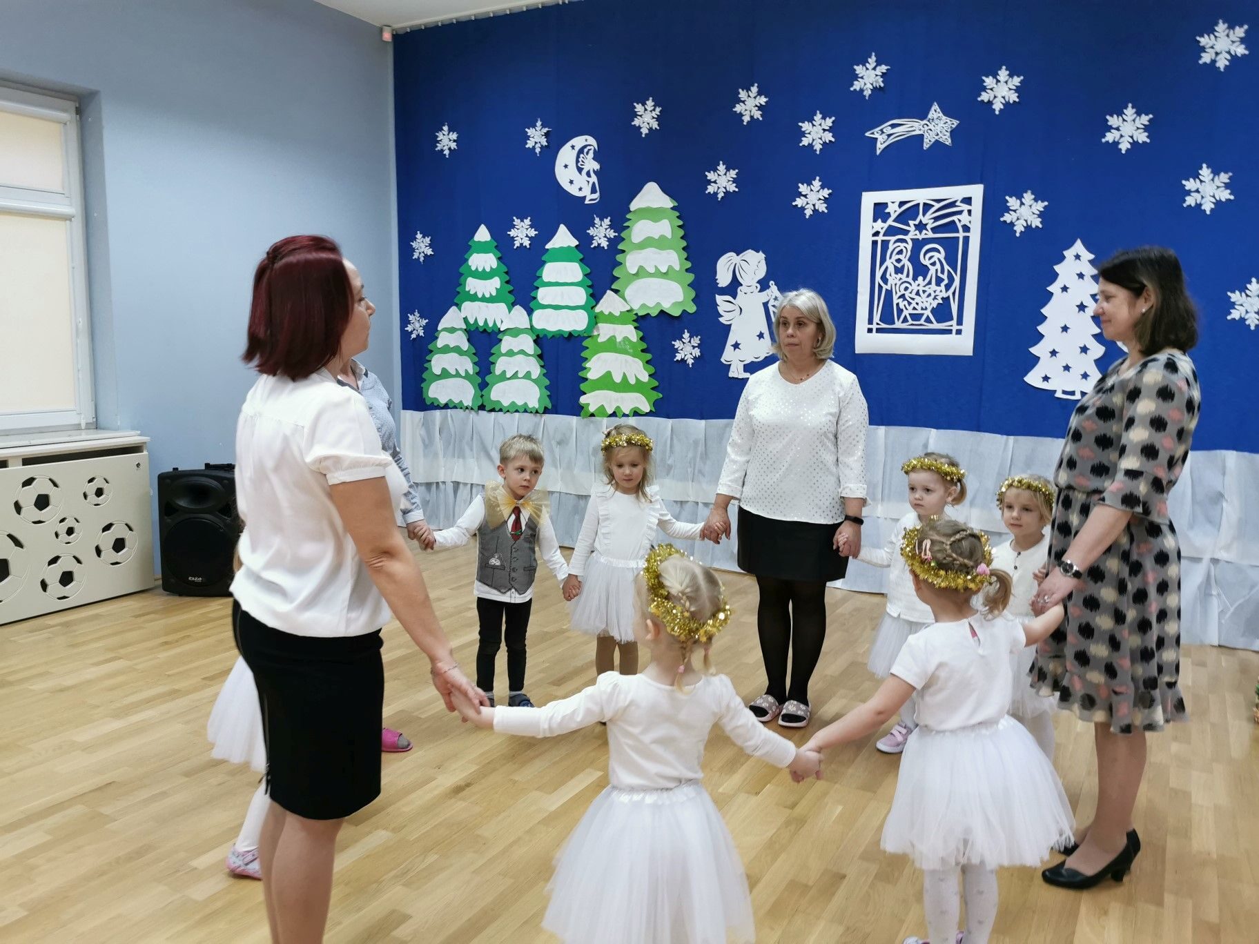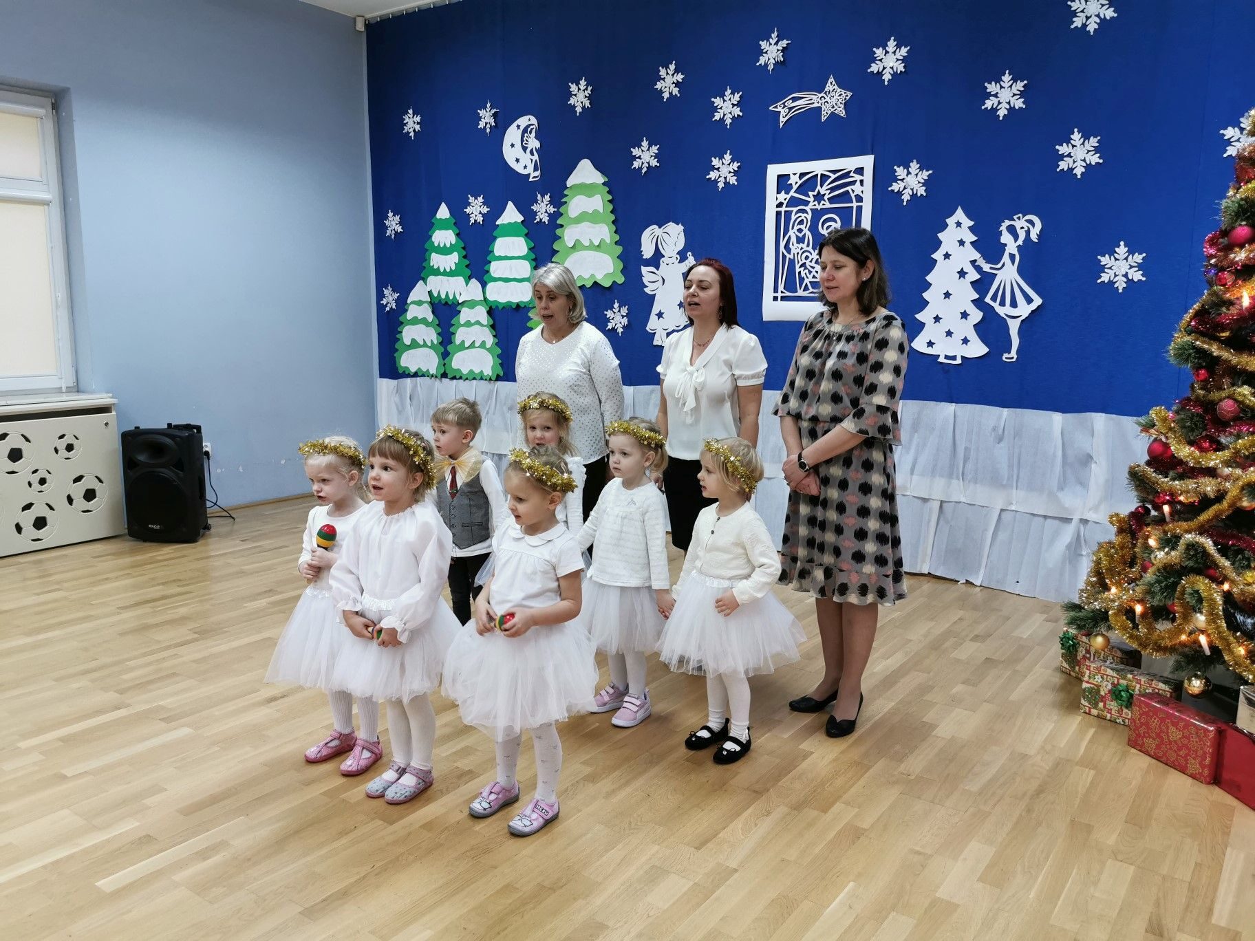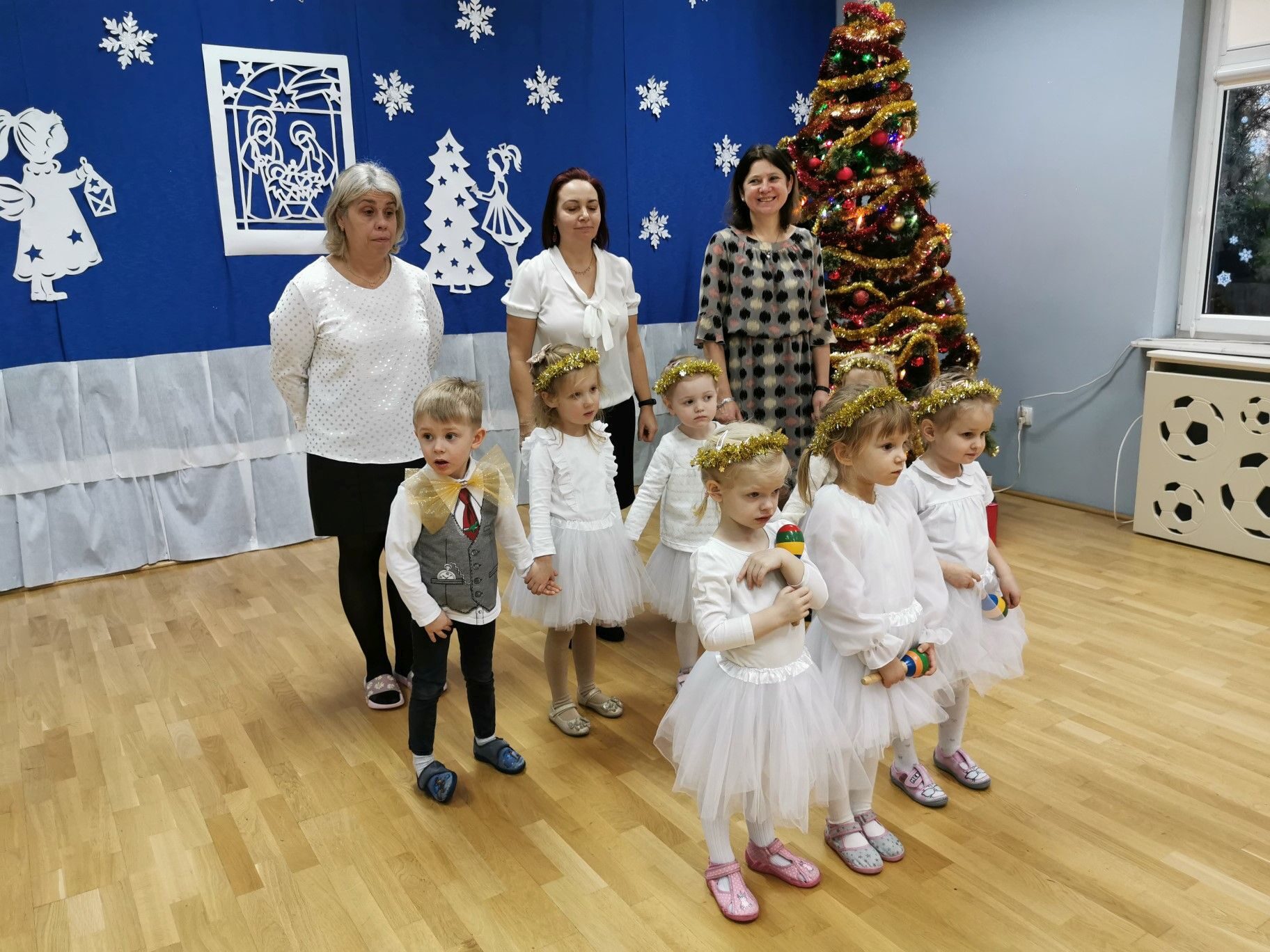 Dnia 16. 12. 2021r. w naszym przedszkolu odbyła się uroczystość związana z obchodzeniem Świąt Bożego Narodzenia. Przedszkolaki w strojach galowych wzięły udział w “Koncercie Kolęd”. Dzieci śpiewały piękne polskie kolędy i pastorałki. Temu wydarzeniu towarzyszyła miła świąteczna atmosfera. Po części artystycznej w swoich salach wysłuchały fragmentu Pisma Świętego o Narodzeniu Pana Jezusa. Ponadto rozdano dzieciom opłatek, złożono im świąteczne życzenia i zaproszono na Wigilijny poczęstunek przygotowany przez rodziców, za który serdecznie rodzicom dziękujemy.