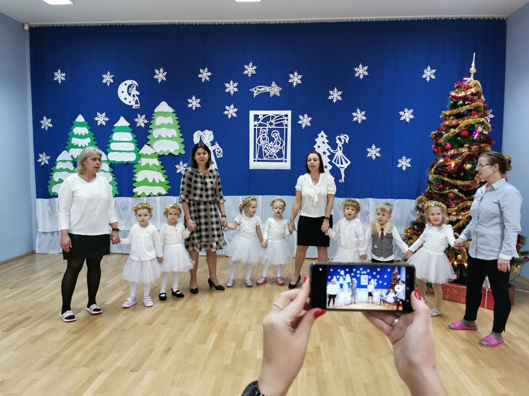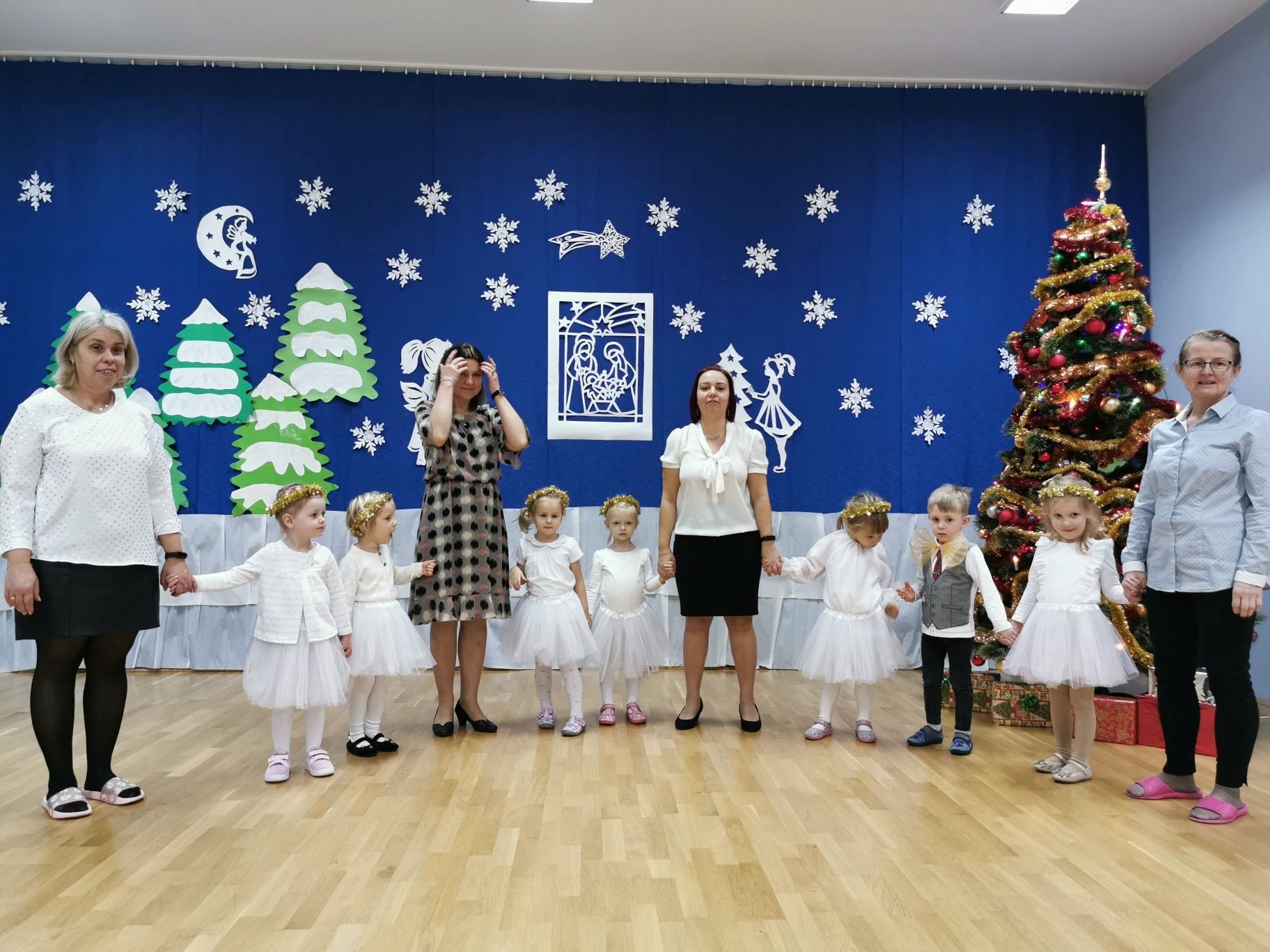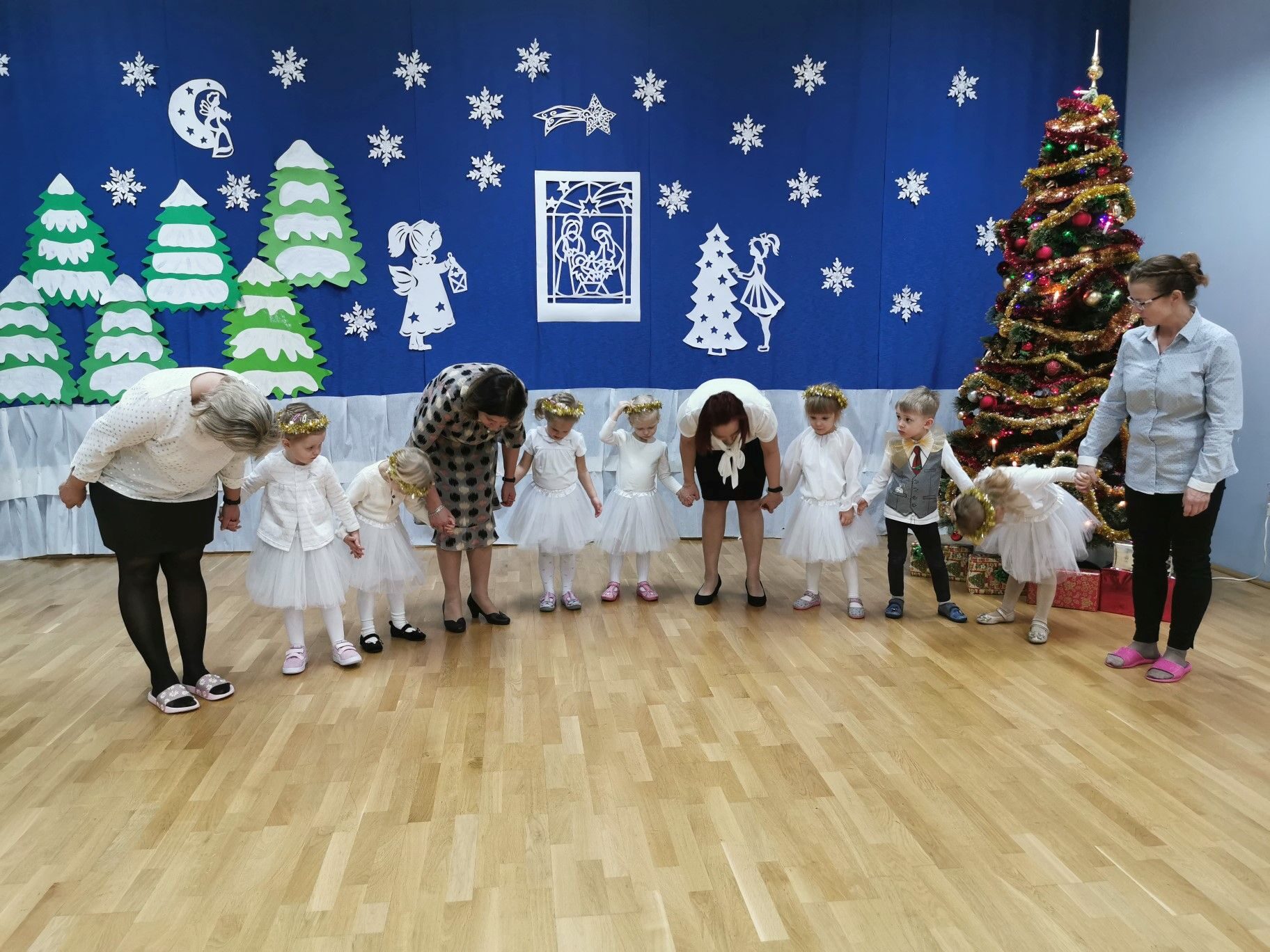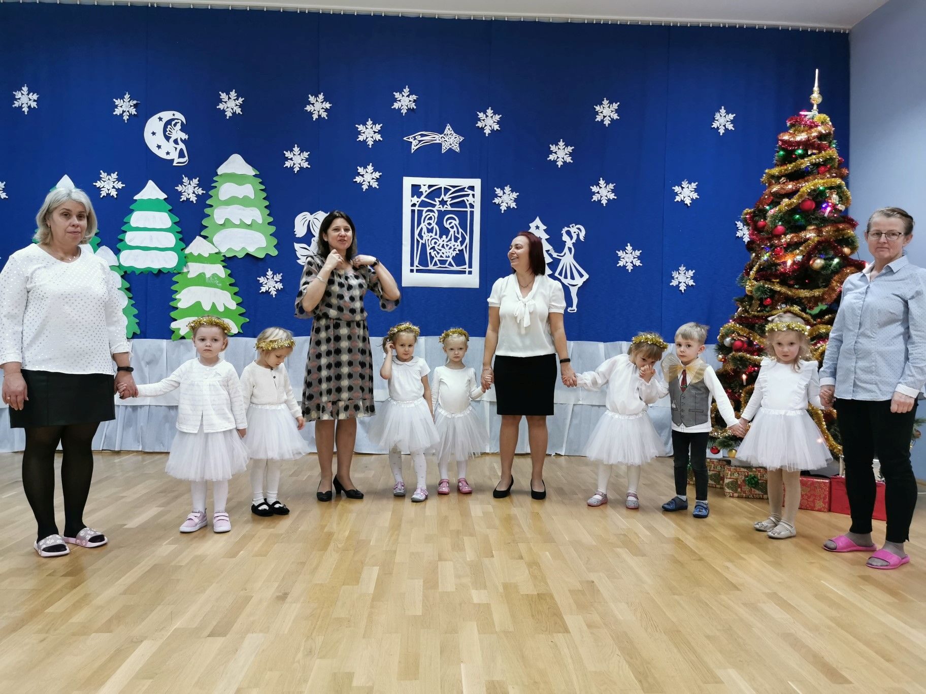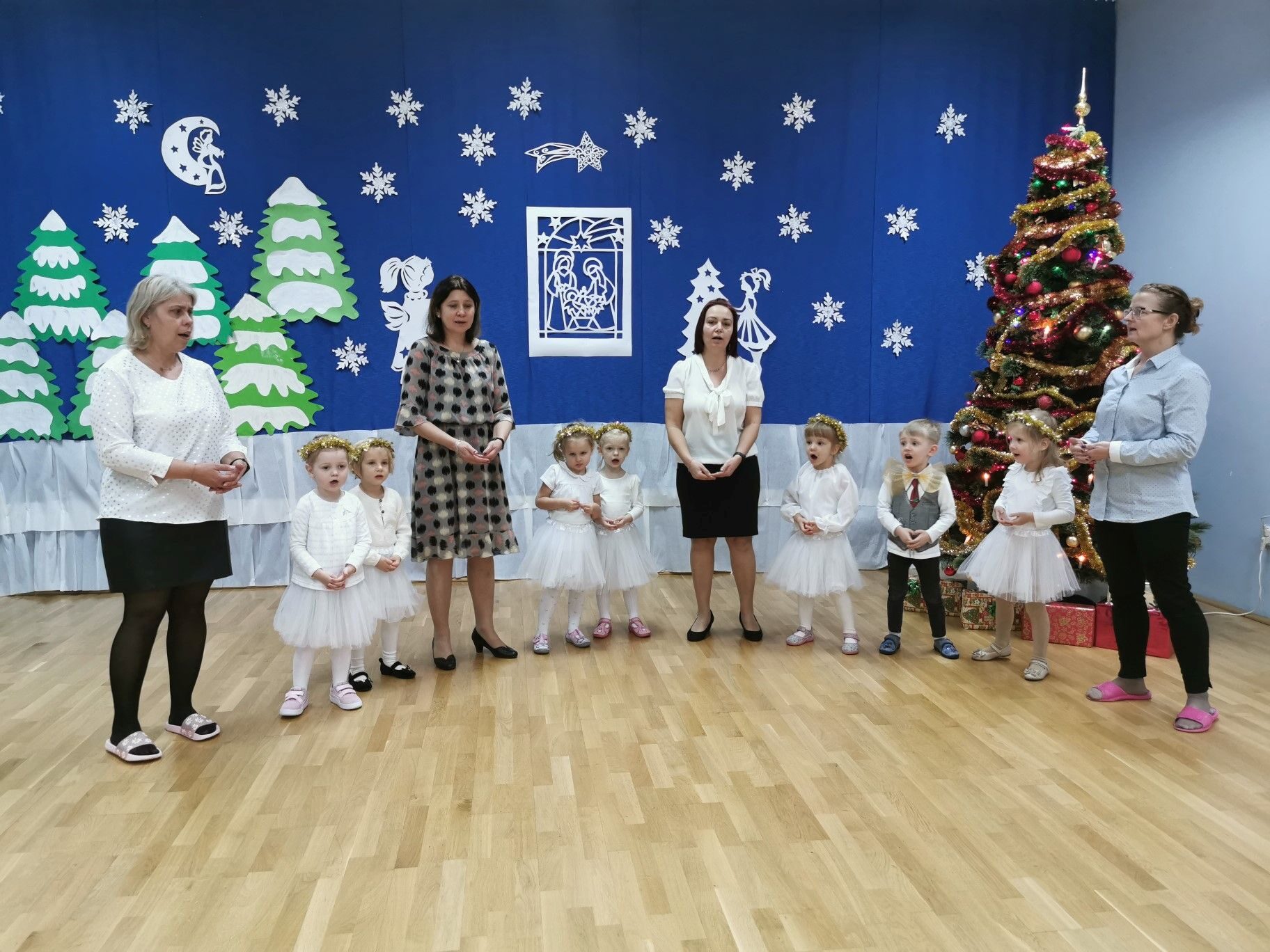 Dnia 16. 12. 2021r. w naszym przedszkolu odbyła się uroczystość związana z obchodzeniem Świąt Bożego Narodzenia. Przedszkolaki w strojach galowych wzięły udział w “Koncercie Kolęd”. Dzieci śpiewały piękne polskie kolędy i pastorałki. Temu wydarzeniu towarzyszyła miła świąteczna atmosfera. Po części artystycznej w swoich salach wysłuchały fragmentu Pisma Świętego o  Narodzeniu Pana Jezusa. Ponadto rozdano dzieciom opłatek, złożono im świąteczne życzenia i zaproszono na Wigilijny poczęstunek przygotowany przez rodziców, za który serdecznie rodzicom dziękujemy.