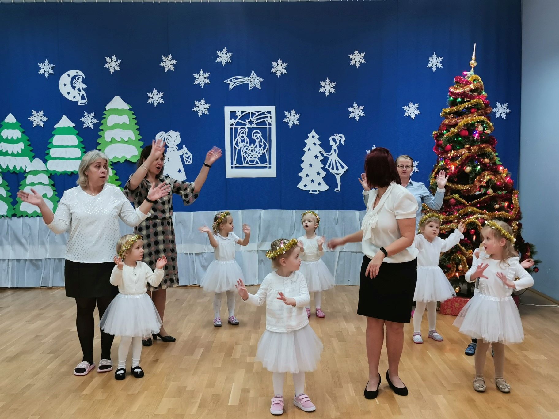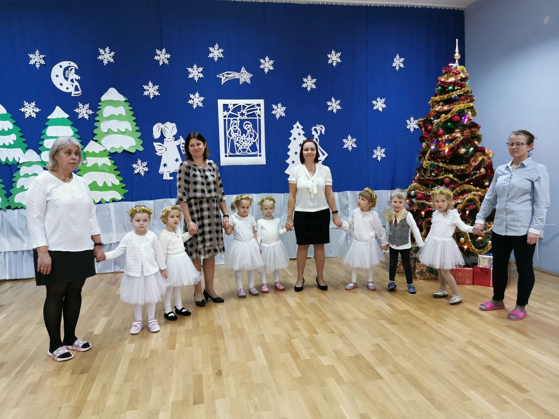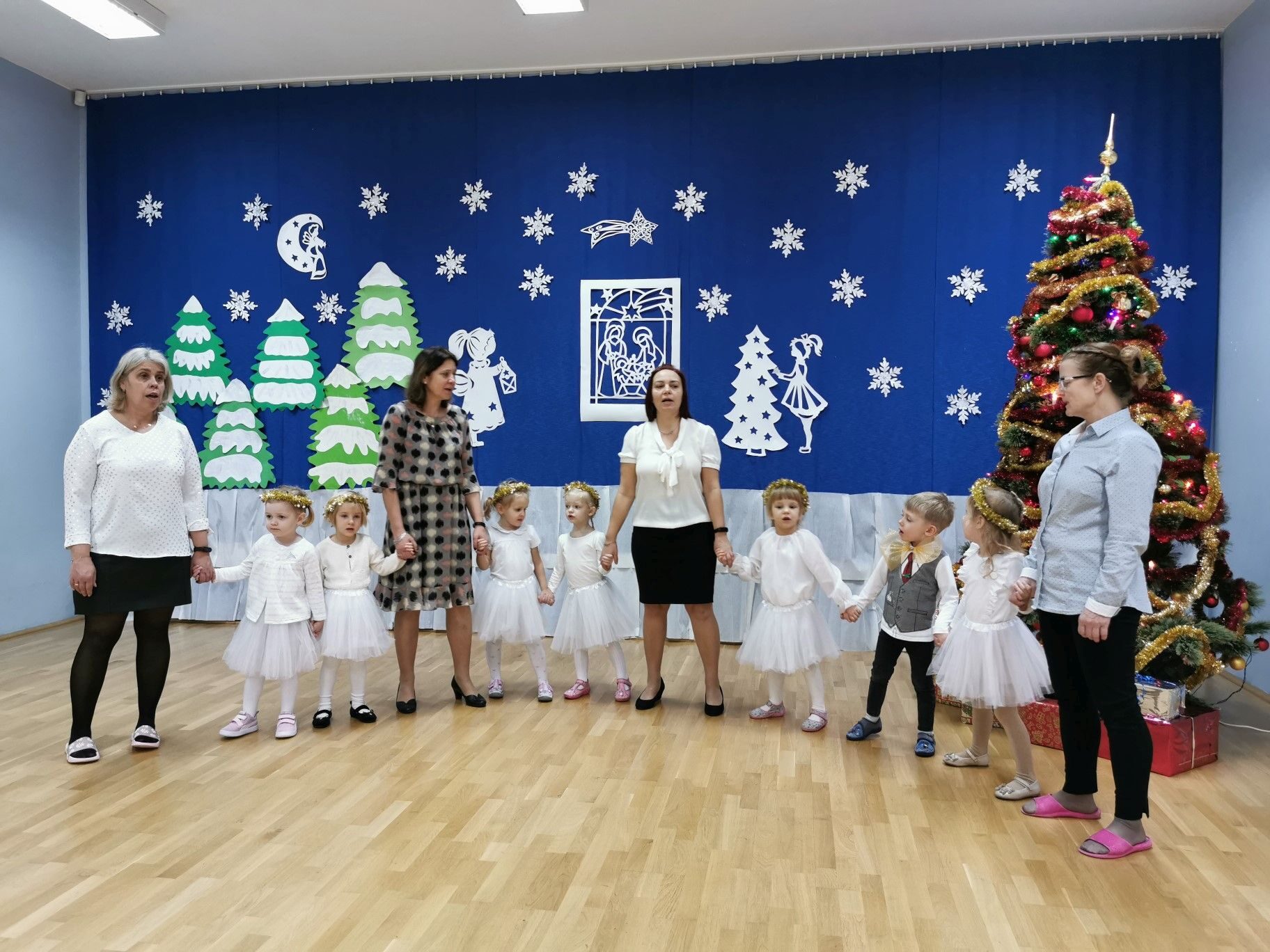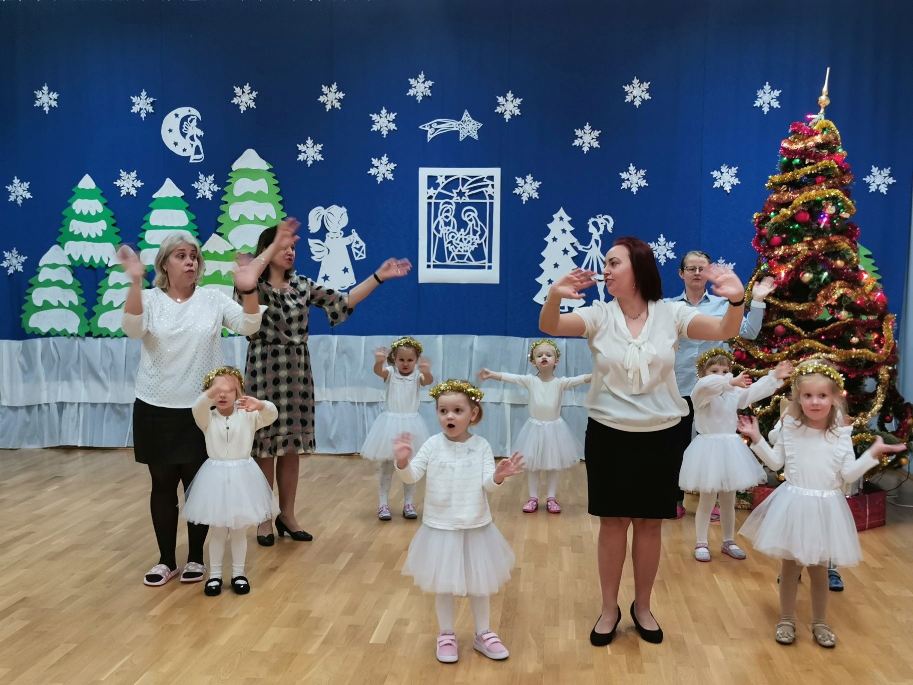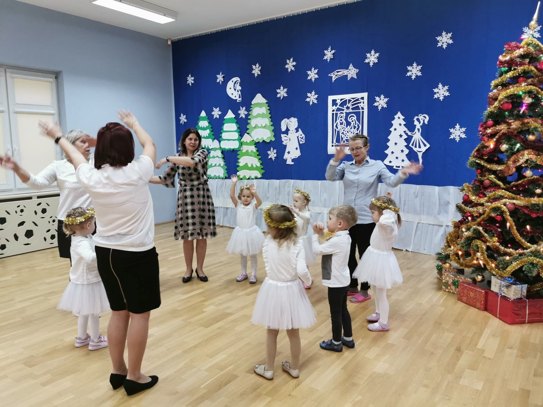Dnia 16. 12. 2021r. w naszym przedszkolu odbyła się uroczystość związana z obchodzeniem Świąt Bożego Narodzenia. Przedszkolaki w strojach galowych wzięły udział w “Koncercie Kolęd”. Dzieci śpiewały piękne polskie kolędy i pastorałki. Temu wydarzeniu towarzyszyła miła świąteczna atmosfera. Po części artystycznej w swoich salach wysłuchały fragmentu Pisma Świętego o  Narodzeniu Pana Jezusa. Ponadto rozdano dzieciom opłatek, złożono im świąteczne życzenia i zaproszono na Wigilijny poczęstunek przygotowany przez rodziców, za który serdecznie rodzicom dziękujemy.