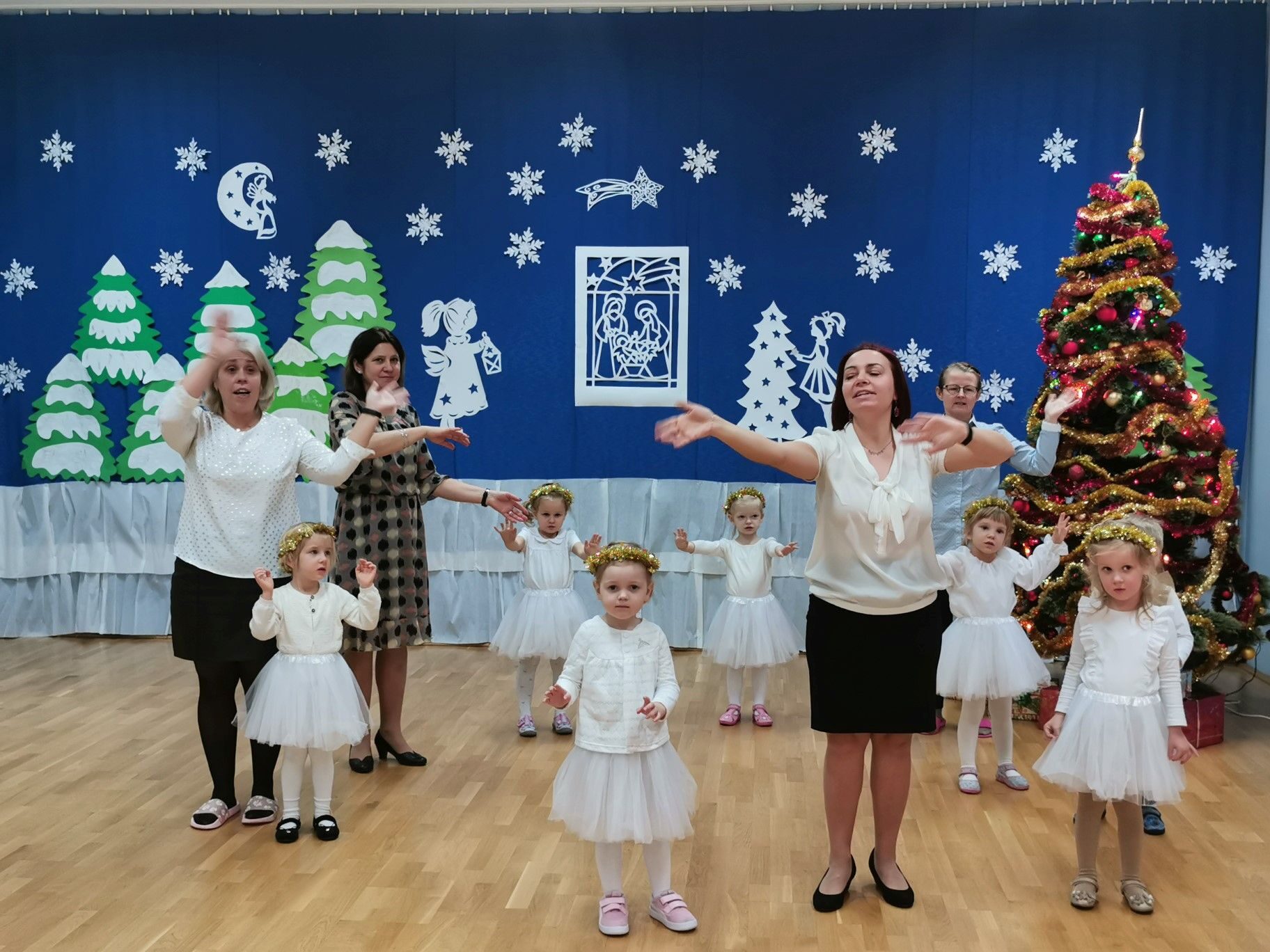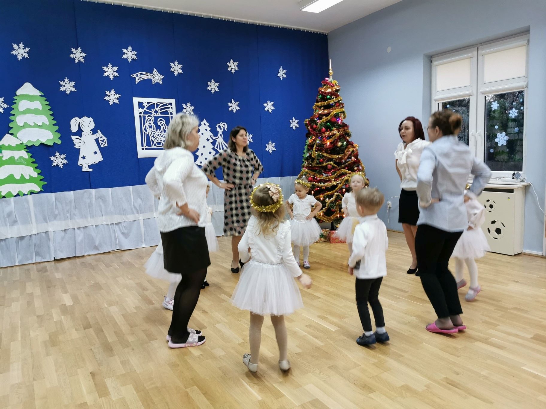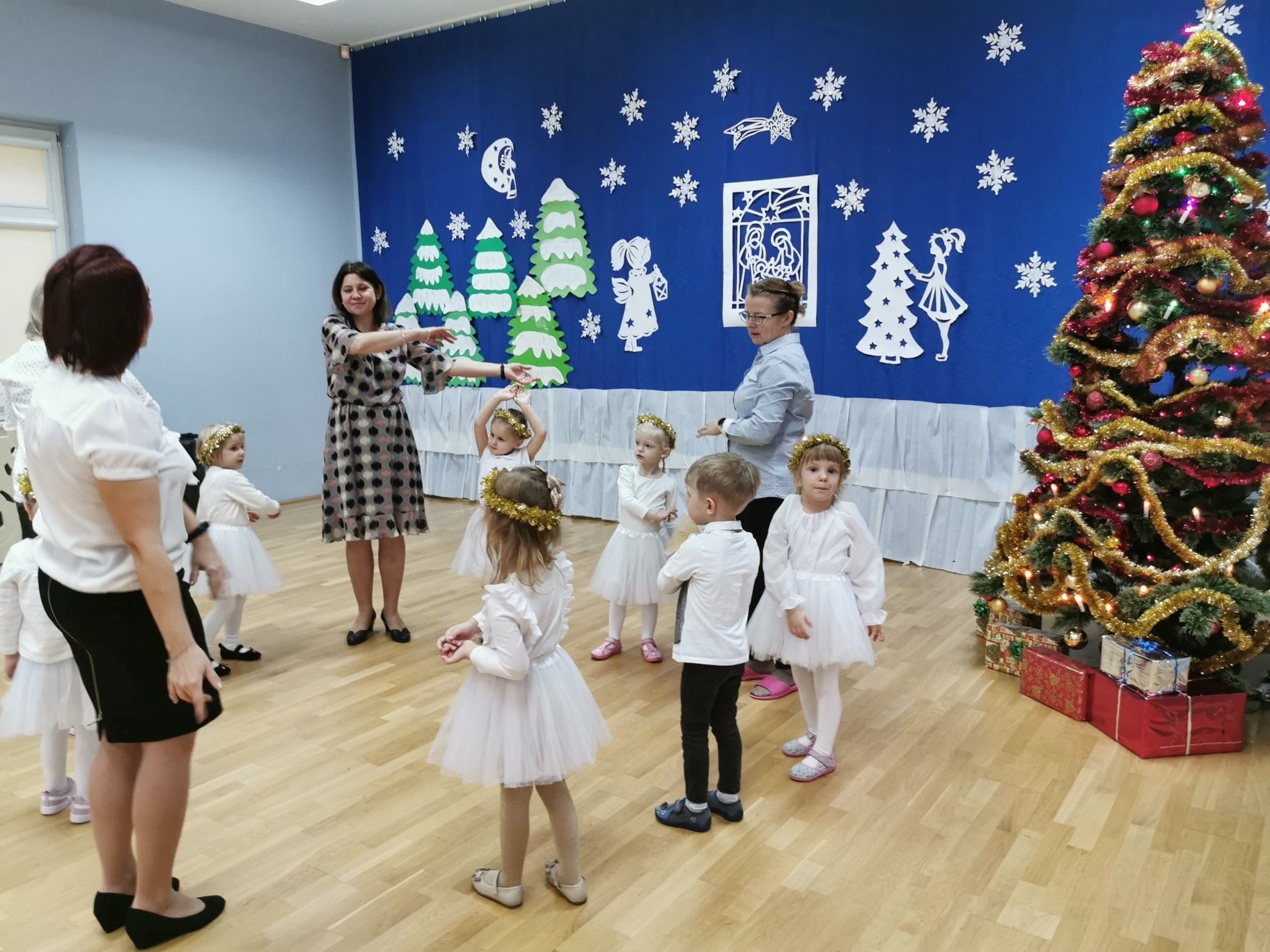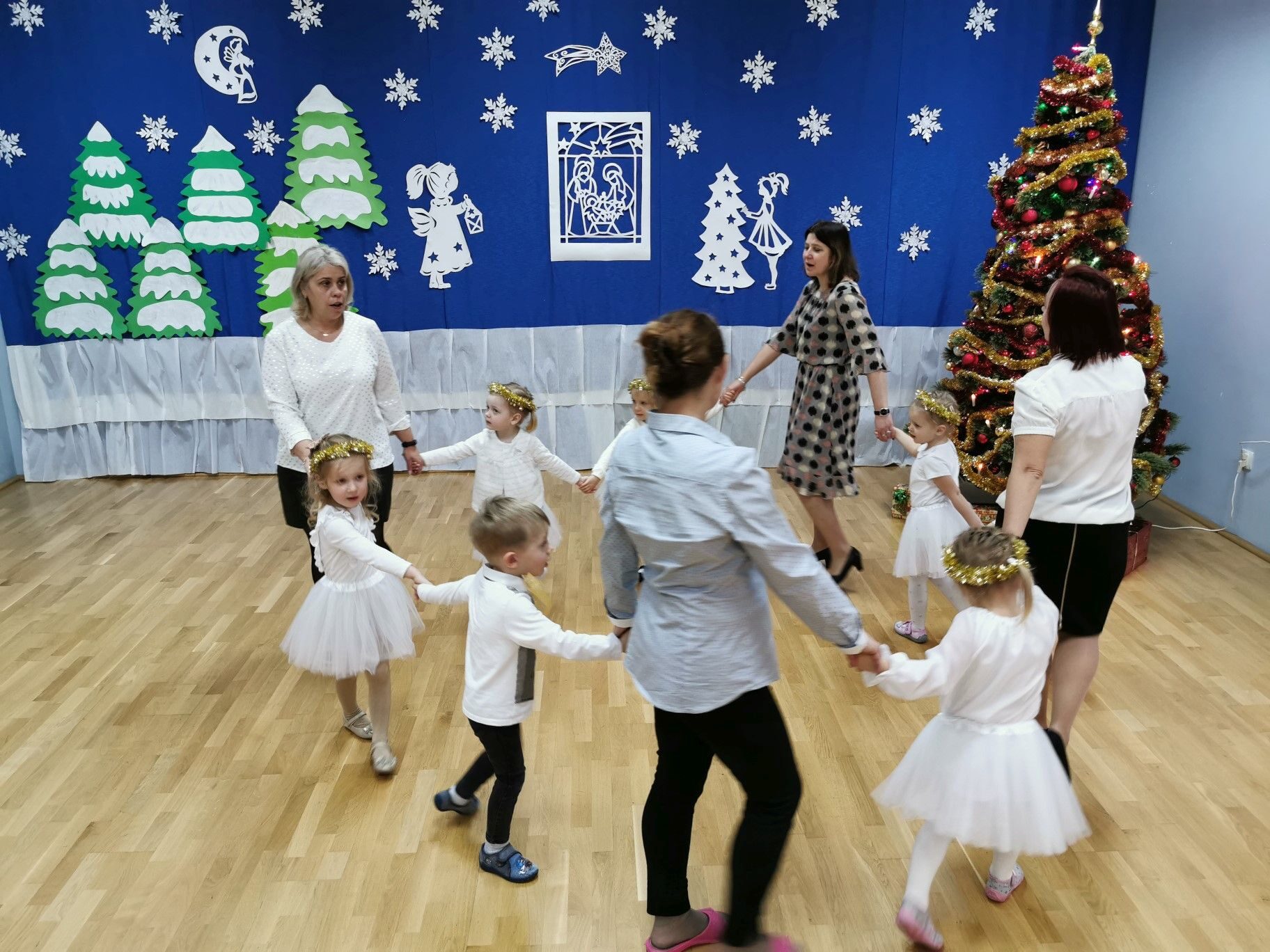 Dnia 16. 12. 2021r. w naszym przedszkolu odbyła się uroczystość związana z obchodzeniem Świąt Bożego Narodzenia. Przedszkolaki w strojach galowych wzięły udział w “Koncercie Kolęd”. Dzieci śpiewały piękne polskie kolędy i pastorałki. Temu wydarzeniu towarzyszyła miła świąteczna atmosfera. Po części artystycznej w swoich salach wysłuchały fragmentu Pisma Świętego o  Narodzeniu Pana Jezusa. Ponadto rozdano dzieciom opłatek, złożono im świąteczne życzenia i zaproszono na Wigilijny poczęstunek przygotowany przez rodziców, za który serdecznie rodzicom dziękujemy.