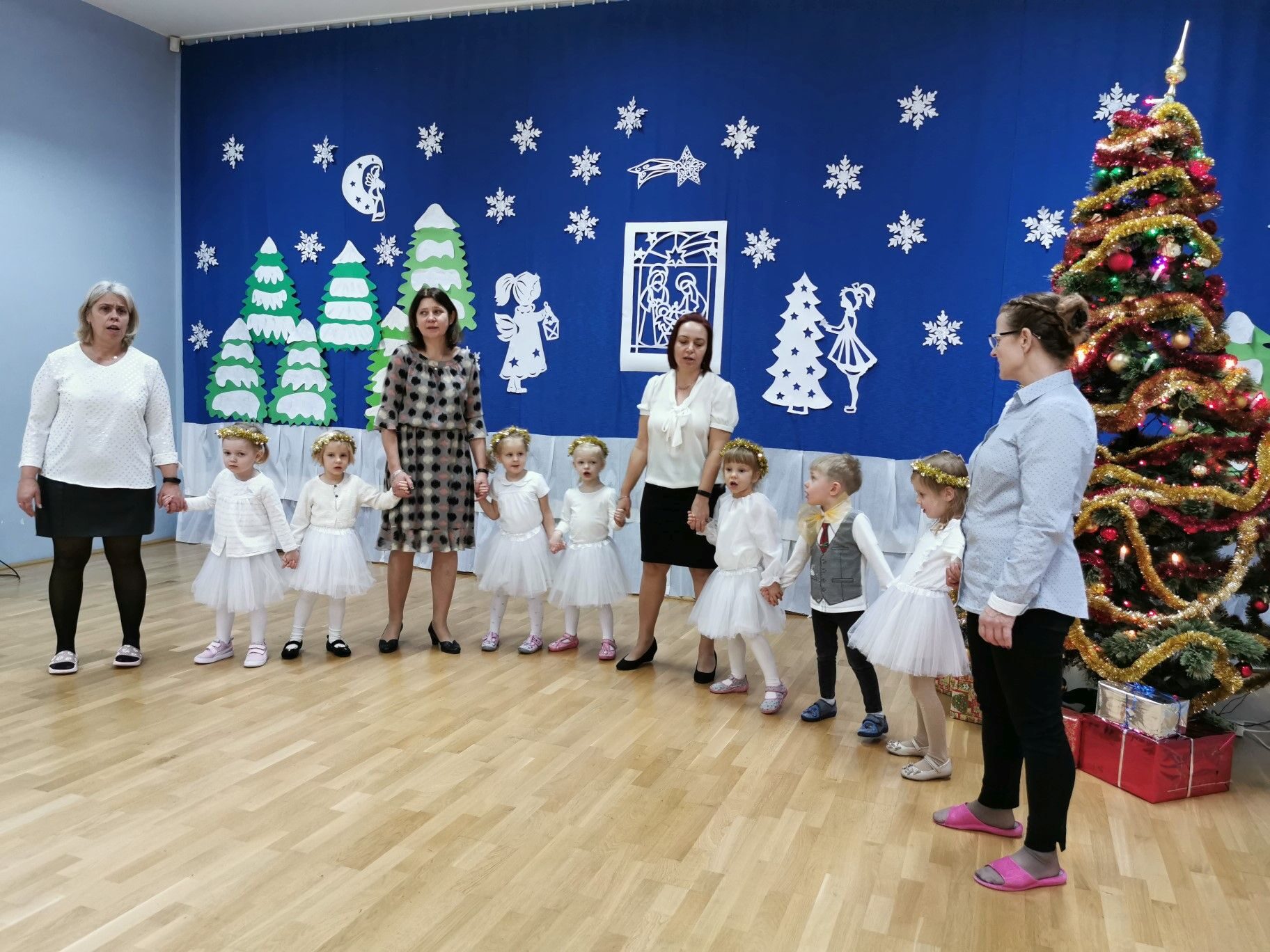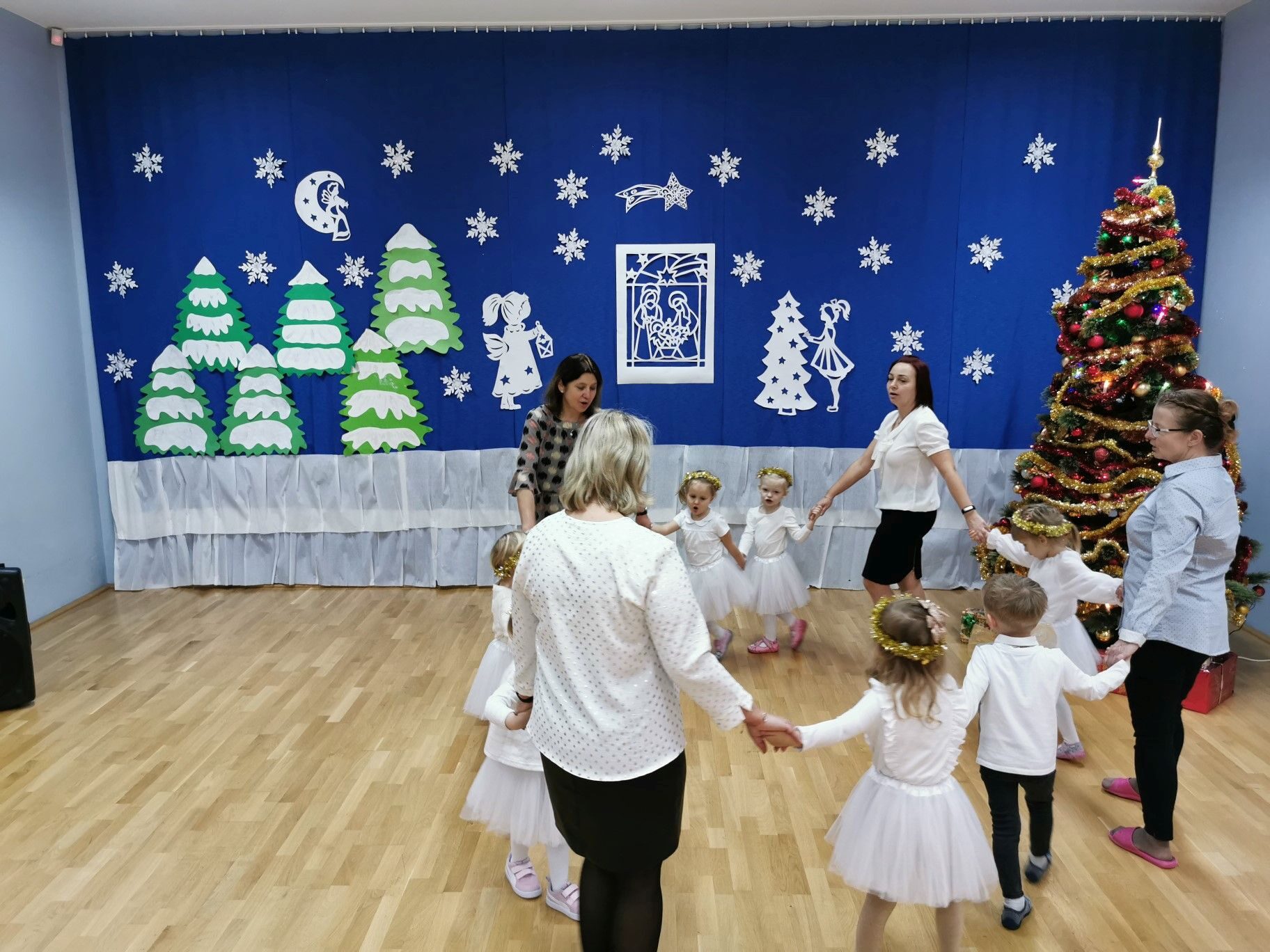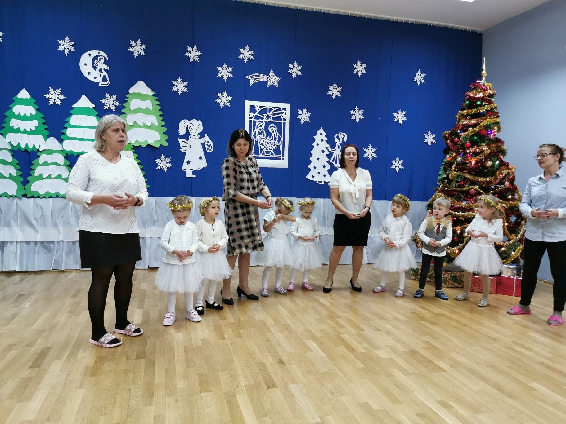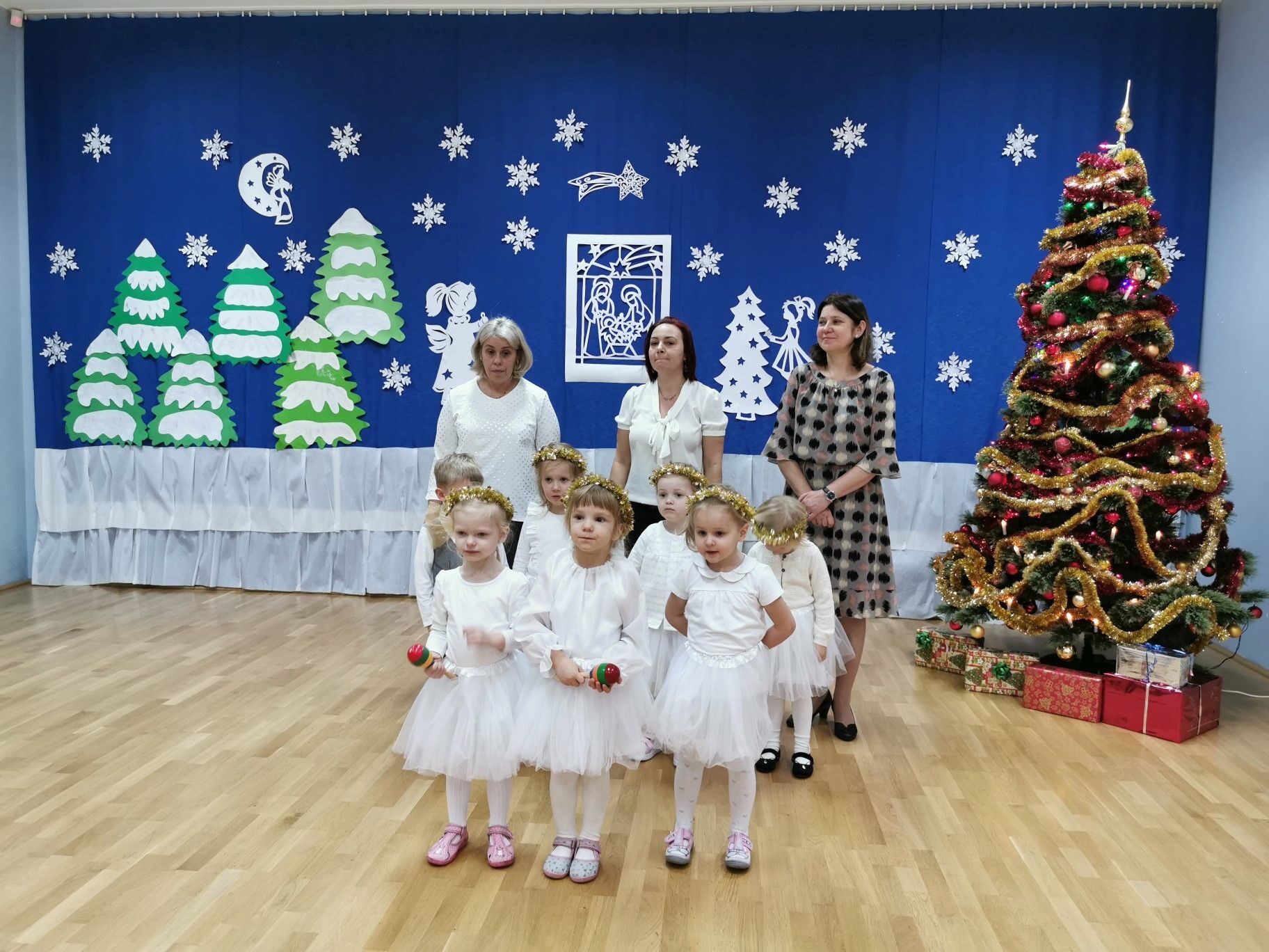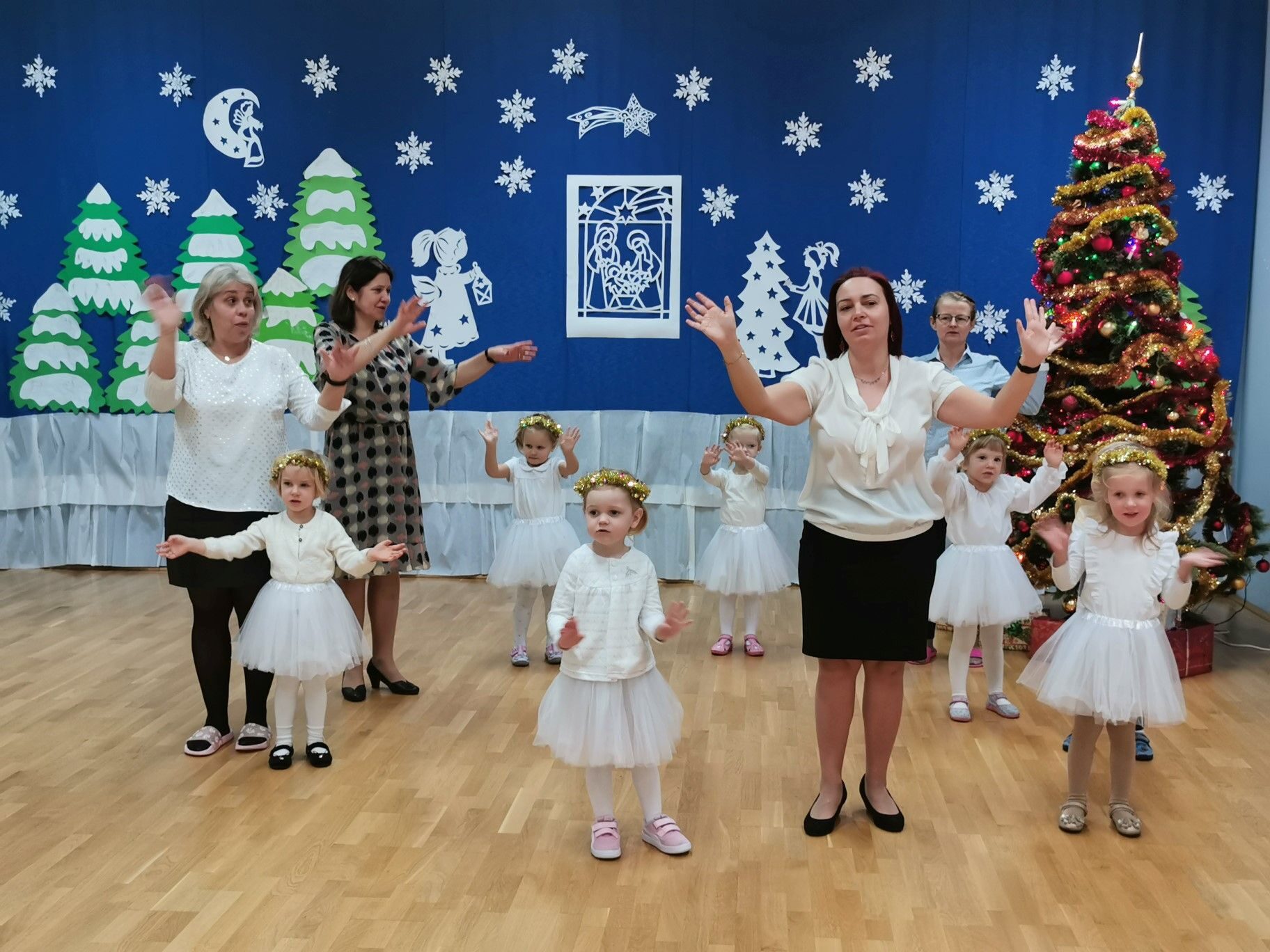 Dnia 16. 12. 2021r. w naszym przedszkolu odbyła się uroczystość związana z obchodzeniem Świąt Bożego Narodzenia. Przedszkolaki w strojach galowych wzięły udział w “Koncercie Kolęd”. Dzieci śpiewały piękne polskie kolędy i pastorałki. Temu wydarzeniu towarzyszyła miła świąteczna atmosfera. Po części artystycznej w swoich salach wysłuchały fragmentu Pisma Świętego o  Narodzeniu Pana Jezusa. Ponadto rozdano dzieciom opłatek, złożono im świąteczne życzenia i zaproszono na Wigilijny poczęstunek przygotowany przez rodziców, za który serdecznie rodzicom dziękujemy.