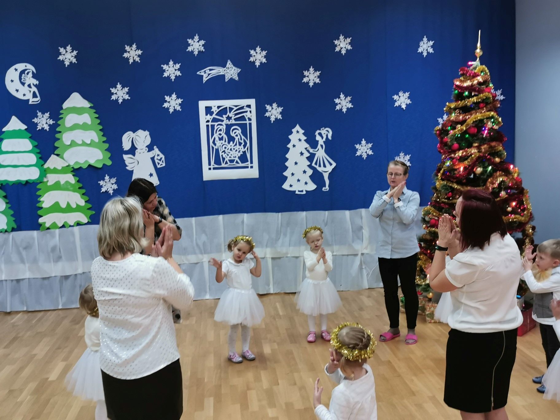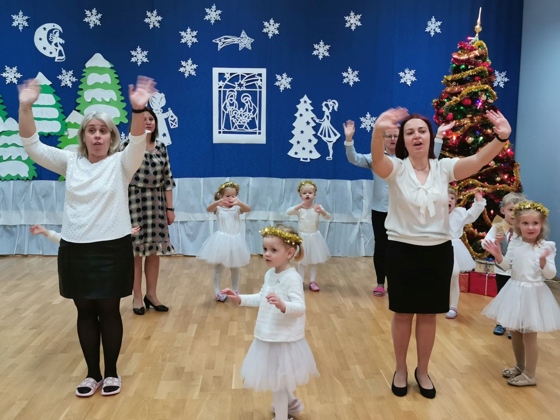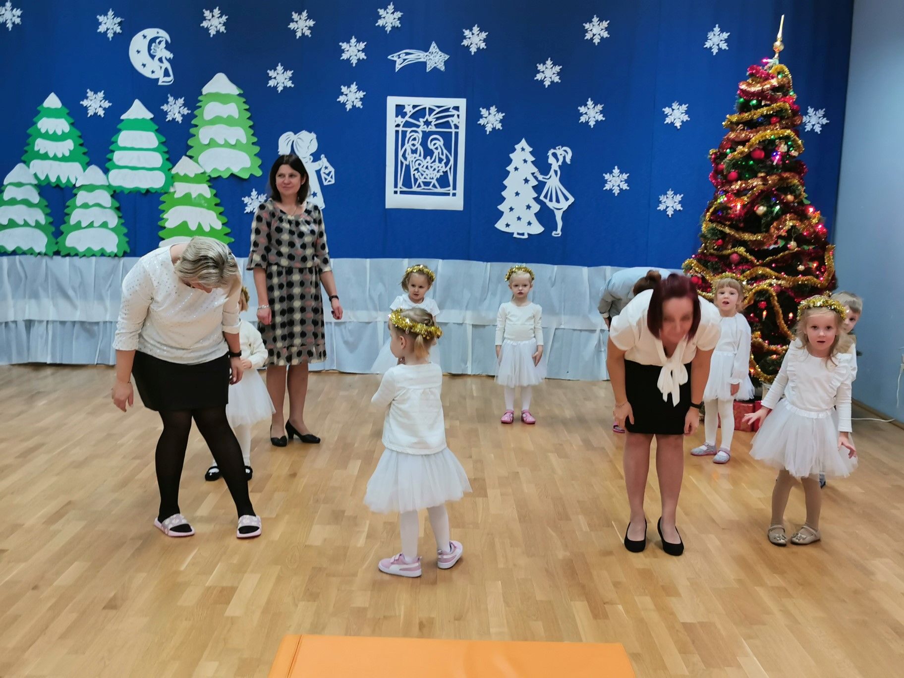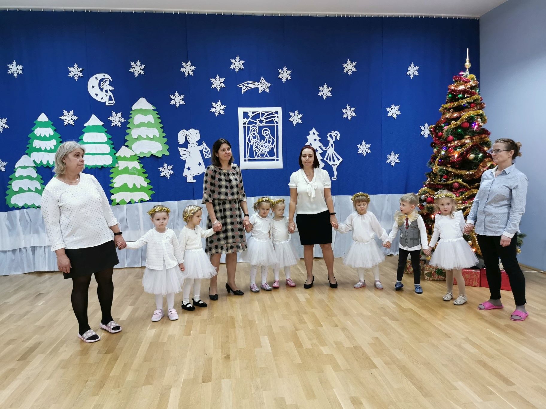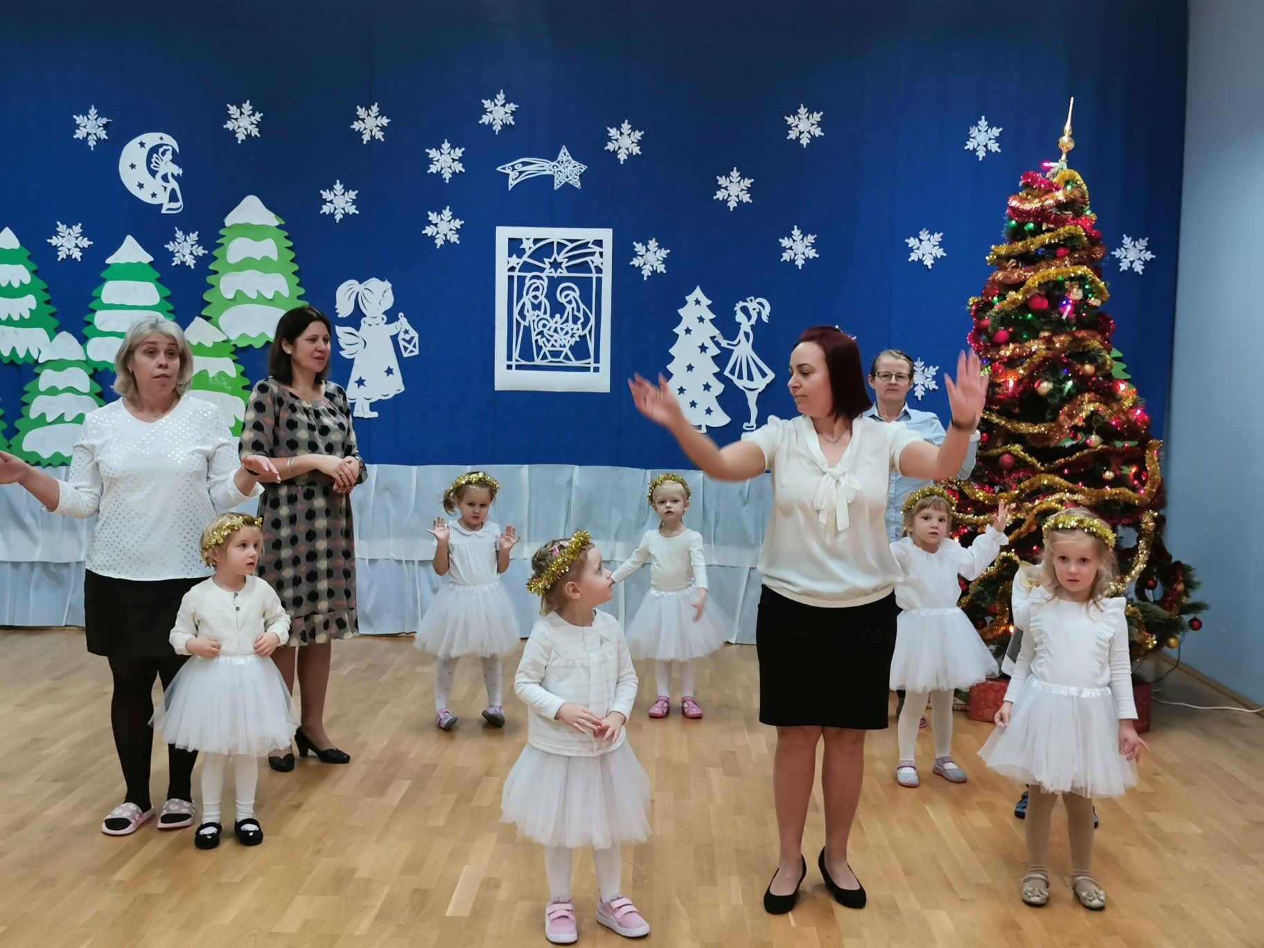Dnia 16. 12. 2021r. w naszym przedszkolu odbyła się uroczystość związana z obchodzeniem Świąt Bożego Narodzenia. Przedszkolaki w strojach galowych wzięły udział w “Koncercie Kolęd”. Dzieci śpiewały piękne polskie kolędy i pastorałki. Temu wydarzeniu towarzyszyła miła świąteczna atmosfera. Po części artystycznej w swoich salach wysłuchały fragmentu Pisma Świętego o  Narodzeniu Pana Jezusa. Ponadto rozdano dzieciom opłatek, złożono im świąteczne życzenia i zaproszono na Wigilijny poczęstunek przygotowany przez rodziców, za który serdecznie rodzicom dziękujemy.