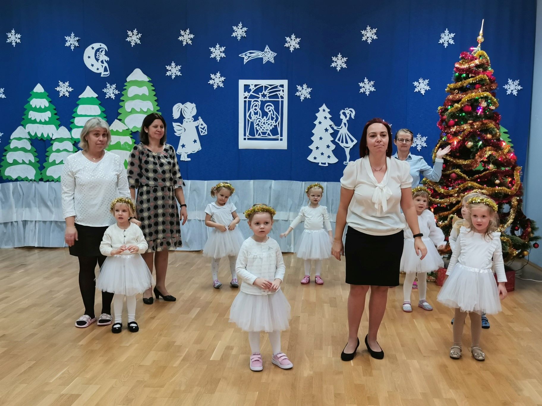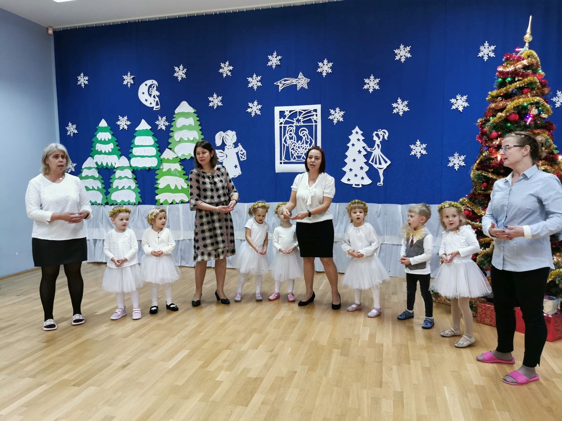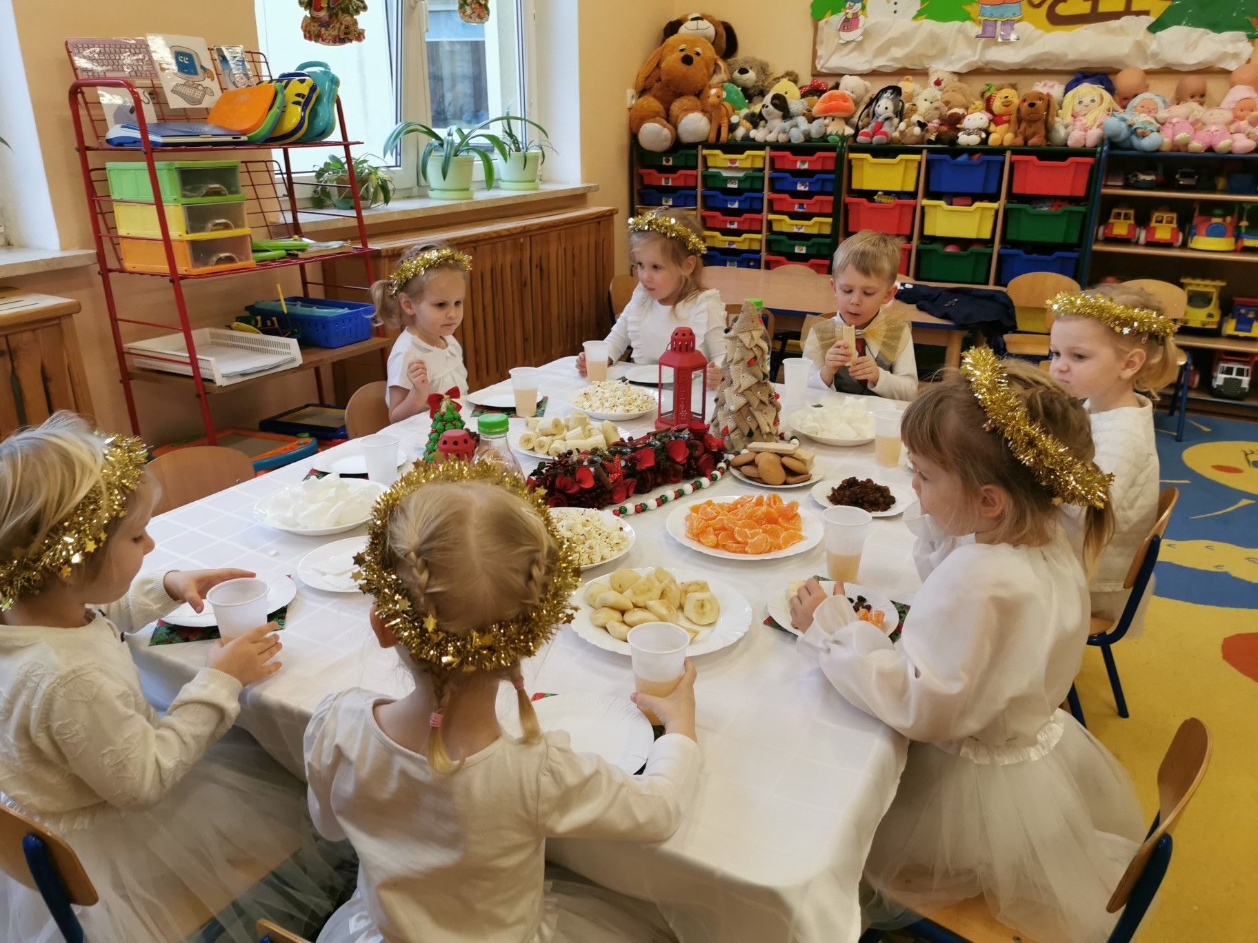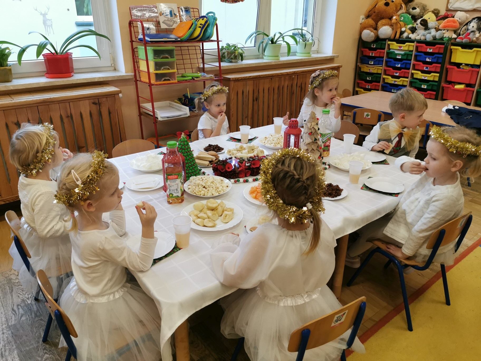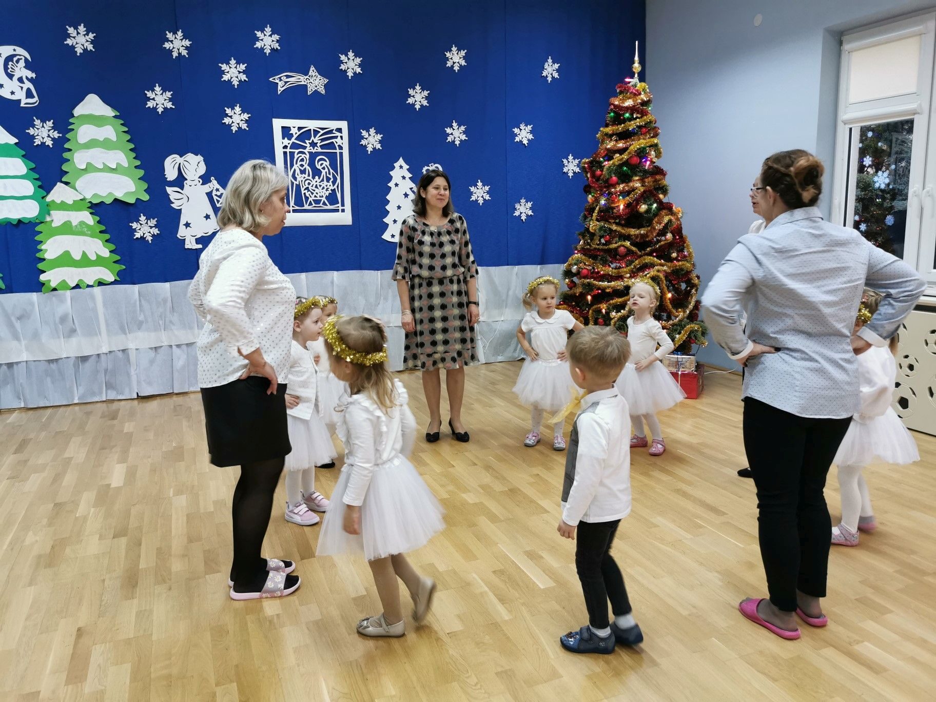 Dnia 16. 12. 2021r. w naszym przedszkolu odbyła się uroczystość związana z obchodzeniem Świąt Bożego Narodzenia. Przedszkolaki w strojach galowych wzięły udział w “Koncercie Kolęd”. Dzieci śpiewały piękne polskie kolędy i pastorałki. Temu wydarzeniu towarzyszyła miła świąteczna atmosfera. Po części artystycznej w swoich salach wysłuchały fragmentu Pisma Świętego o  Narodzeniu Pana Jezusa. Ponadto rozdano dzieciom opłatek, złożono im świąteczne życzenia i zaproszono na Wigilijny poczęstunek przygotowany przez rodziców, za który serdecznie rodzicom dziękujemy.