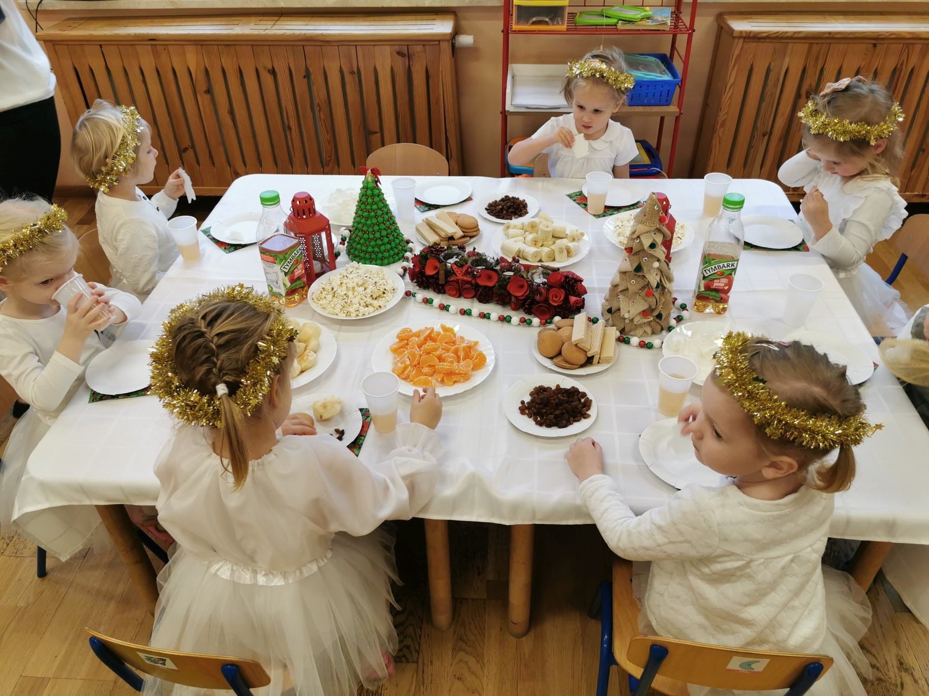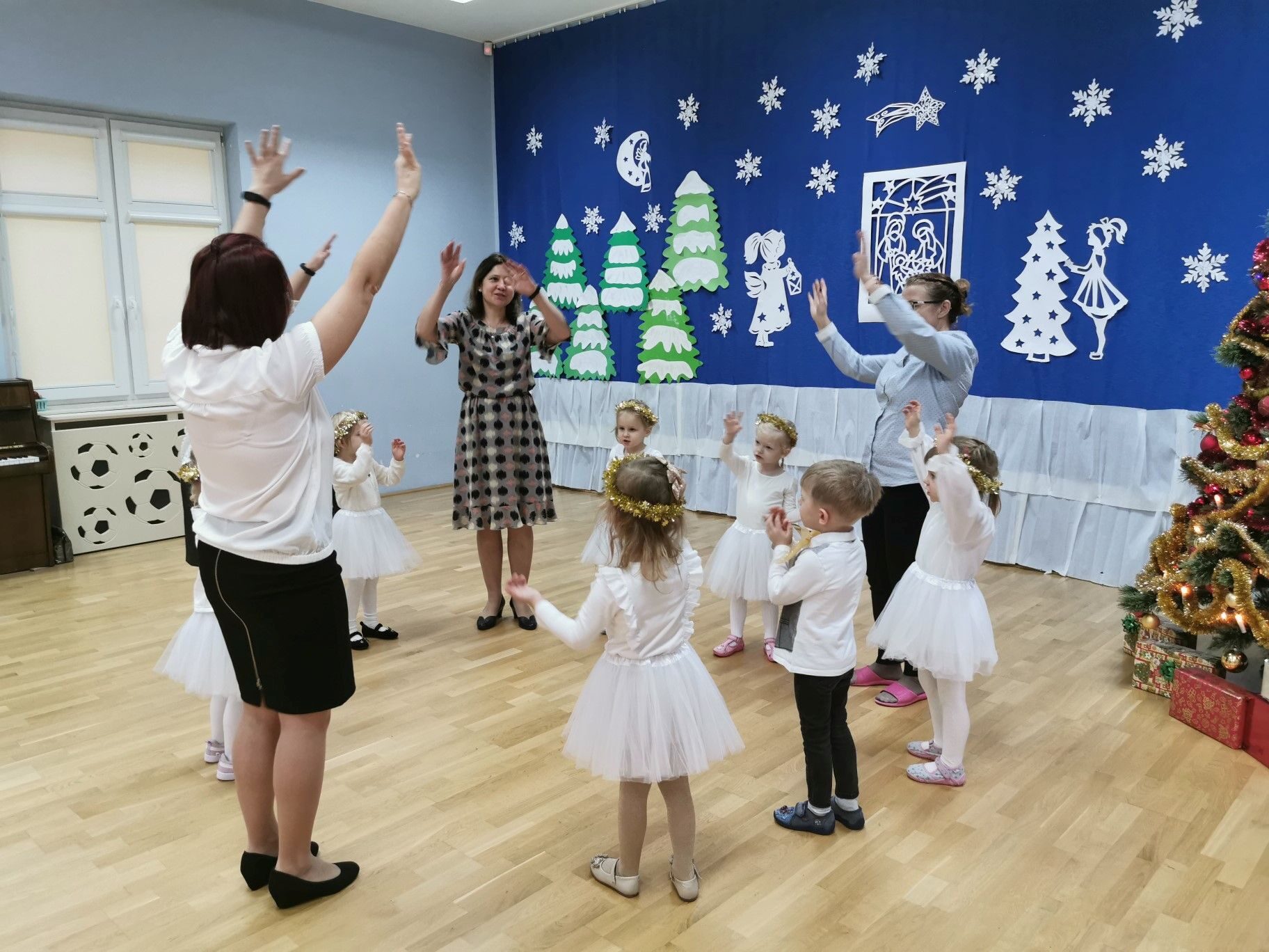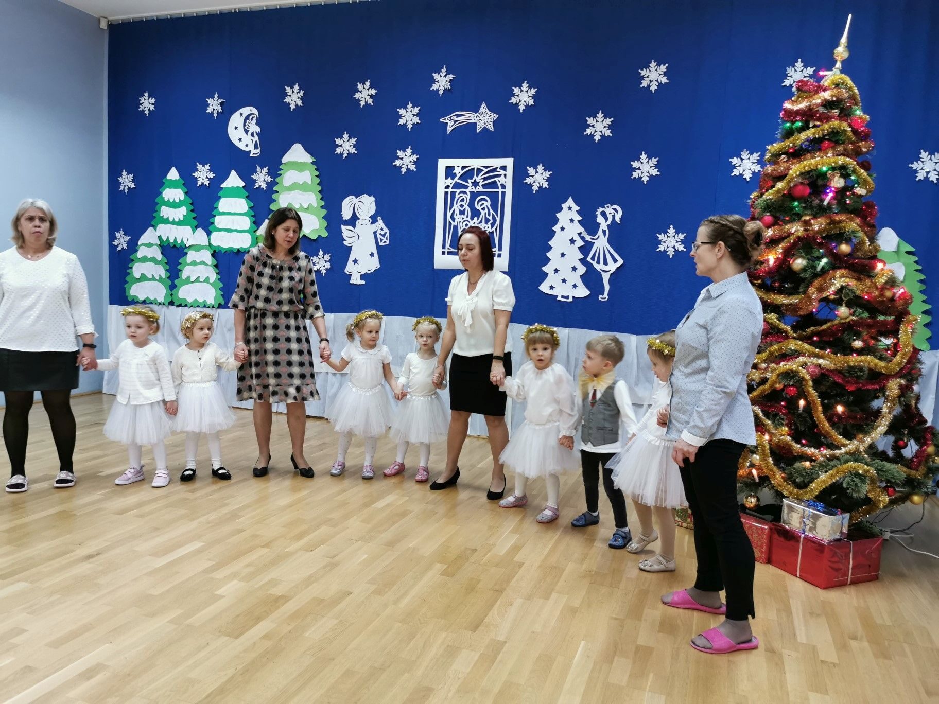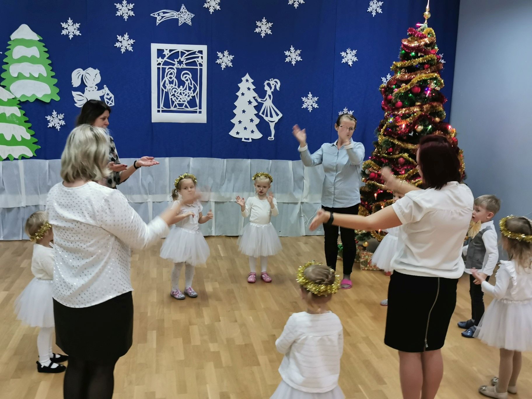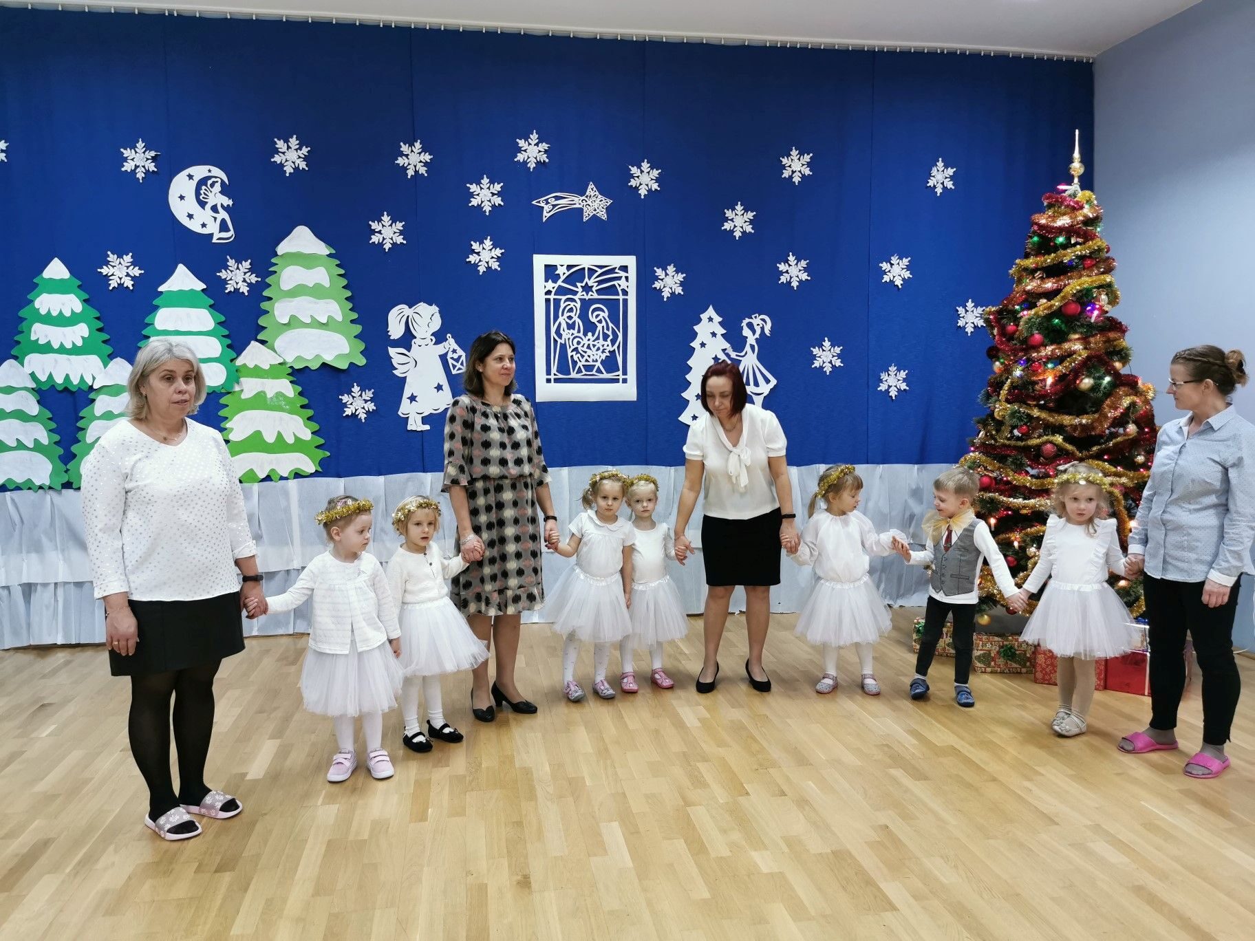 Dnia 16. 12. 2021r. w naszym przedszkolu odbyła się uroczystość związana z obchodzeniem Świąt Bożego Narodzenia. Przedszkolaki w strojach galowych wzięły udział w “Koncercie Kolęd”. Dzieci śpiewały piękne polskie kolędy i pastorałki. Temu wydarzeniu towarzyszyła miła świąteczna atmosfera. Po części artystycznej w swoich salach wysłuchały fragmentu Pisma Świętego o  Narodzeniu Pana Jezusa. Ponadto rozdano dzieciom opłatek, złożono im świąteczne życzenia i zaproszono na Wigilijny poczęstunek przygotowany przez rodziców, za który serdecznie rodzicom dziękujemy.