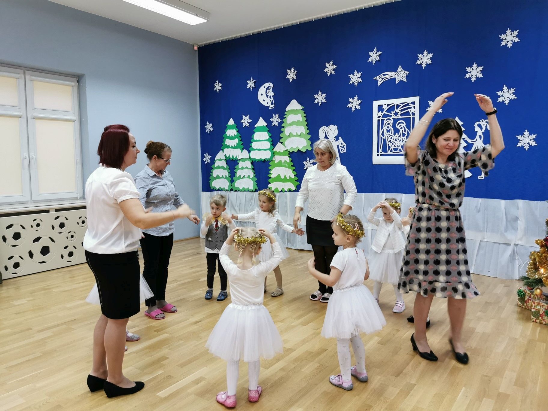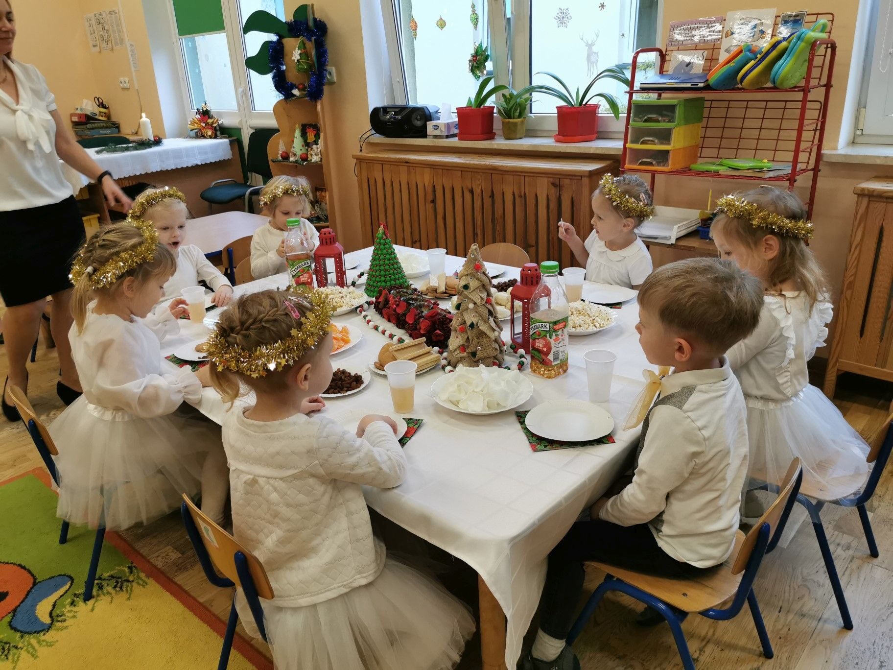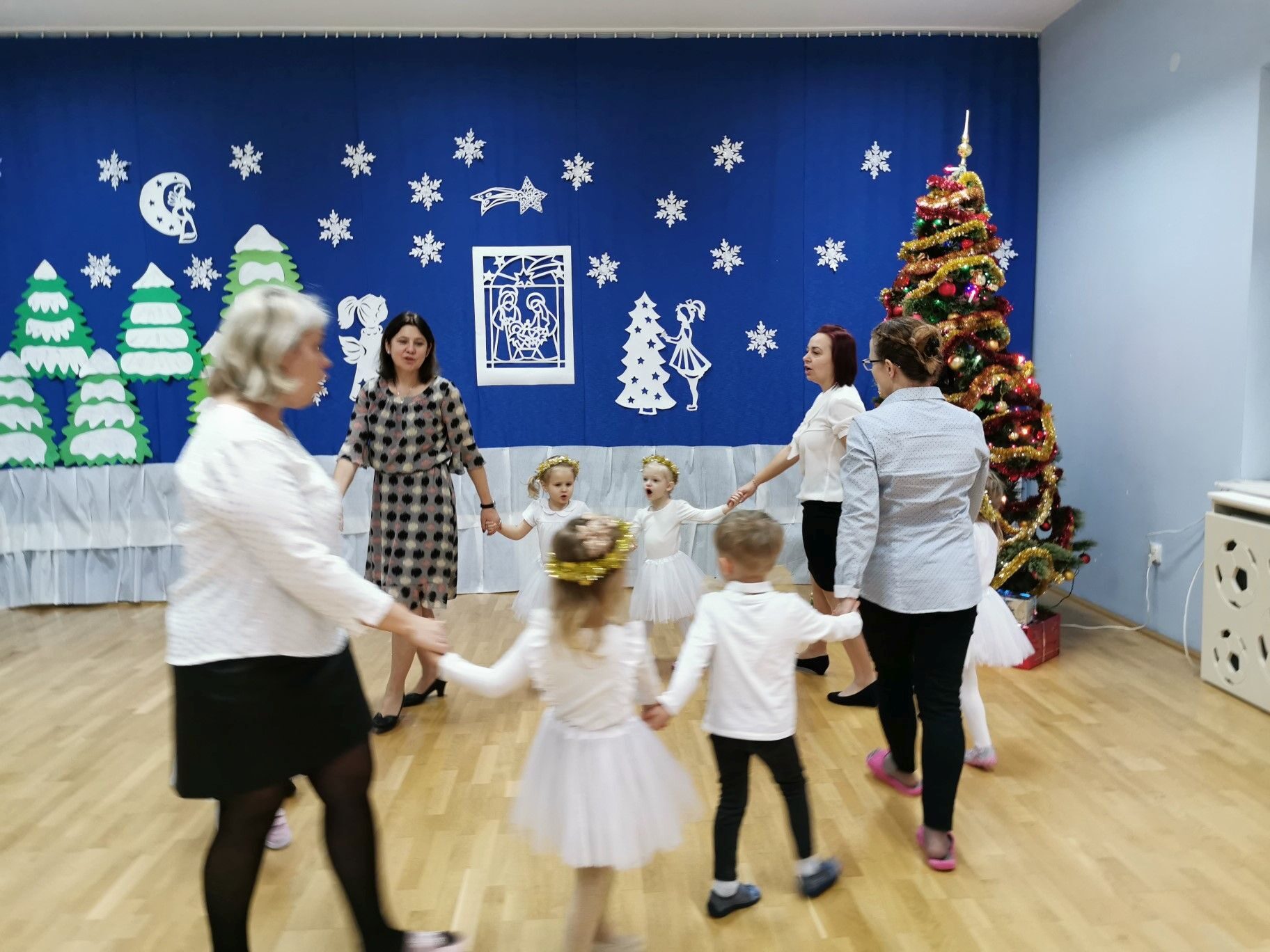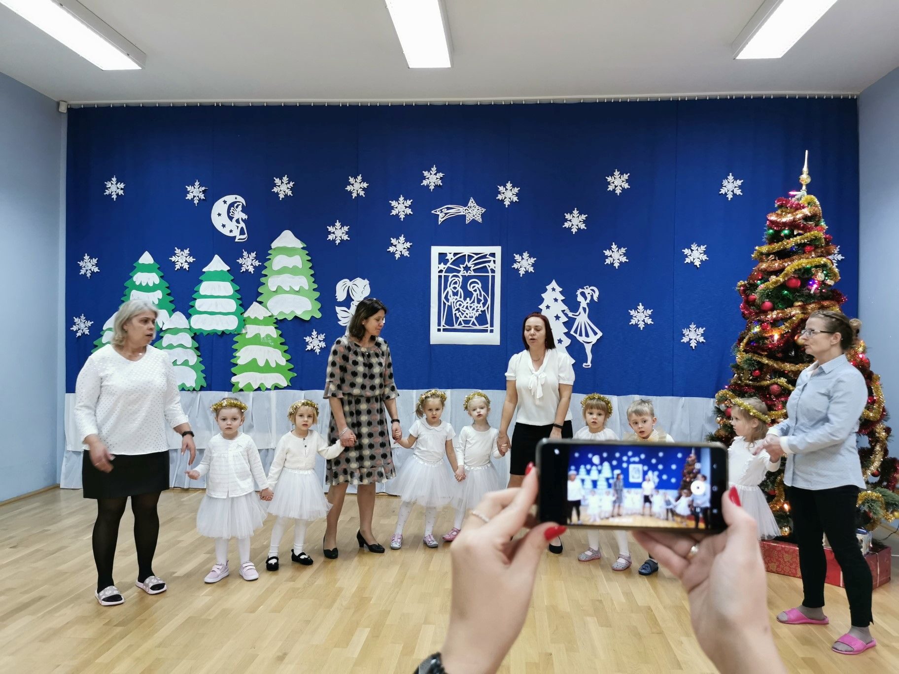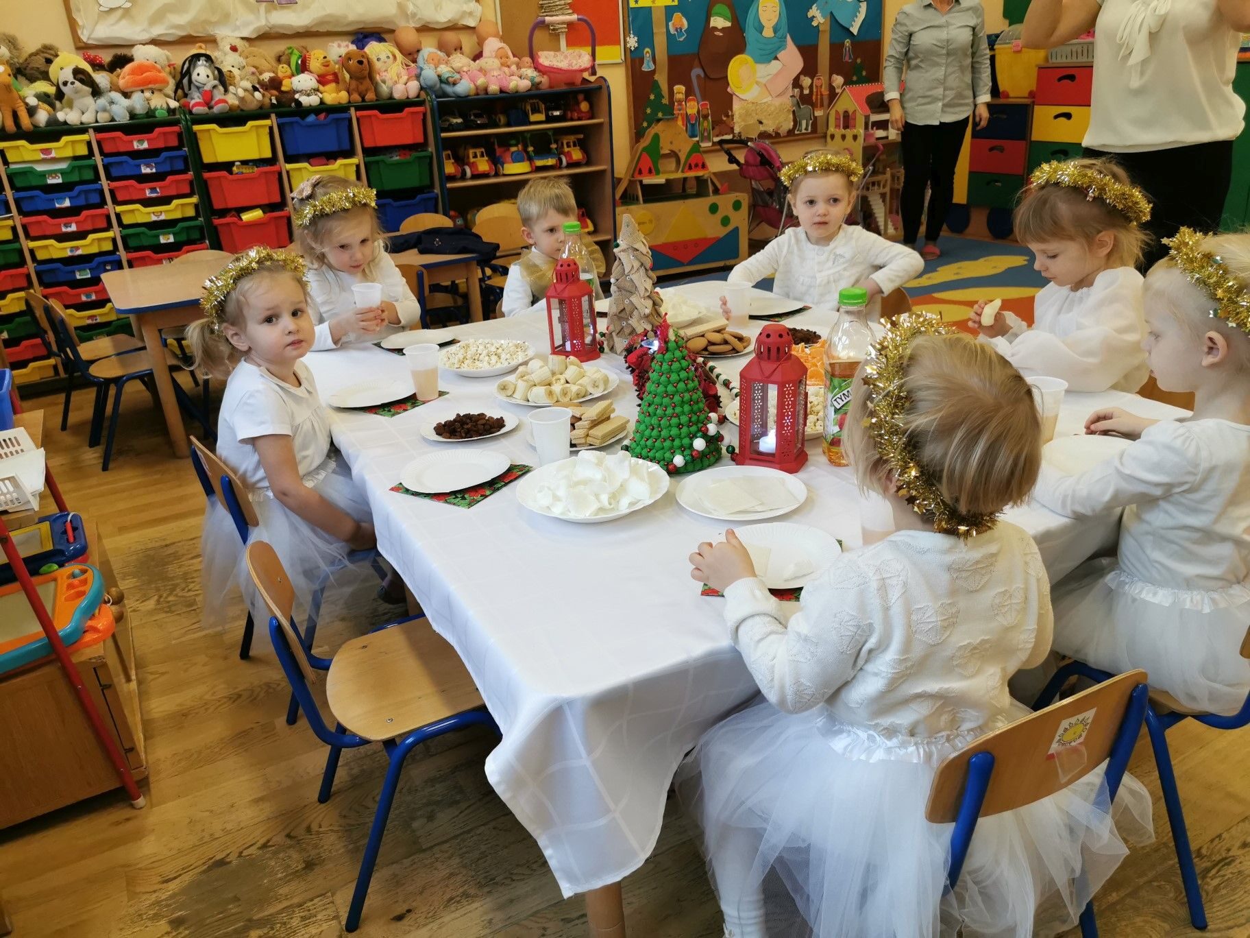 Dnia 16. 12. 2021r. w naszym przedszkolu odbyła się uroczystość związana z obchodzeniem Świąt Bożego Narodzenia. Przedszkolaki w strojach galowych wzięły udział w “Koncercie Kolęd”. Dzieci śpiewały piękne polskie kolędy i pastorałki. Temu wydarzeniu towarzyszyła miła świąteczna atmosfera. Po części artystycznej w swoich salach wysłuchały fragmentu Pisma Świętego o  Narodzeniu Pana Jezusa. Ponadto rozdano dzieciom opłatek, złożono im świąteczne życzenia i zaproszono na Wigilijny poczęstunek przygotowany przez rodziców, za który serdecznie rodzicom dziękujemy.