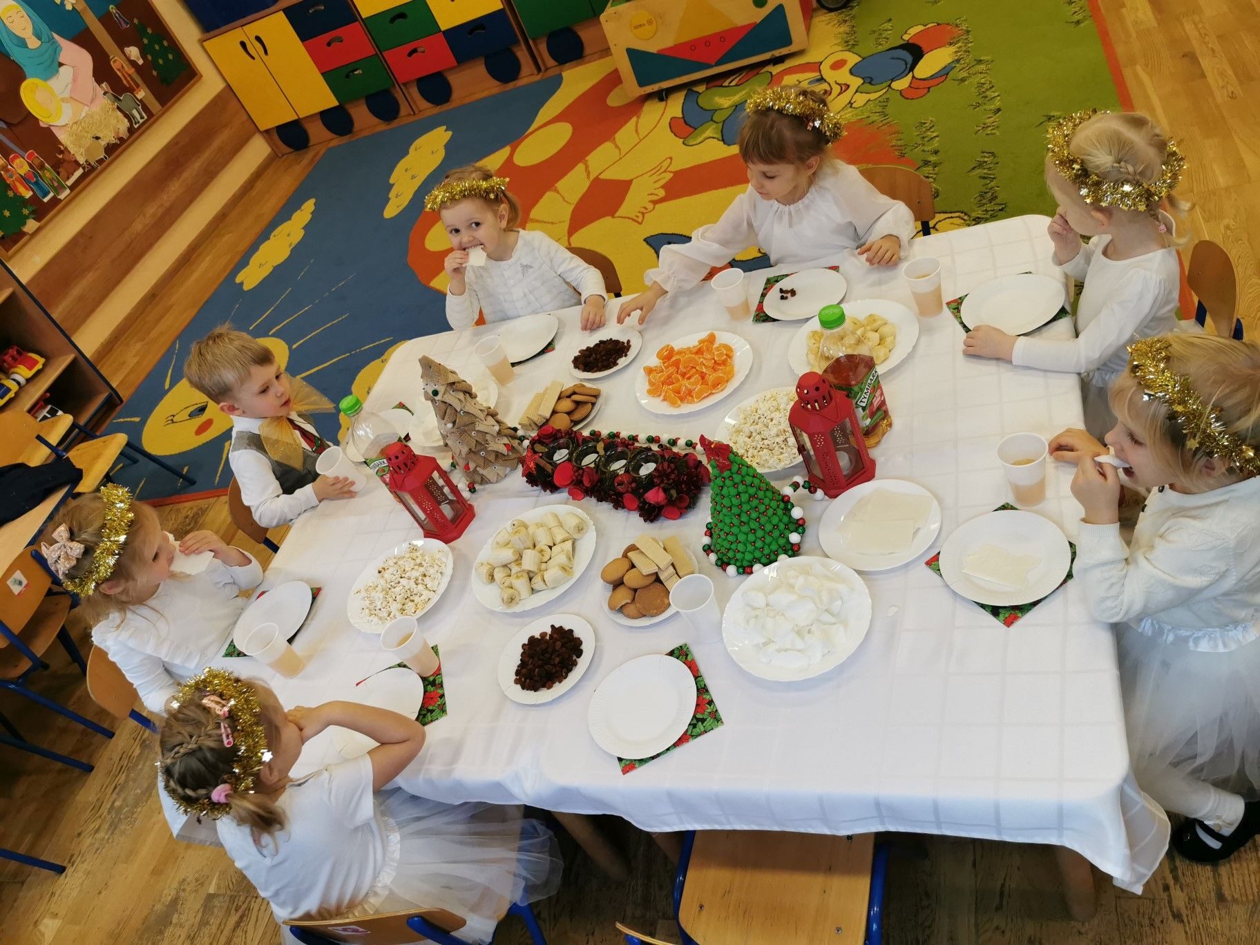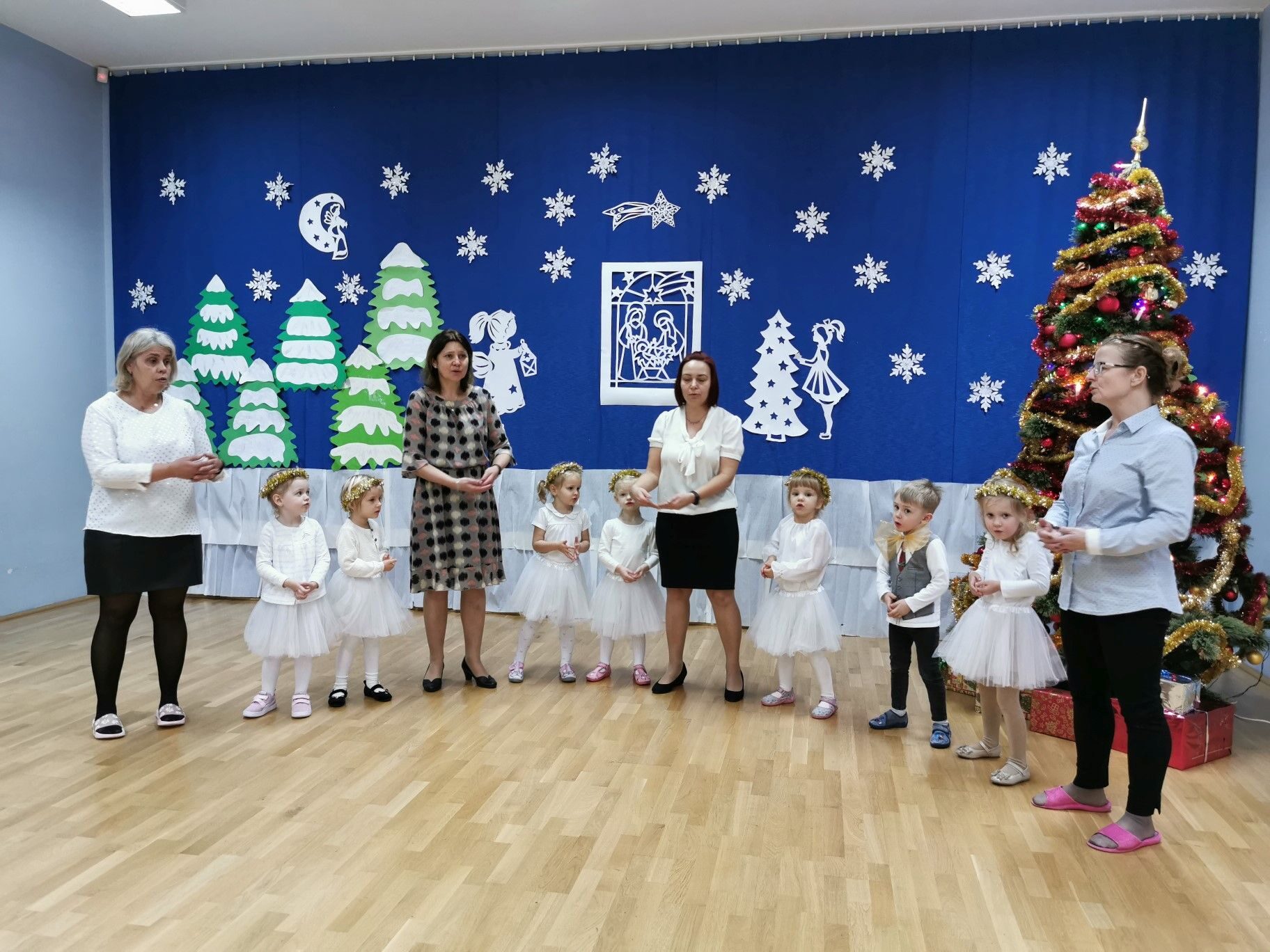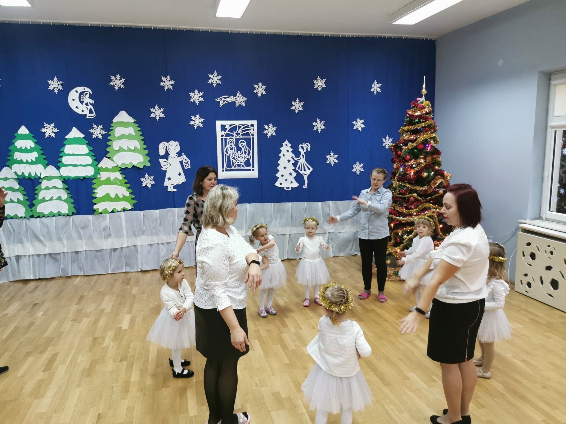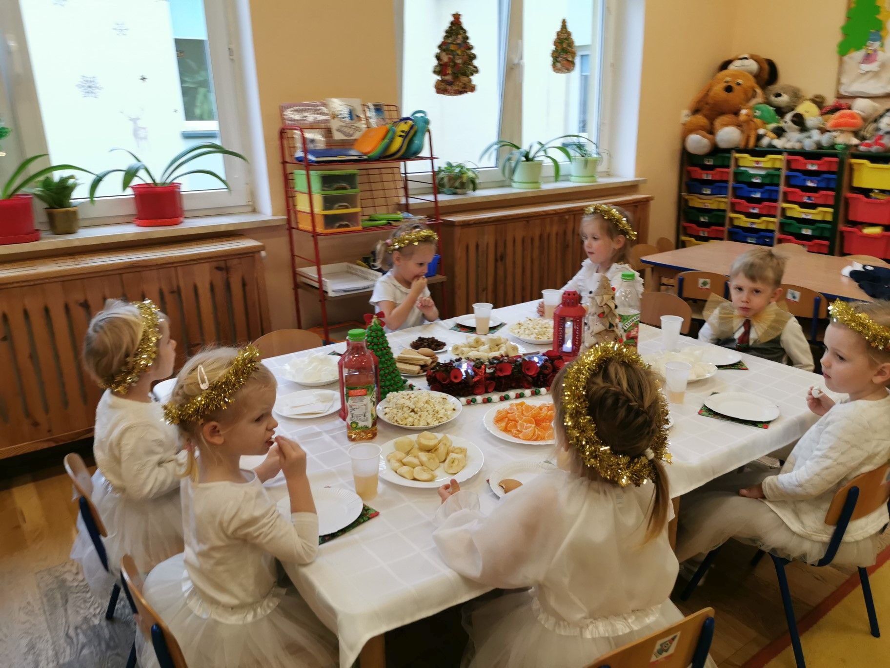 Dnia 16. 12. 2021r. w naszym przedszkolu odbyła się uroczystość związana z obchodzeniem Świąt Bożego Narodzenia. Przedszkolaki w strojach galowych wzięły udział w “Koncercie Kolęd”. Dzieci śpiewały piękne polskie kolędy i pastorałki. Temu wydarzeniu towarzyszyła miła świąteczna atmosfera. Po części artystycznej w swoich salach wysłuchały fragmentu Pisma Świętego o  Narodzeniu Pana Jezusa. Ponadto rozdano dzieciom opłatek, złożono im świąteczne życzenia i zaproszono na Wigilijny poczęstunek przygotowany przez rodziców, za który serdecznie rodzicom dziękujemy.
