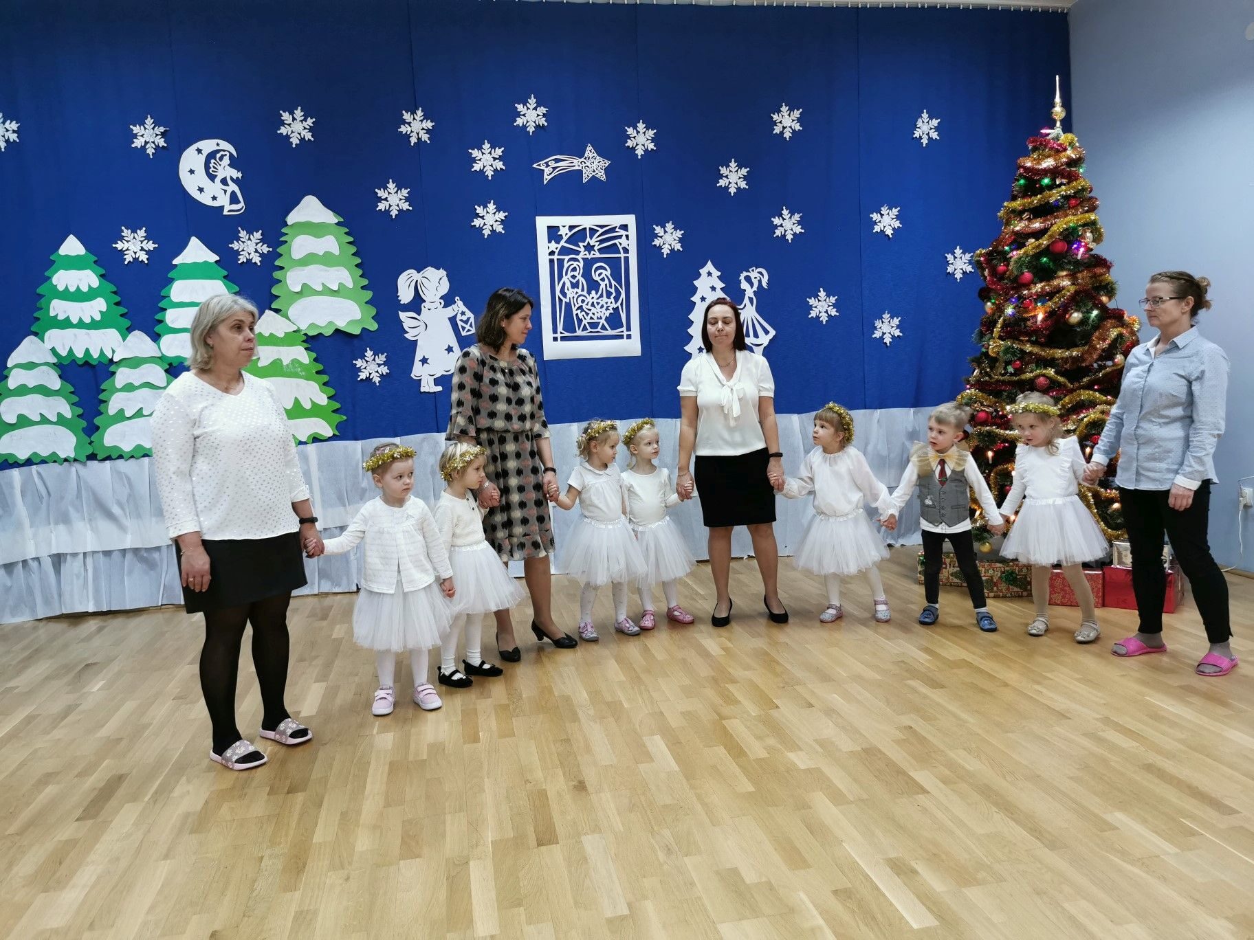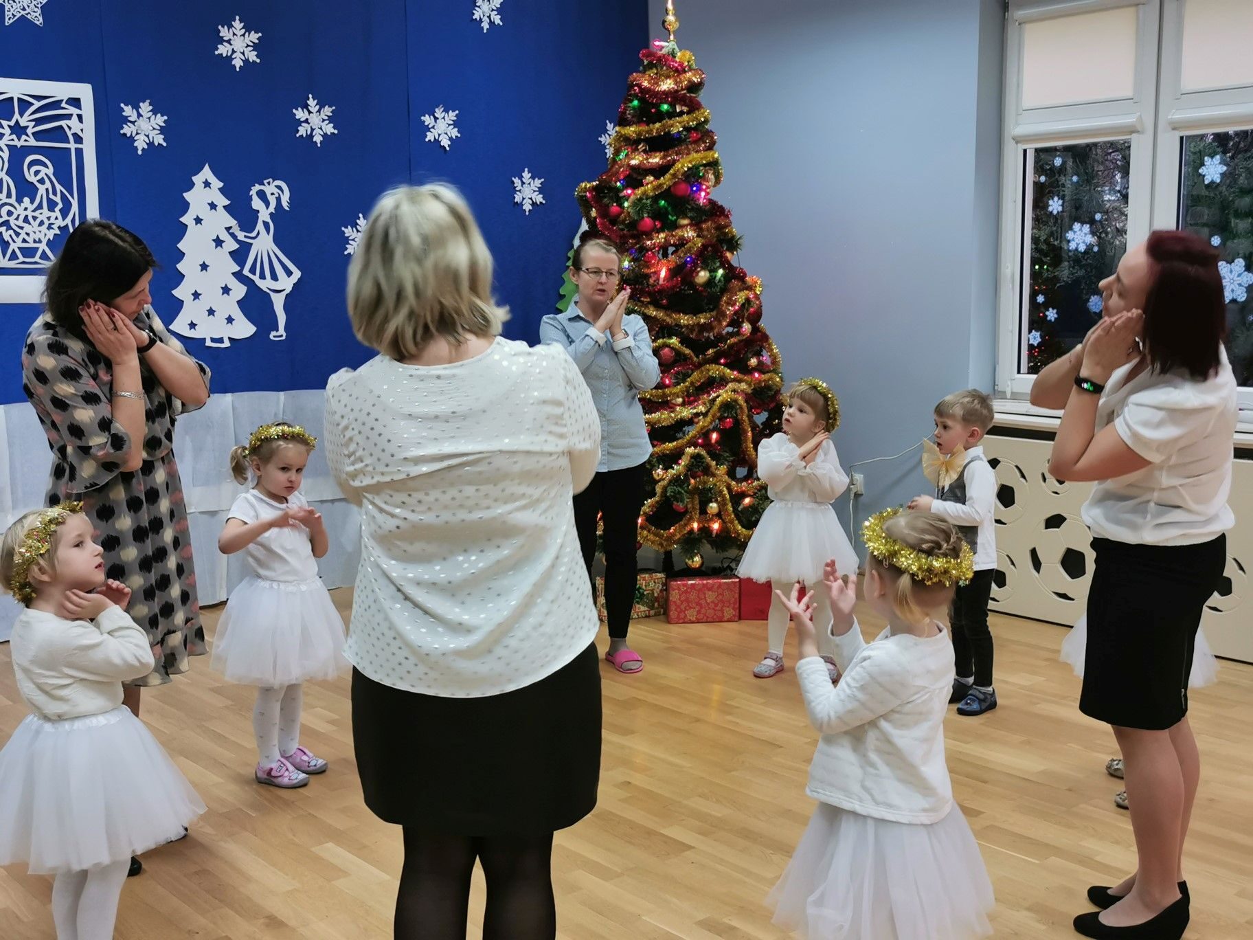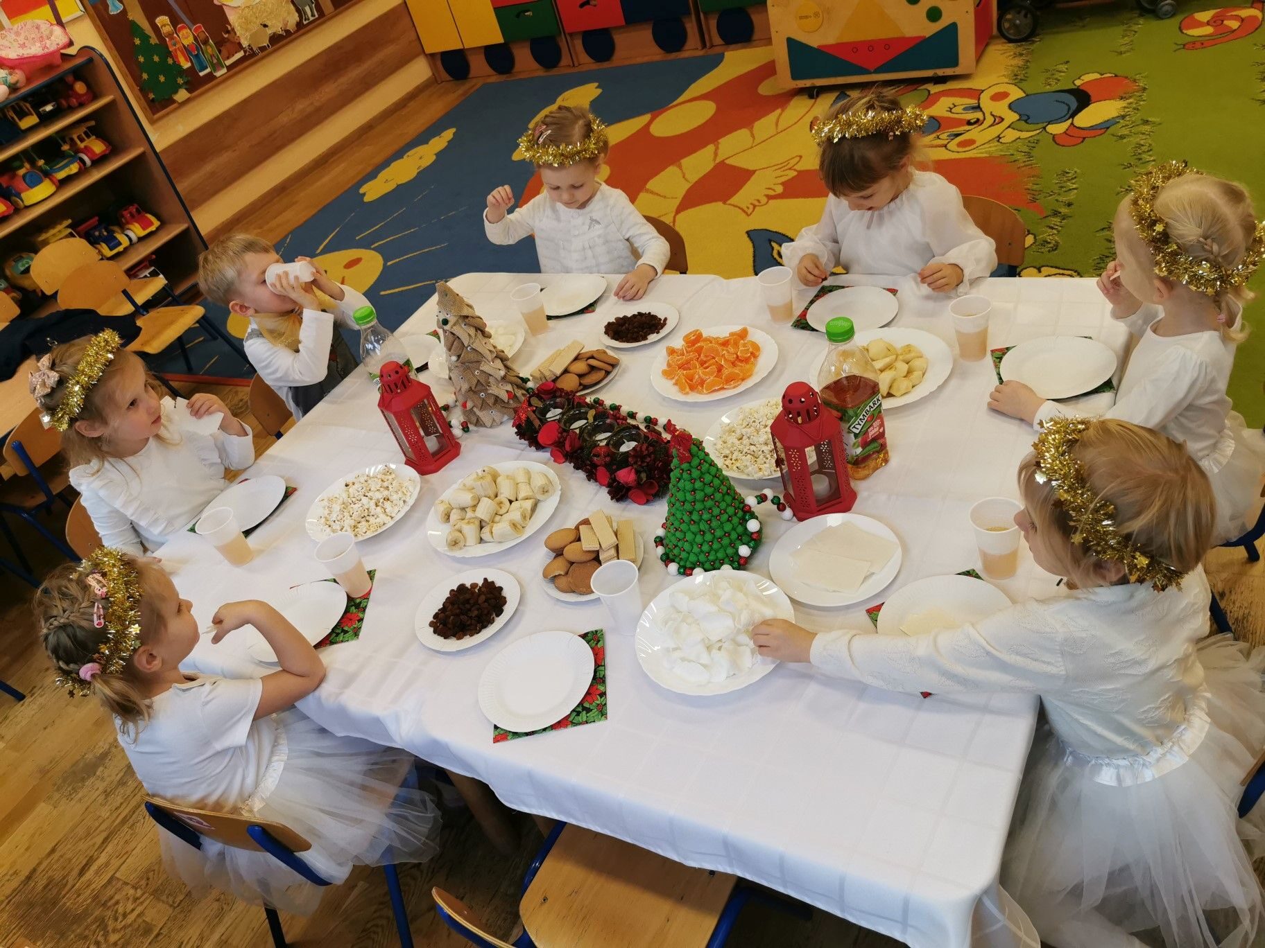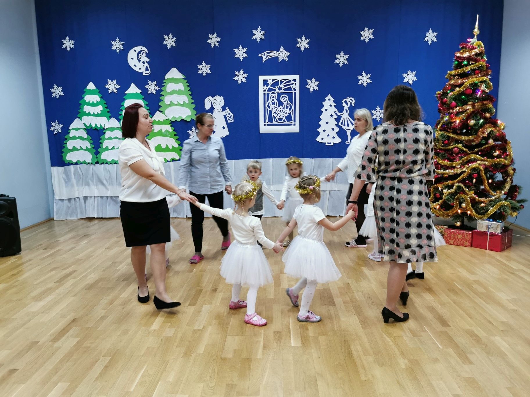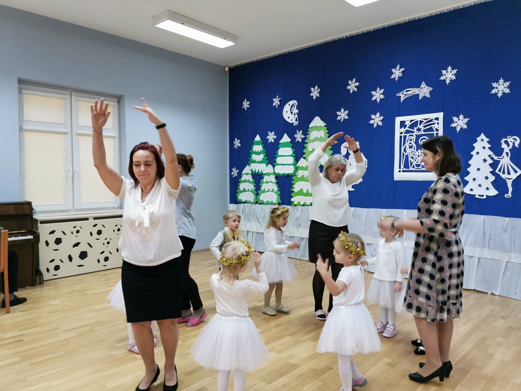Dnia 16. 12. 2021r. w naszym przedszkolu odbyła się uroczystość związana z obchodzeniem Świąt Bożego Narodzenia. Przedszkolaki w strojach galowych wzięły udział w “Koncercie Kolęd”. Dzieci śpiewały piękne polskie kolędy i pastorałki. Temu wydarzeniu towarzyszyła miła świąteczna atmosfera. Po części artystycznej w swoich salach wysłuchały fragmentu Pisma Świętego o  Narodzeniu Pana Jezusa. Ponadto rozdano dzieciom opłatek, złożono im świąteczne życzenia i zaproszono na Wigilijny poczęstunek przygotowany przez rodziców, za który serdecznie rodzicom dziękujemy.