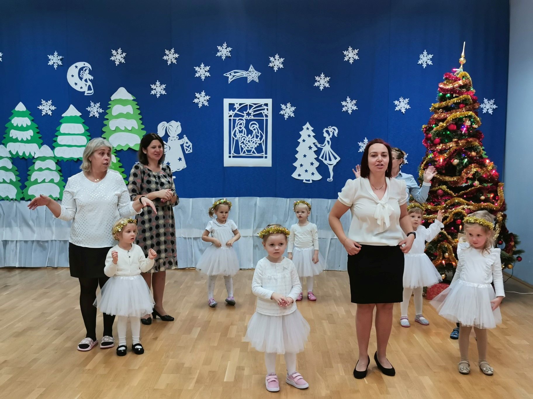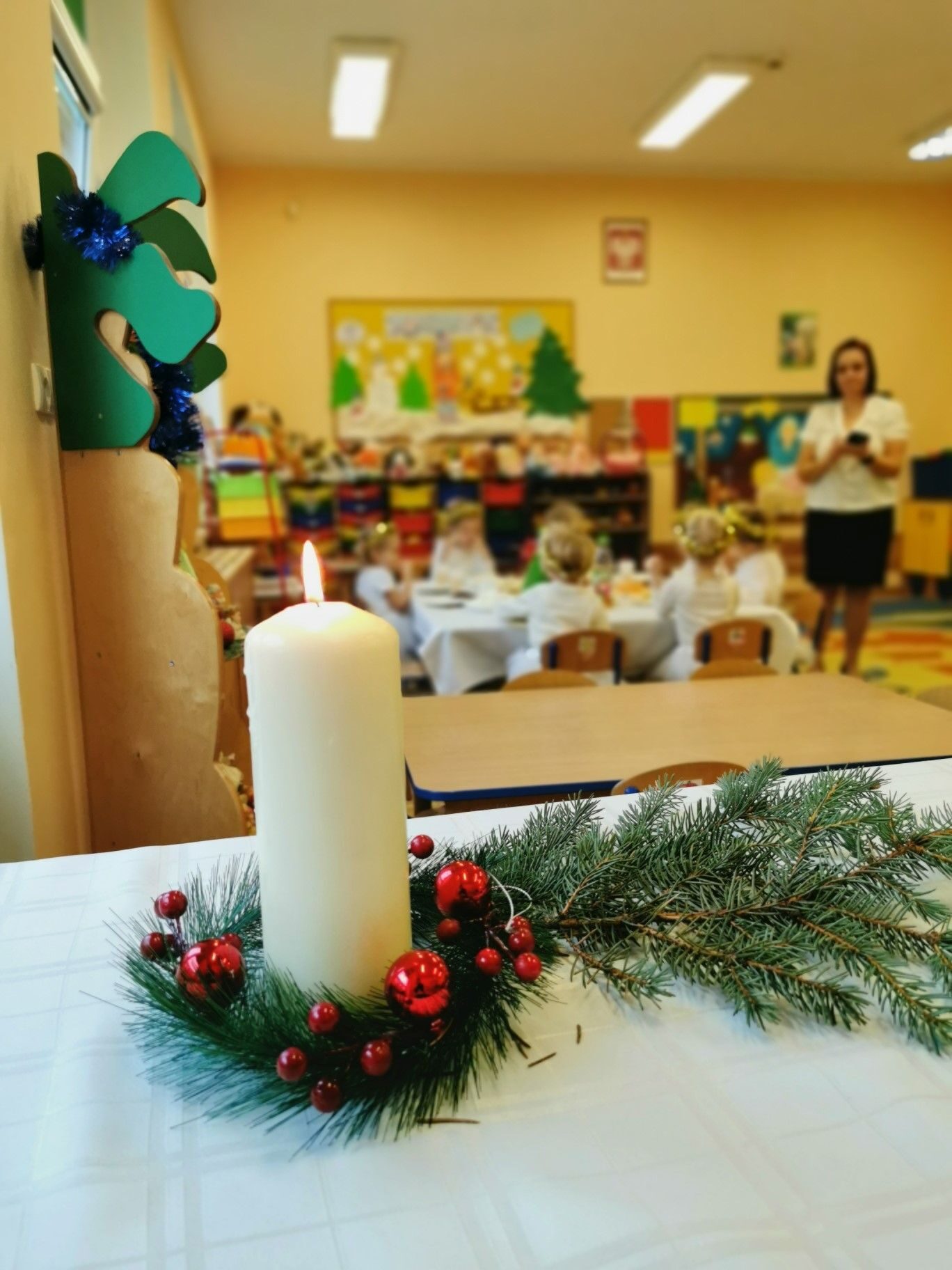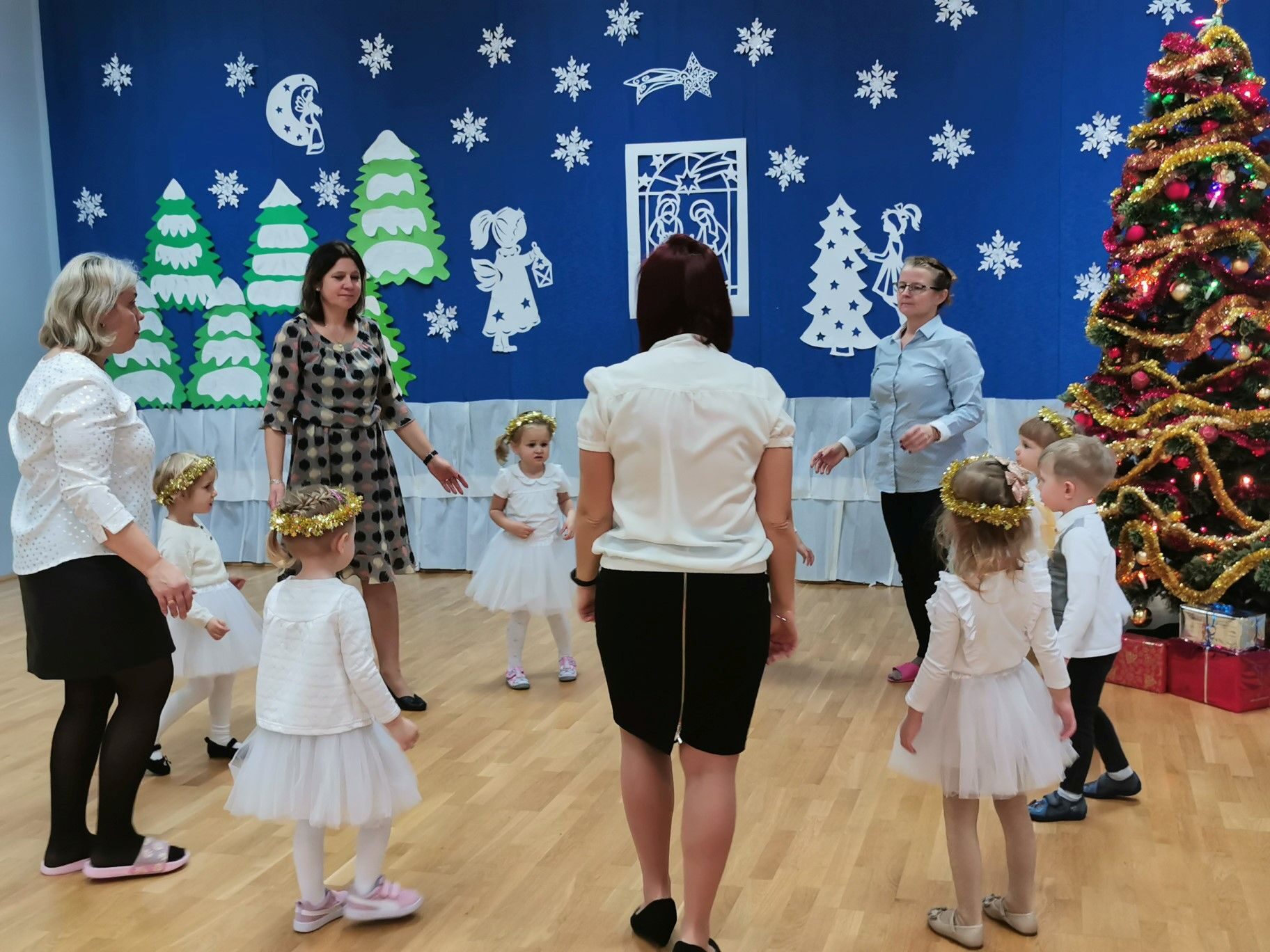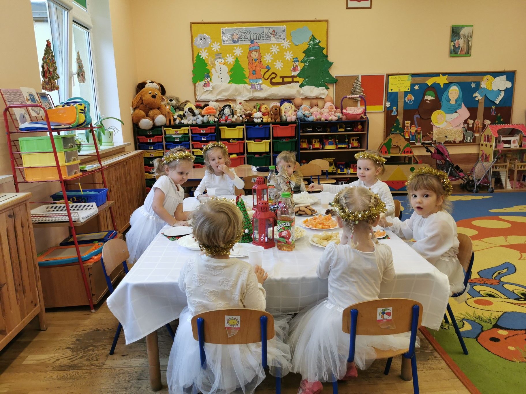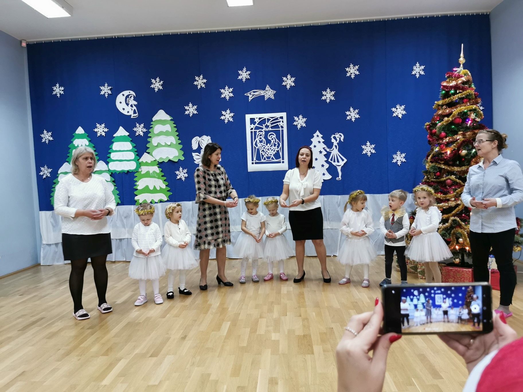 Dnia 16. 12. 2021r. w naszym przedszkolu odbyła się uroczystość związana z obchodzeniem Świąt Bożego Narodzenia. Przedszkolaki w strojach galowych wzięły udział w “Koncercie Kolęd”. Dzieci śpiewały piękne polskie kolędy i pastorałki. Temu wydarzeniu towarzyszyła miła świąteczna atmosfera. Po części artystycznej w swoich salach wysłuchały fragmentu Pisma Świętego o  Narodzeniu Pana Jezusa. Ponadto rozdano dzieciom opłatek, złożono im świąteczne życzenia i zaproszono na Wigilijny poczęstunek przygotowany przez rodziców, za który serdecznie rodzicom dziękujemy.