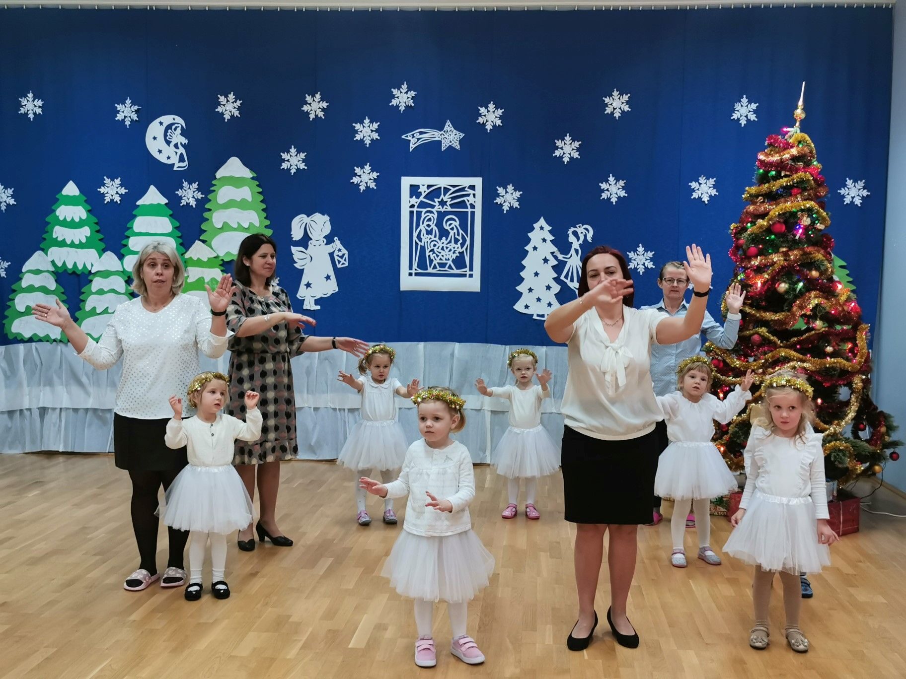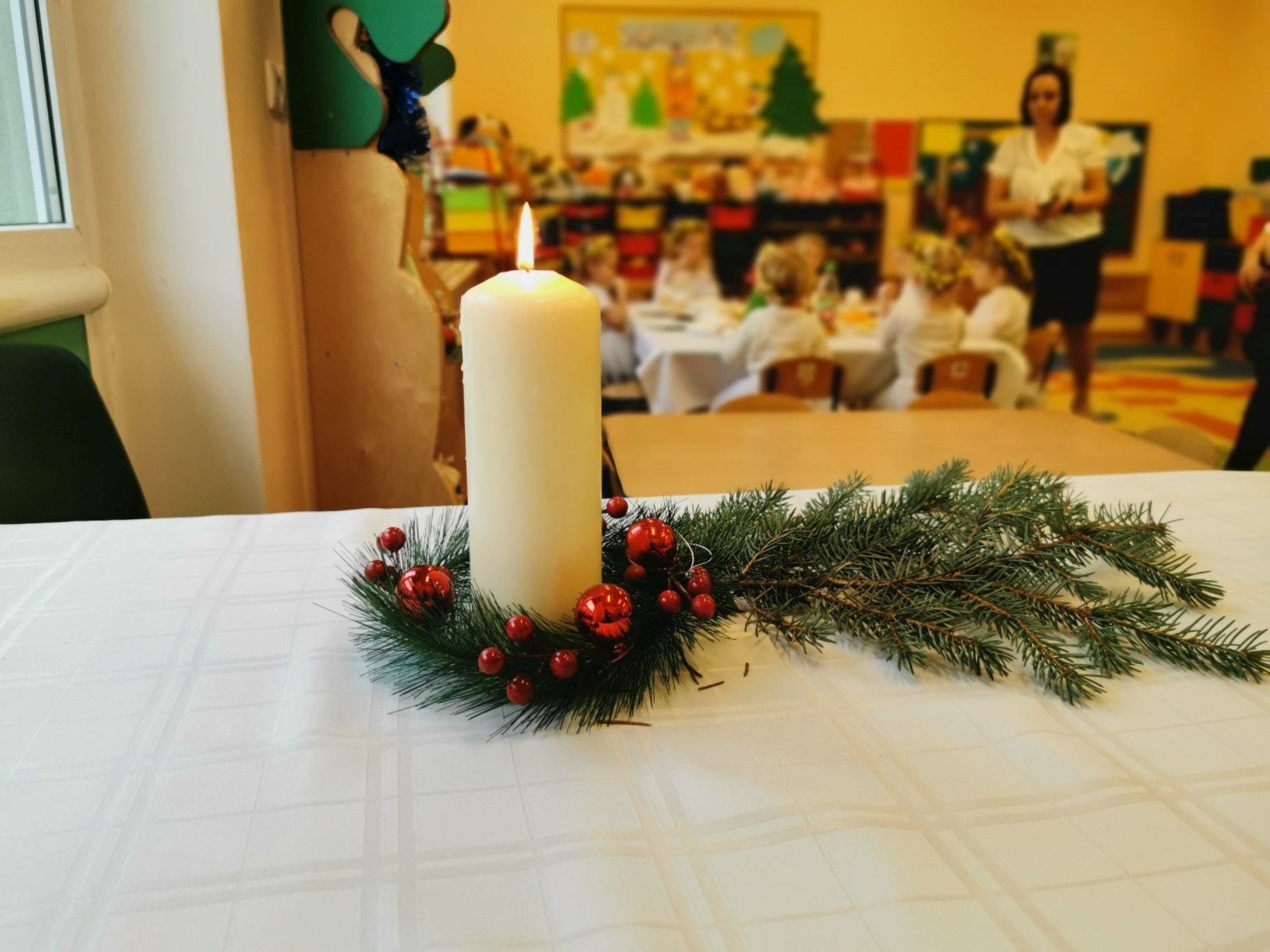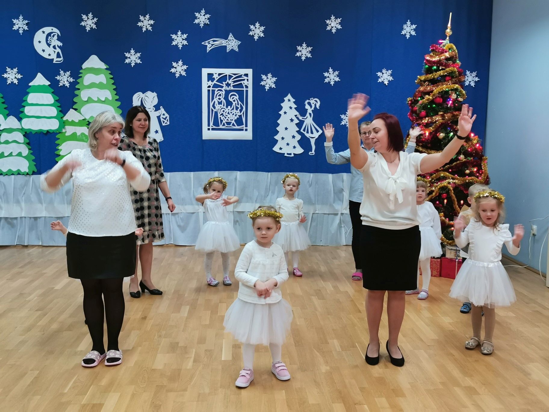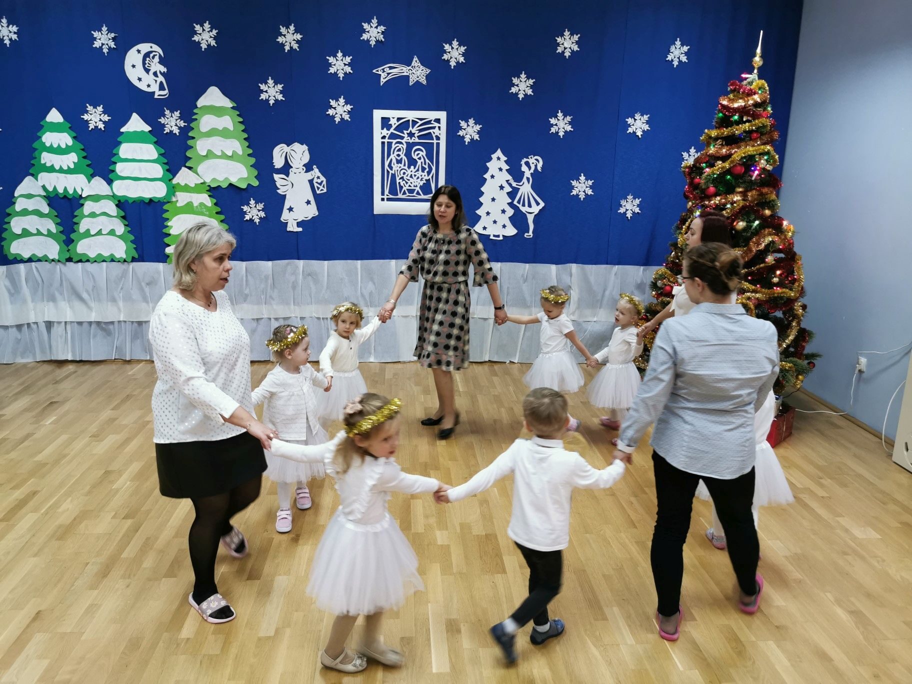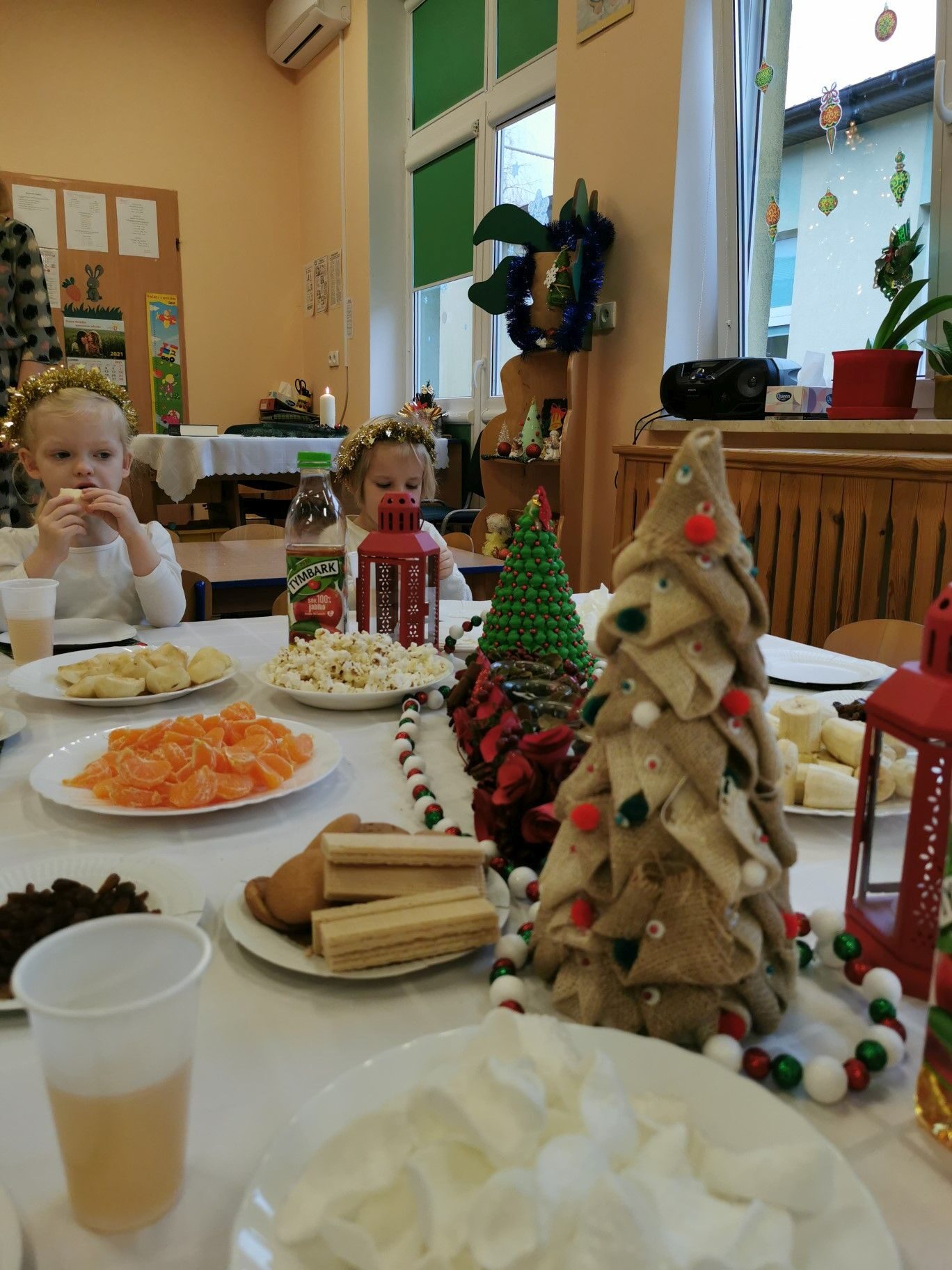 Dnia 16. 12. 2021r. w naszym przedszkolu odbyła się uroczystość związana z obchodzeniem Świąt Bożego Narodzenia. Przedszkolaki w strojach galowych wzięły udział w “Koncercie Kolęd”. Dzieci śpiewały piękne polskie kolędy i pastorałki. Temu wydarzeniu towarzyszyła miła świąteczna atmosfera. Po części artystycznej w swoich salach wysłuchały fragmentu Pisma Świętego o  Narodzeniu Pana Jezusa. Ponadto rozdano dzieciom opłatek, złożono im świąteczne życzenia i zaproszono na Wigilijny poczęstunek przygotowany przez rodziców, za który serdecznie rodzicom dziękujemy.