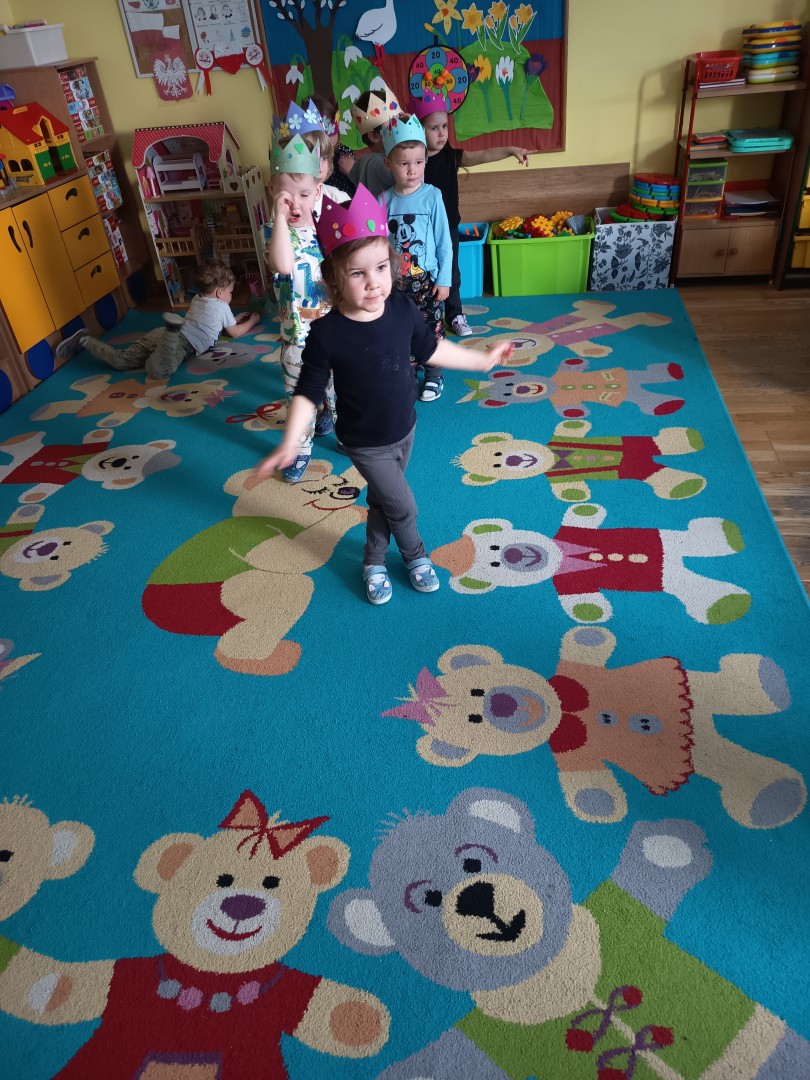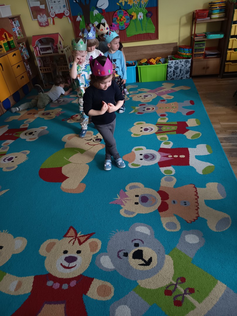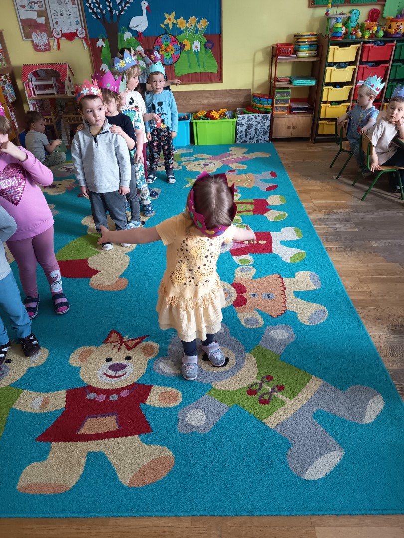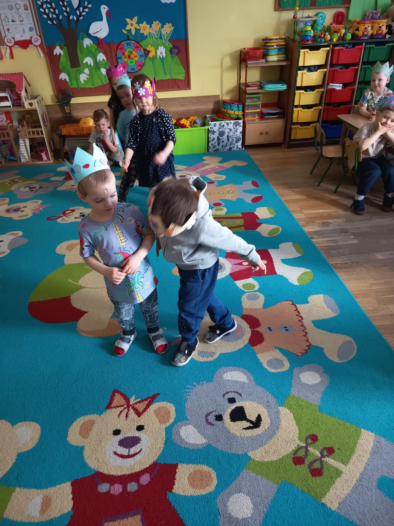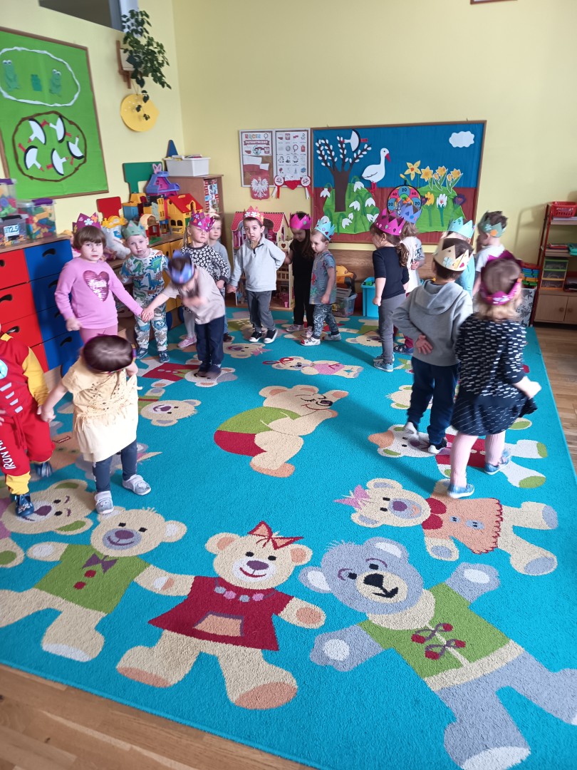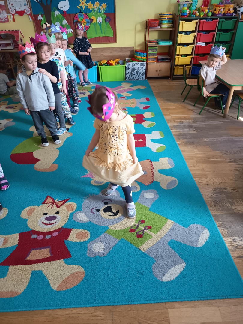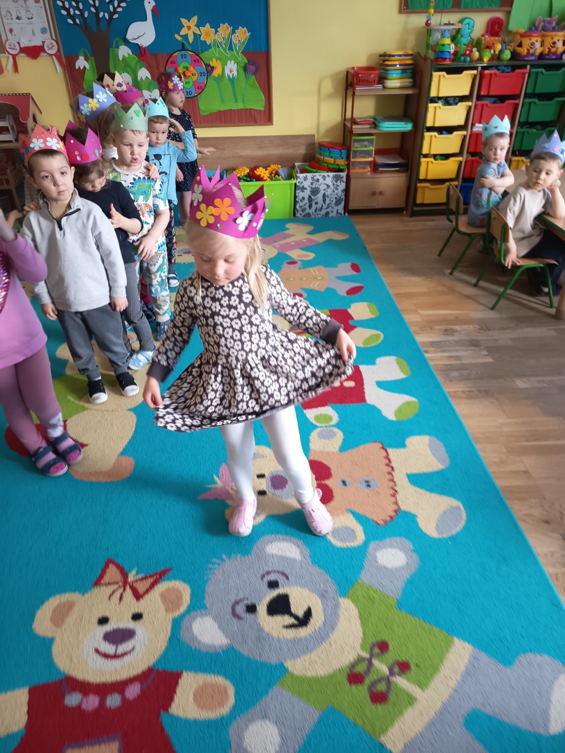W marcu dzieci z grupy „Pszczółek” zajęły się teatrem. Dzieci stworzyły własne królewskie korony , w których zatańczyły dworski taniec- był to nasz polski „polonez”. Przedszkolaki zaprezentowały także królewskie ukłony.  W ramach realizacji tematu „W  w teatrze i w kinie” dzieci obejrzały również spektakl „Czerwony Kapturek” w wykonaniu swoich nauczycielek. Samodzielnie „Pszczółki” pokazały różne zwierzęta w zabawie dramowej. Przedszkolaki zobaczyły także fragment przedstawienia baletowego