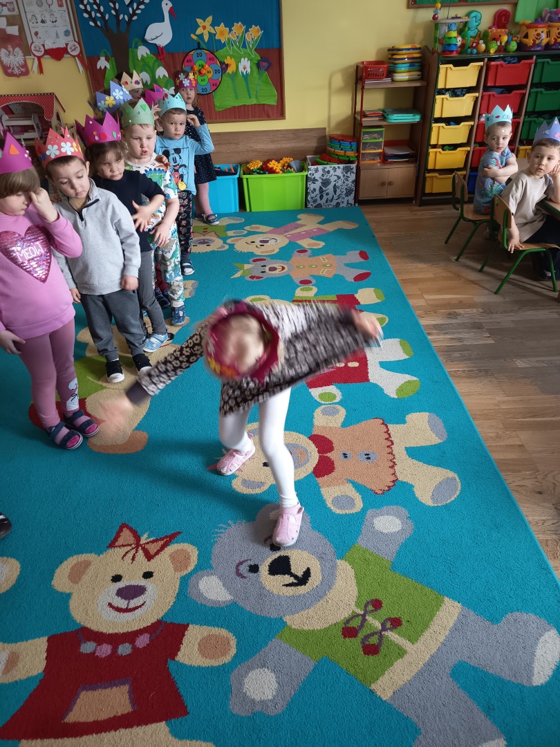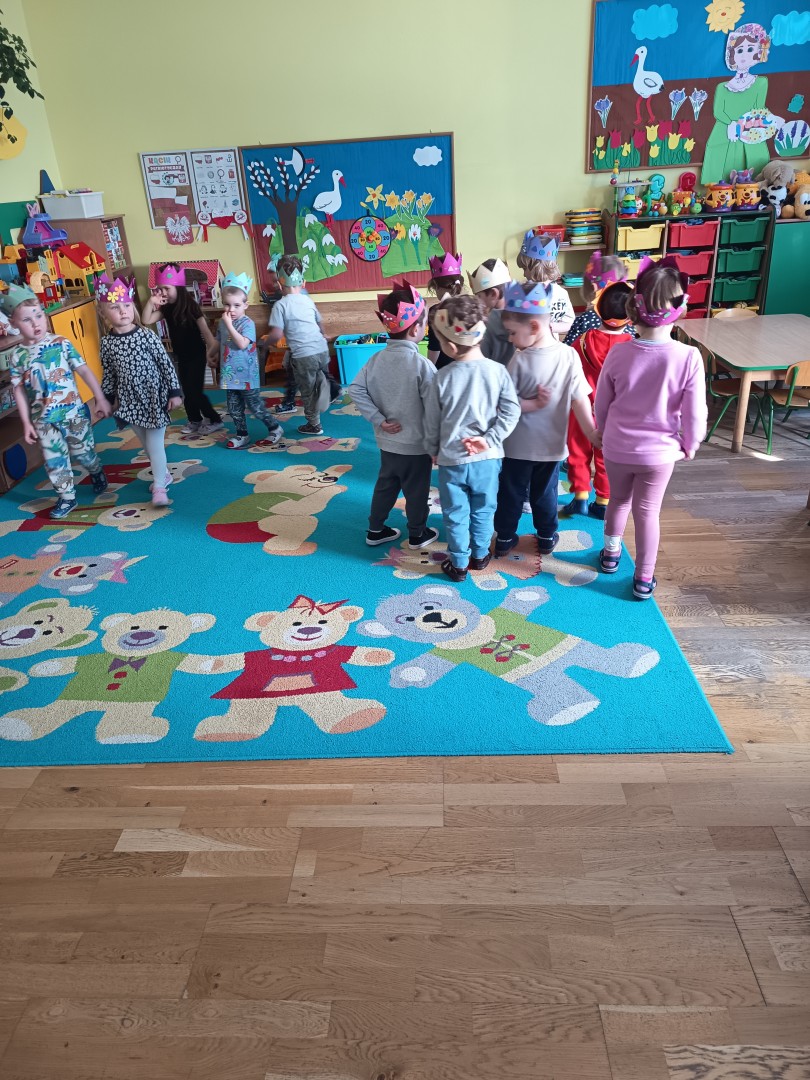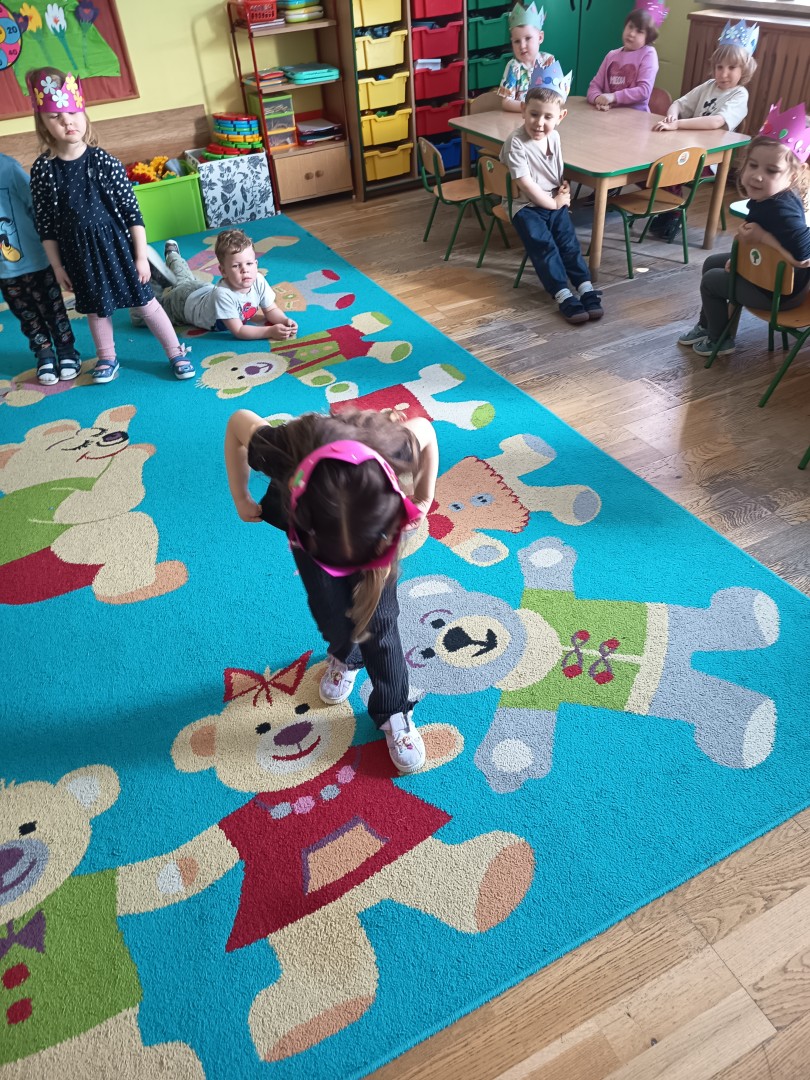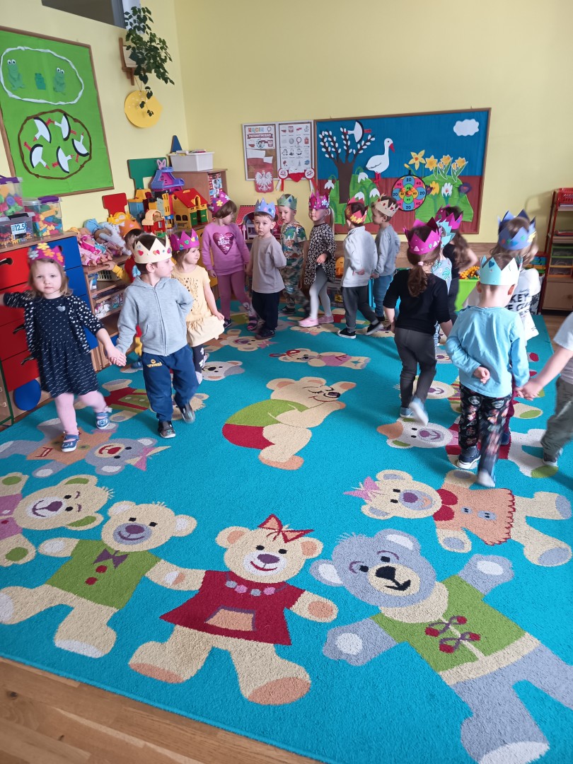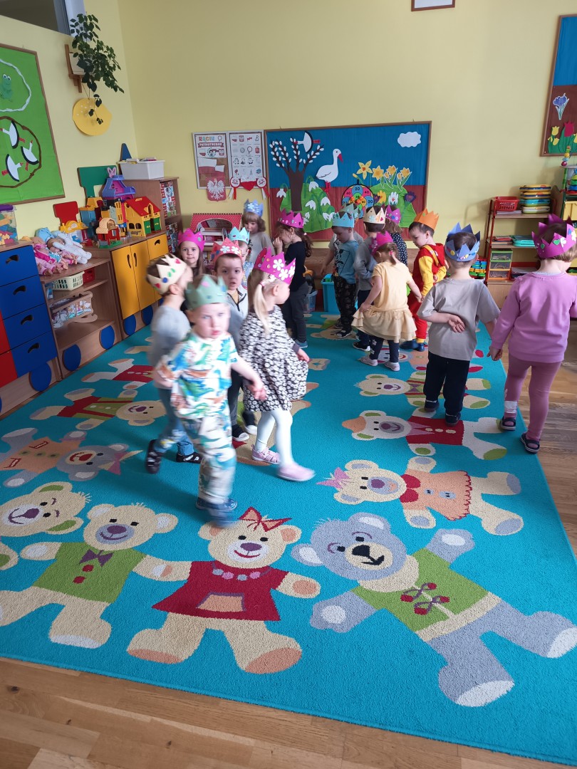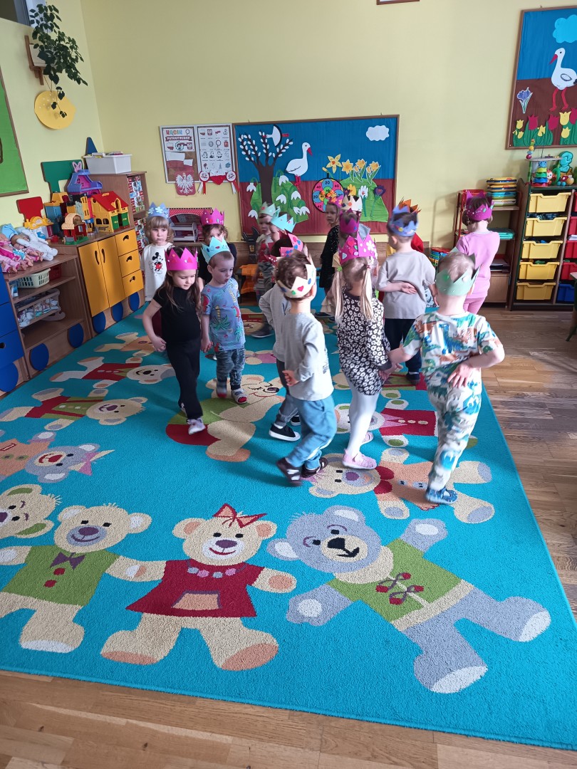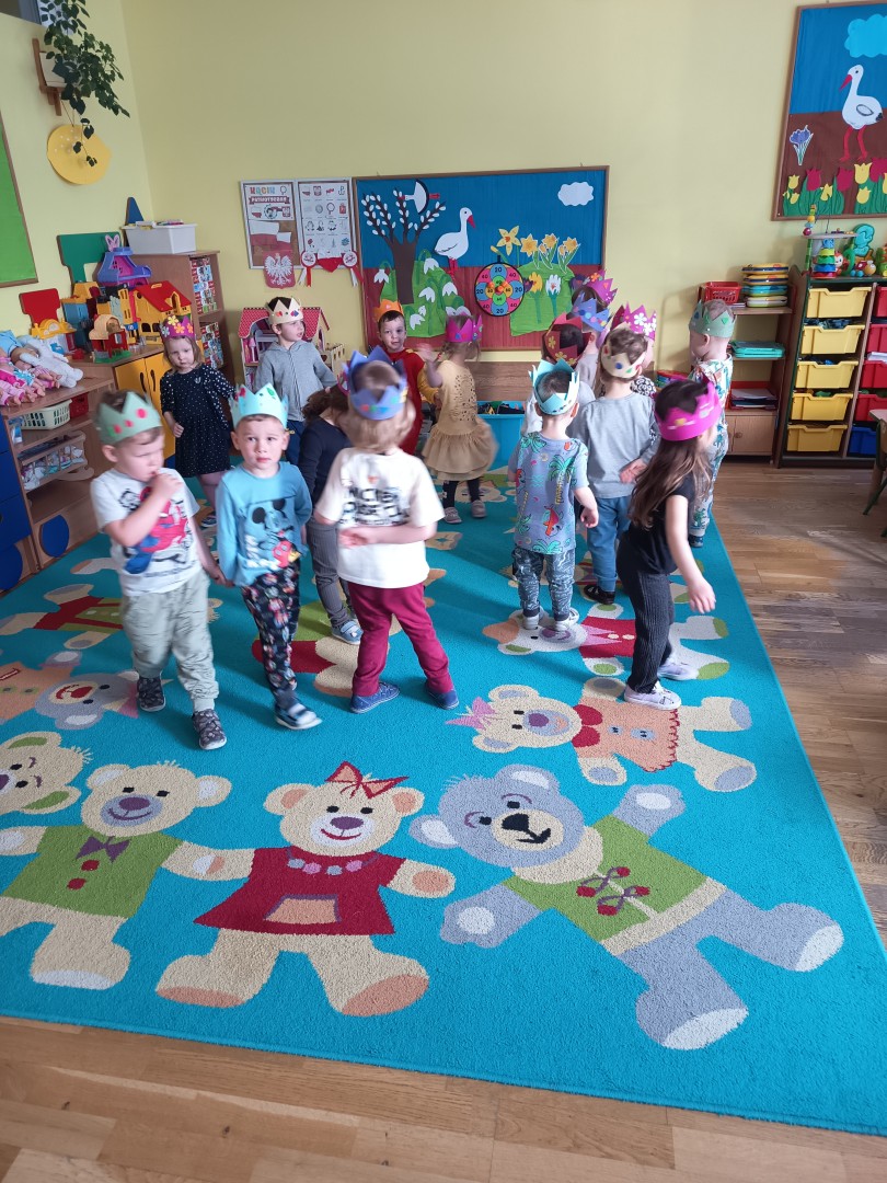 W marcu dzieci z grupy „Pszczółek” zajęły się teatrem. Dzieci stworzyły własne królewskie korony , w których zatańczyły dworski taniec- był to nasz polski „polonez”. Przedszkolaki zaprezentowały także królewskie ukłony.  W ramach realizacji tematu „W  w teatrze i w kinie” dzieci obejrzały również spektakl „Czerwony Kapturek” w wykonaniu swoich nauczycielek. Samodzielnie „Pszczółki” pokazały różne zwierzęta w zabawie dramowej. Przedszkolaki zobaczyły także fragment przedstawienia baletowego