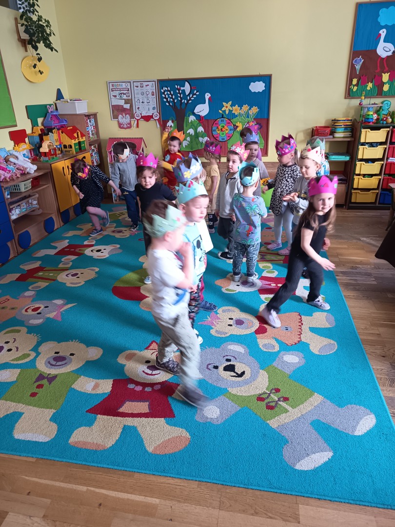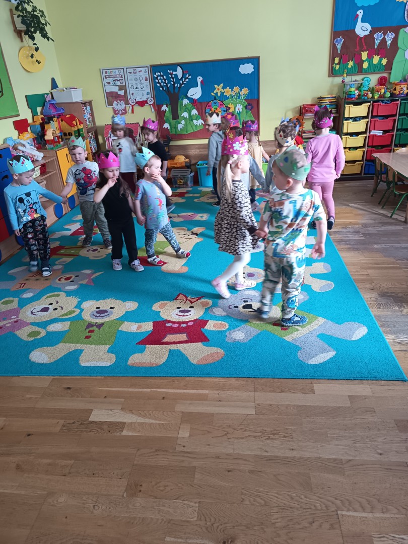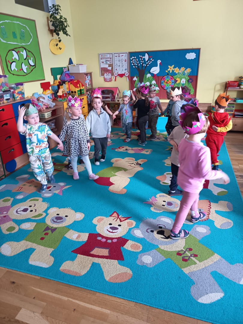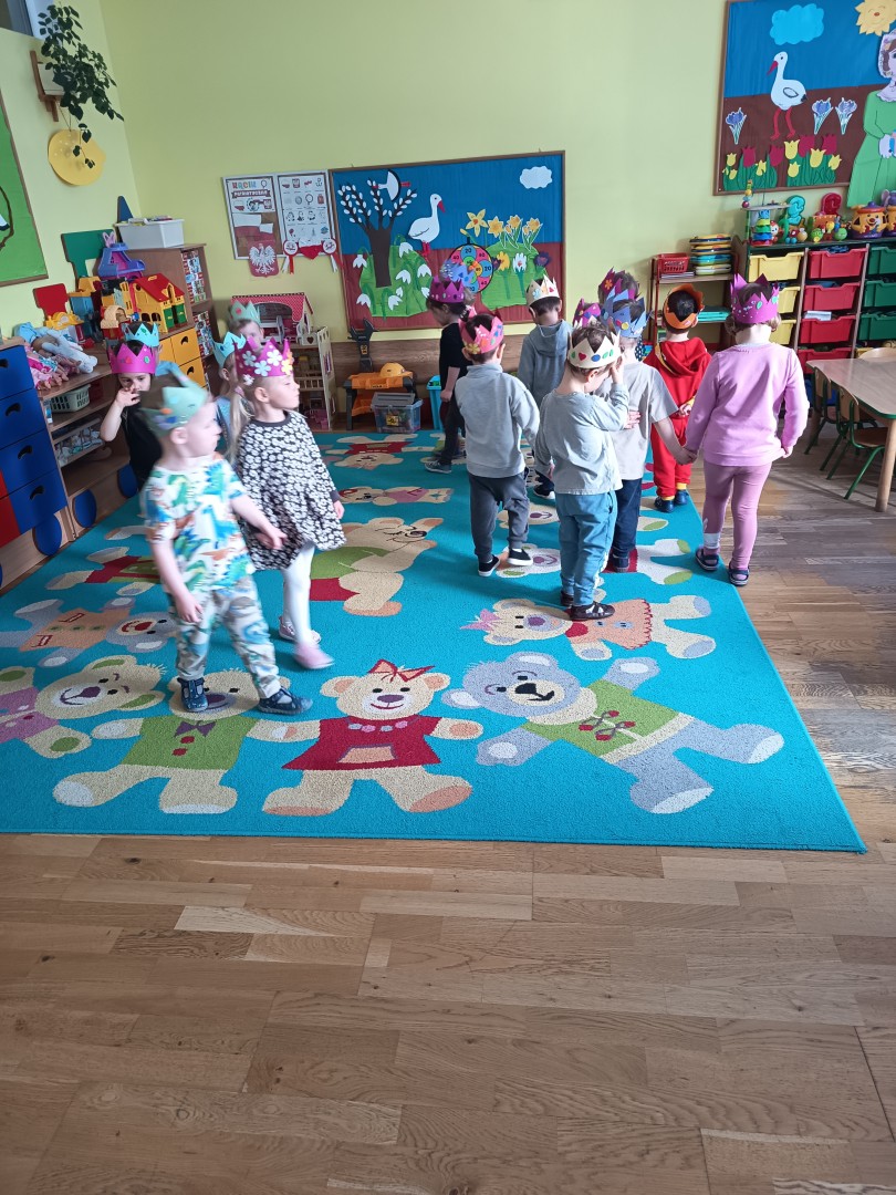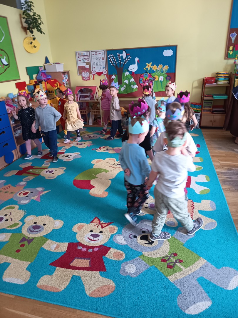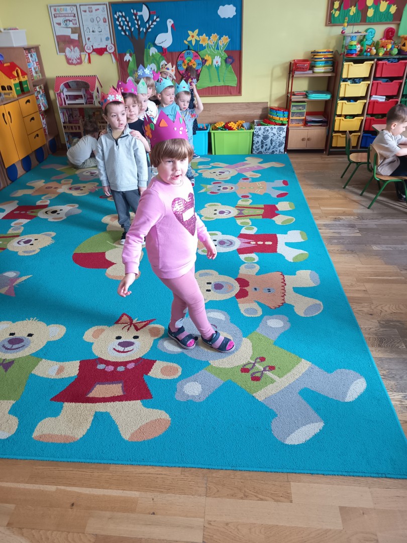 W marcu dzieci z grupy „Pszczółek” zajęły się teatrem. Dzieci stworzyły własne królewskie korony , w których zatańczyły dworski taniec- był to nasz polski „polonez”. Przedszkolaki zaprezentowały także królewskie ukłony.  W ramach realizacji tematu „W  w teatrze i w kinie” dzieci obejrzały również spektakl „Czerwony Kapturek” w wykonaniu swoich nauczycielek. Samodzielnie „Pszczółki” pokazały różne zwierzęta w zabawie dramowej. Przedszkolaki zobaczyły także fragment przedstawienia baletowego