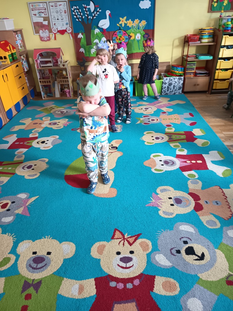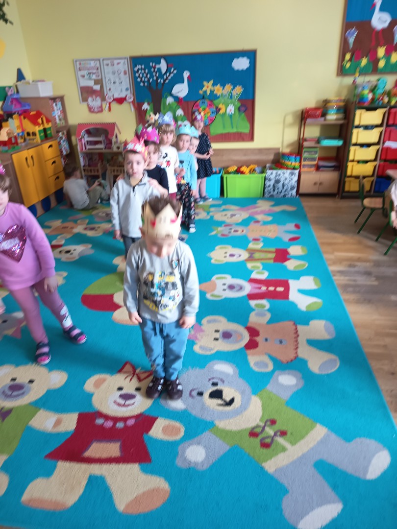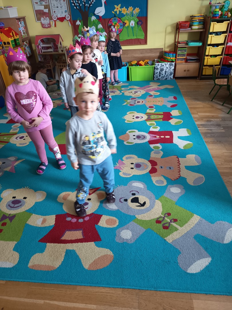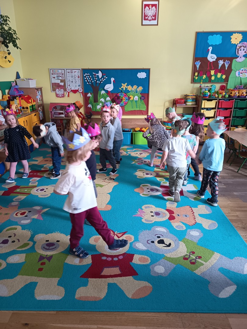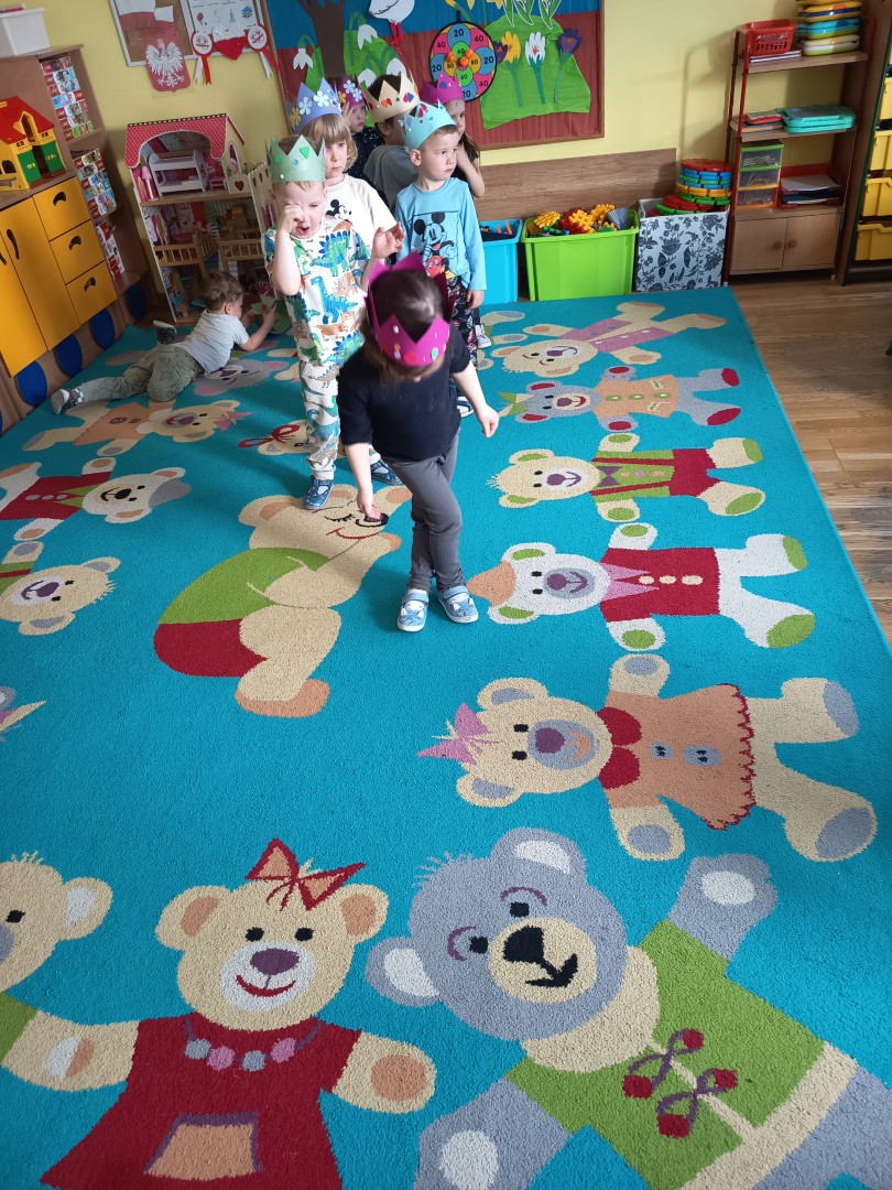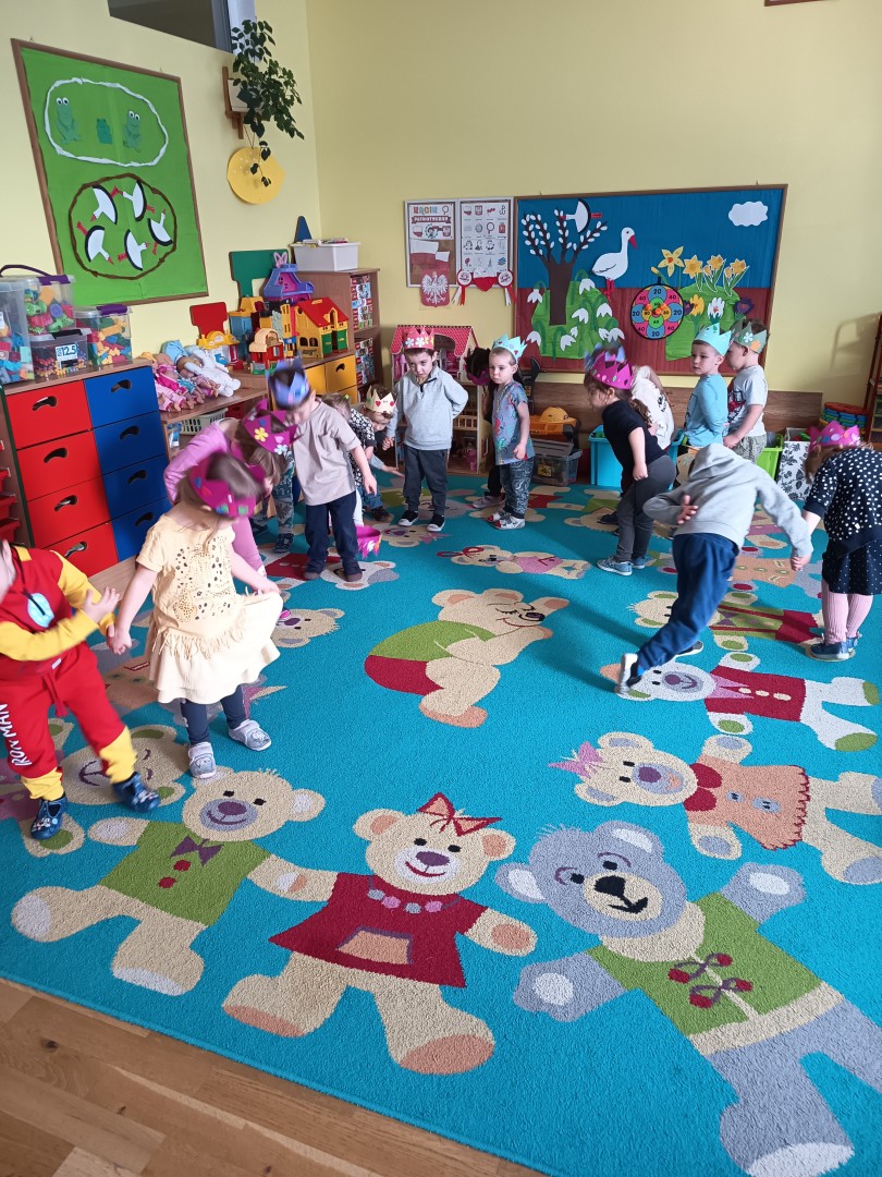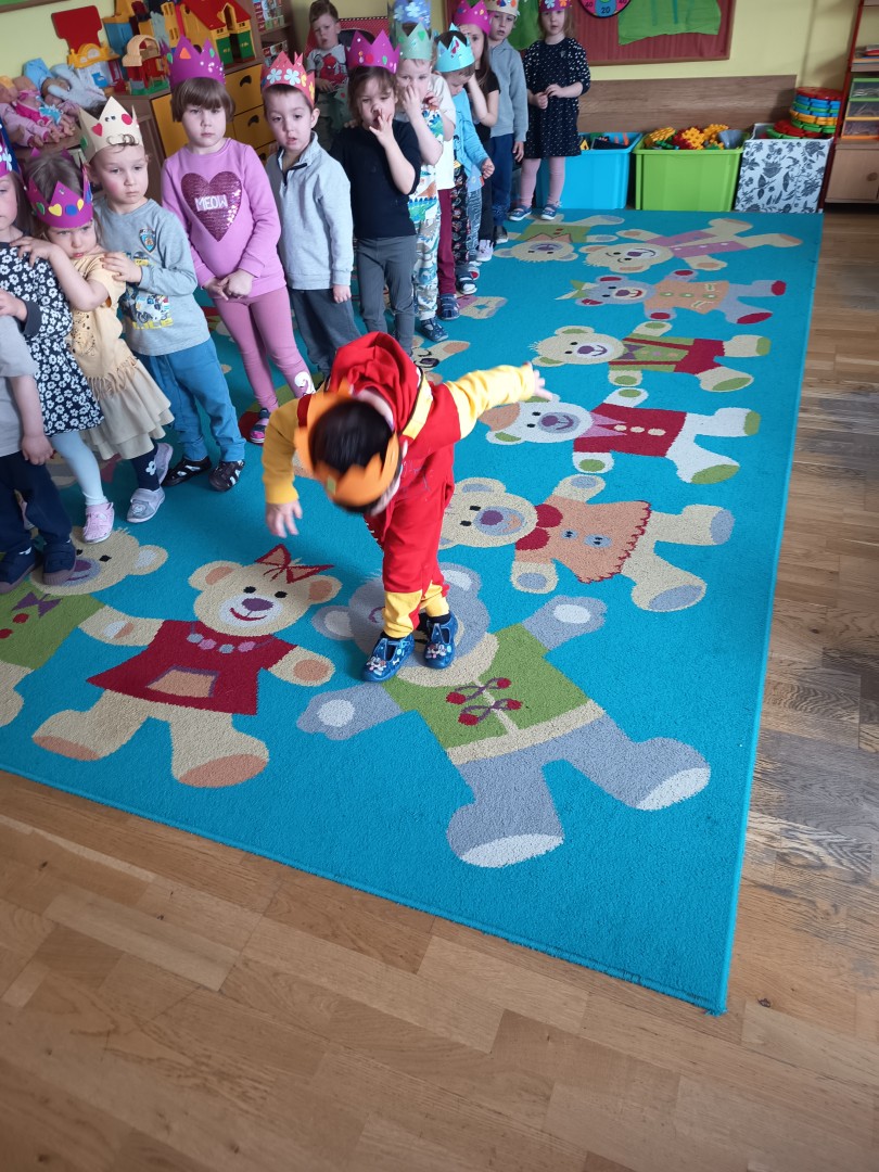 W marcu dzieci z grupy „Pszczółek” zajęły się teatrem. Dzieci stworzyły własne królewskie korony , w których zatańczyły dworski taniec- był to nasz polski „polonez”. Przedszkolaki zaprezentowały także królewskie ukłony.  W ramach realizacji tematu „W  w teatrze i w kinie” dzieci obejrzały również spektakl „Czerwony Kapturek” w wykonaniu swoich nauczycielek. Samodzielnie „Pszczółki” pokazały różne zwierzęta w zabawie dramowej. Przedszkolaki zobaczyły także fragment przedstawienia baletowego