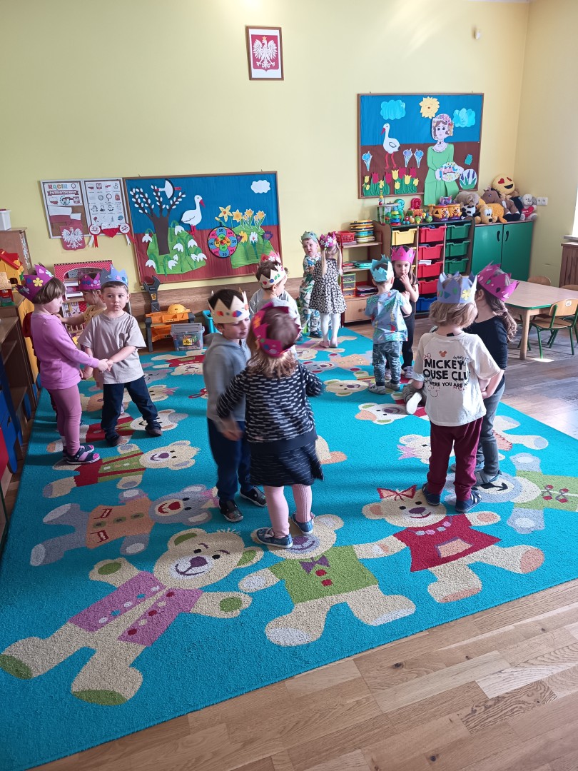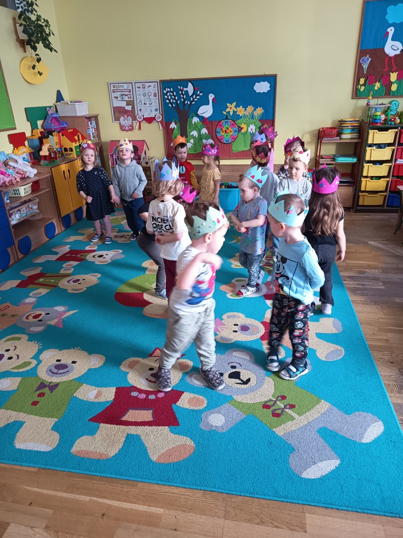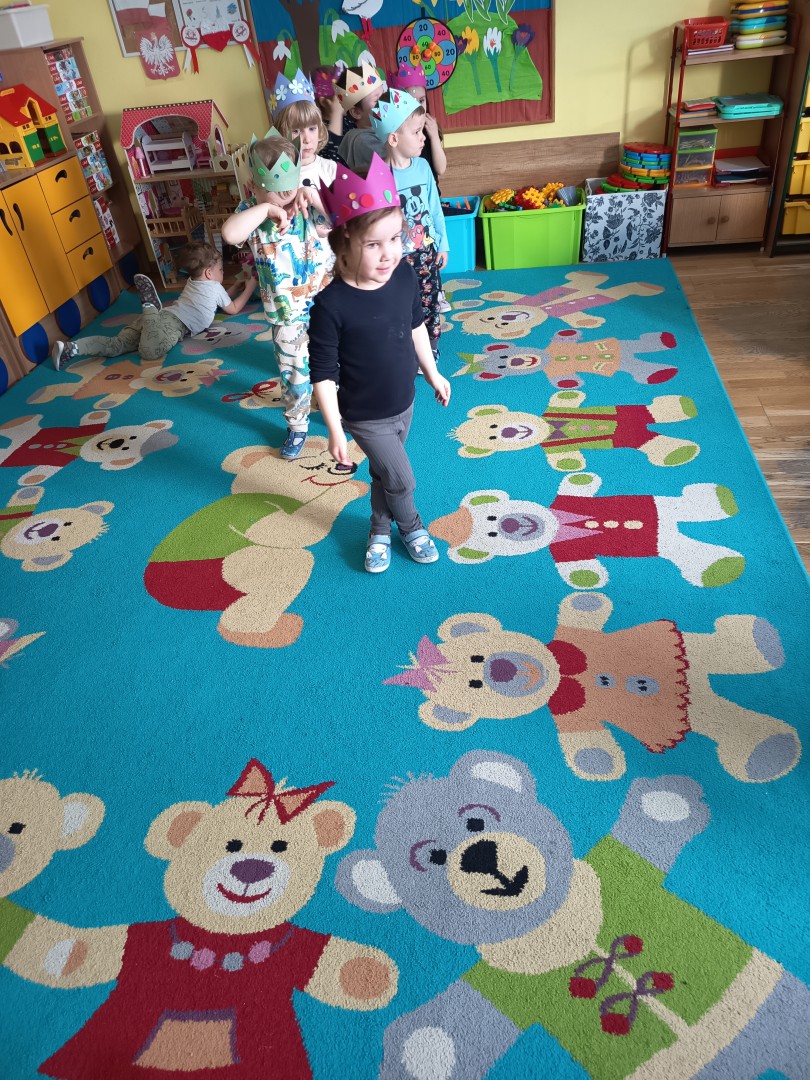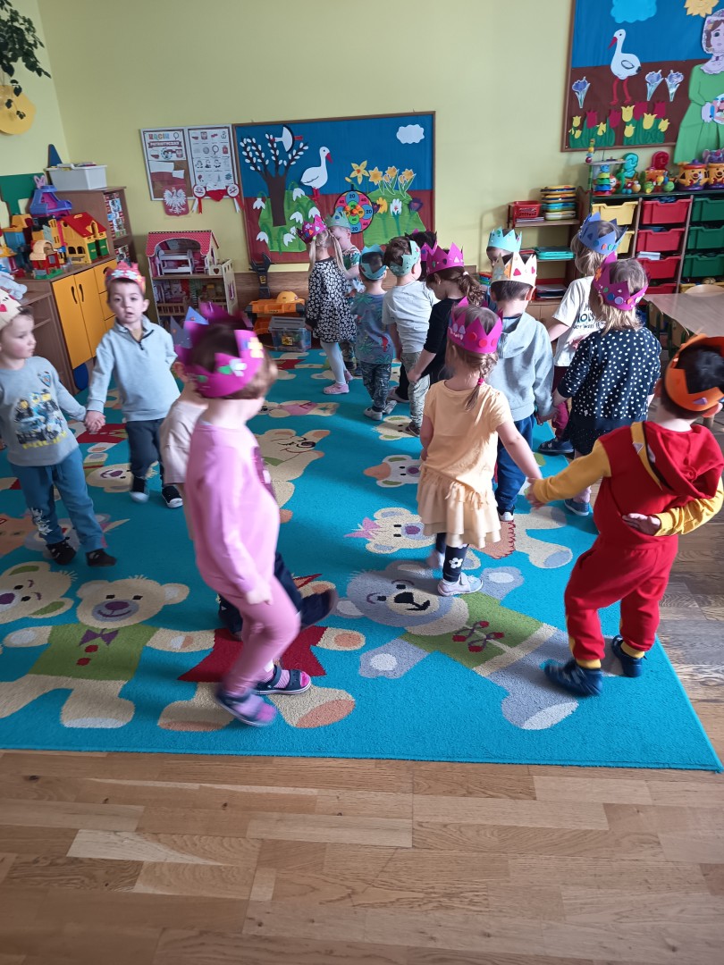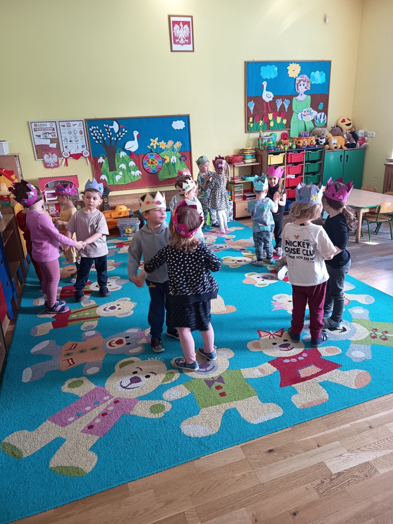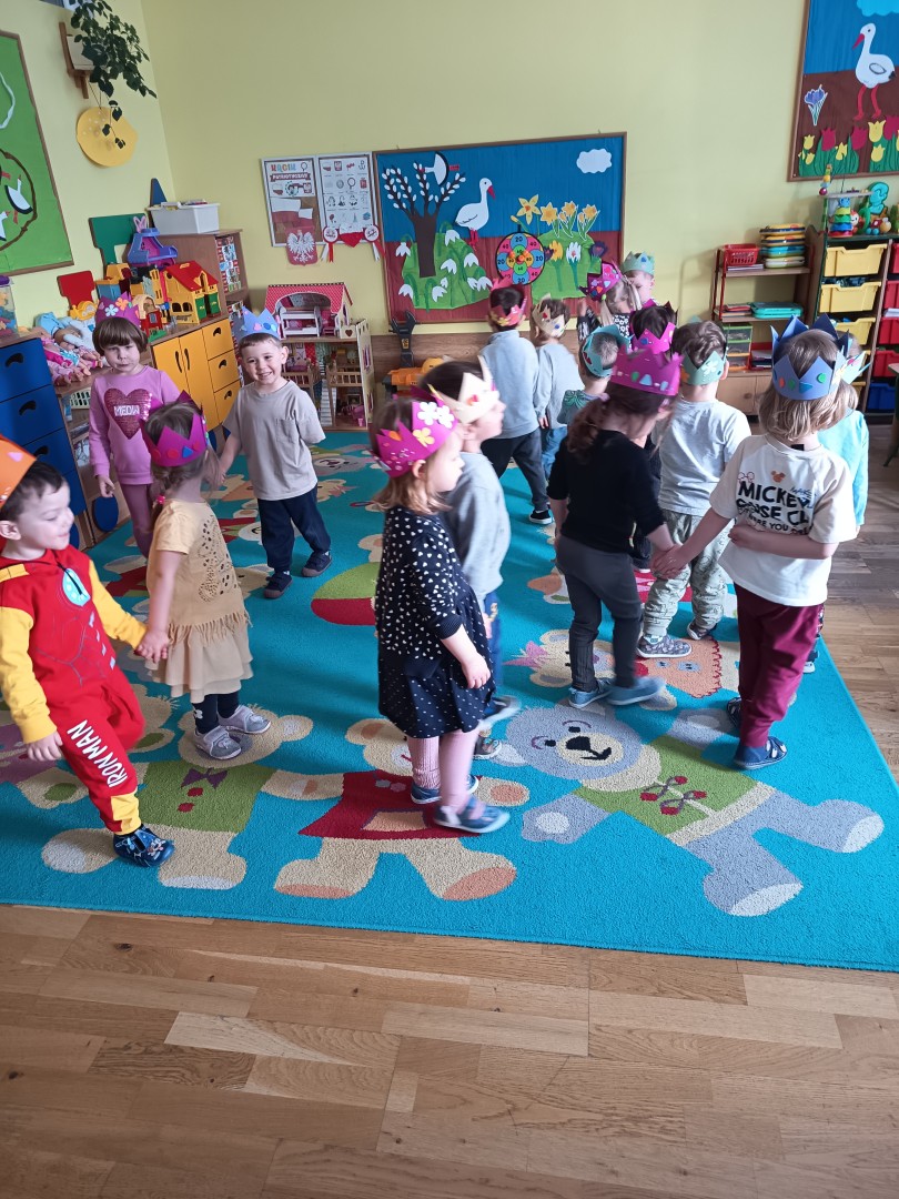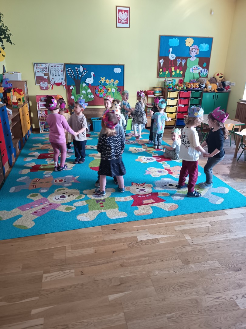 W marcu dzieci z grupy „Pszczółek” zajęły się teatrem. Dzieci stworzyły własne królewskie korony , w których zatańczyły dworski taniec- był to nasz polski „polonez”. Przedszkolaki zaprezentowały także królewskie ukłony.  W ramach realizacji tematu „W  w teatrze i w kinie” dzieci obejrzały również spektakl „Czerwony Kapturek” w wykonaniu swoich nauczycielek. Samodzielnie „Pszczółki” pokazały różne zwierzęta w zabawie dramowej. Przedszkolaki zobaczyły także fragment przedstawienia baletowego