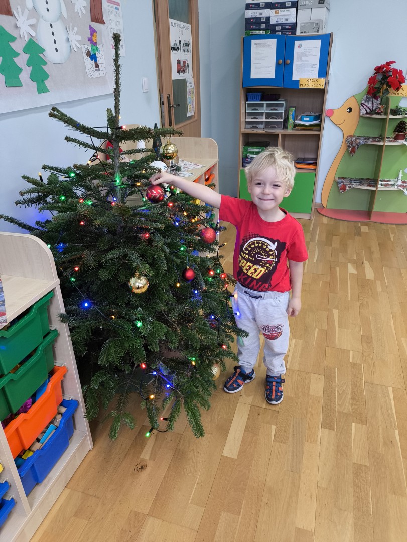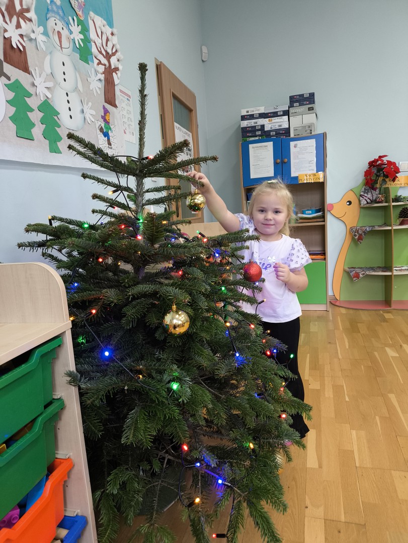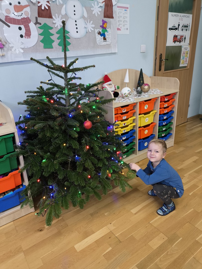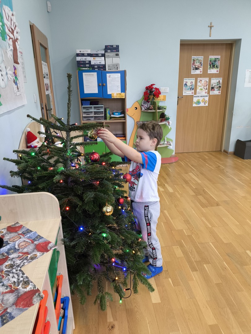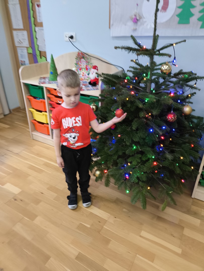 Stało się to już tradycją, że co roku nasze przedszkolaki ubierają przedszkolną choinkę. Tego dnia wszystkie dzieci zebrały się  i samodzielnie zawieszały na choince  ozdoby. Jak zwykle towarzyszyło temu wydarzeń  wiele zabawy i radości.