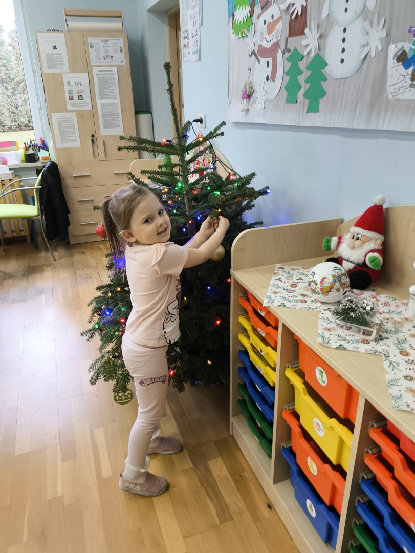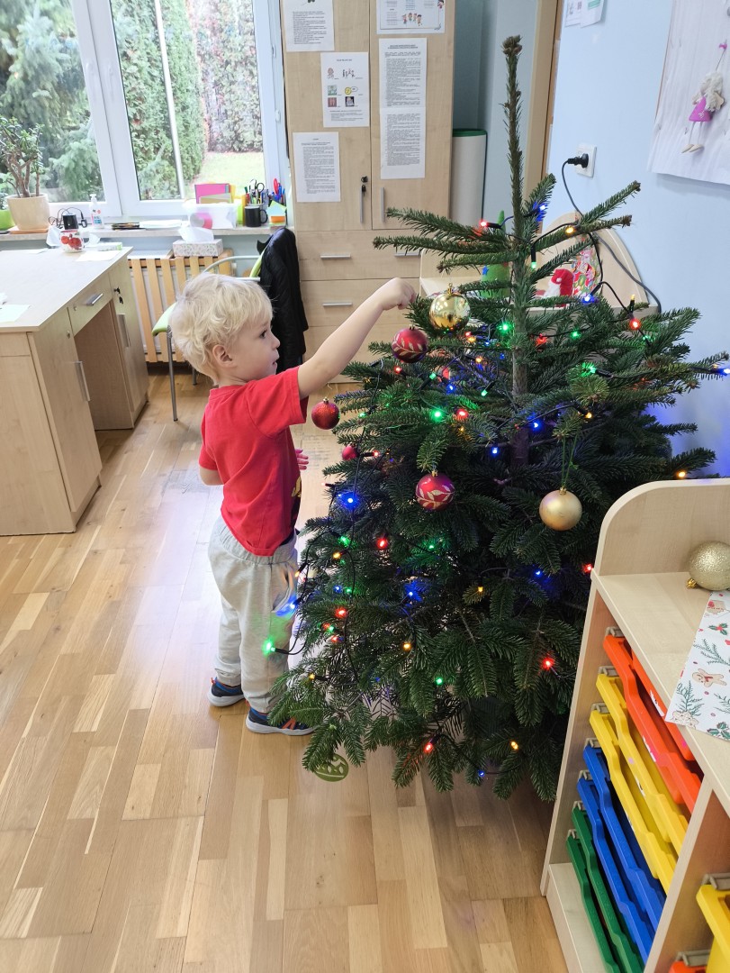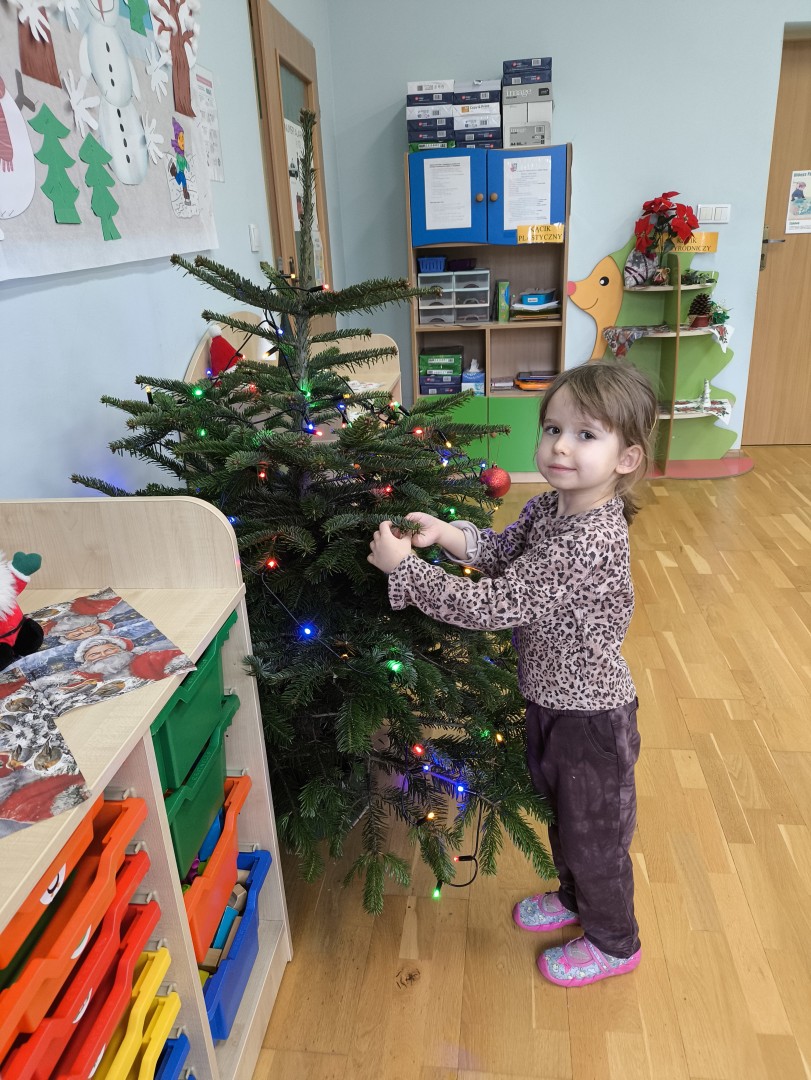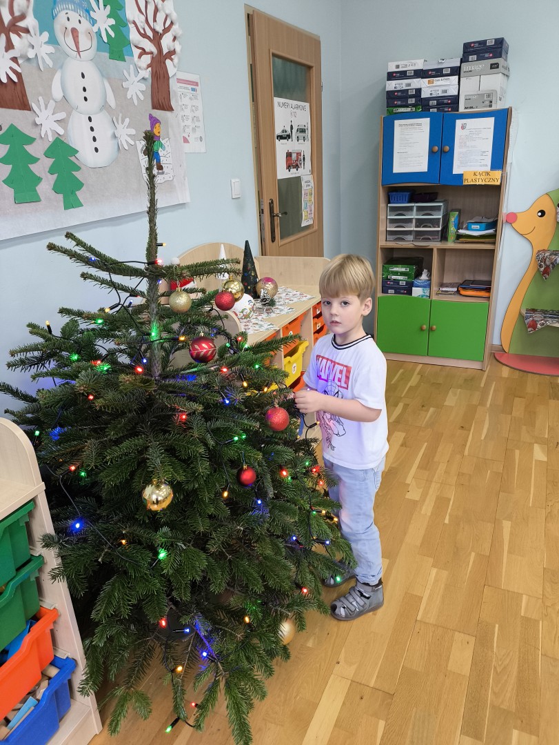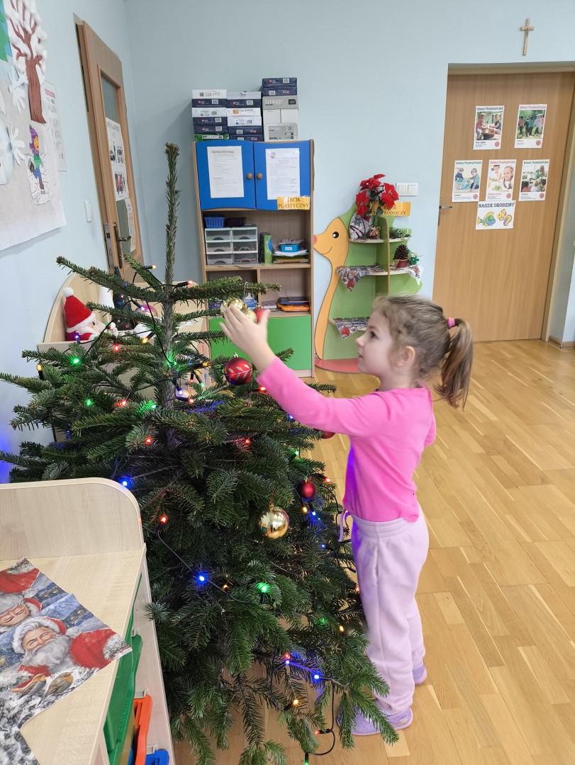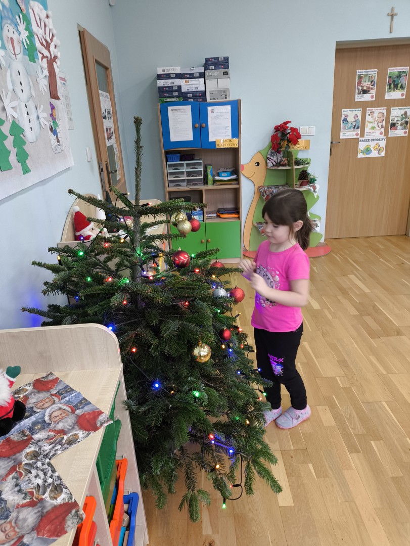 Stało się to już tradycją, że co roku nasze przedszkolaki ubierają przedszkolną choinkę. Tego dnia wszystkie dzieci zebrały się  i samodzielnie zawieszały na choince  ozdoby. Jak zwykle towarzyszyło temu wydarzeń  wiele zabawy i radości.