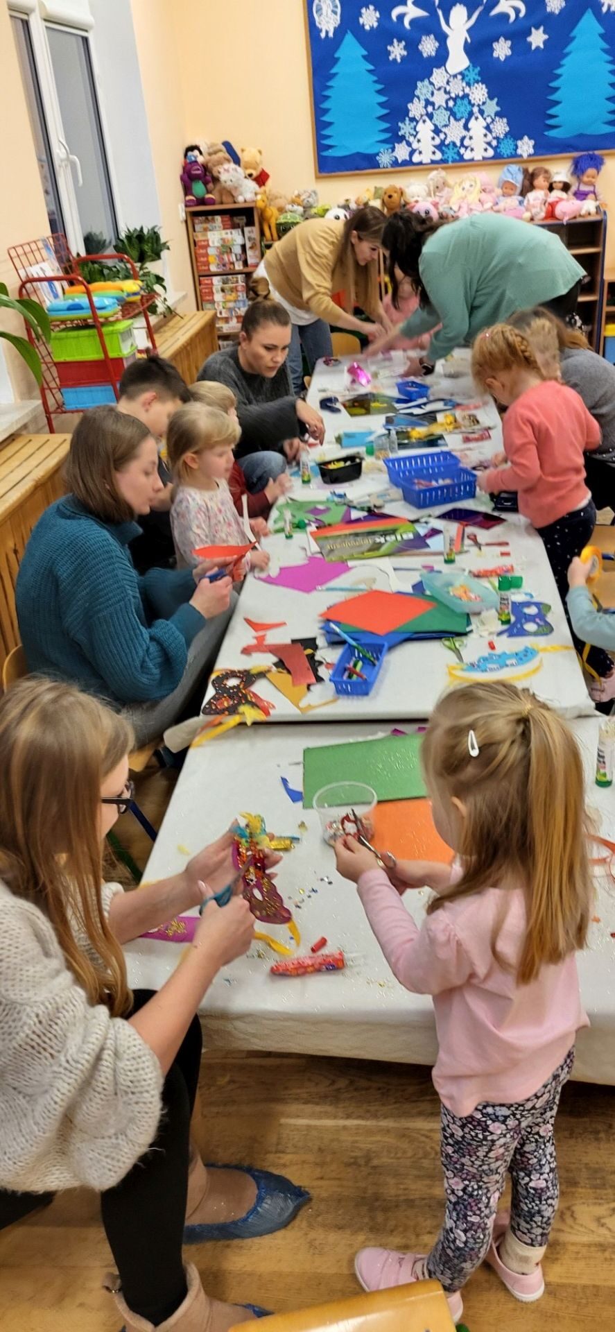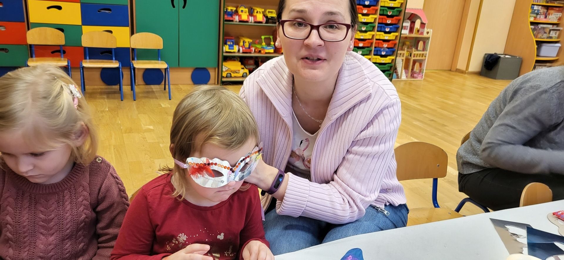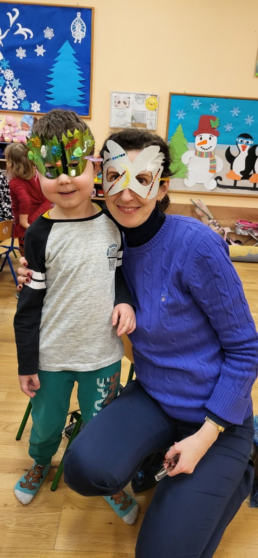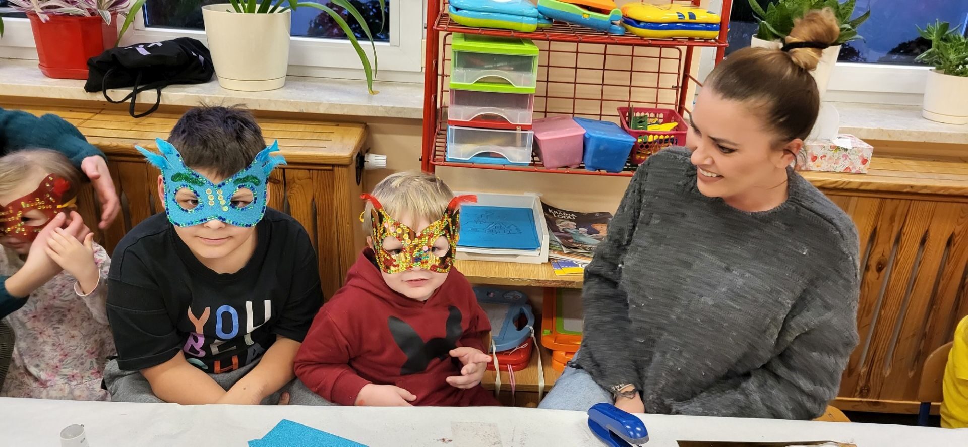 Dnia 09.01.2024 w grupie II ,,Kotki’’ odbyło się spotkanie integracyjne rodziców i dzieci, podczas którego zostały wykonane maski karnawałowe . Tego typu spotkanie dało możliwość twórczego spędzenia czasu z dziećmi .Wszyscy z zapałem wykonywali maski karnawałowe , wykazując się przy tym pomysłowością i kreatywnością . Na zakończenie zrobiliśmy pamiątkowe zdjęcia w maskach karnawałowych.Spotkanie przebiegło w miłej i wesołej atmosferze. Serdecznie dziękujemy rodzicom za przybycie.