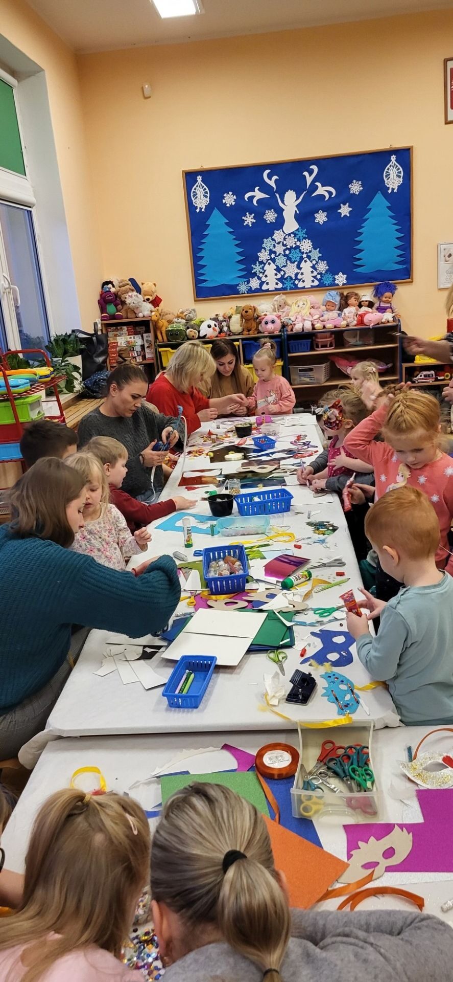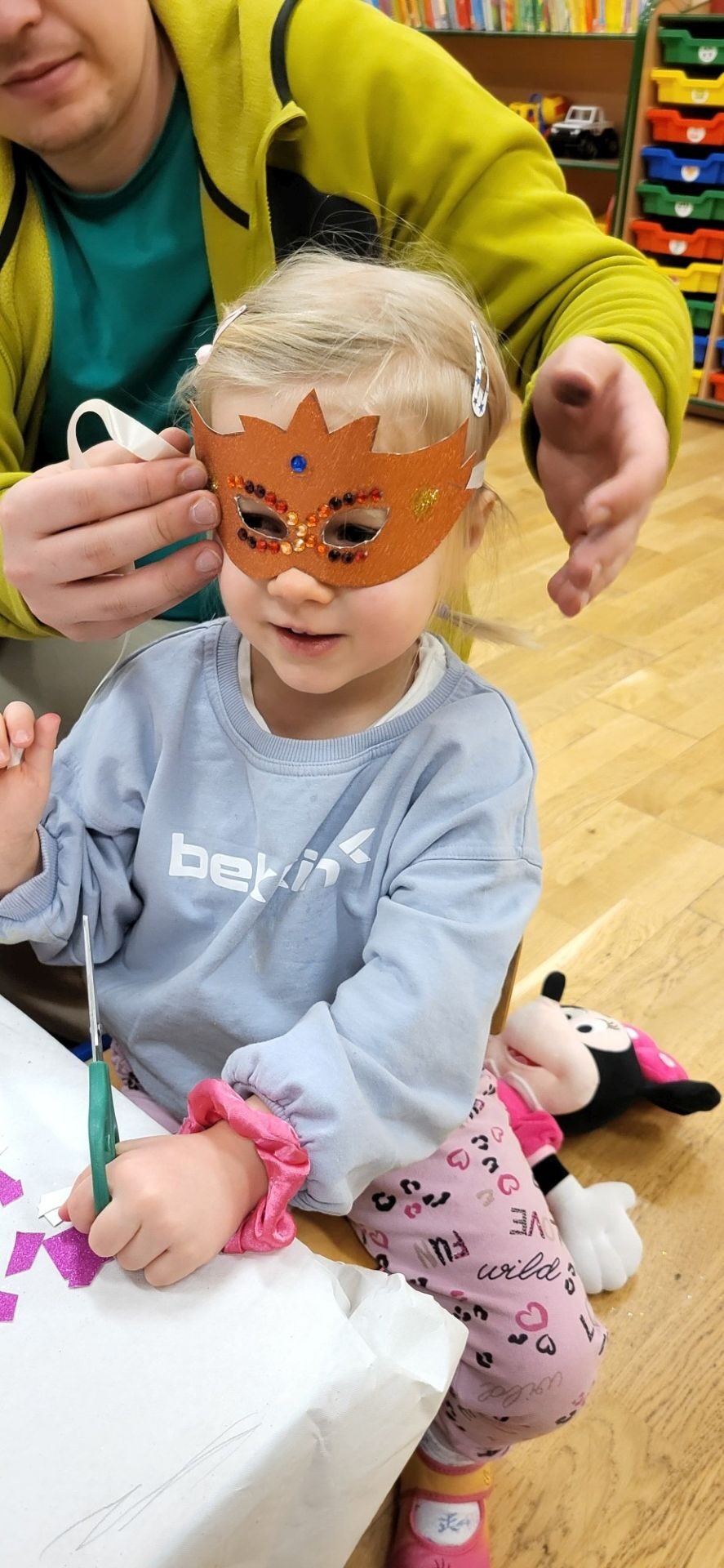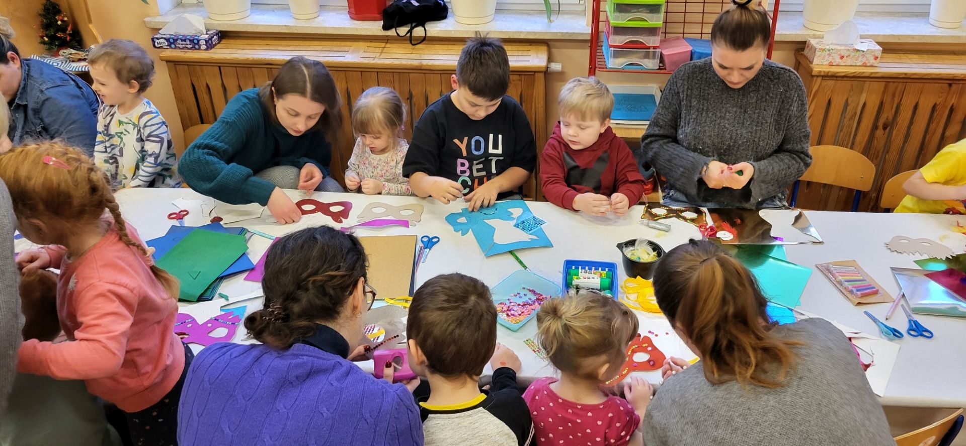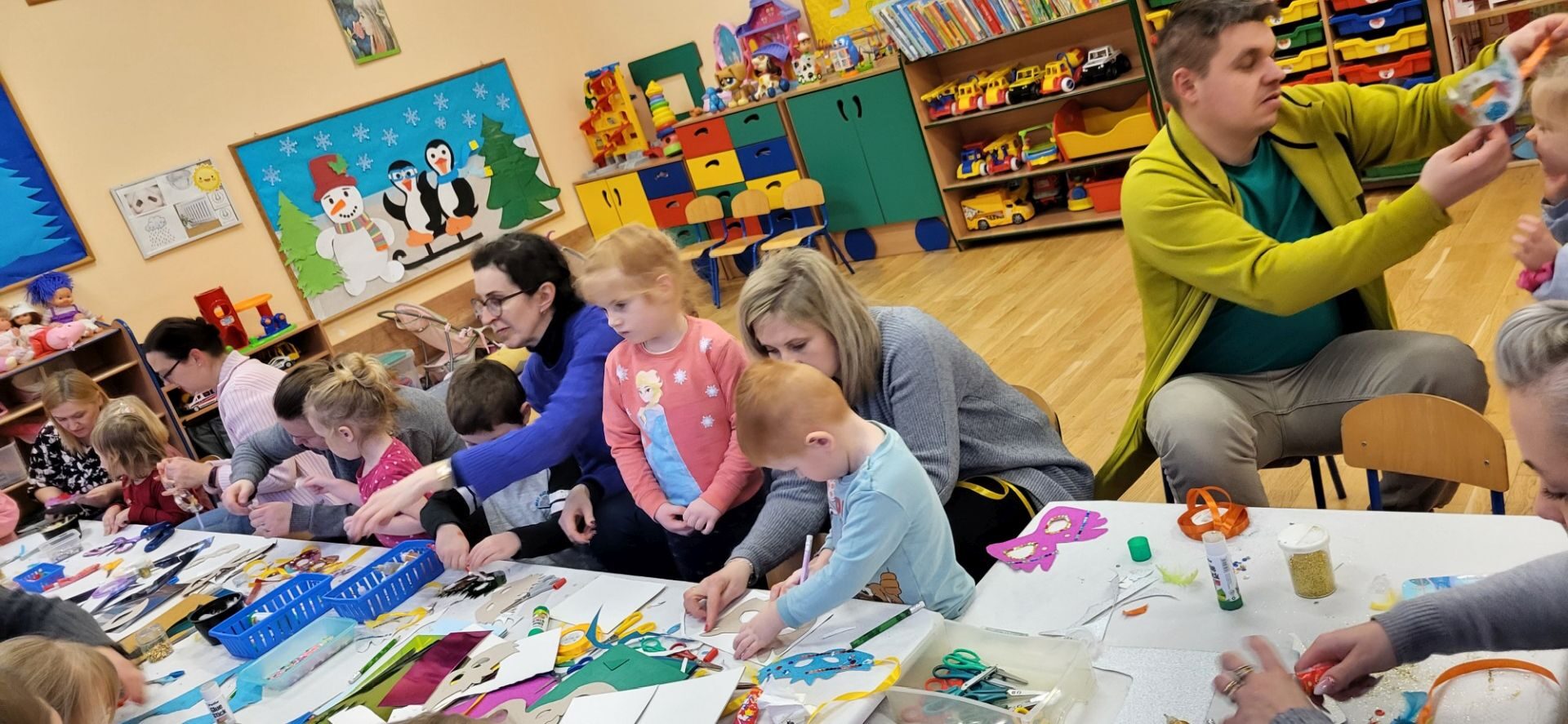 Dnia 09.01.2024 w grupie II ,,Kotki’’ odbyło się spotkanie integracyjne rodziców i dzieci, podczas którego zostały wykonane maski karnawałowe . Tego typu spotkanie dało możliwość twórczego spędzenia czasu z dziećmi .Wszyscy z zapałem wykonywali maski karnawałowe , wykazując się przy tym pomysłowością i kreatywnością . Na zakończenie zrobiliśmy pamiątkowe zdjęcia w maskach karnawałowych.Spotkanie przebiegło w miłej i wesołej atmosferze. Serdecznie dziękujemy rodzicom za przybycie.