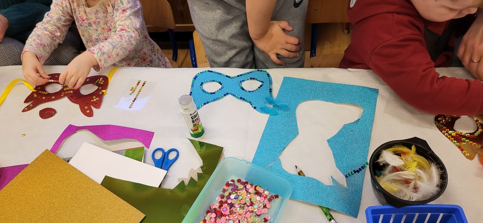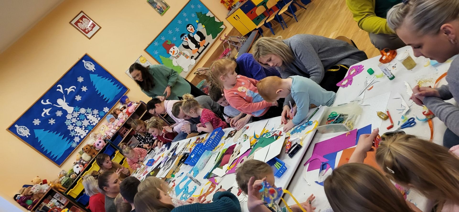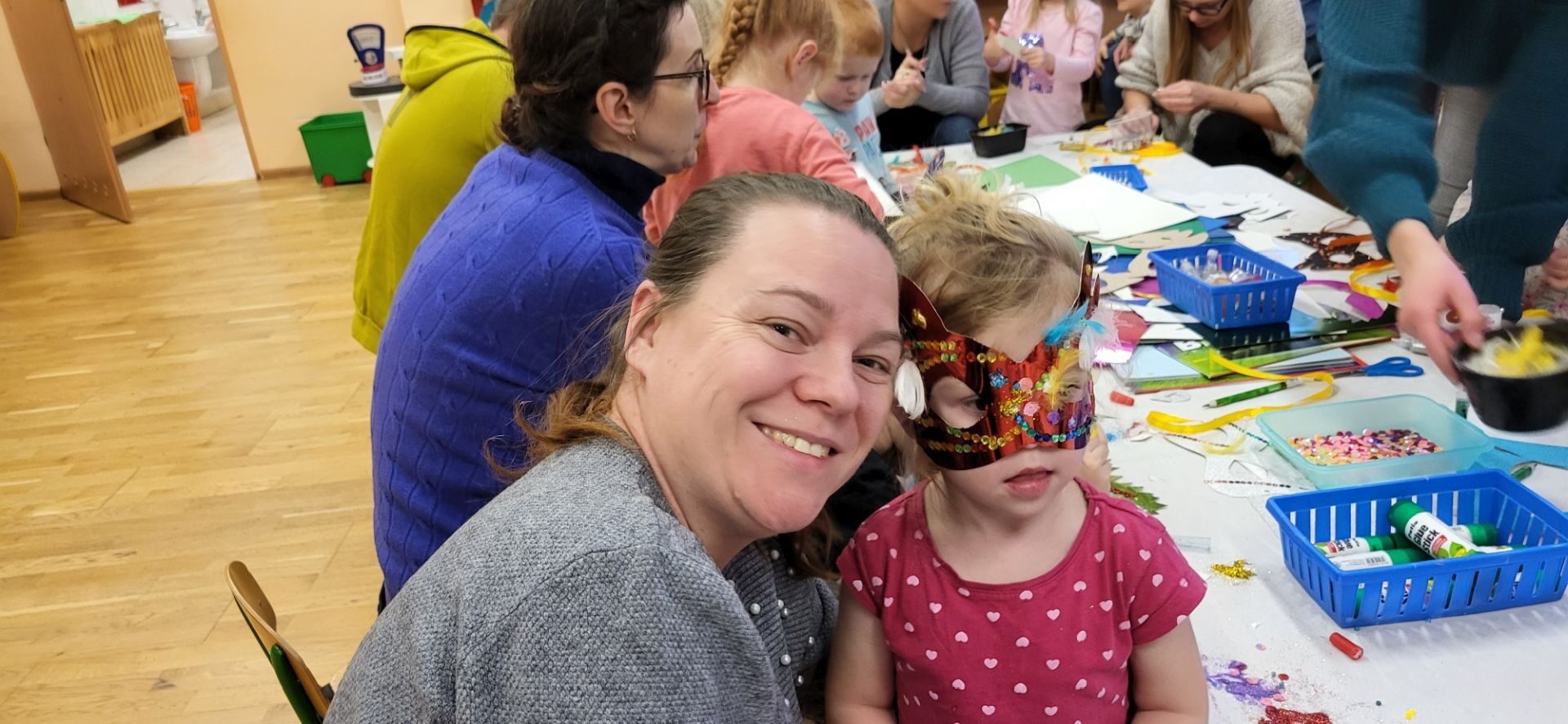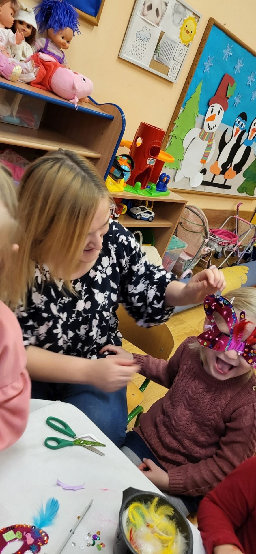 Dnia 09.01.2024 w grupie II ,,Kotki’’ odbyło się spotkanie integracyjne rodziców i dzieci, podczas którego zostały wykonane maski karnawałowe . Tego typu spotkanie dało możliwość twórczego spędzenia czasu z dziećmi .Wszyscy z zapałem wykonywali maski karnawałowe , wykazując się przy tym pomysłowością i kreatywnością . Na zakończenie zrobiliśmy pamiątkowe zdjęcia w maskach karnawałowych.Spotkanie przebiegło w miłej i wesołej atmosferze. Serdecznie dziękujemy rodzicom za przybycie.