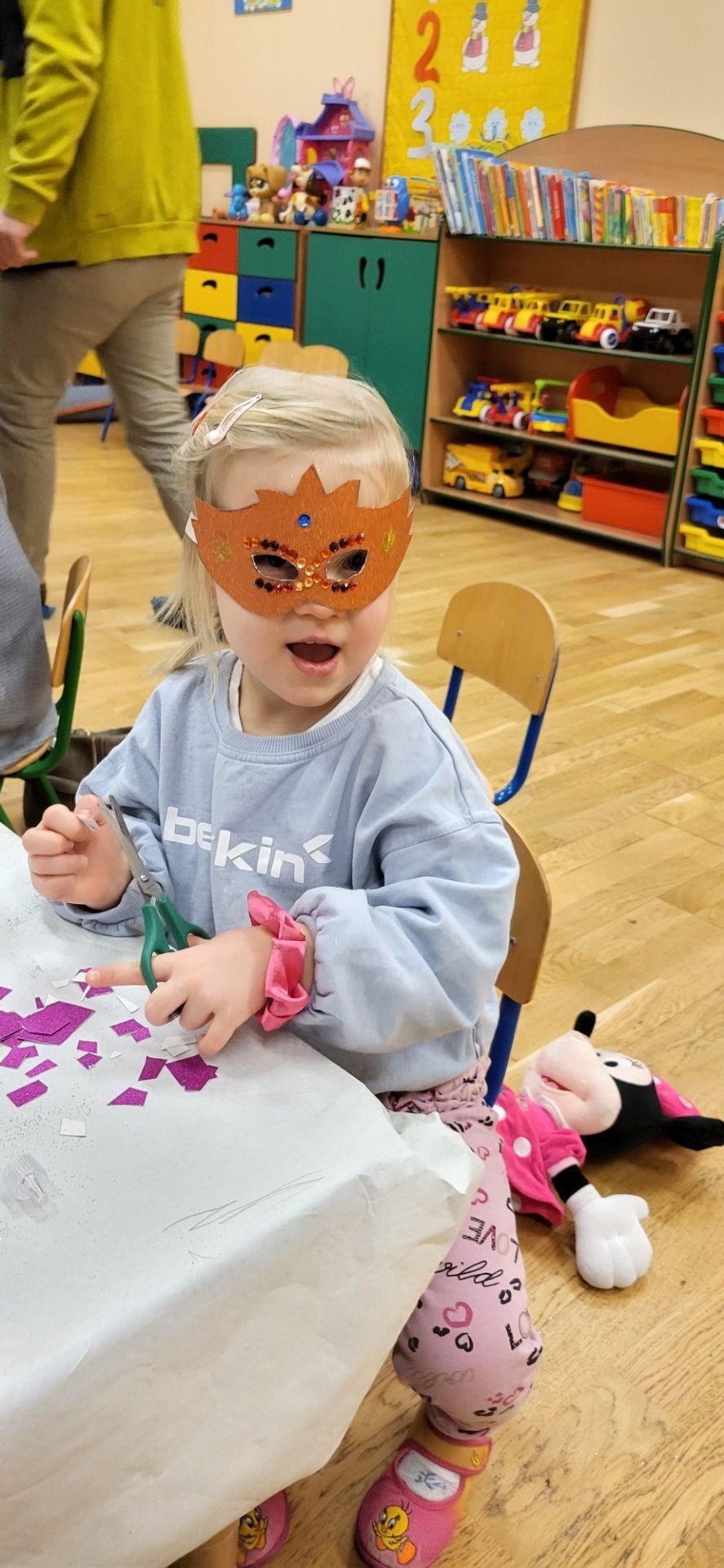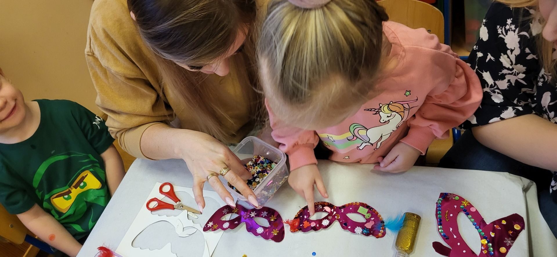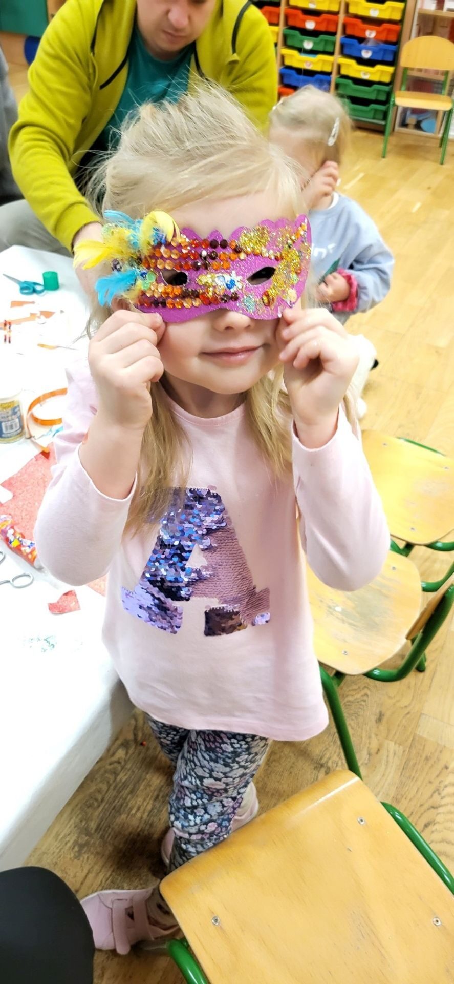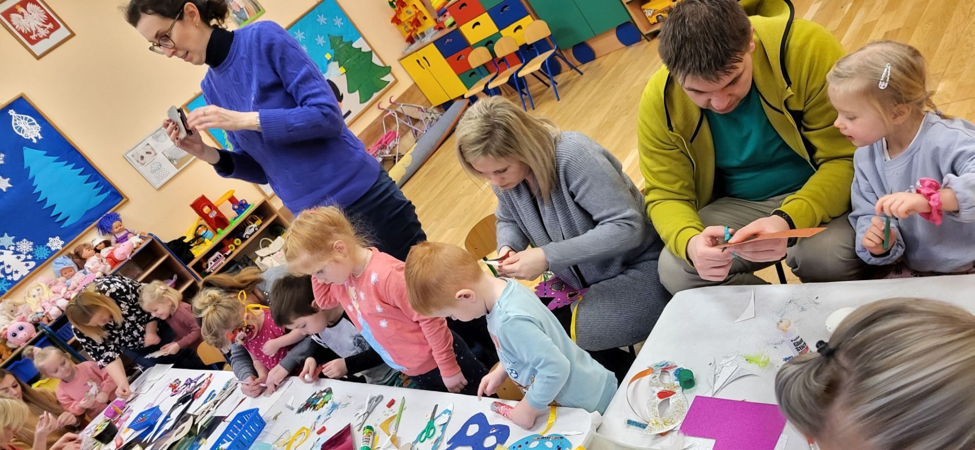 Dnia 09.01.2024 w grupie II ,,Kotki’’ odbyło się spotkanie integracyjne rodziców i dzieci, podczas którego zostały wykonane maski karnawałowe . Tego typu spotkanie dało możliwość twórczego spędzenia czasu z dziećmi .Wszyscy z zapałem wykonywali maski karnawałowe , wykazując się przy tym pomysłowością i kreatywnością . Na zakończenie zrobiliśmy pamiątkowe zdjęcia w maskach karnawałowych.Spotkanie przebiegło w miłej i wesołej atmosferze. Serdecznie dziękujemy rodzicom za przybycie.