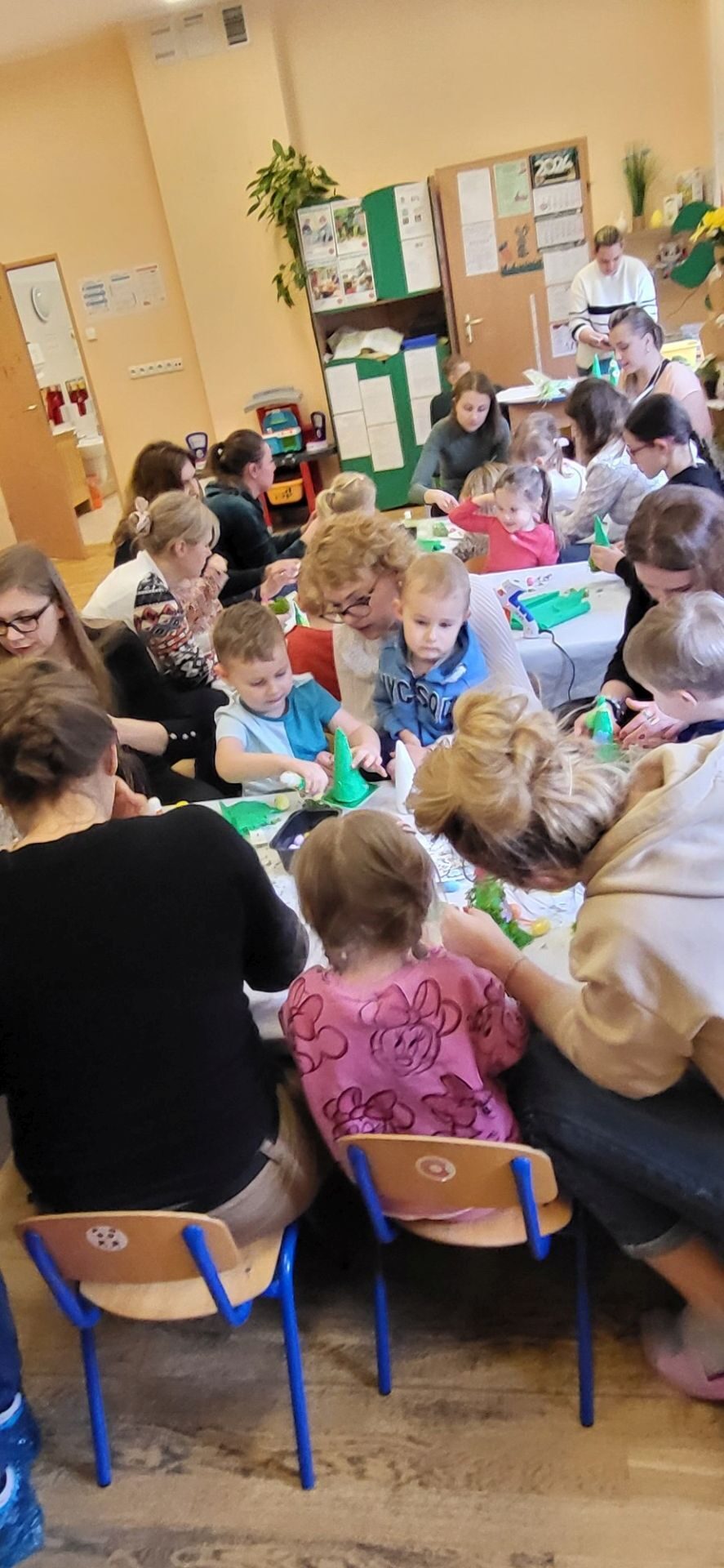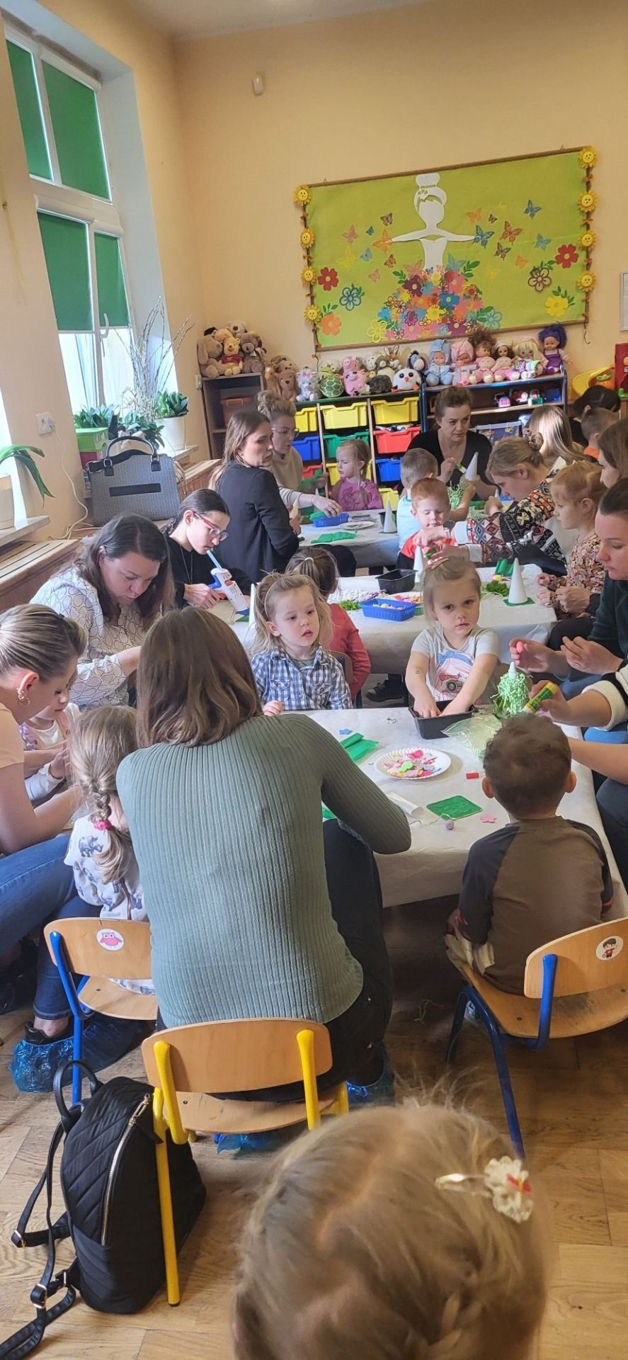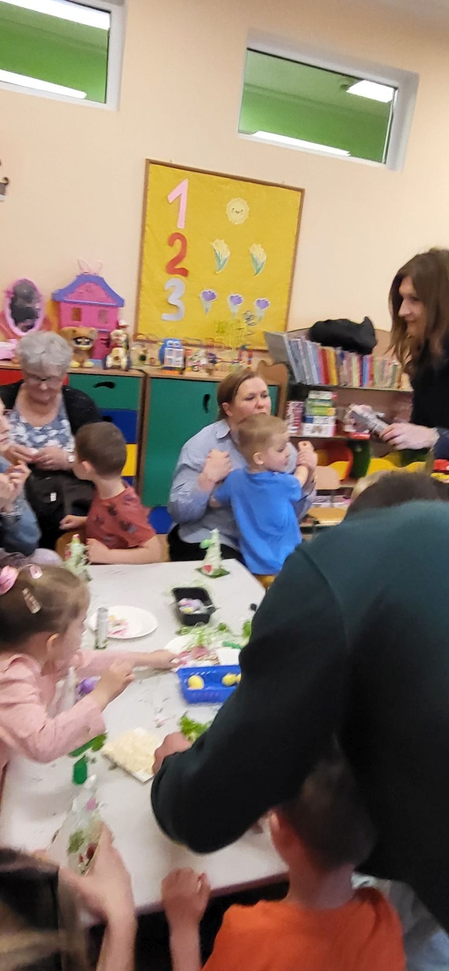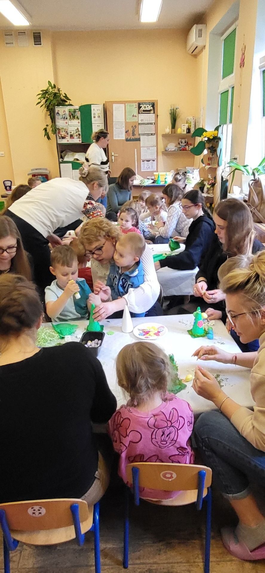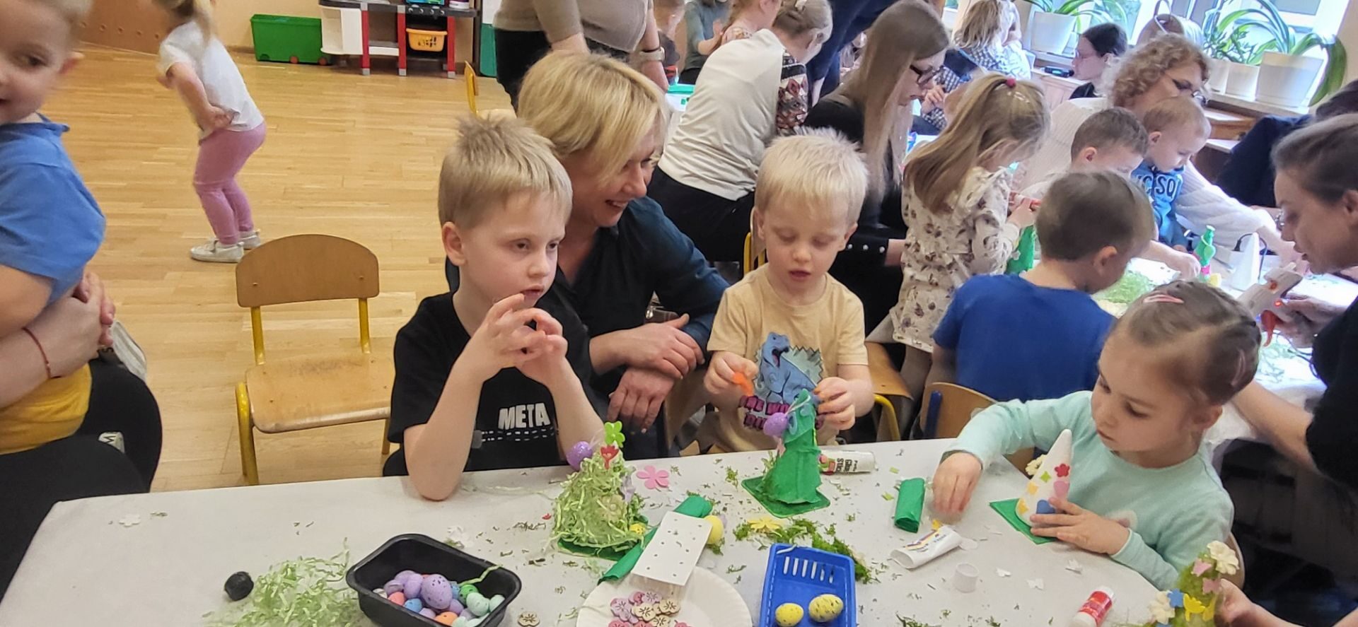 Dnia 19.03.2024 w grupie II Kotki odbyły się Warsztaty Wielkanocne z udziałem dzieci oraz rodziców. Celem spotkania było propagowanie i kultywowanie tradycji związanej ze Świętami Wielkanocnymi. W miłej atmosferze i z dużym zaangażowaniem uczestników powstały niezwykłe drzewka wiosenno – wielkanocne ozdobione jajkami, kwiatami, motylkami, piórkami. Rodzice wraz z dziećmi wykazali się ogromną pomysłowością i kreatywnością. Cieszymy się, że w tak miłym i licznym gronie udało nam się wykonać piękne ozdoby. Dziękujemy wszystkim uczestnikom spotkania za serdeczną, miłą atmosferę, która wprowadziła nas wszystkich w przedświąteczny nastrój.