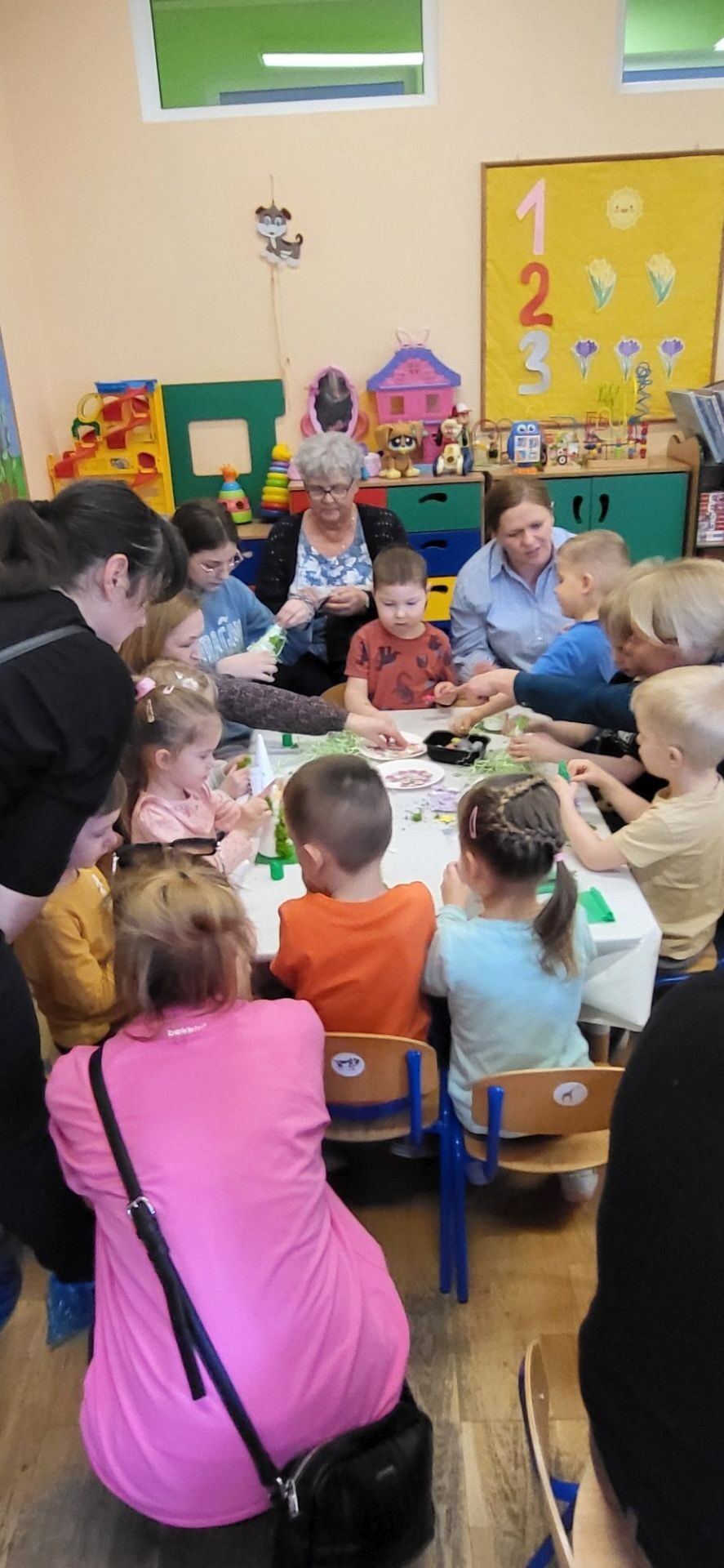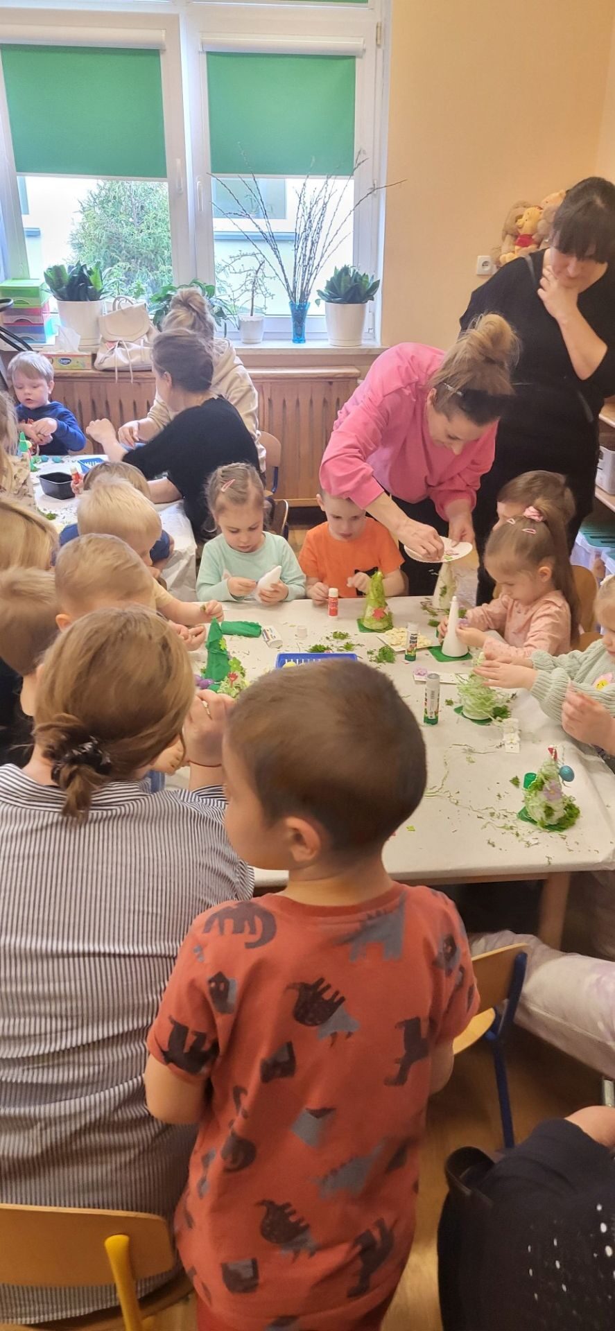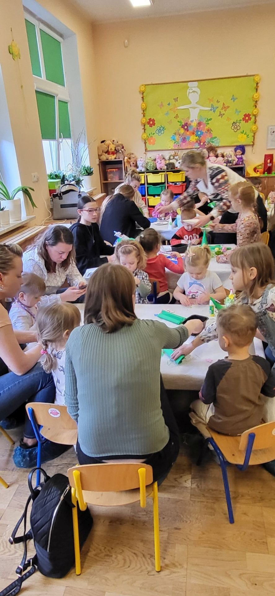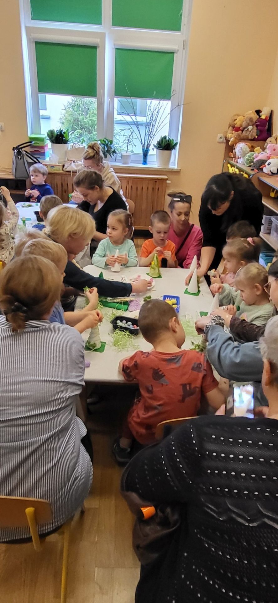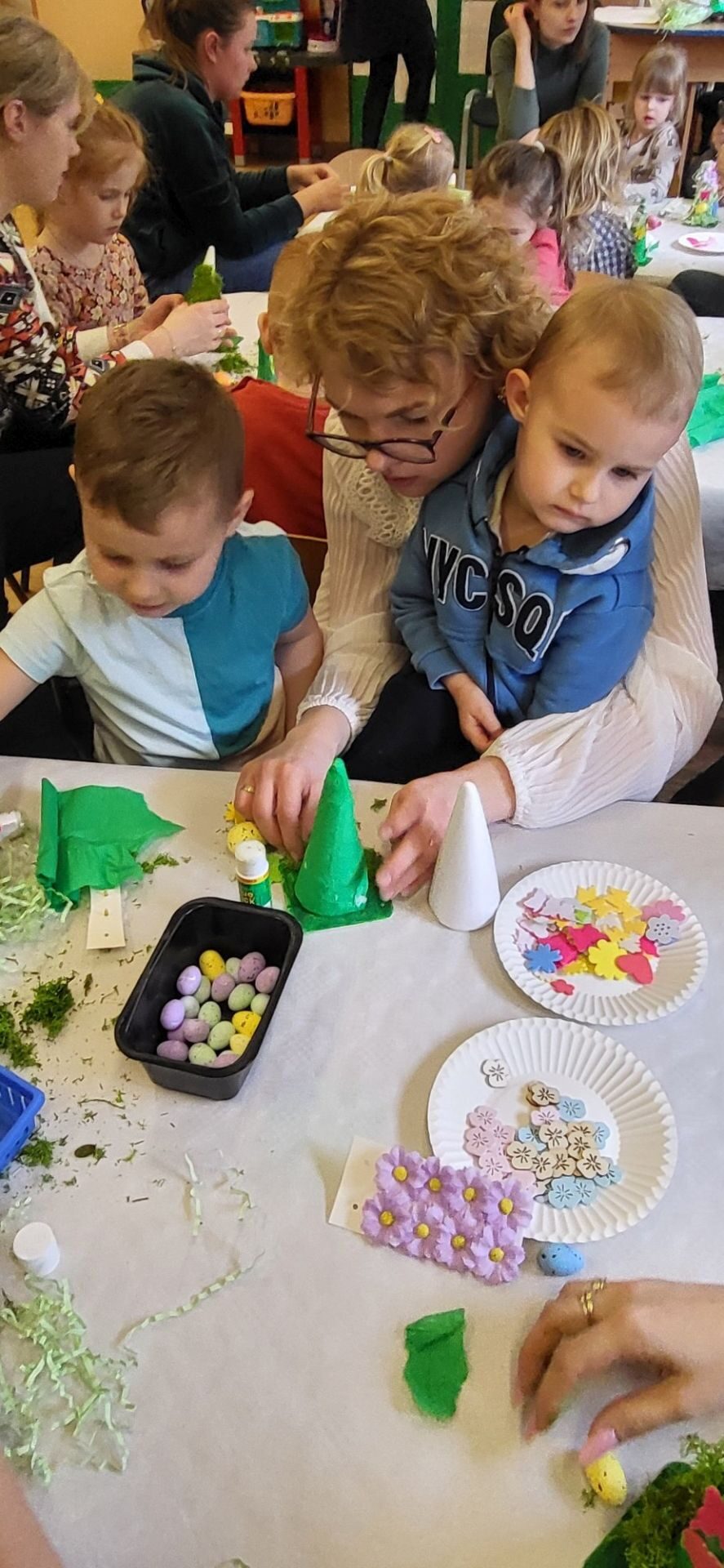 Dnia 19.03.2024 w grupie II Kotki odbyły się Warsztaty Wielkanocne z udziałem dzieci oraz rodziców. Celem spotkania było propagowanie i kultywowanie tradycji związanej ze Świętami Wielkanocnymi. W miłej atmosferze i z dużym zaangażowaniem uczestników powstały niezwykłe drzewka wiosenno – wielkanocne ozdobione jajkami, kwiatami, motylkami, piórkami. Rodzice wraz z dziećmi wykazali się ogromną pomysłowością i kreatywnością. Cieszymy się, że w tak miłym i licznym gronie udało nam się wykonać piękne ozdoby. Dziękujemy wszystkim uczestnikom spotkania za serdeczną, miłą atmosferę, która wprowadziła nas wszystkich w przedświąteczny nastrój.