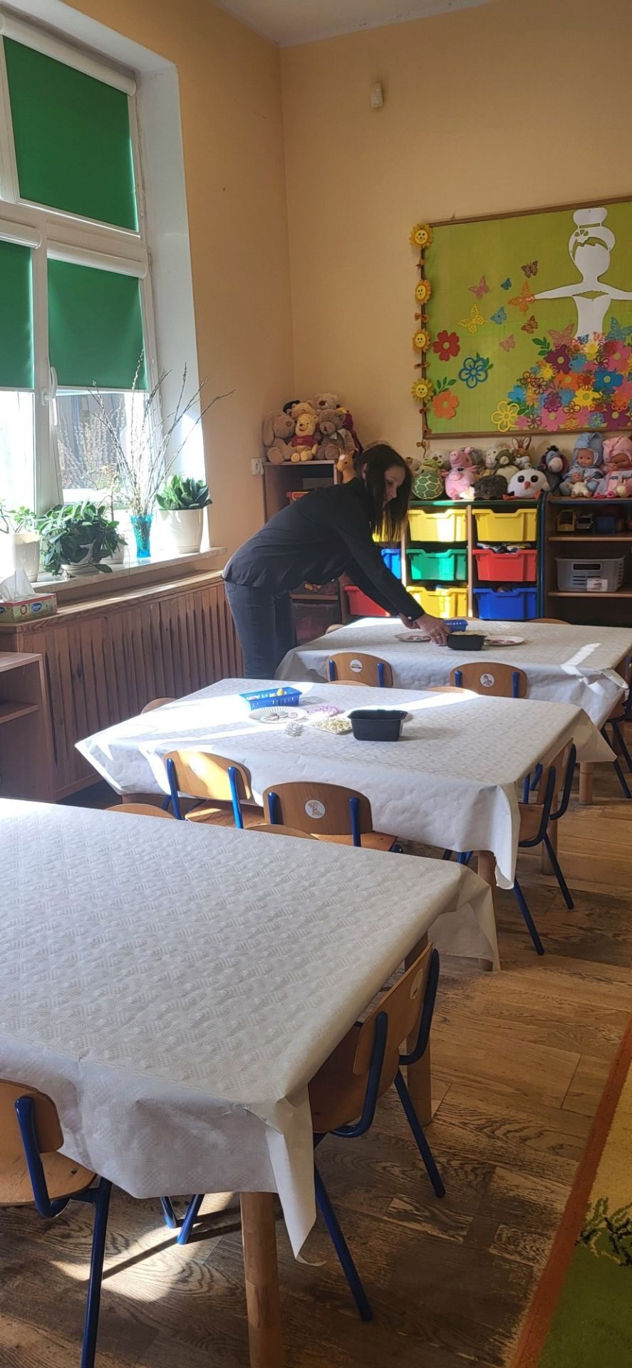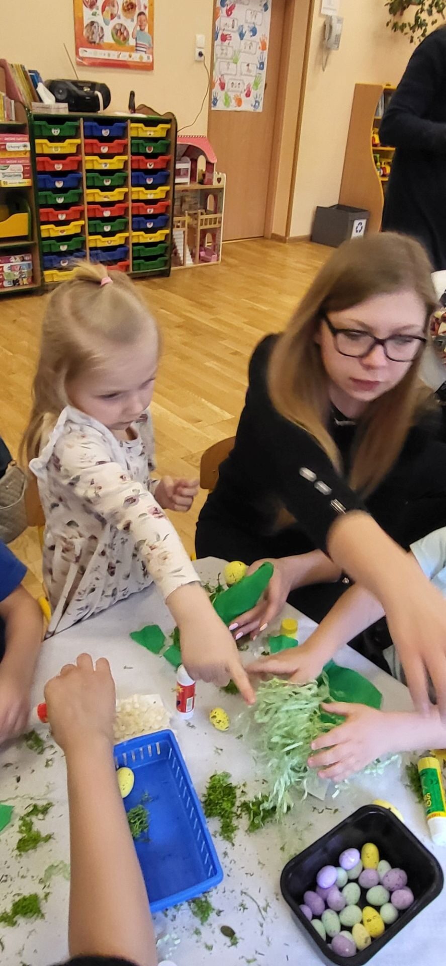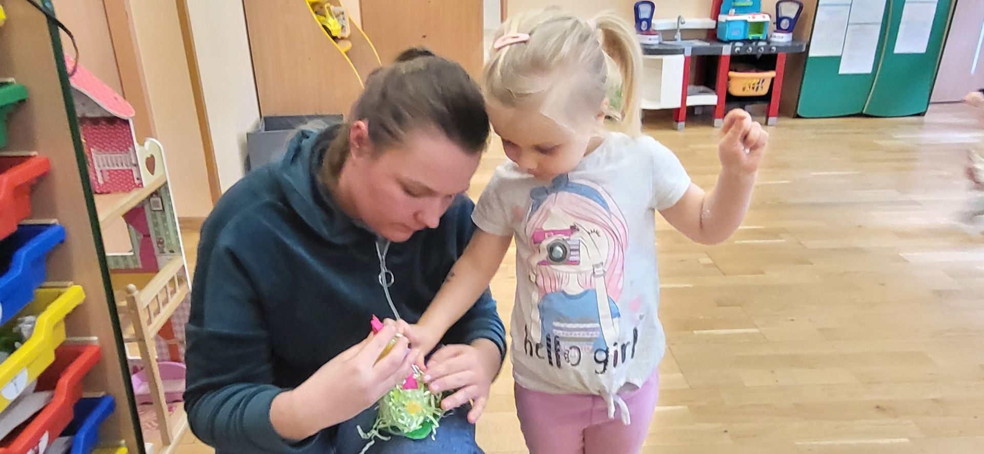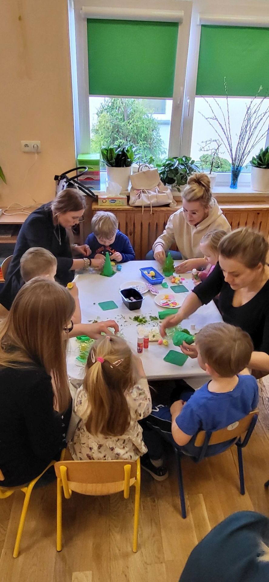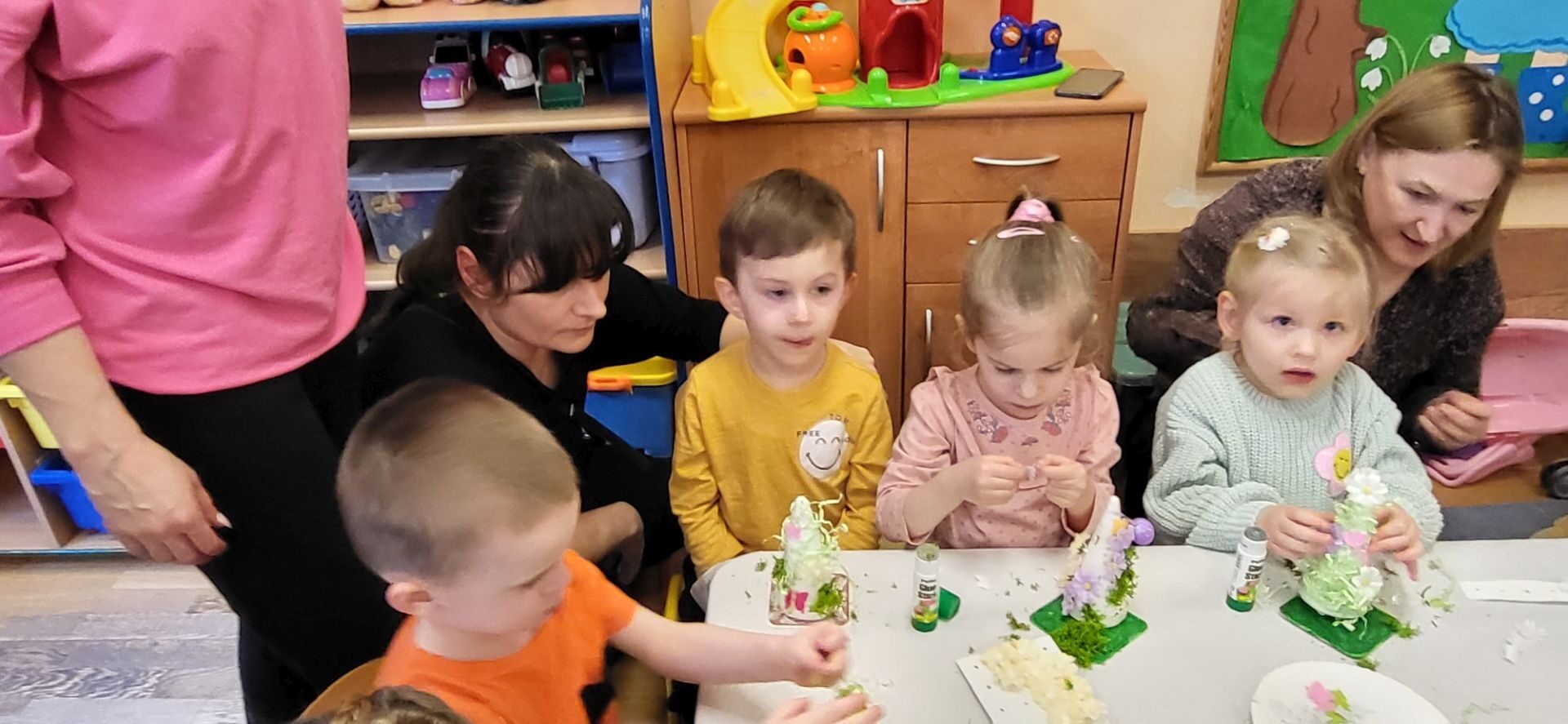 Dnia 19.03.2024 w grupie II Kotki odbyły się Warsztaty Wielkanocne z udziałem dzieci oraz rodziców. Celem spotkania było propagowanie i kultywowanie tradycji związanej ze Świętami Wielkanocnymi. W miłej atmosferze i z dużym zaangażowaniem uczestników powstały niezwykłe drzewka wiosenno – wielkanocne ozdobione jajkami, kwiatami, motylkami, piórkami. Rodzice wraz z dziećmi wykazali się ogromną pomysłowością i kreatywnością. Cieszymy się, że w tak miłym i licznym gronie udało nam się wykonać piękne ozdoby. Dziękujemy wszystkim uczestnikom spotkania za serdeczną, miłą atmosferę, która wprowadziła nas wszystkich w przedświąteczny nastrój.
