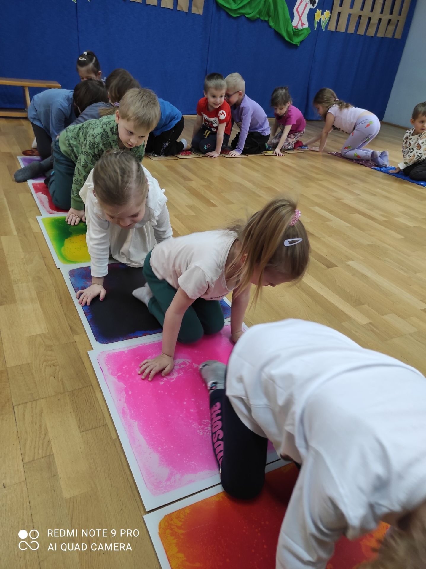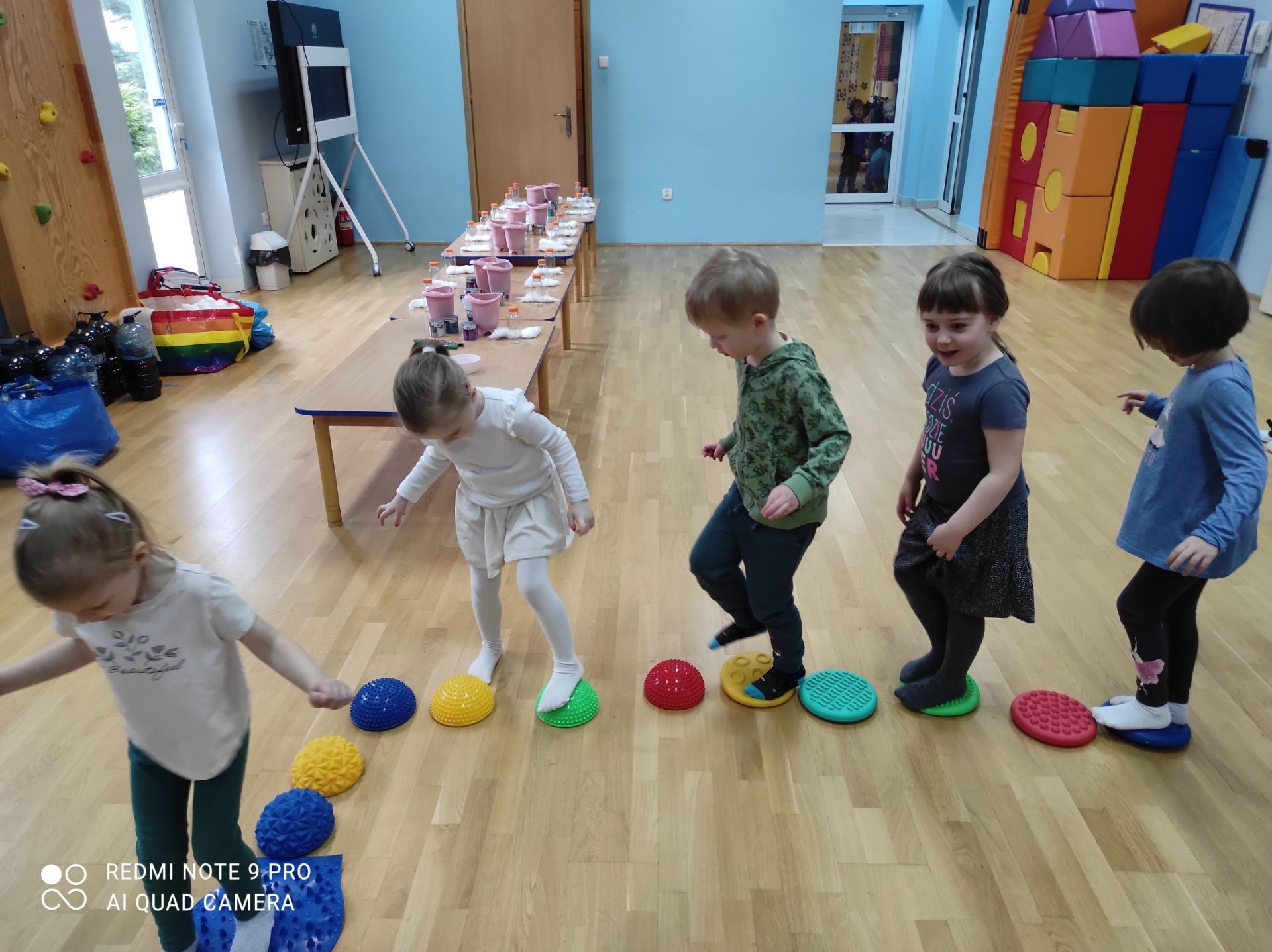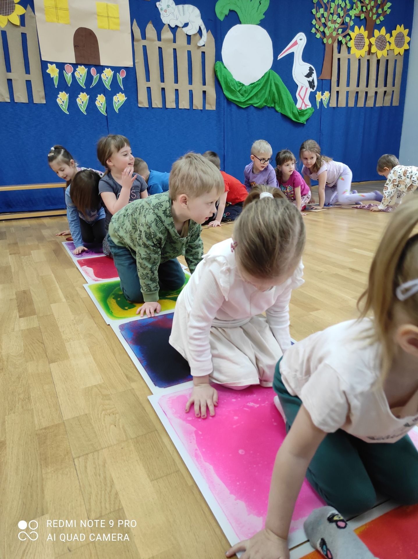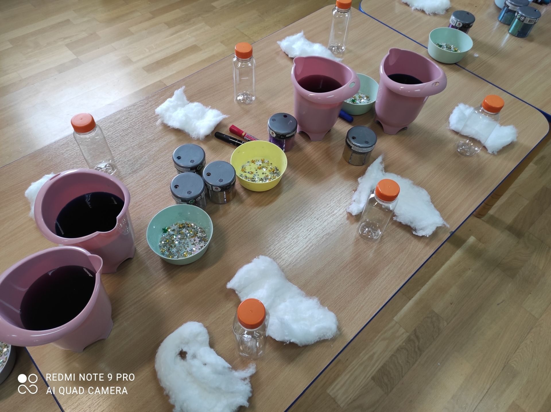 Dnia 12.04.2023 r w naszym przedszkolu odbyły się warsztaty sensoryczne w czasie,których przedszkolaki wybrały się w kosmos. Podczas proponowanych aktywności dzieci miały możliwość przejścia stopami po kosmicznej ścieżce sensorycznej, przy okazji utrwalając sobie nazwy planet układu słonecznego, by następnie wykonać swój własny kosmos w butelce wykorzystując w tym celu: watę, cekinowe gwiazdki, brokat oraz wodę w kolorze niebieskim i fioletowym. Zabawy sensoryczne dostarczyły dzieciom różnorodnych bodźców do rozwoju zmysłów a także poszerzyły ich świat doznań.