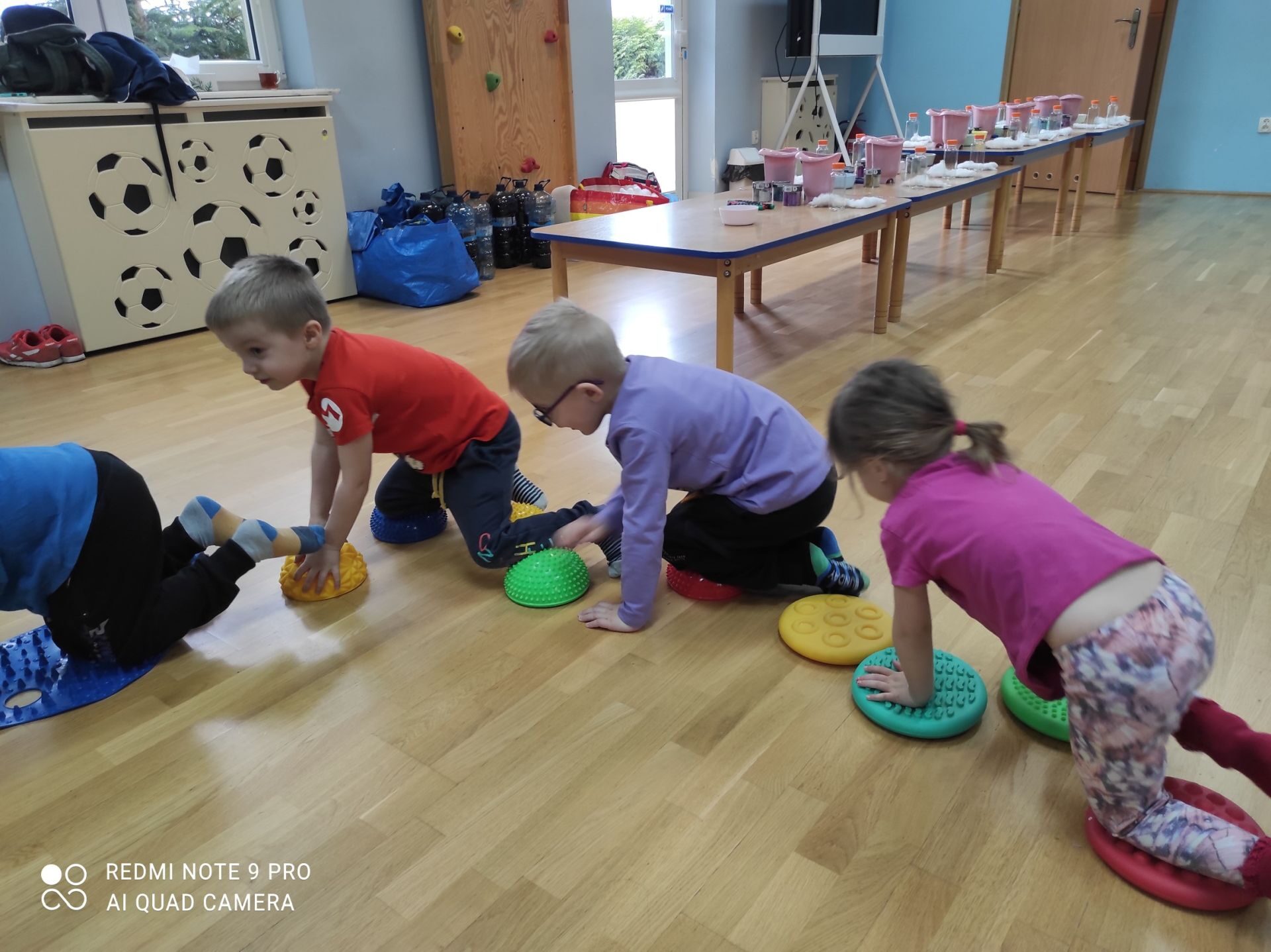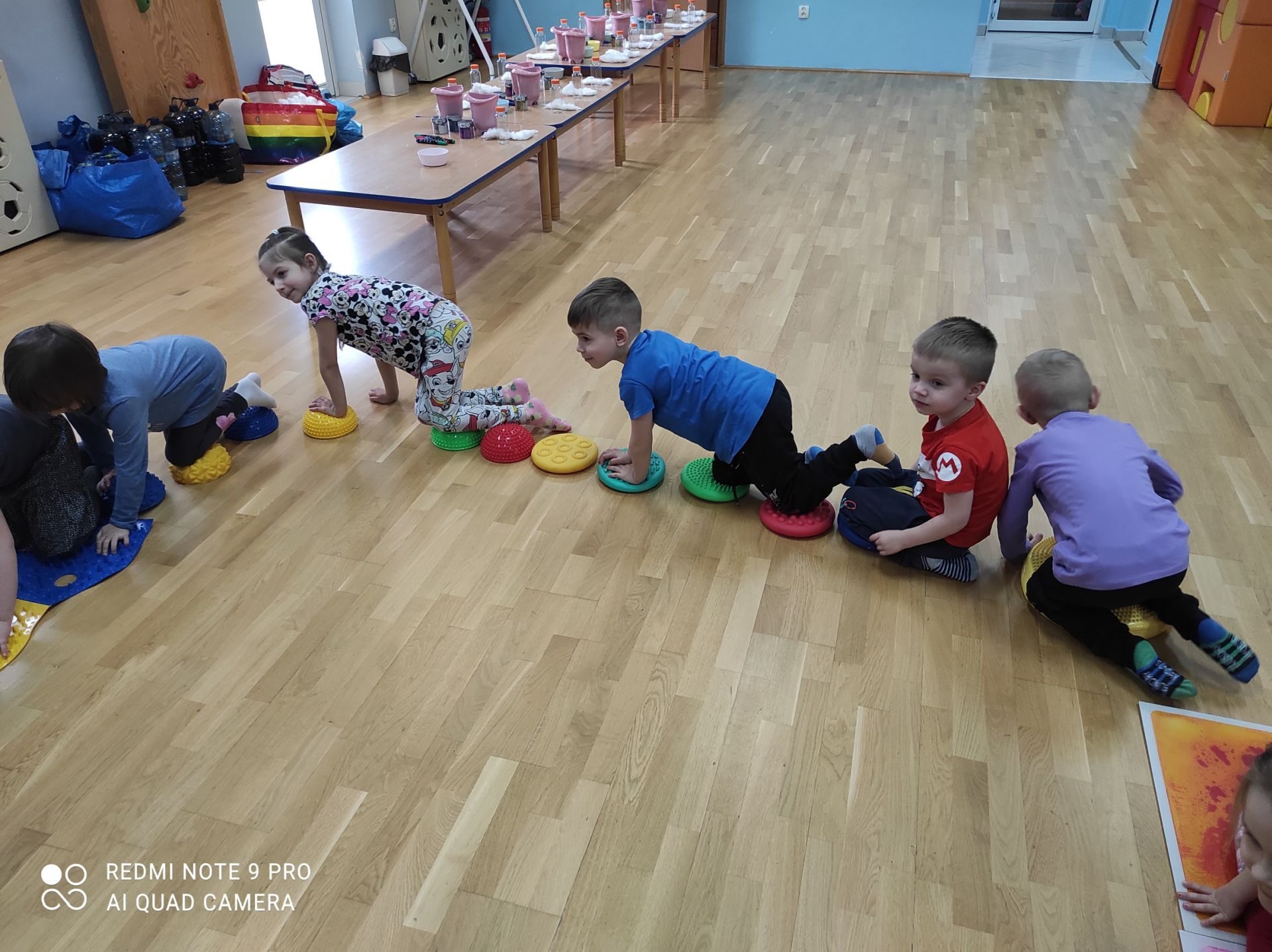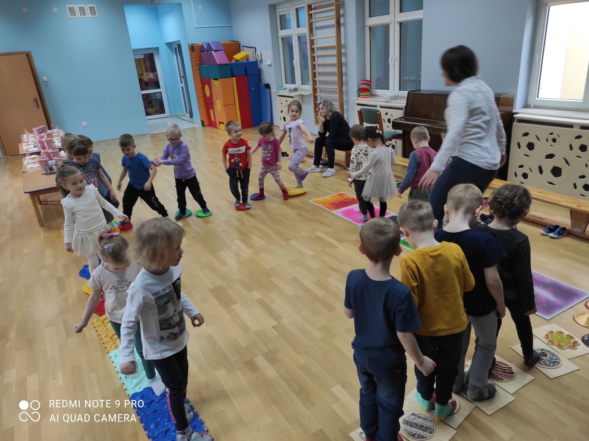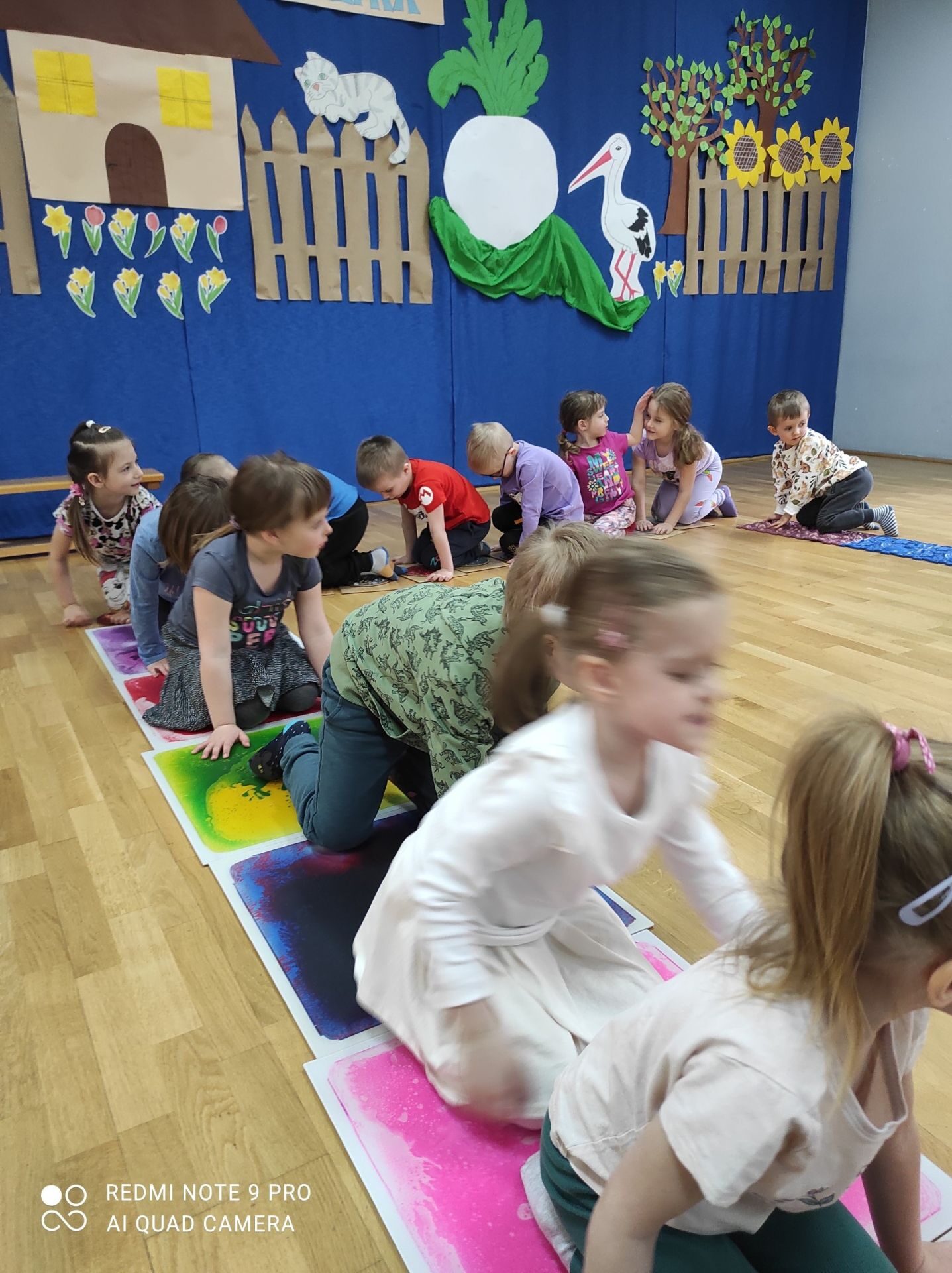Dnia 12.04.2023 r w naszym przedszkolu odbyły się warsztaty sensoryczne w czasie,których przedszkolaki wybrały się w kosmos. Podczas proponowanych aktywności dzieci miały możliwość przejścia stopami po kosmicznej ścieżce sensorycznej, przy okazji utrwalając sobie nazwy planet układu słonecznego, by następnie wykonać swój własny kosmos w butelce wykorzystując w tym celu: watę, cekinowe gwiazdki, brokat oraz wodę w kolorze niebieskim i fioletowym. Zabawy sensoryczne dostarczyły dzieciom różnorodnych bodźców do rozwoju zmysłów a także poszerzyły ich świat doznań.