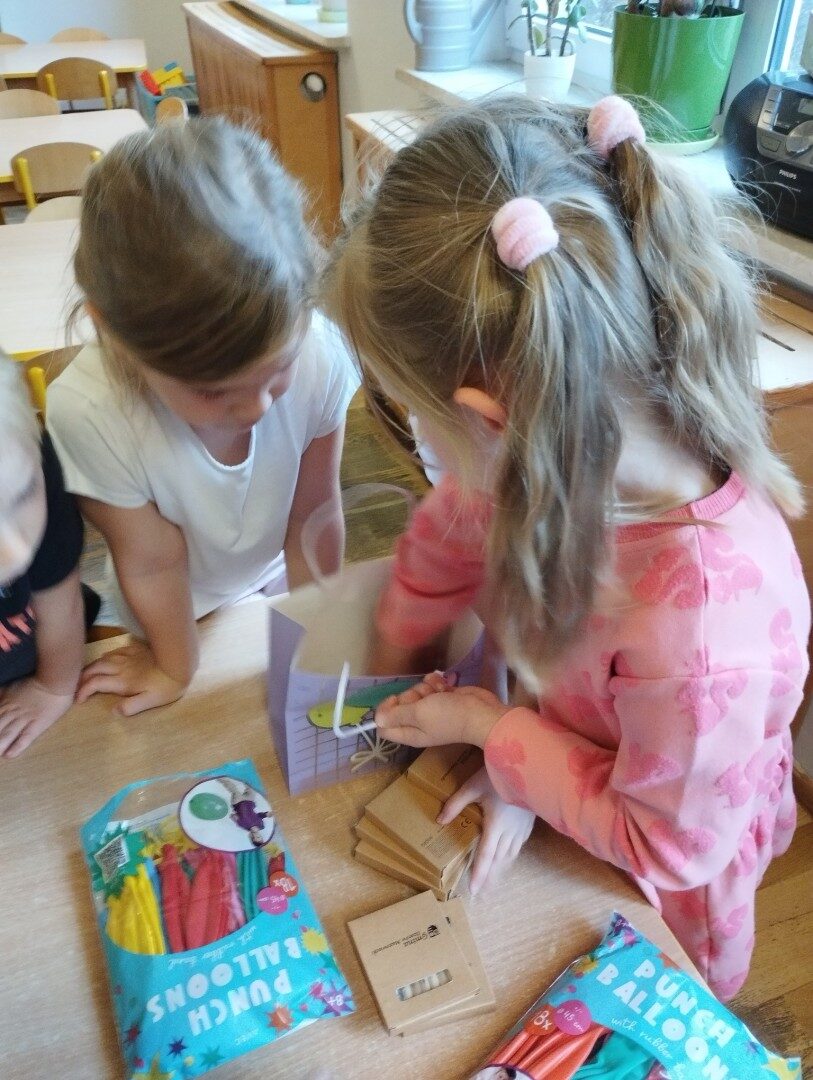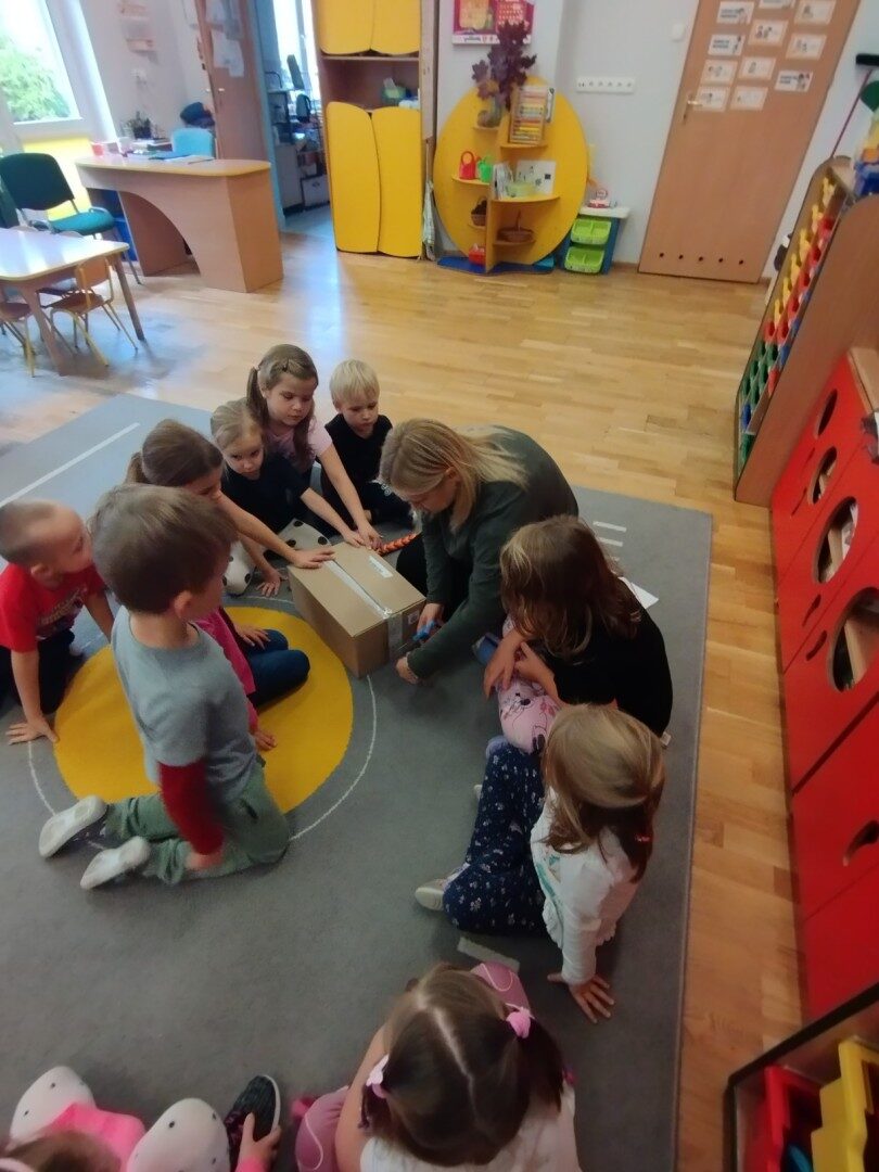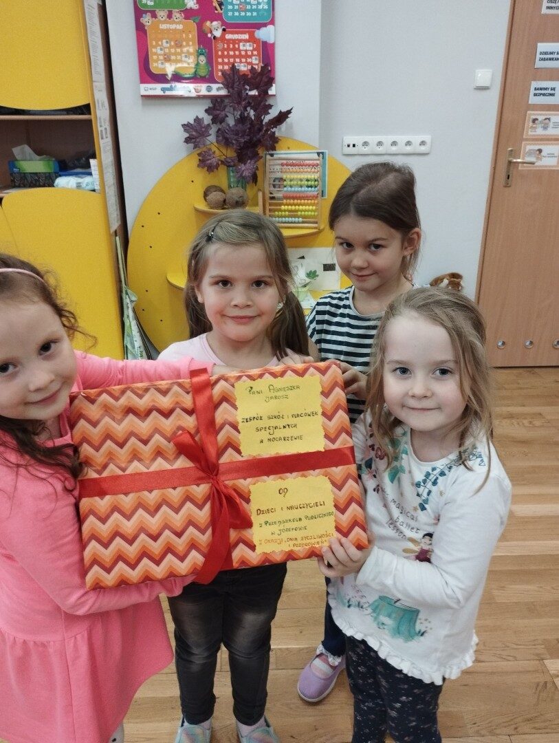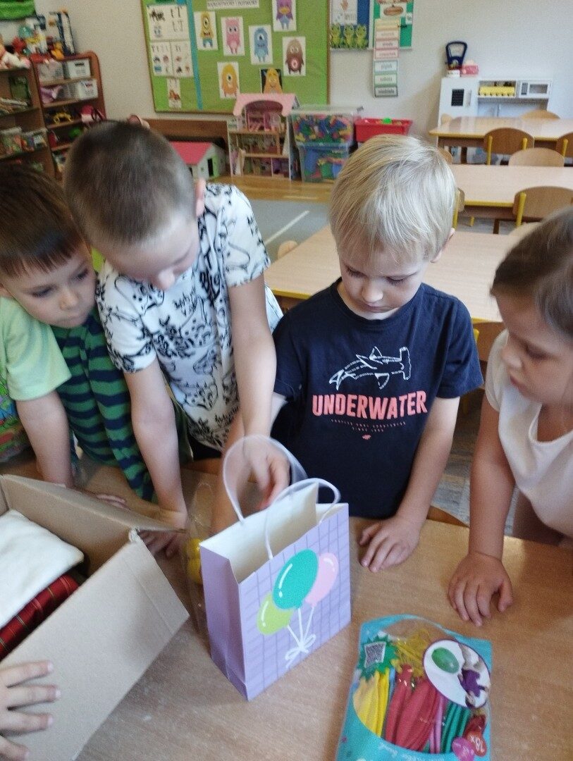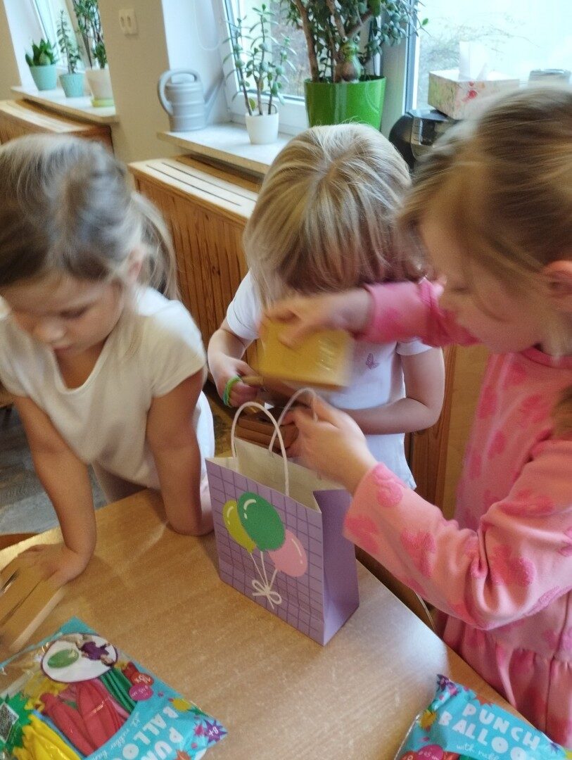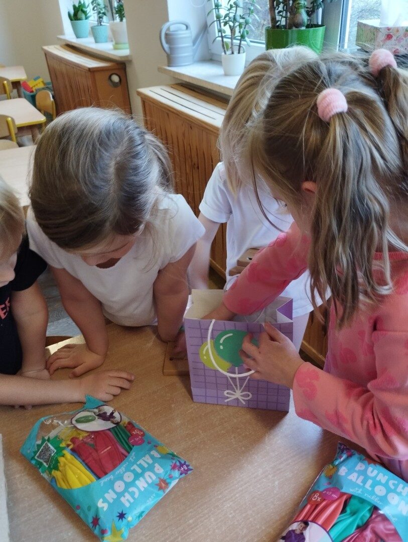 W listopadzie z okazji zbliżającego się Światowego Dnia Życzliwości i Pozdrowień przedszkolaki z grupy „Żabki” podczas zajęć sensorycznych wykonały woreczki dla nowych przyjaciół z Mocarzewa. Dużo radości sprawiło dzieciom wypełnienie woreczków różnorodnymi materiałami np.: kaszą gryczaną, ryżem, makaronem, żołędziami, grochem, fasolą. Podczas przygotowywania paczki, dzieci dołożyły balony, breloki z owocami, kredki z symbolem Gminy Ożarowa Mazowieckiego. Ponadto dołączono laurkę z życzeniami z okazji obchodzonego święta. Paczkę przekazano na ręce Pani Agnieszki – wychowawczyni z Ośrodka w Mocarzewie.