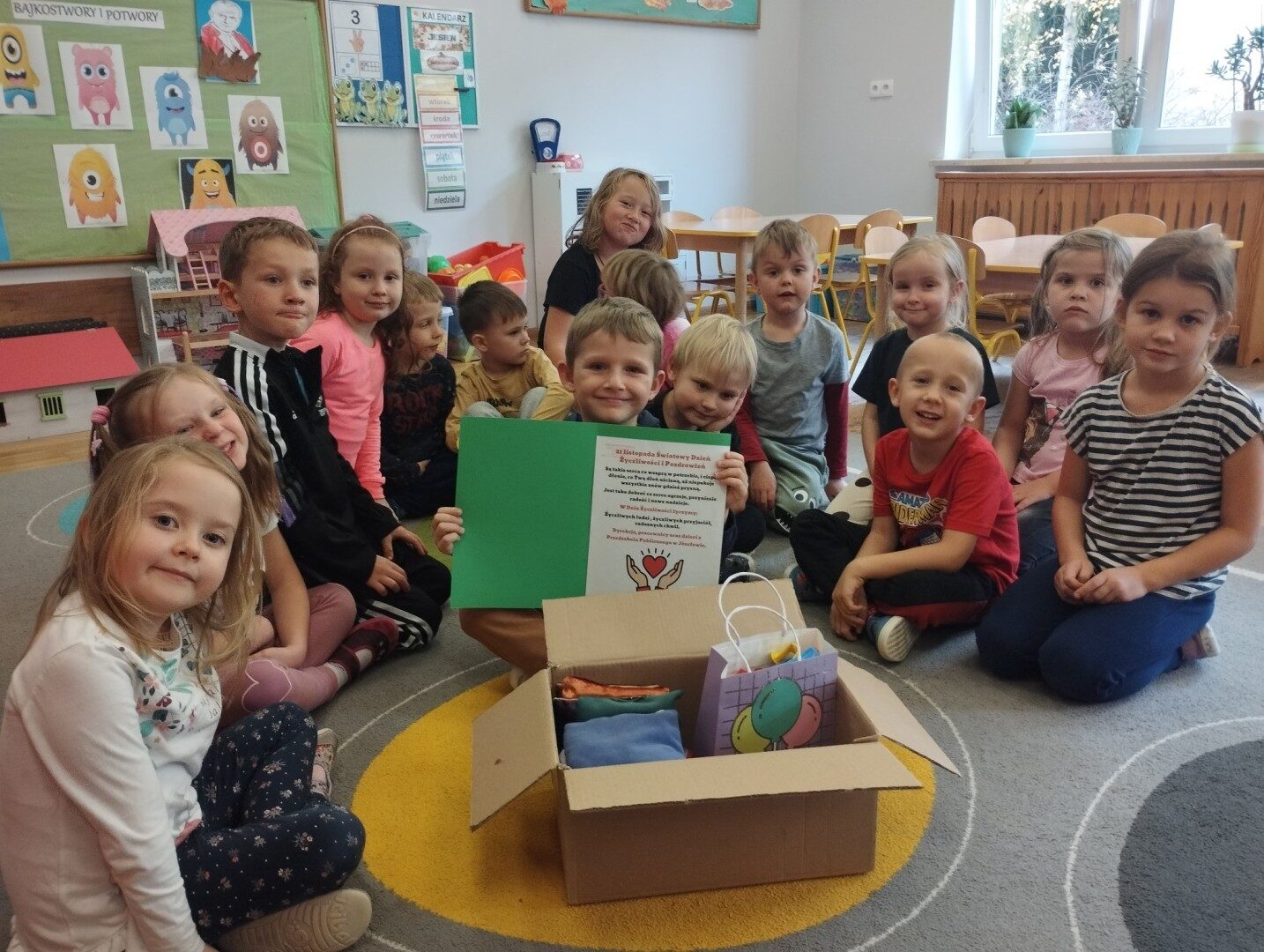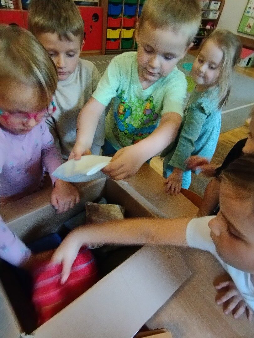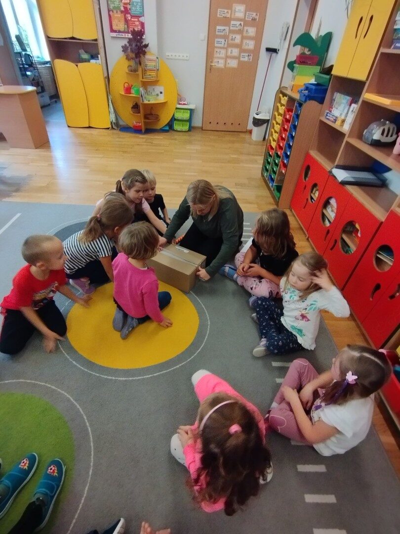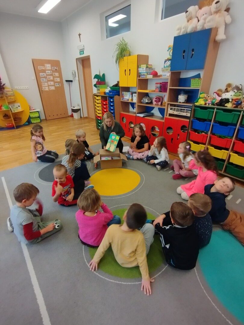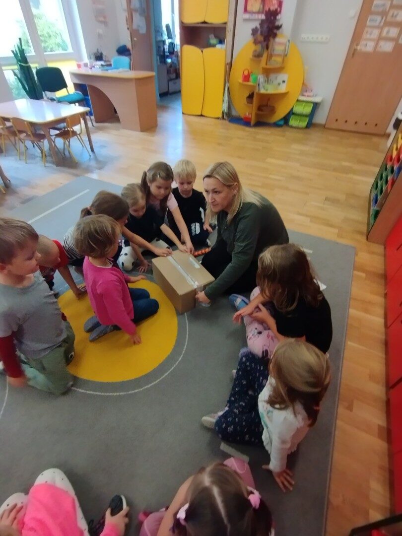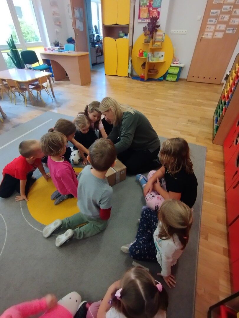 W listopadzie z okazji zbliżającego się Światowego Dnia Życzliwości i Pozdrowień przedszkolaki z grupy „Żabki” podczas zajęć sensorycznych wykonały woreczki dla nowych przyjaciół z Mocarzewa. Dużo radości sprawiło dzieciom wypełnienie woreczków różnorodnymi materiałami np.: kaszą gryczaną, ryżem, makaronem, żołędziami, grochem, fasolą. Podczas przygotowywania paczki, dzieci dołożyły balony, breloki z owocami, kredki z symbolem Gminy Ożarowa Mazowieckiego. Ponadto dołączono laurkę z życzeniami z okazji obchodzonego święta. Paczkę przekazano na ręce Pani Agnieszki – wychowawczyni z Ośrodka w Mocarzewie.