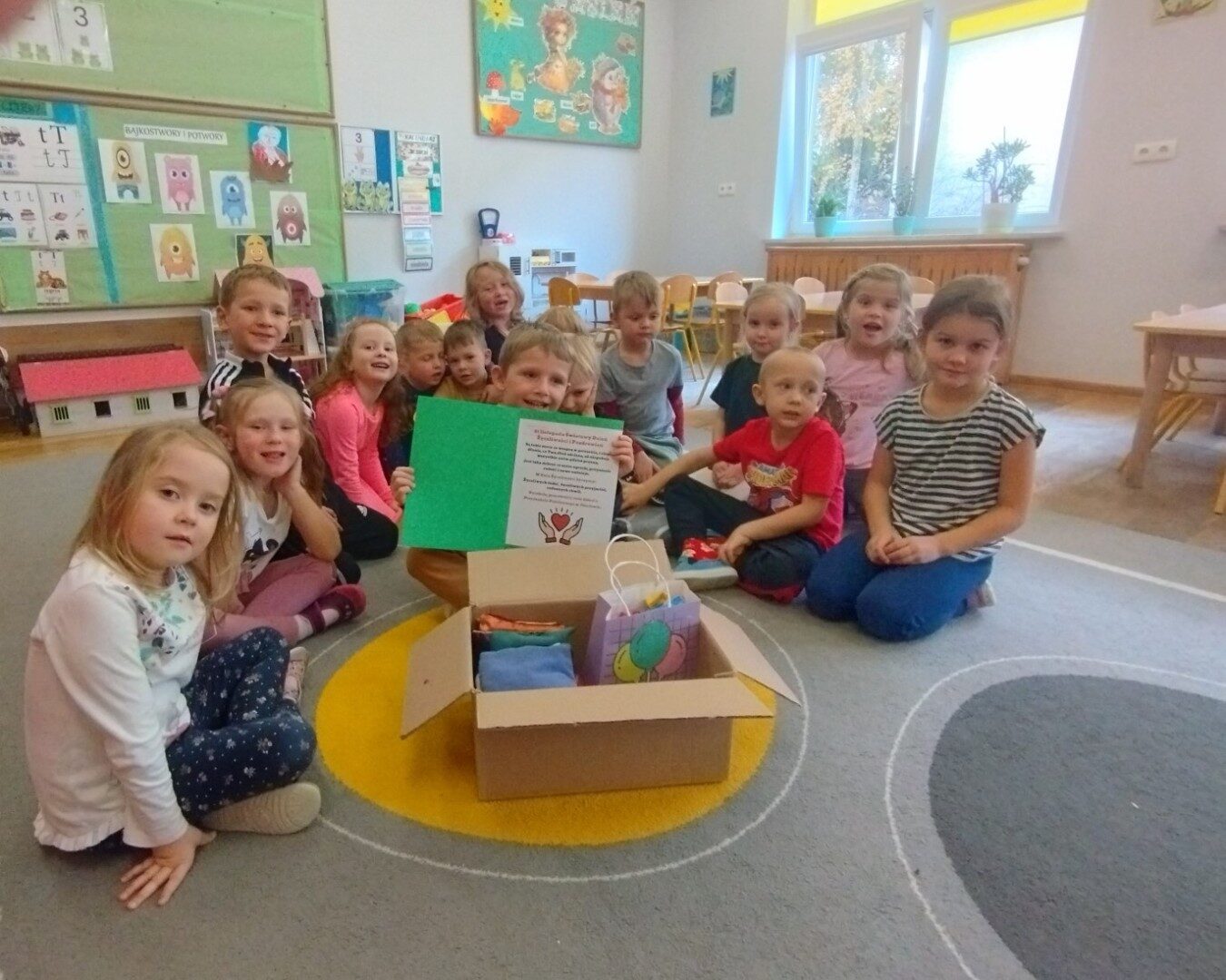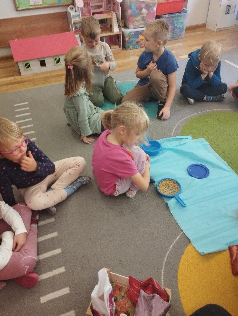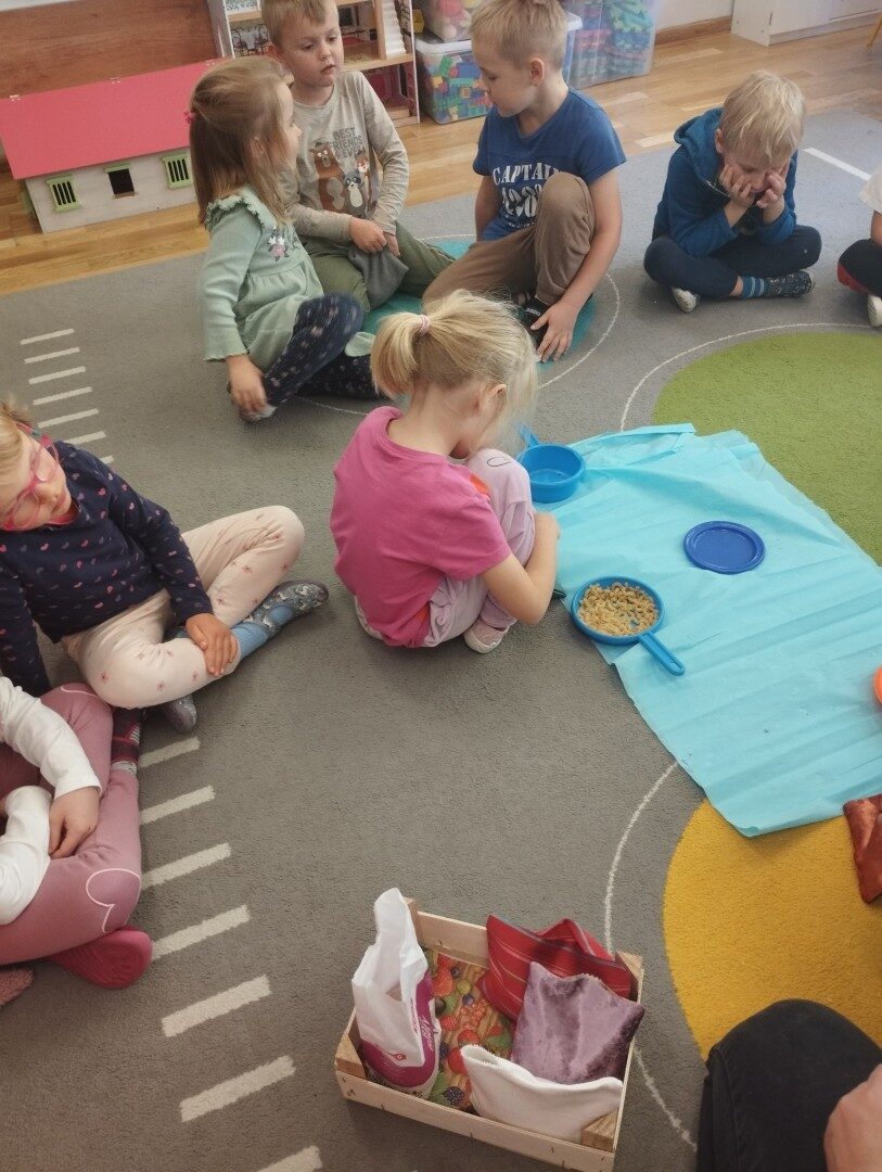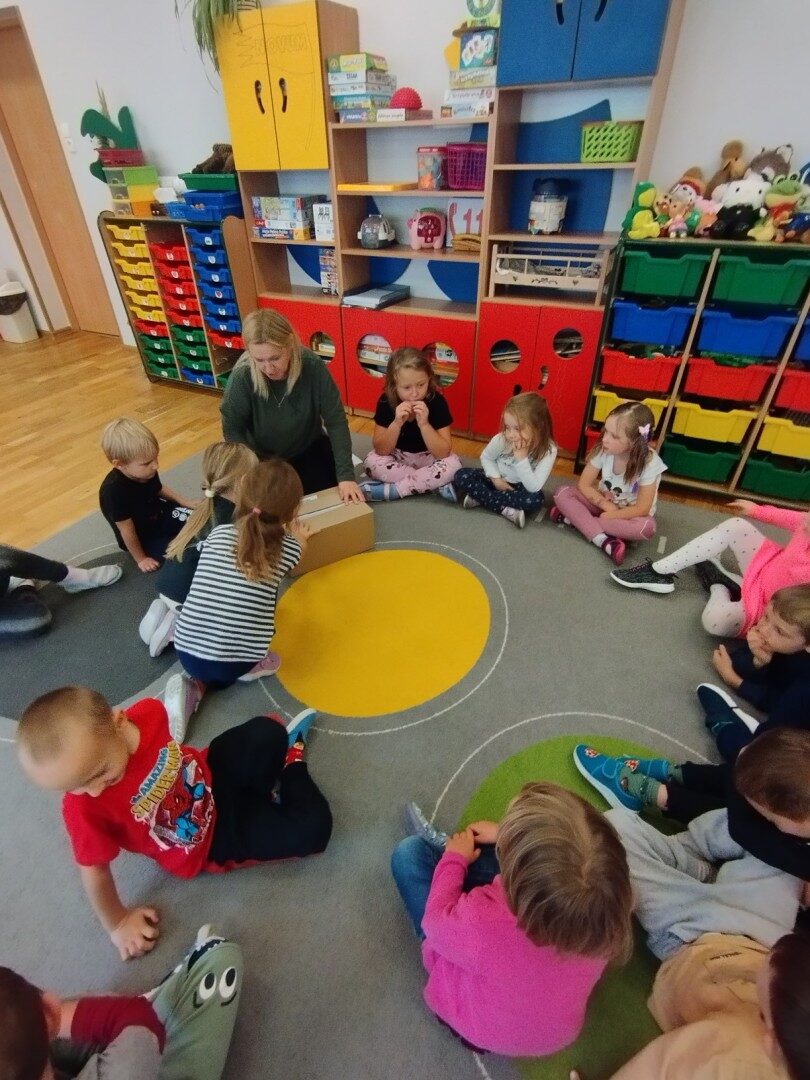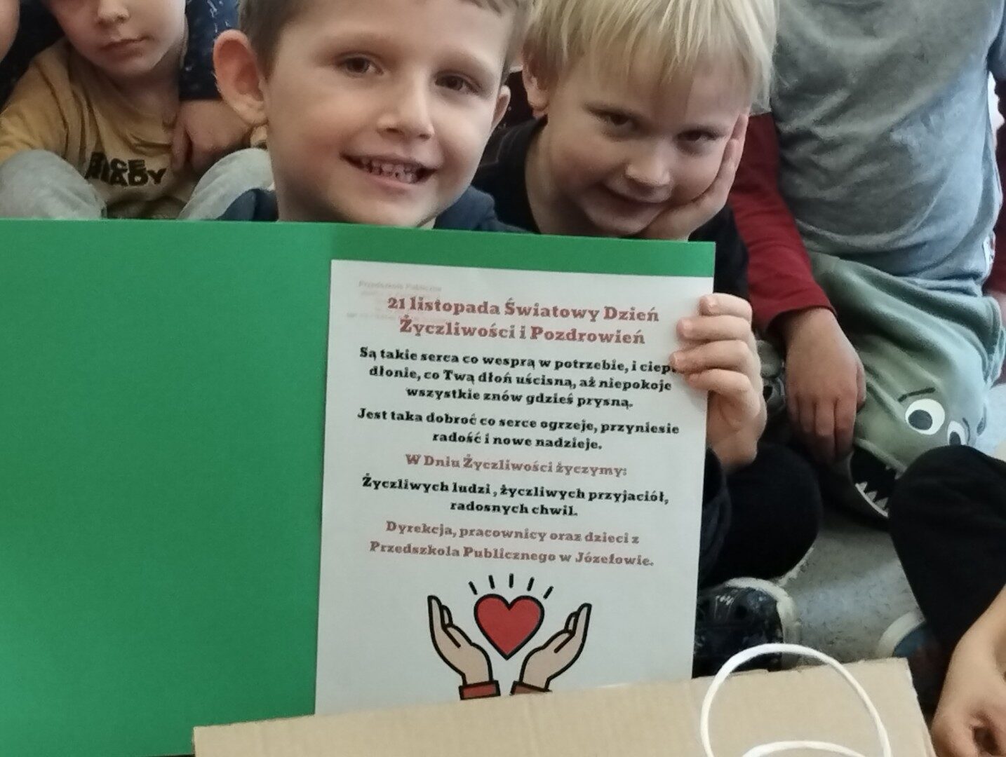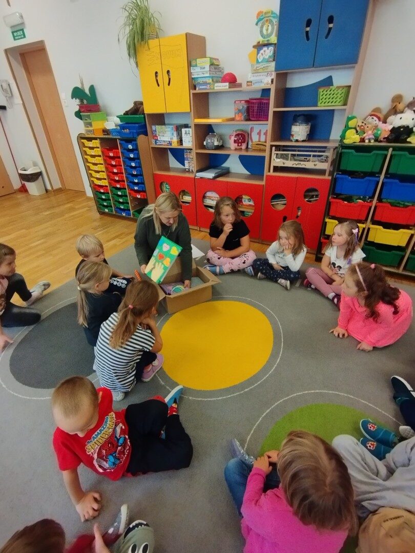 W listopadzie z okazji zbliżającego się Światowego Dnia Życzliwości i Pozdrowień przedszkolaki z grupy „Żabki” podczas zajęć sensorycznych wykonały woreczki dla nowych przyjaciół z Mocarzewa. Dużo radości sprawiło dzieciom wypełnienie woreczków różnorodnymi materiałami np.: kaszą gryczaną, ryżem, makaronem, żołędziami, grochem, fasolą. Podczas przygotowywania paczki, dzieci dołożyły balony, breloki z owocami, kredki z symbolem Gminy Ożarowa Mazowieckiego. Ponadto dołączono laurkę z życzeniami z okazji obchodzonego święta. Paczkę przekazano na ręce Pani Agnieszki – wychowawczyni z Ośrodka w Mocarzewie.