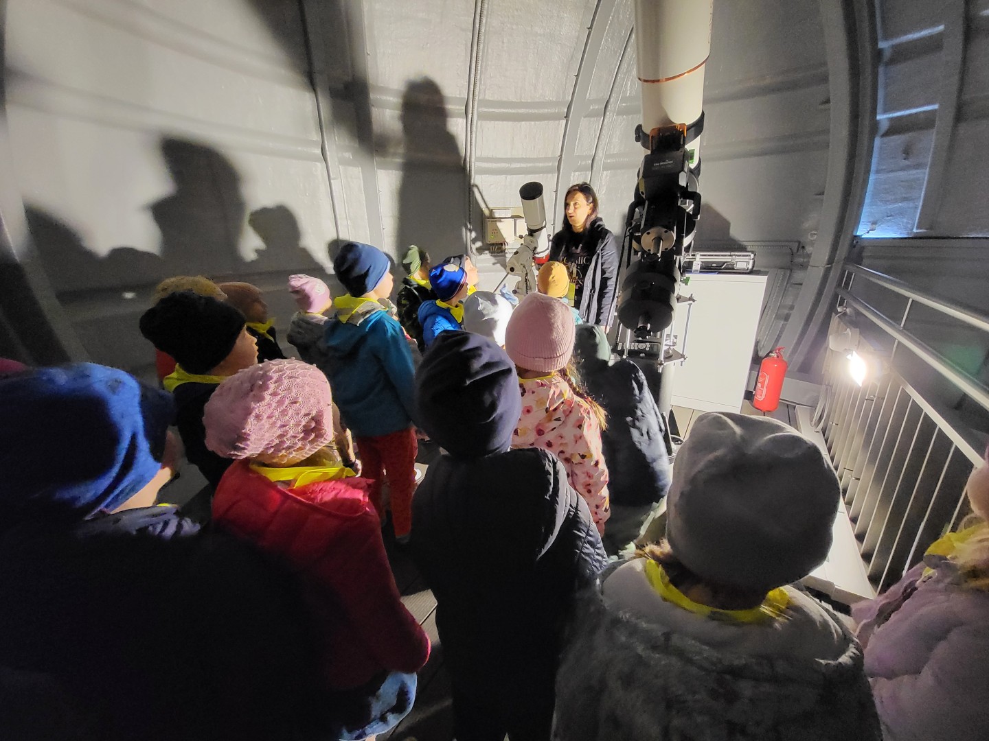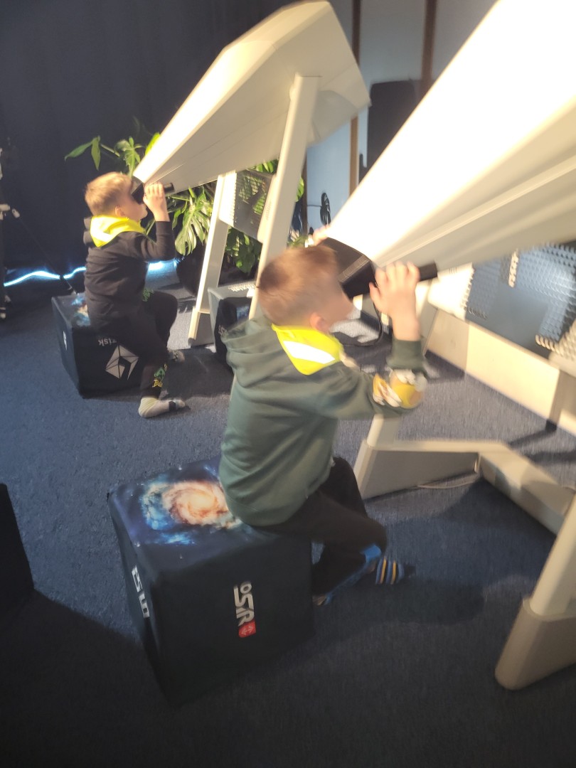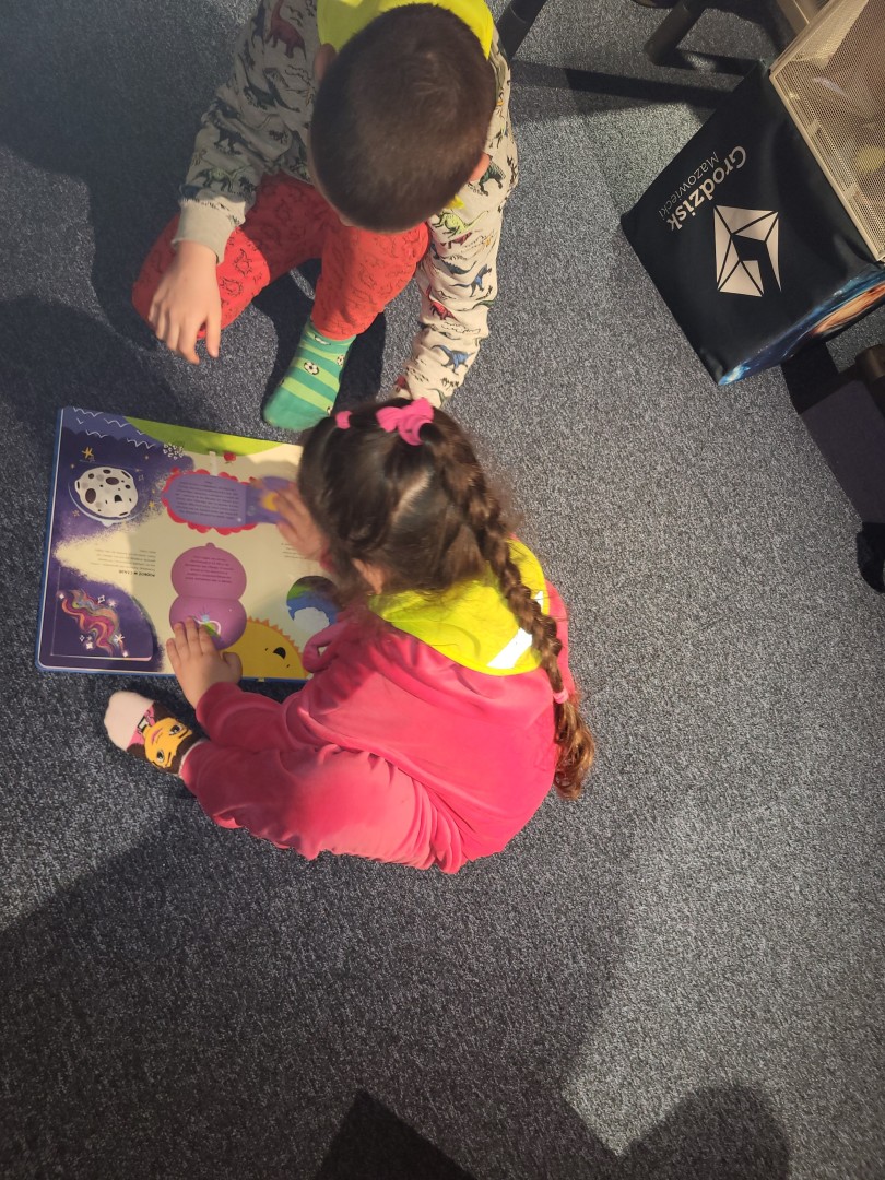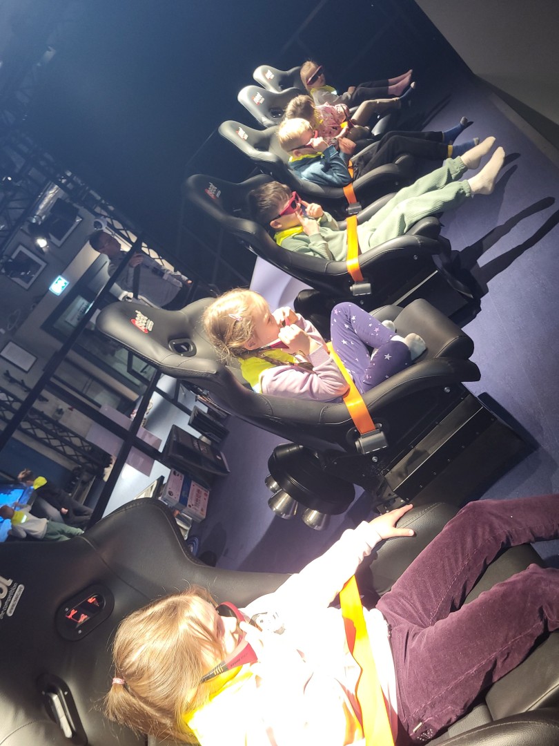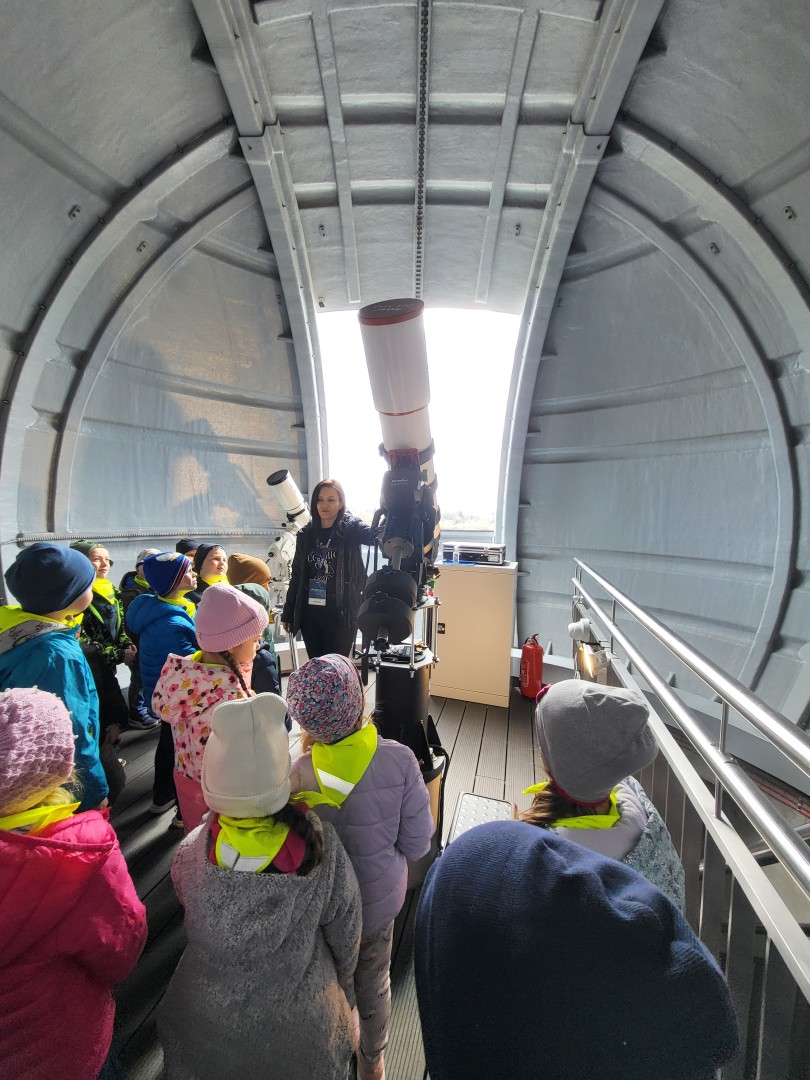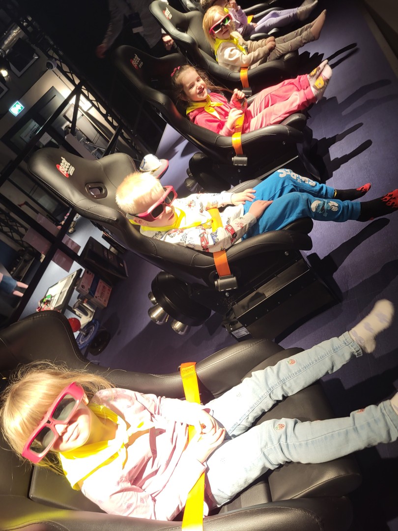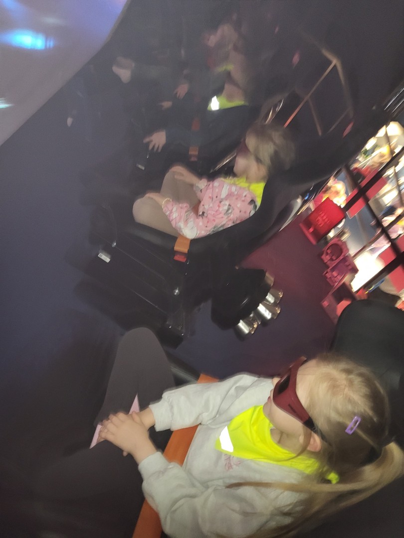 Dnia 10 kwietnia dzieci z grupy „ Żabki” i „ Zajączki”, wyruszyły autokarem na wycieczkę pełną niespodzianek i atrakcji, jakie oferowało Planetarium w Grodzisku. Przedszkolaki na samym wstępie obejrzały film w kinie sferycznym 3D zatytułowanym „ Stalarsi – misja ratowania lasu”. Efekty filmu wywołały w dzieciach mnóstwo radości, zaskoczenia, euforii. Kolejnym działaniem, które było niesamowitym przeżyciem i pełnym niespodzianek, to symulator podróży kosmicznej 5D. ponadto, kolejna atrakcją były warsztaty plastyczne w sali Mikołaja Kopernika. Przedszkolaki wykonały rakietę kosmiczną. Dużą niespodzianką było również oglądanie kopuły, z której za pomocą teleskopu można oglądać słonce- nam się nieudało tego dokonać, gdyż pogoda była pochmurna. Za to obejrzeliśmy panoramę Grodziska Mazowieckiego z tarasu widokowego, który znajduje się na 28 piętrze. Bardzo nam się podobała wycieczka, wróciliśmy przeszczęśliwi, pełni wrażeń i emocji.